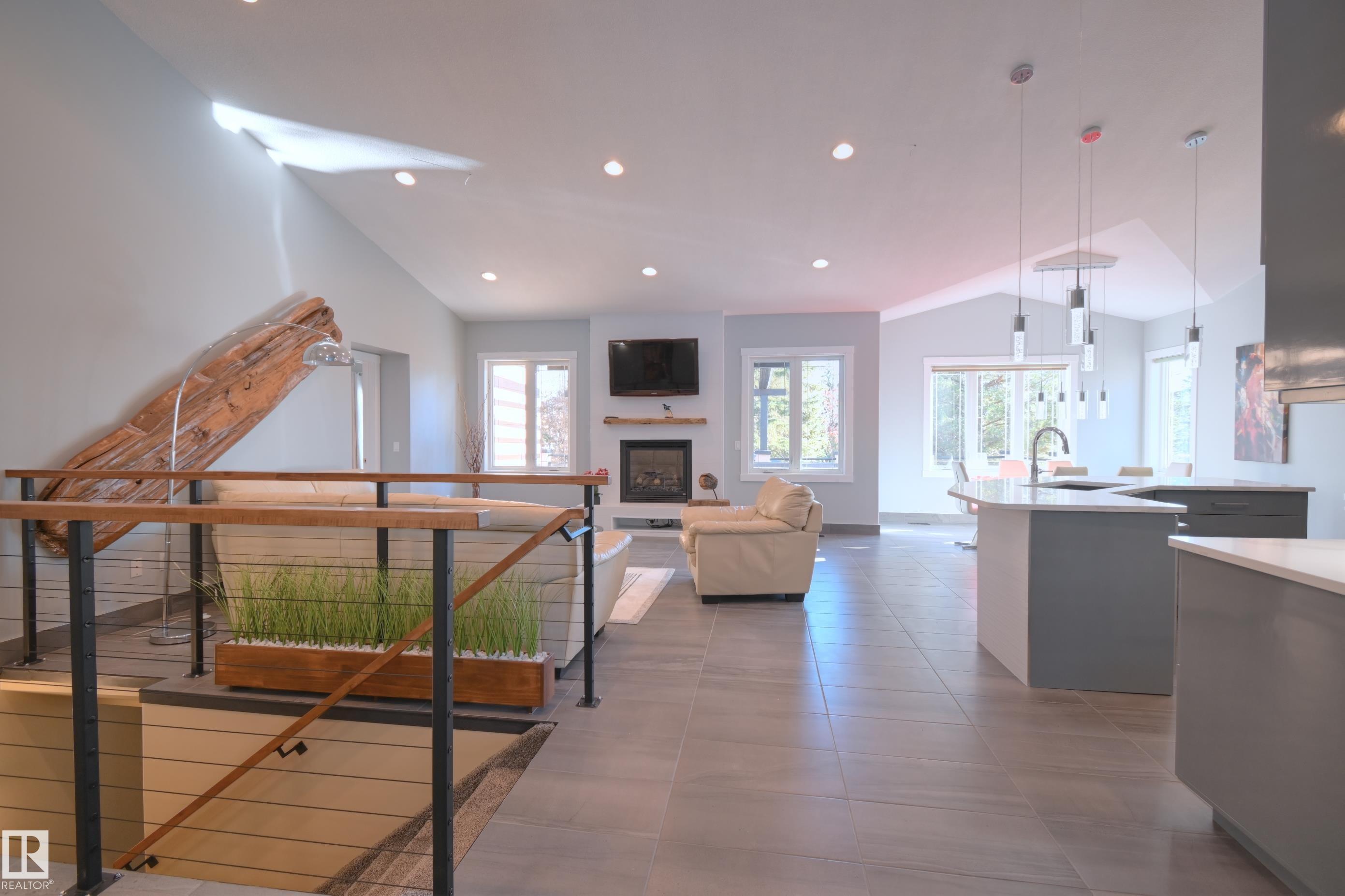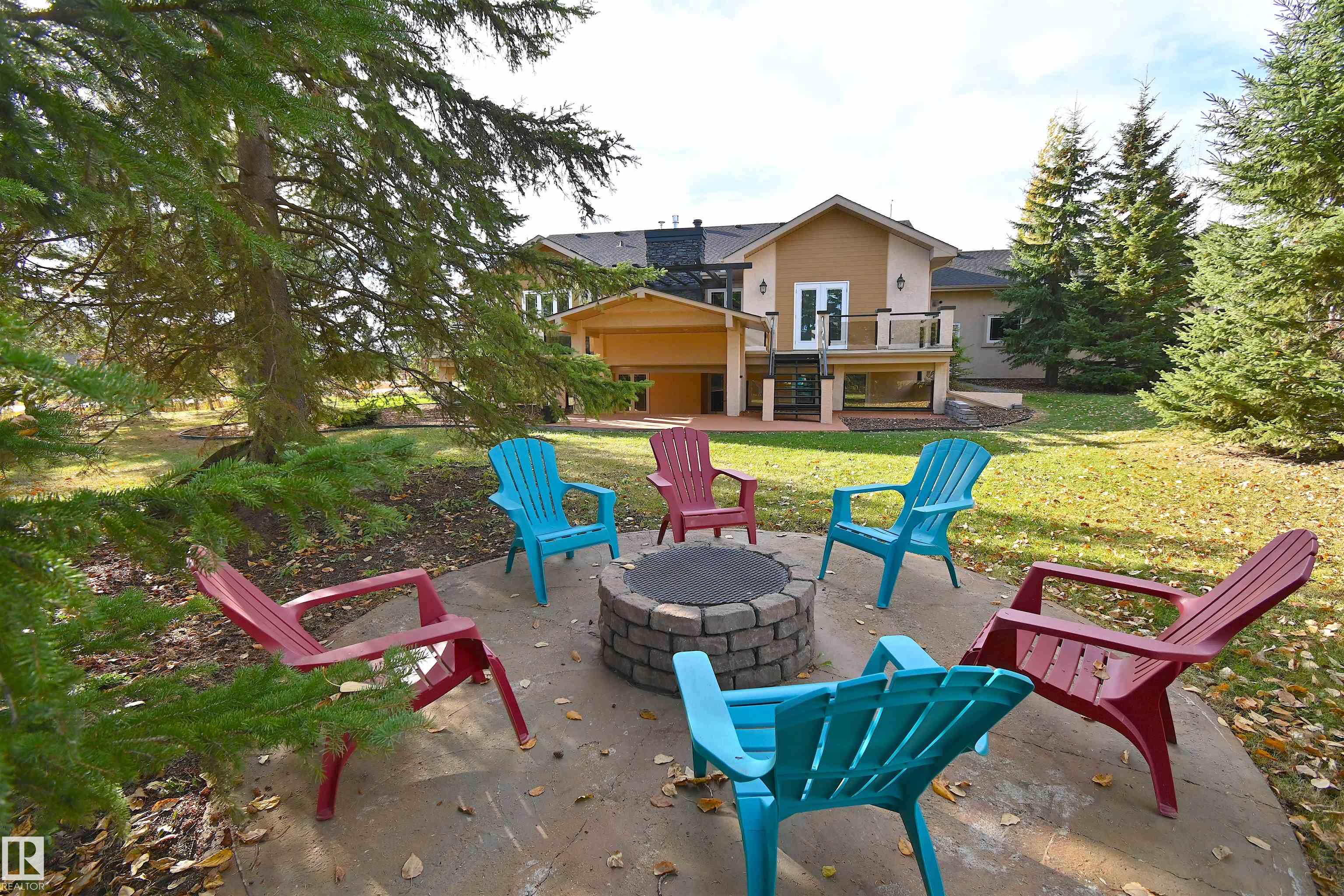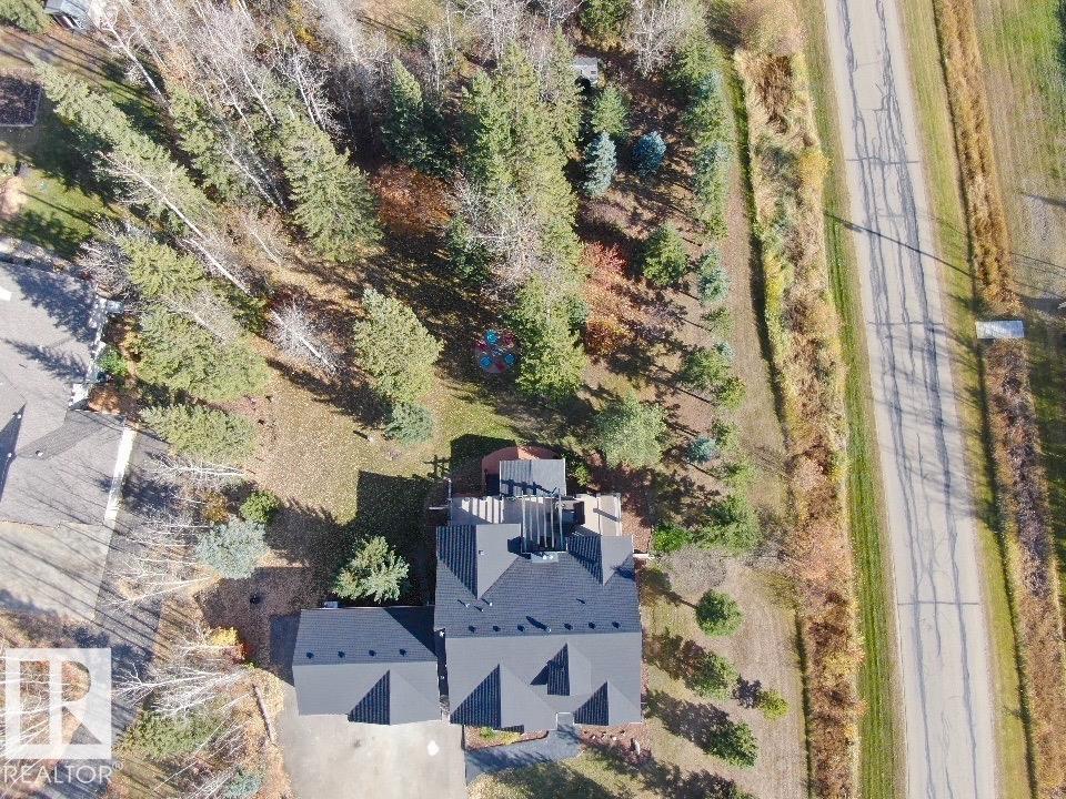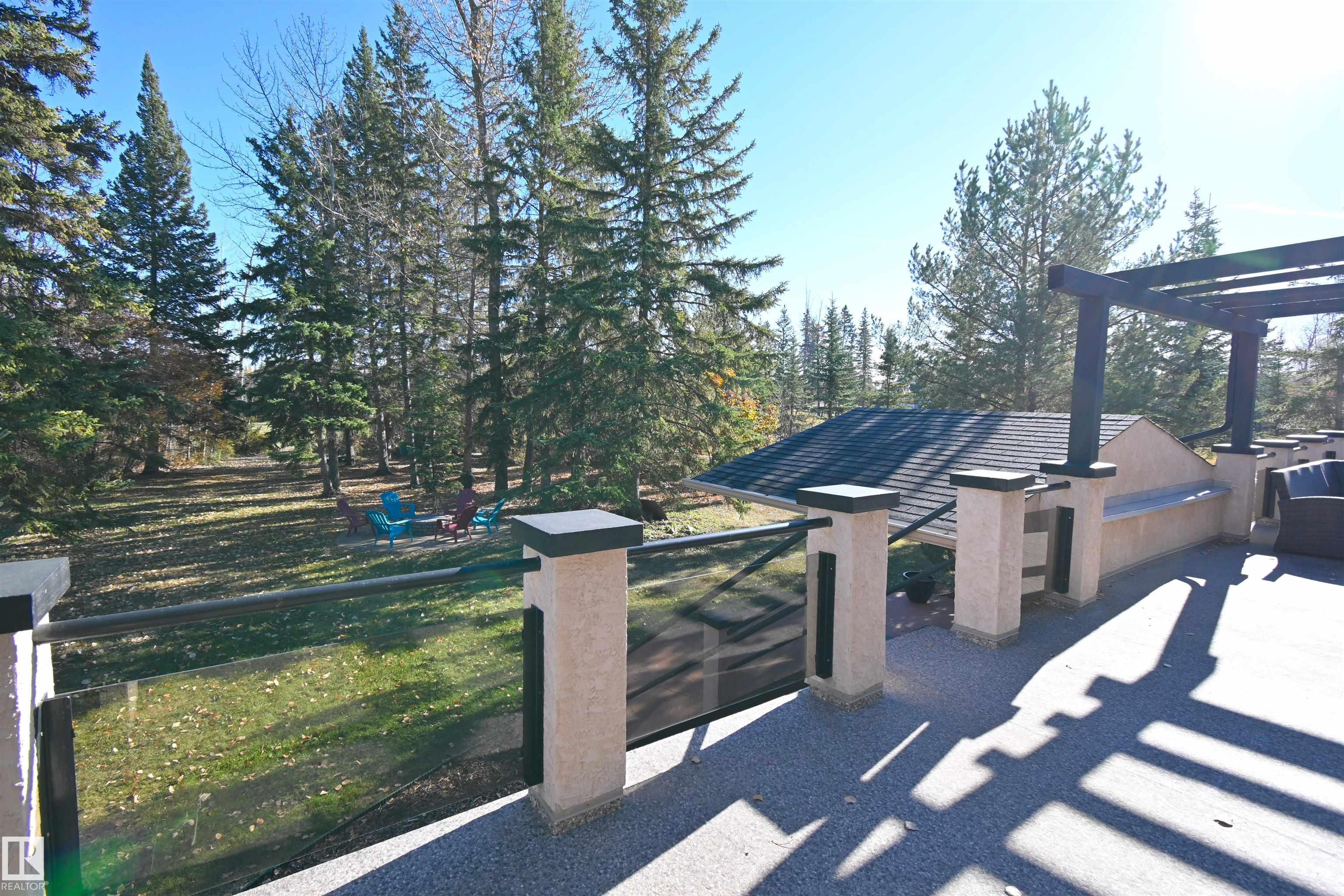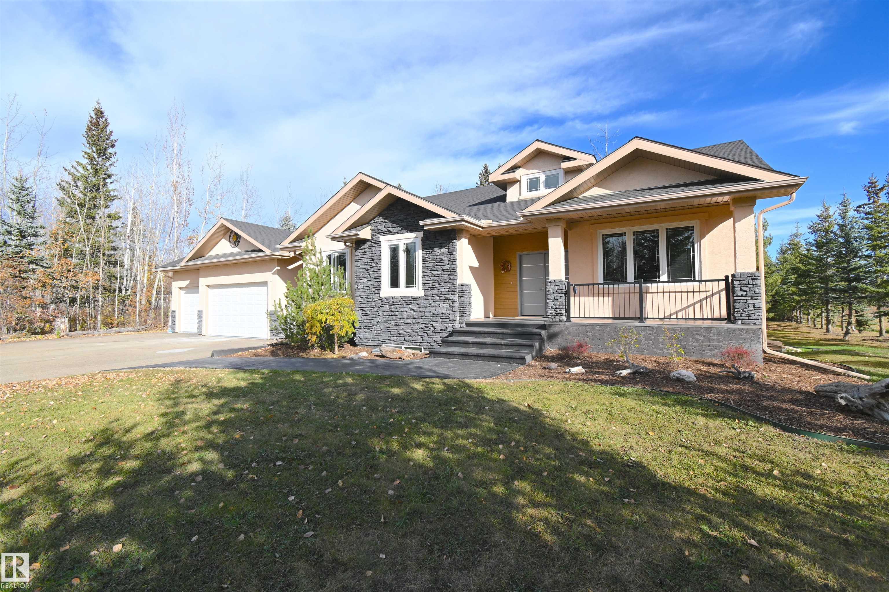 Exceptional Executive Acreage in Prestigious Atim Creek! Just minutes North of Town, this 5-bed + den custom-built bungalow has been beautifully renovated. The updated kitchen features European cabinets, quartz counters, island & a huge new pantry. Ample natural light, a fireplace & vaulted ceilings add elegance to the open main living space. Large windows in the living and dining rooms offer a treed view of the property. The primary suite is HUGE, offering a gorgeous new 5-pc ensuite, walk-in closet, fireplace and deck access. Two additional beds, den, laundry & dog wash complete the main floor. The finished lower level has a family/games room with fireplace and wet bar, 4th & 5th beds (both with ensuites), media room and three more bathrooms. The huge deck is perfect for backyard entertaining, and the lower level walks out to a large, sheltered patio. Gather around the fire pit in the private, treed yard. Parking is never a problem thanks to the oversized heated triple garage. Just 12 min to Edmonton!