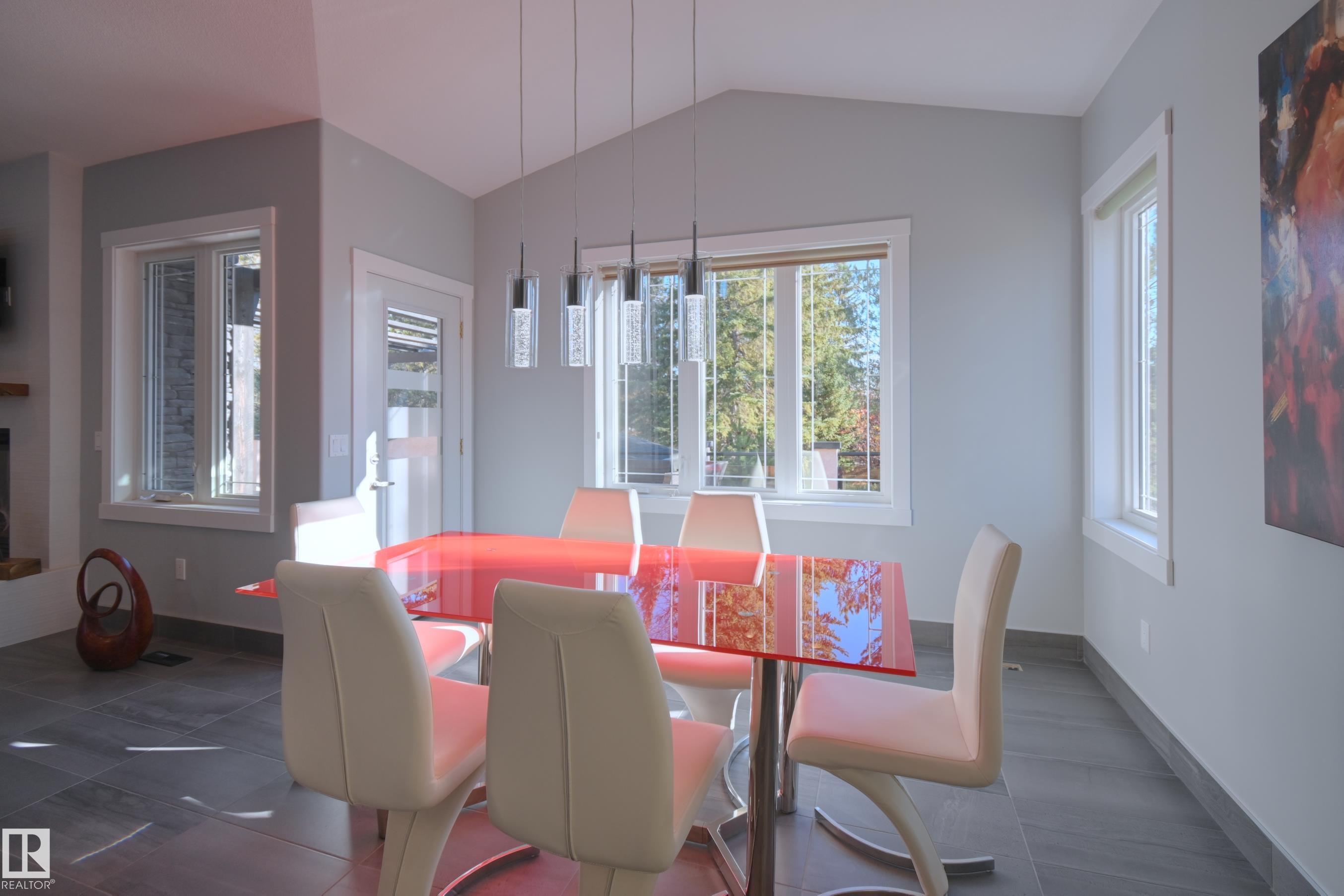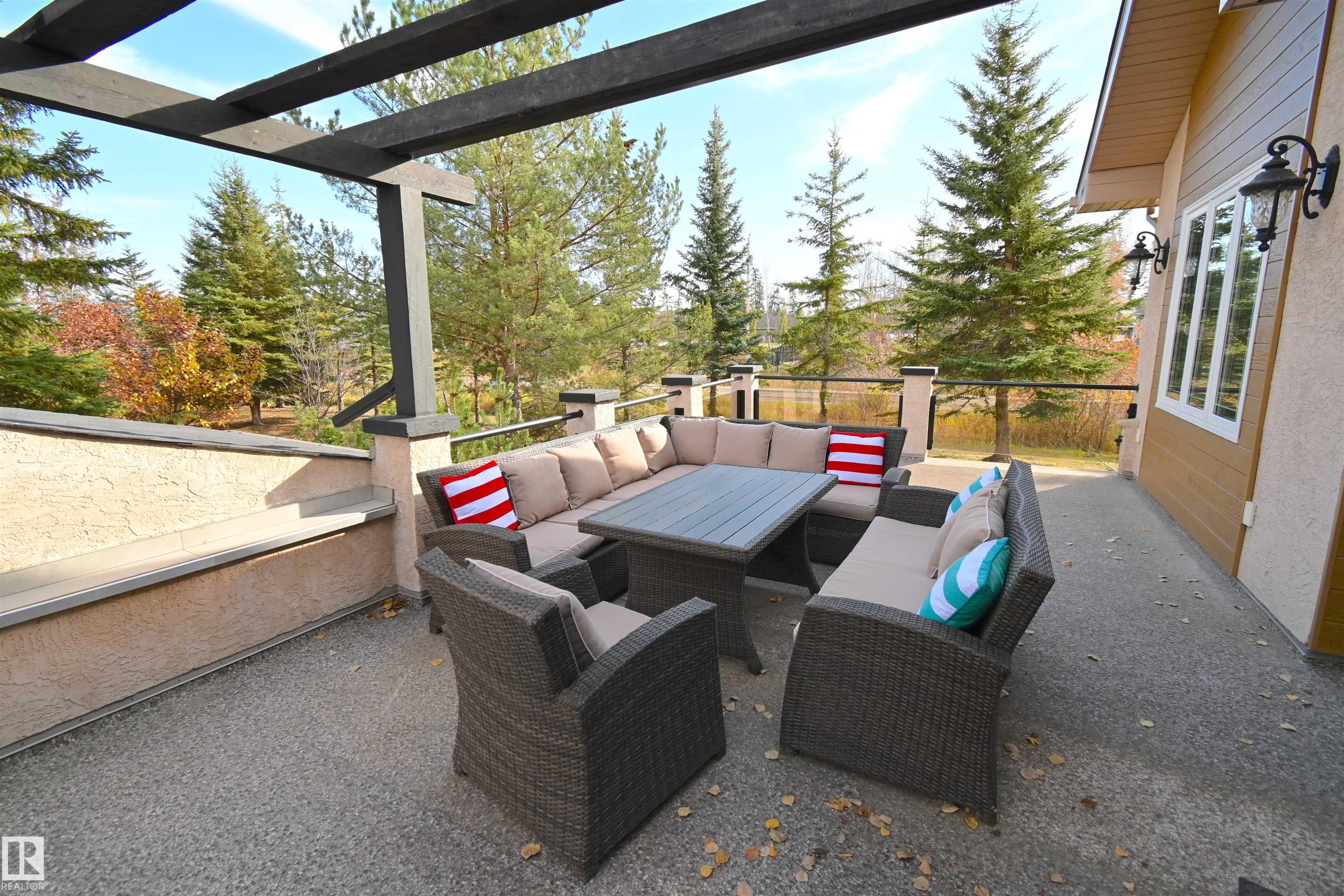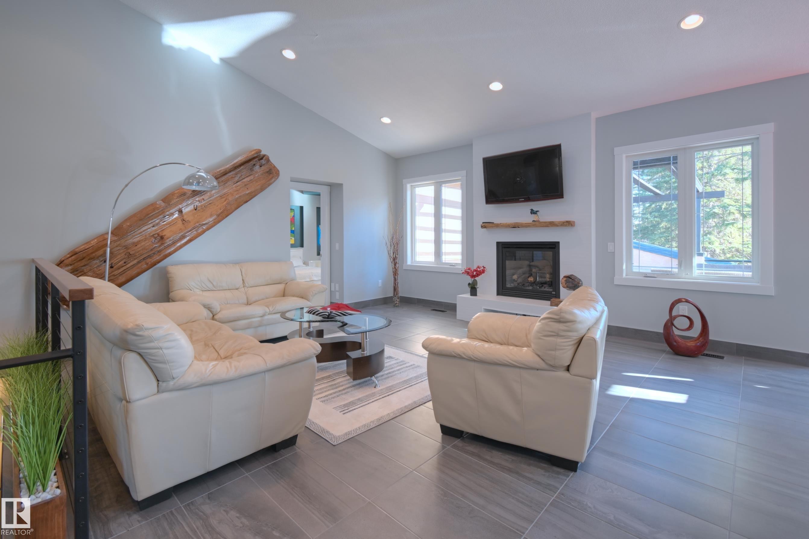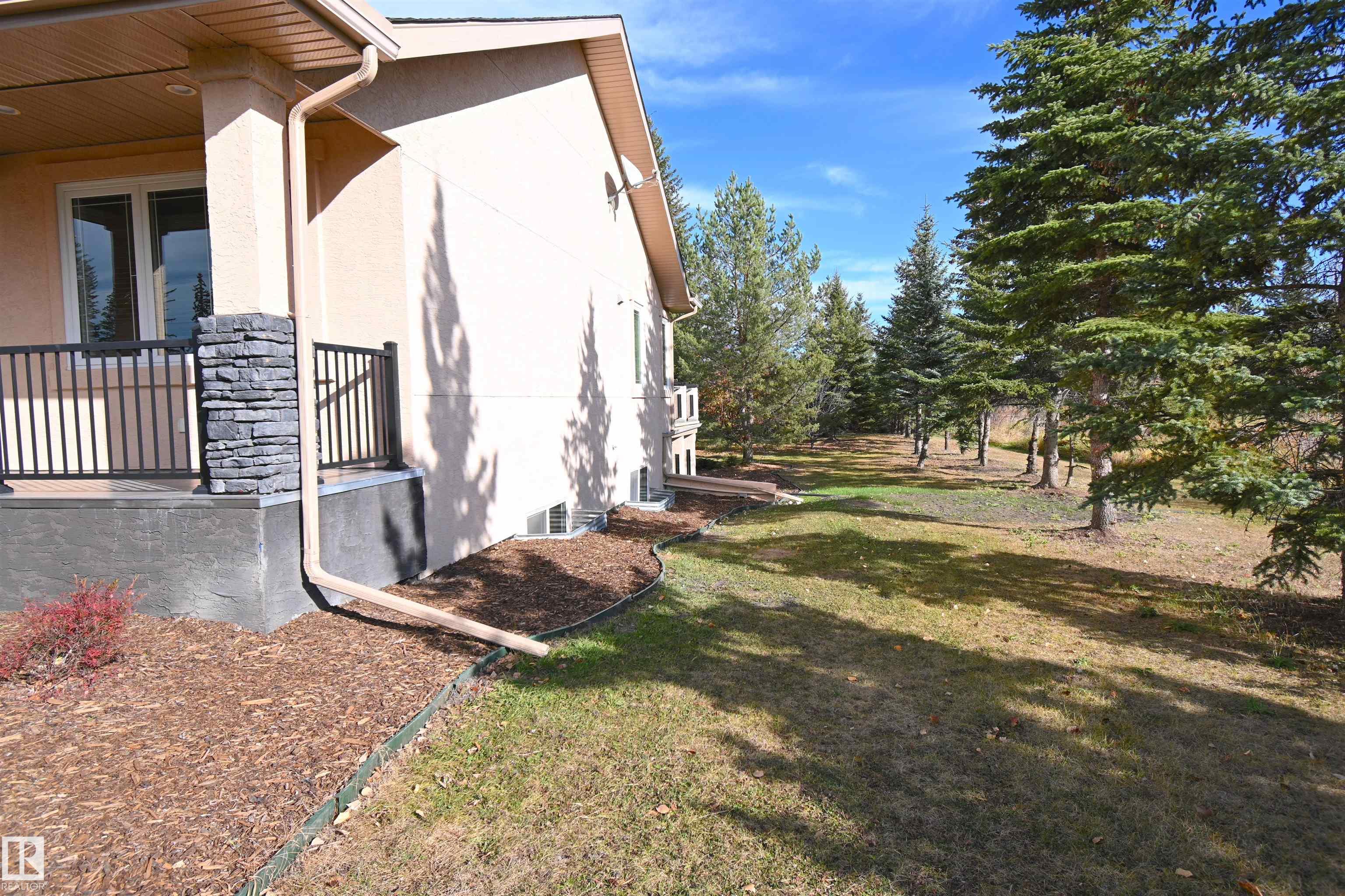 Exceptional Executive Acreage in Prestigious Atim Creek! Just minutes North of Town, this 5-bed + den custom-built bungalow has been beautifully renovated. The updated kitchen features European cabinets, quartz counters, island & a huge new pantry. Ample natural light, a fireplace & vaulted ceilings add elegance to the open main living space. Large windows in the living and dining rooms offer a treed view of the property. The primary suite is HUGE, offering a gorgeous new 5-pc ensuite, walk-in closet, fireplace and deck access. Two additional beds, den, laundry & dog wash complete the main floor. The finished lower level has a family/games room with fireplace and wet bar, 4th & 5th beds (both with ensuites), media room and three more bathrooms. The huge deck is perfect for backyard entertaining, and the lower level walks out to a large, sheltered patio. Gather around the fire pit in the private, treed yard. Parking is never a problem thanks to the oversized heated triple garage. Just 12 min to Edmonton!