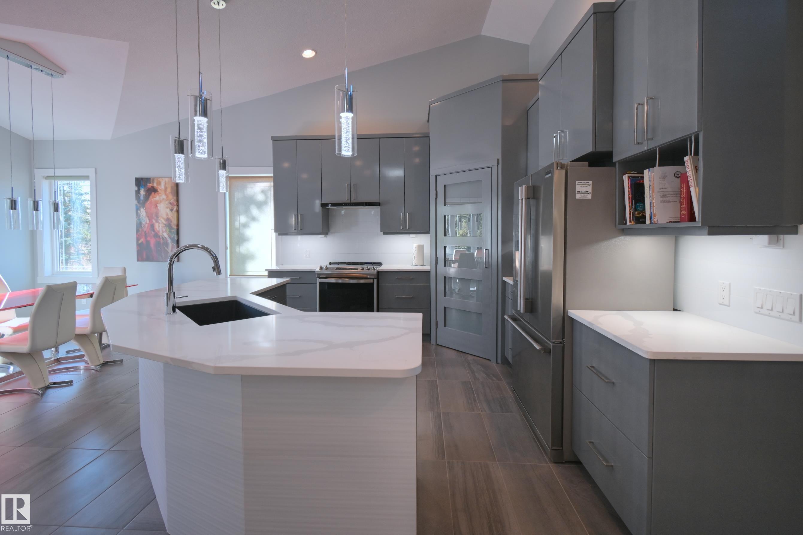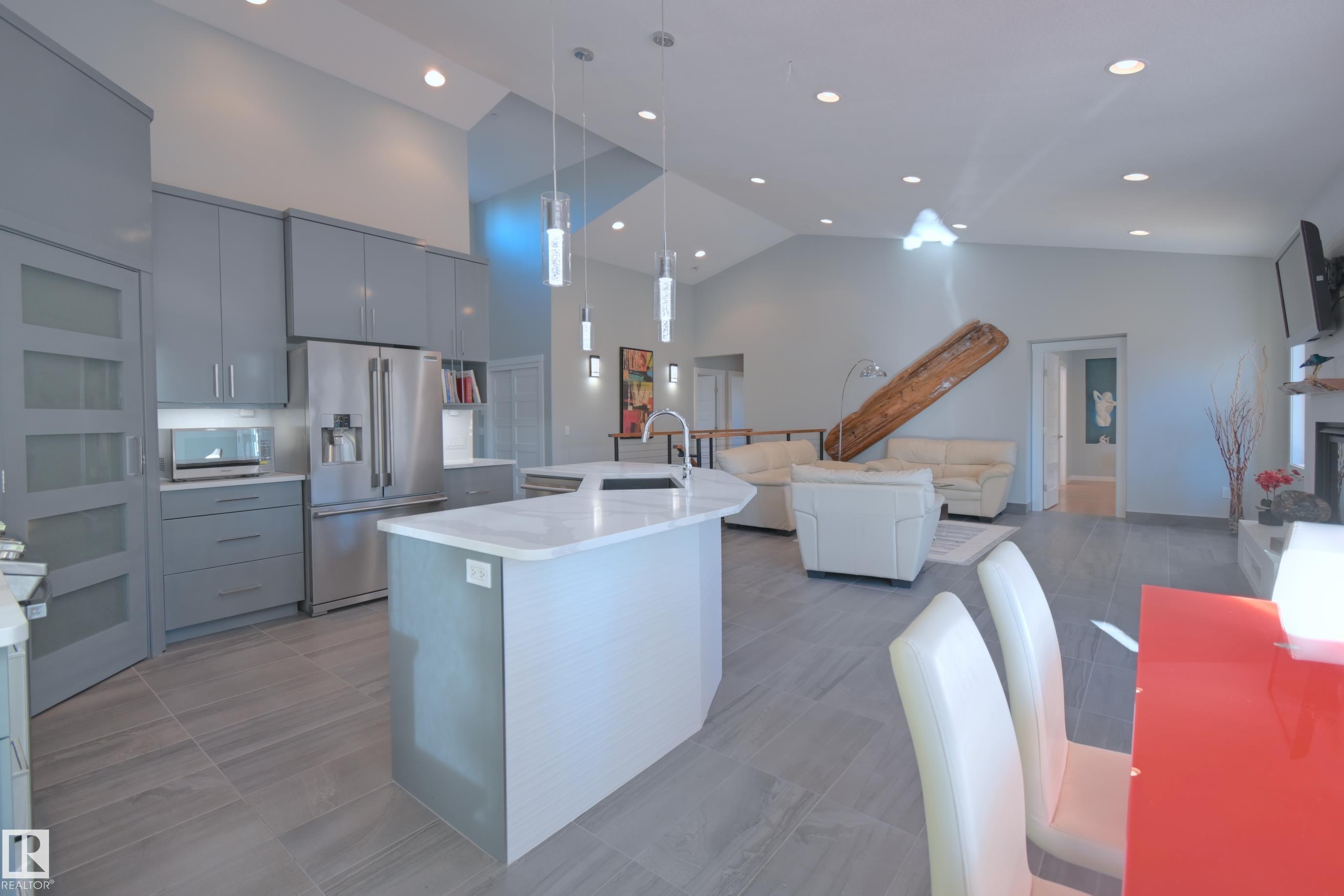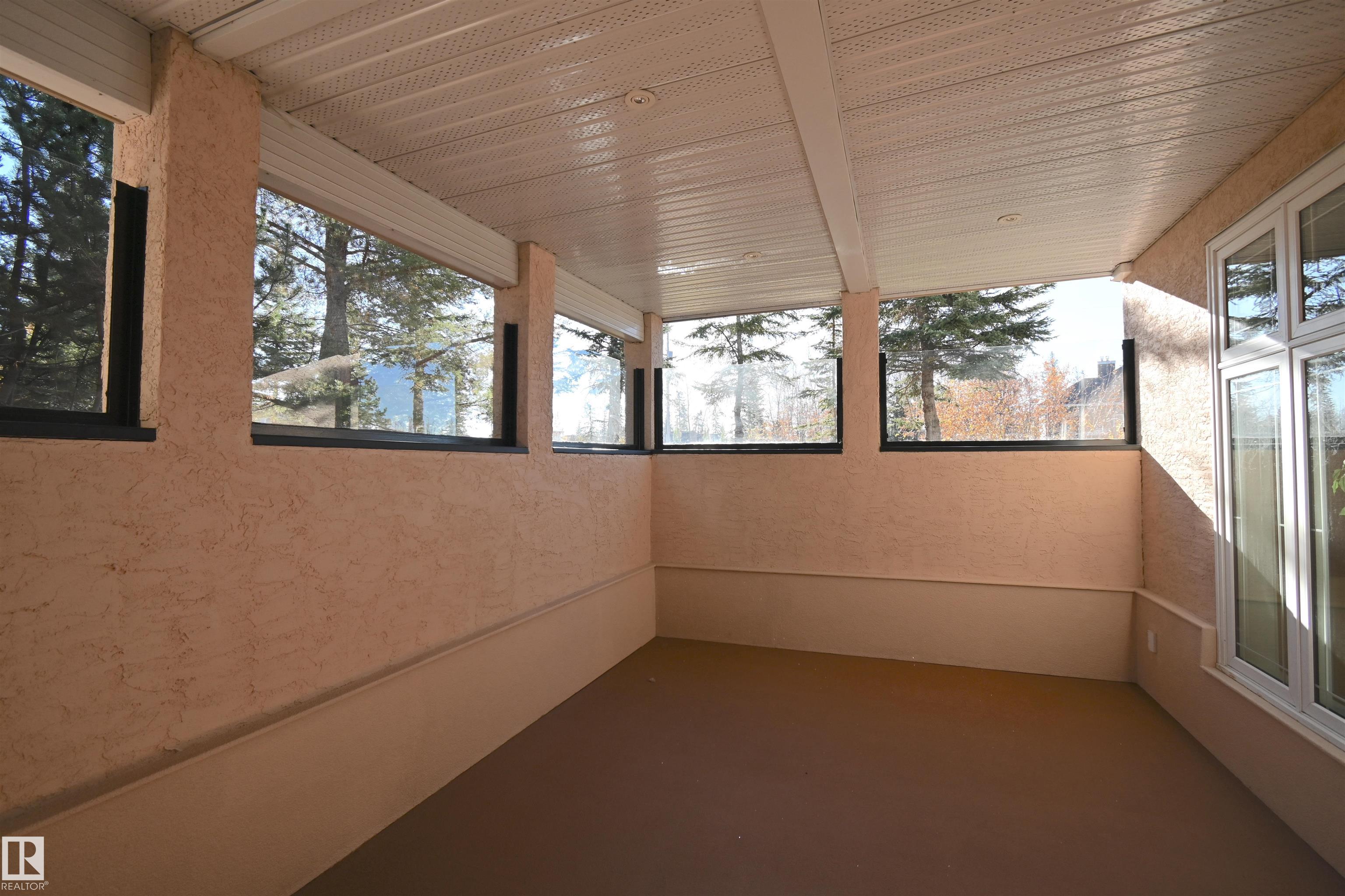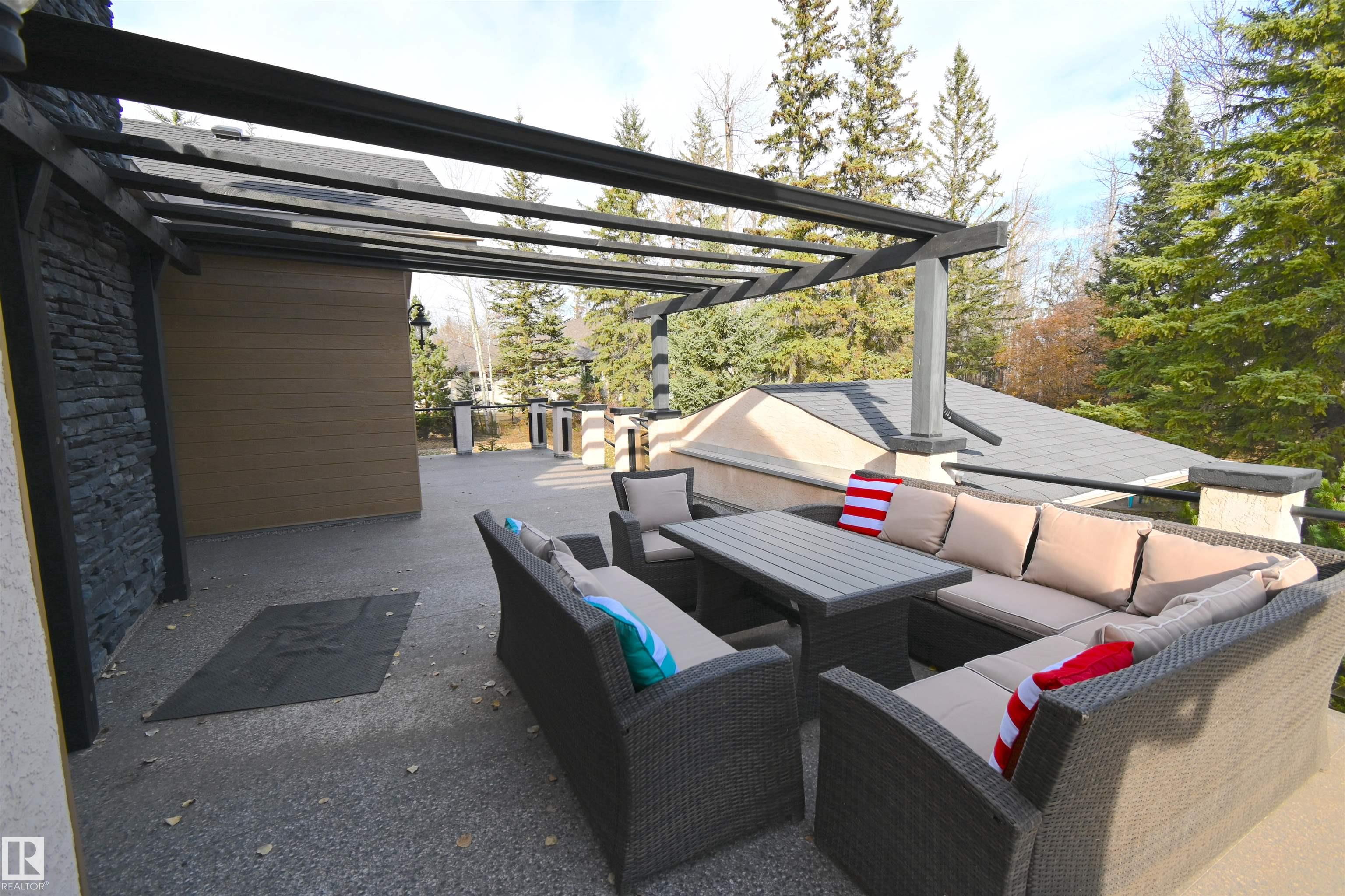 Exceptional Executive Acreage in Prestigious Atim Creek! Just minutes North of Town, this 5-bed + den custom-built bungalow has been beautifully renovated. The updated kitchen features European cabinets, quartz counters, island & a huge new pantry. Ample natural light, a fireplace & vaulted ceilings add elegance to the open main living space. Large windows in the living and dining rooms offer a treed view of the property. The primary suite is HUGE, offering a gorgeous new 5-pc ensuite, walk-in closet, fireplace and deck access. Two additional beds, den, laundry & dog wash complete the main floor. The finished lower level has a family/games room with fireplace and wet bar, 4th & 5th beds (both with ensuites), media room and three more bathrooms. The huge deck is perfect for backyard entertaining, and the lower level walks out to a large, sheltered patio. Gather around the fire pit in the private, treed yard. Parking is never a problem thanks to the oversized heated triple garage. Just 12 min to Edmonton!