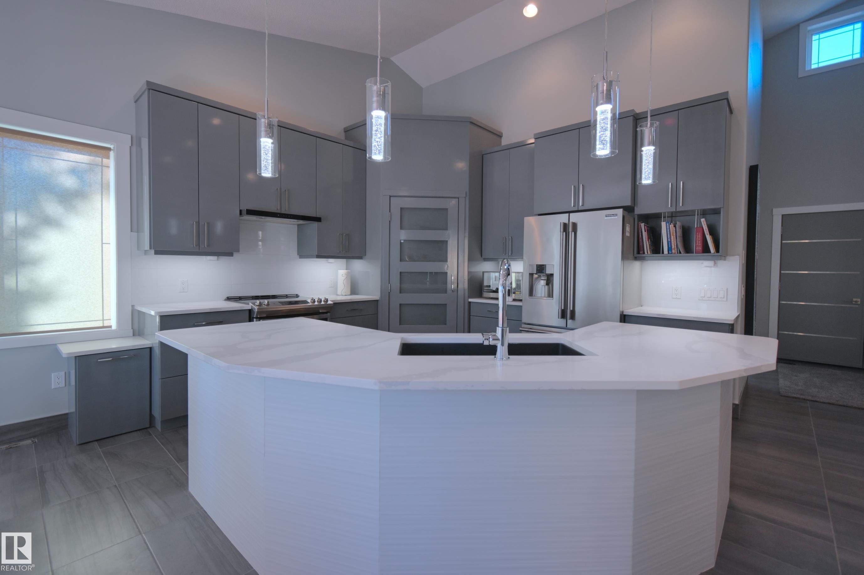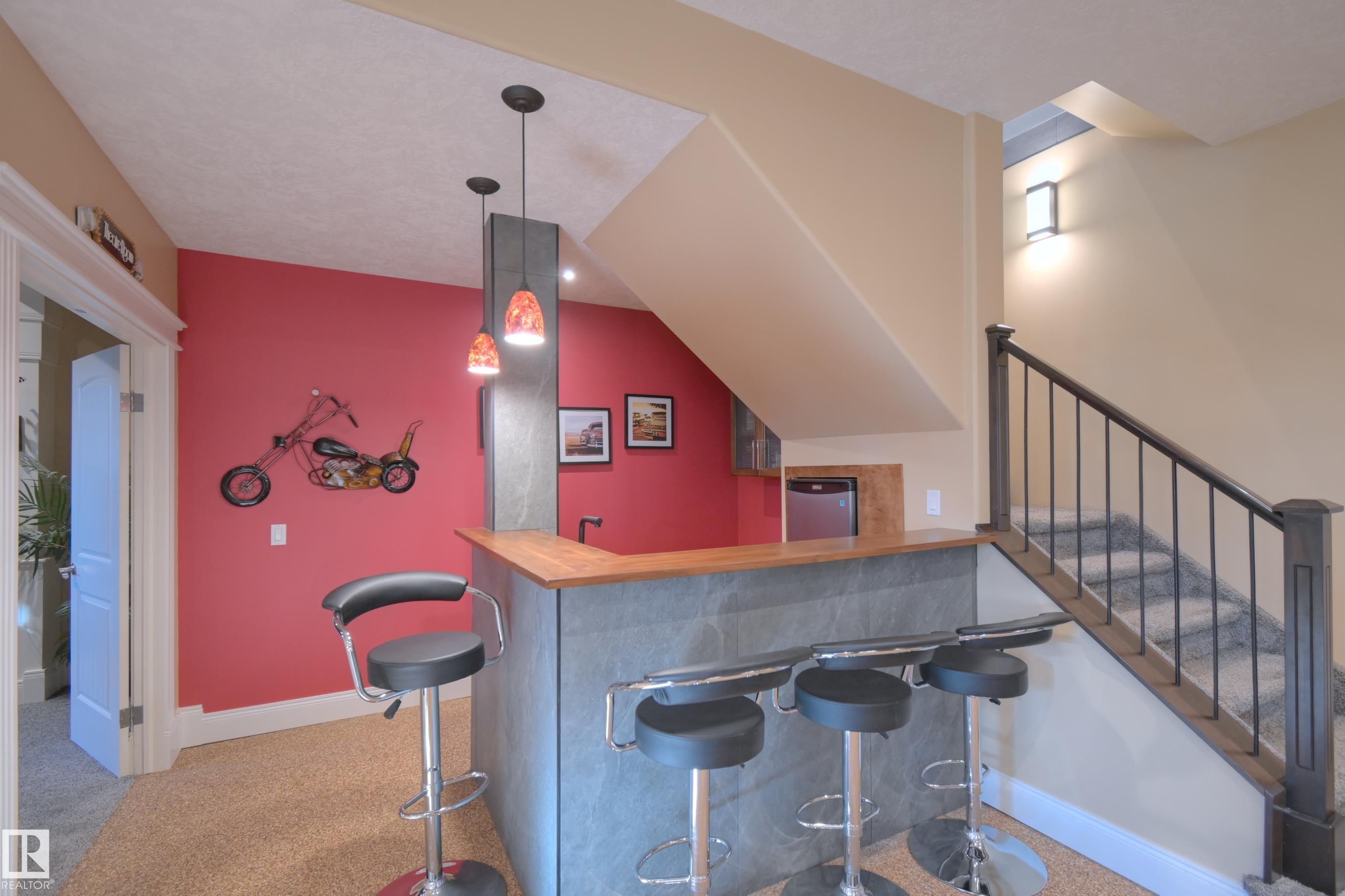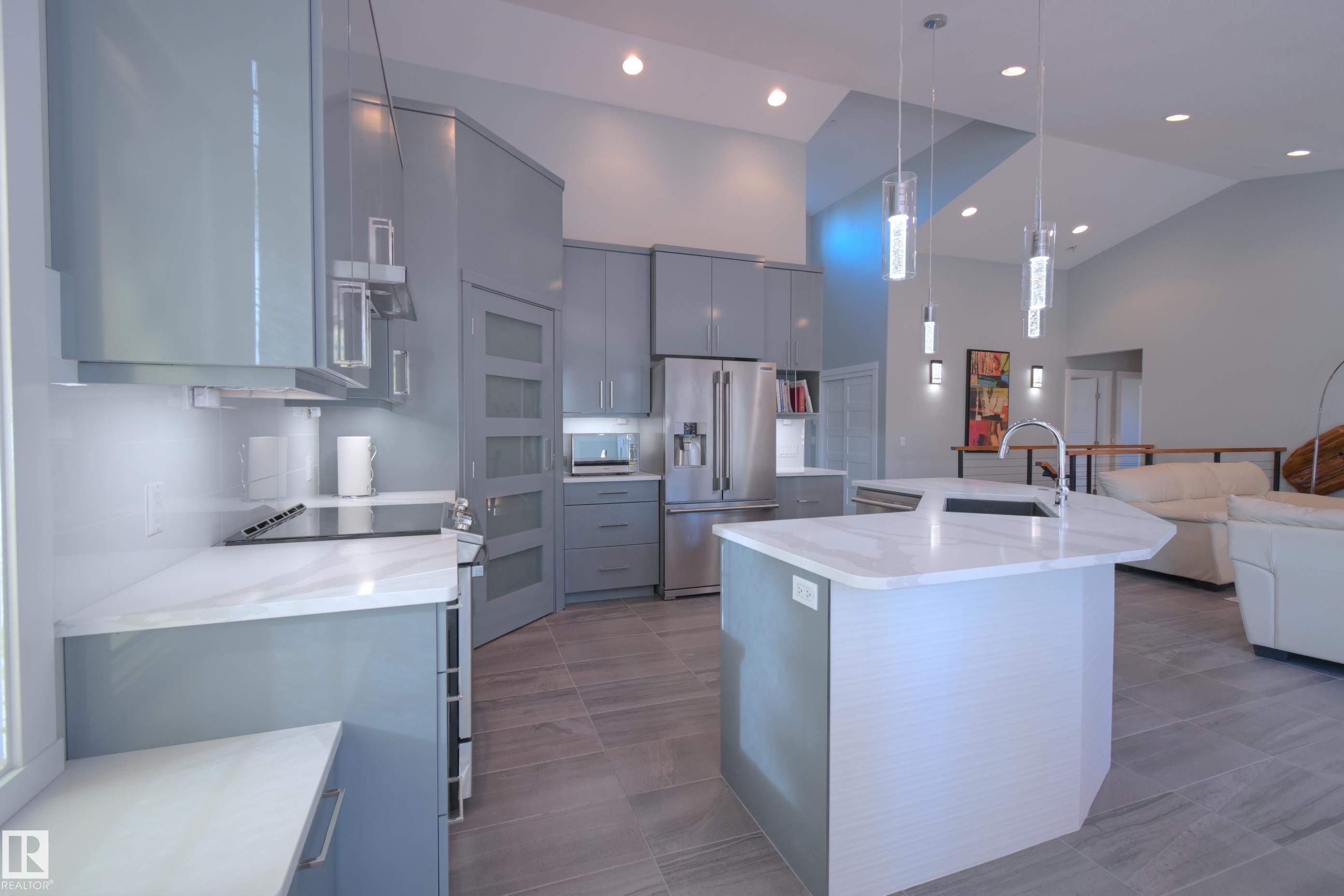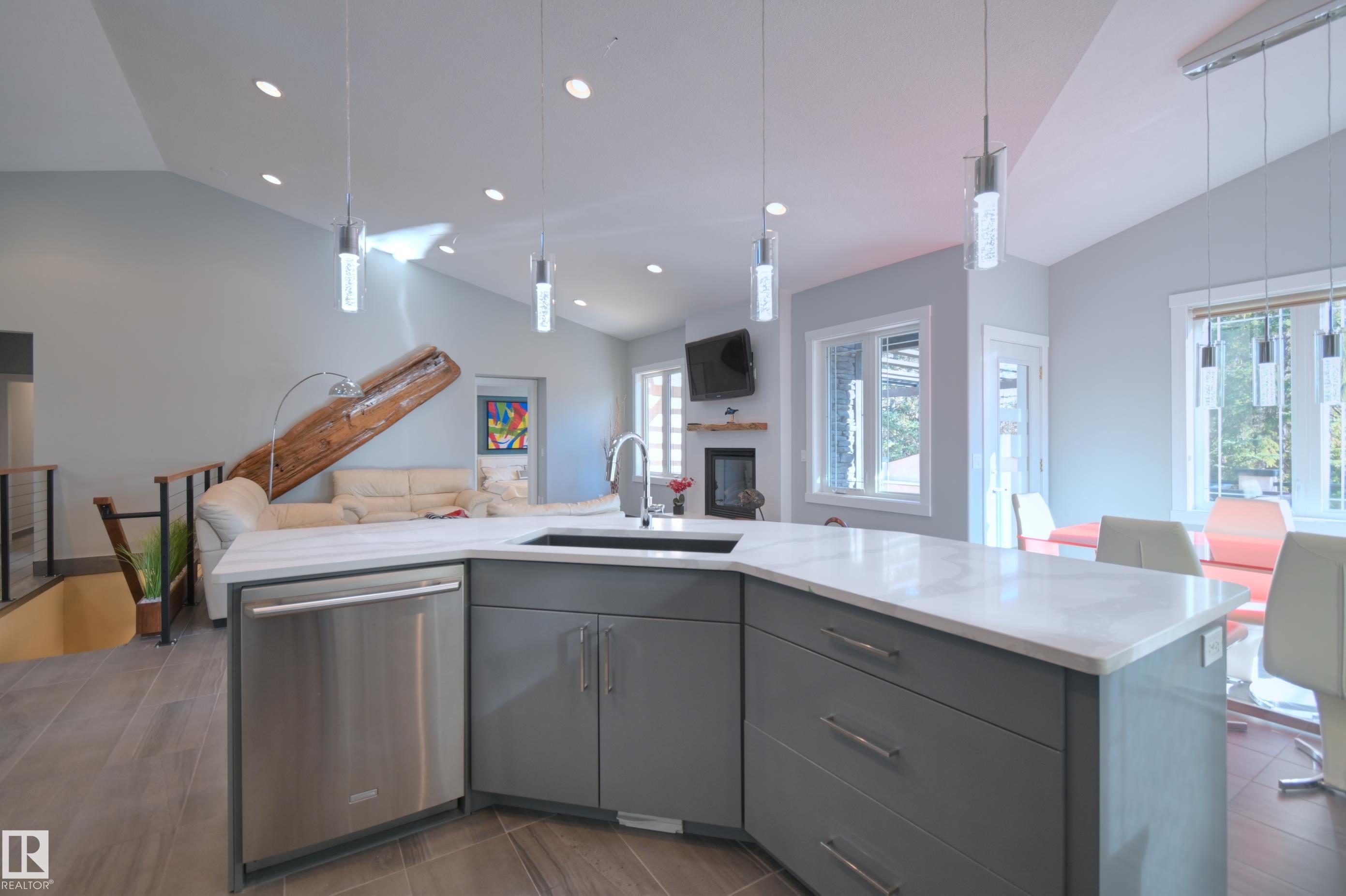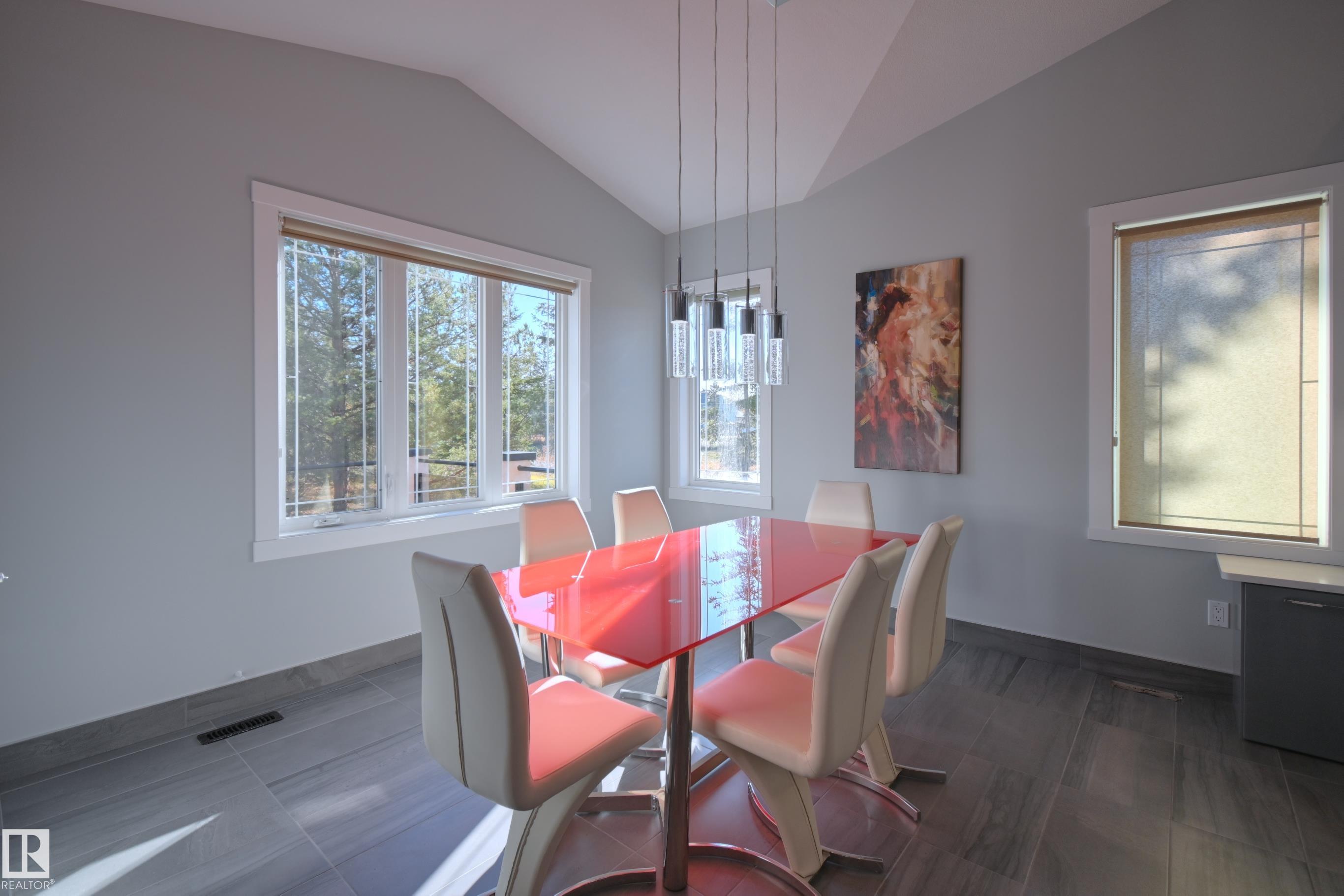 Exceptional Executive Acreage in Prestigious Atim Creek! Just minutes North of Town, this 5-bed + den custom-built bungalow has been beautifully renovated. The updated kitchen features European cabinets, quartz counters, island & a huge new pantry. Ample natural light, a fireplace & vaulted ceilings add elegance to the open main living space. Large windows in the living and dining rooms offer a treed view of the property. The primary suite is HUGE, offering a gorgeous new 5-pc ensuite, walk-in closet, fireplace and deck access. Two additional beds, den, laundry & dog wash complete the main floor. The finished lower level has a family/games room with fireplace and wet bar, 4th & 5th beds (both with ensuites), media room and three more bathrooms. The huge deck is perfect for backyard entertaining, and the lower level walks out to a large, sheltered patio. Gather around the fire pit in the private, treed yard. Parking is never a problem thanks to the oversized heated triple garage. Just 12 min to Edmonton!
