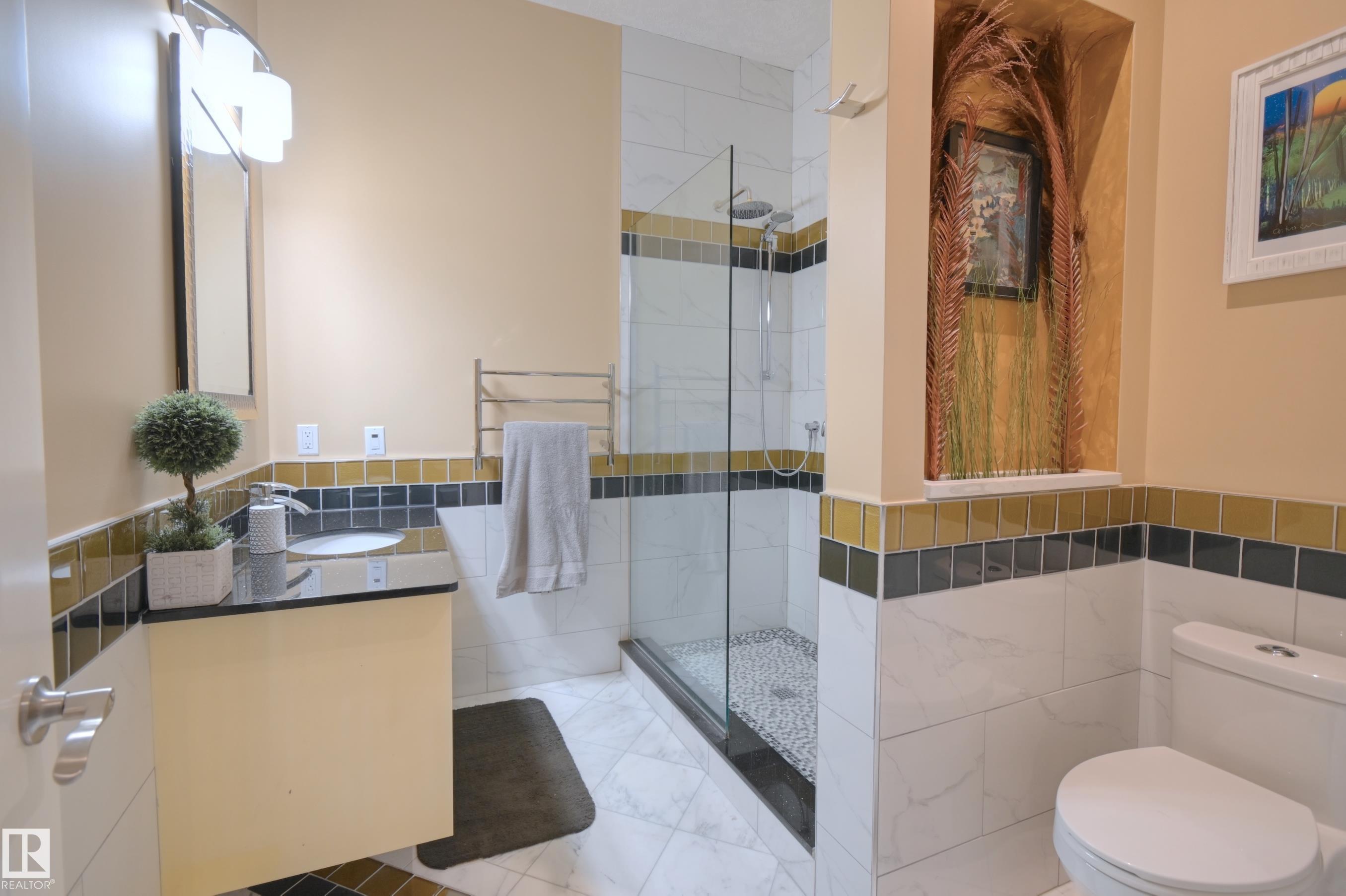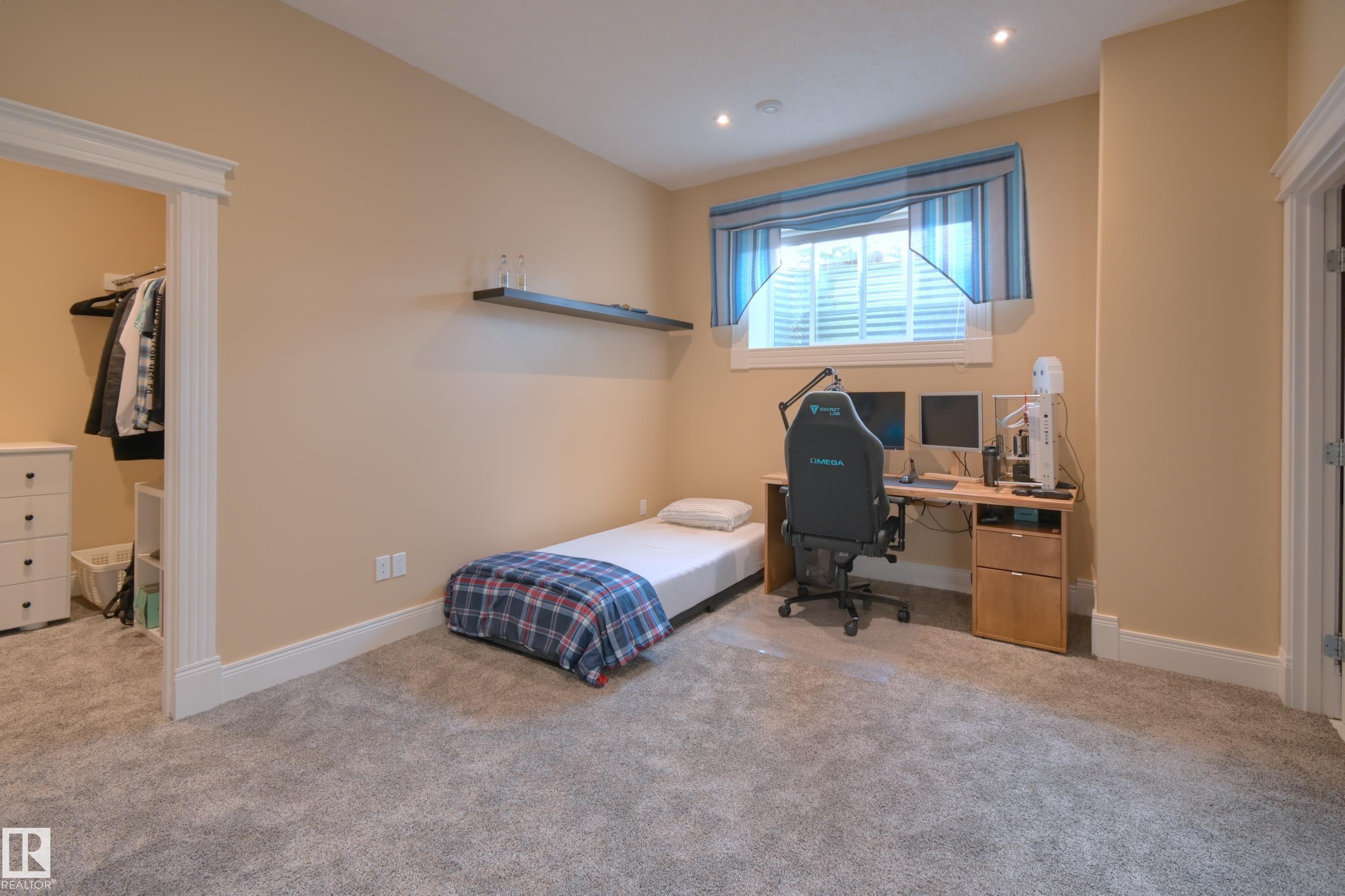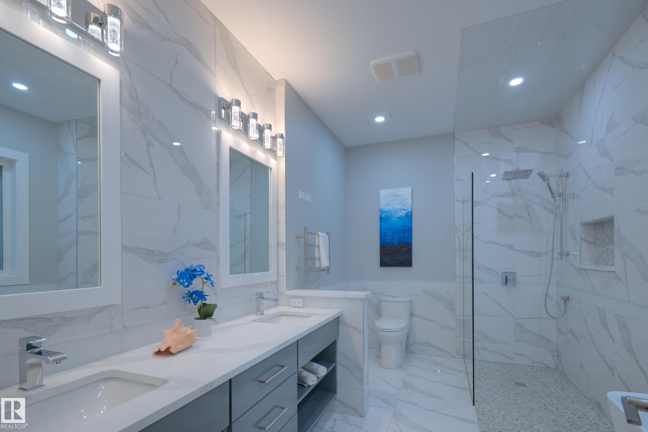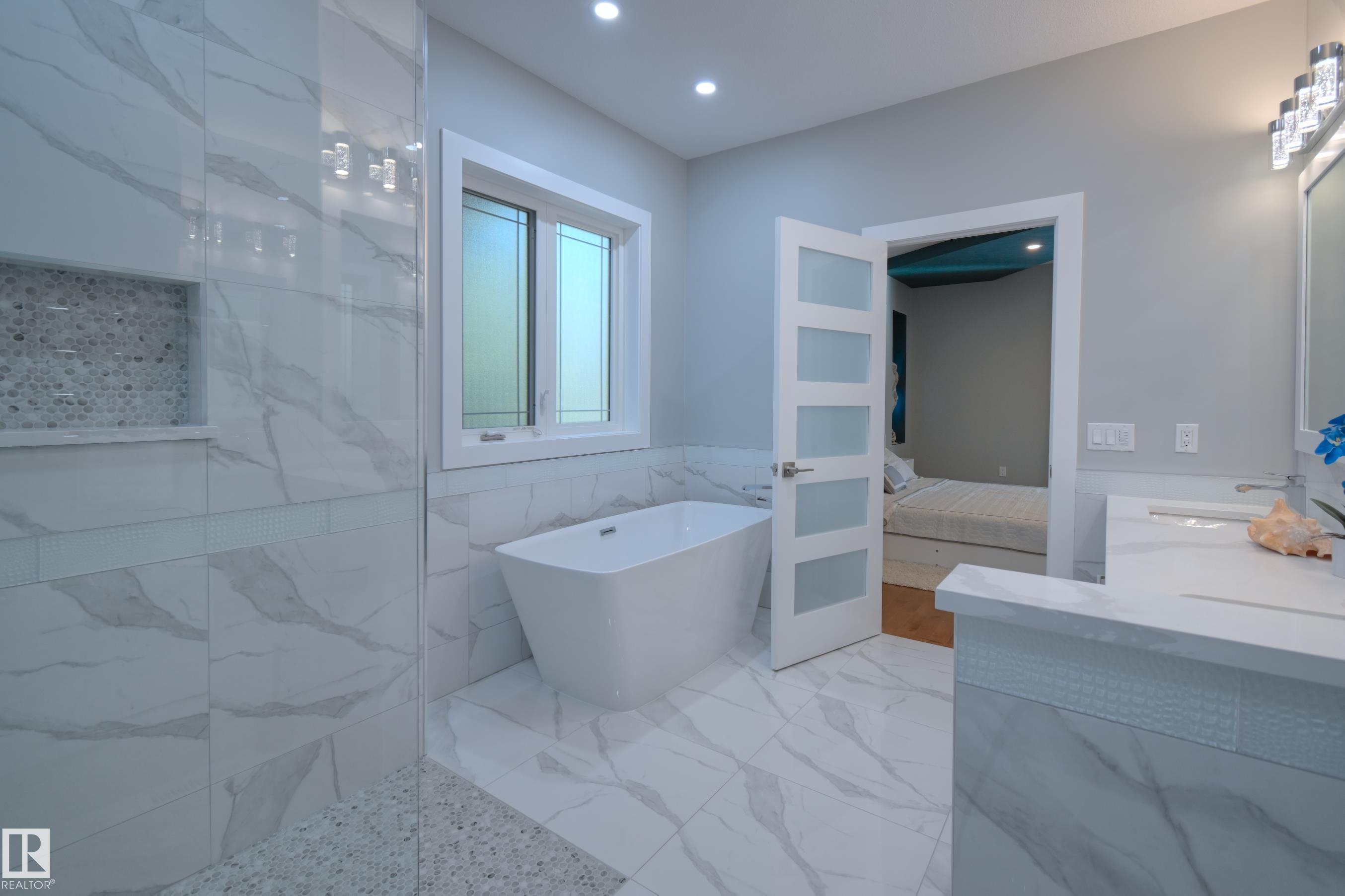 Exceptional Executive Acreage in Prestigious Atim Creek! Just minutes North of Town, this 5-bed + den custom-built bungalow has been beautifully renovated. The updated kitchen features European cabinets, quartz counters, island & a huge new pantry. Ample natural light, a fireplace & vaulted ceilings add elegance to the open main living space. Large windows in the living and dining rooms offer a treed view of the property. The primary suite is HUGE, offering a gorgeous new 5-pc ensuite, walk-in closet, fireplace and deck access. Two additional beds, den, laundry & dog wash complete the main floor. The finished lower level has a family/games room with fireplace and wet bar, 4th & 5th beds (both with ensuites), media room and three more bathrooms. The huge deck is perfect for backyard entertaining, and the lower level walks out to a large, sheltered patio. Gather around the fire pit in the private, treed yard. Parking is never a problem thanks to the oversized heated triple garage. Just 12 min to Edmonton!