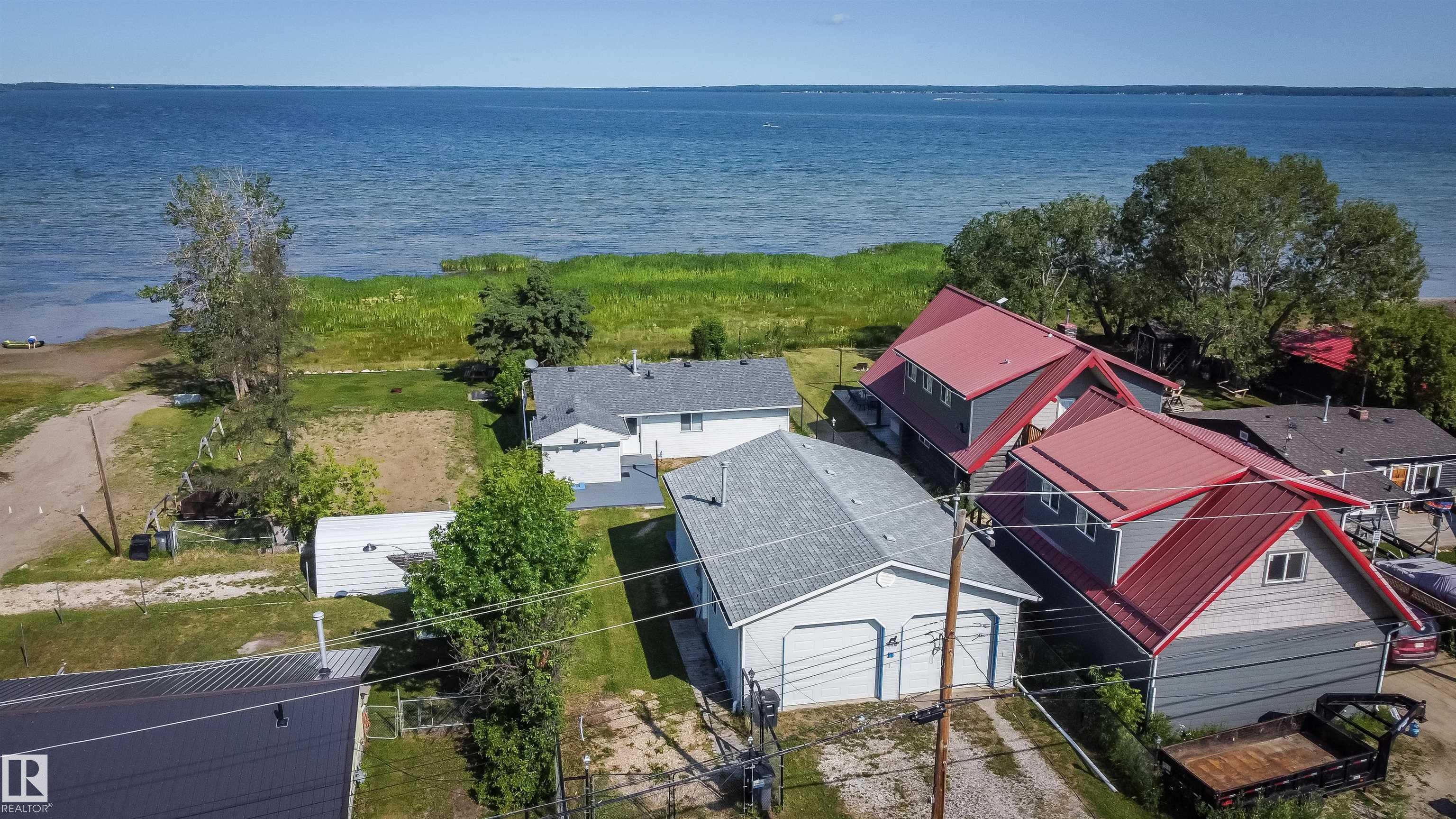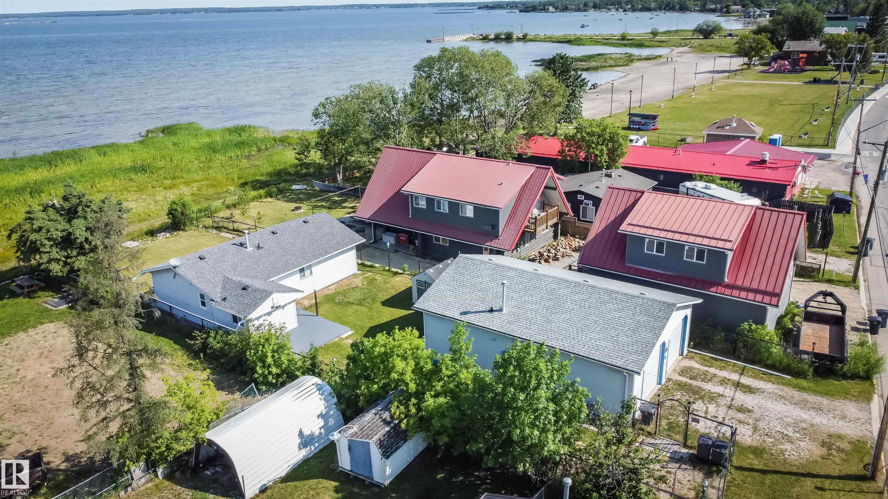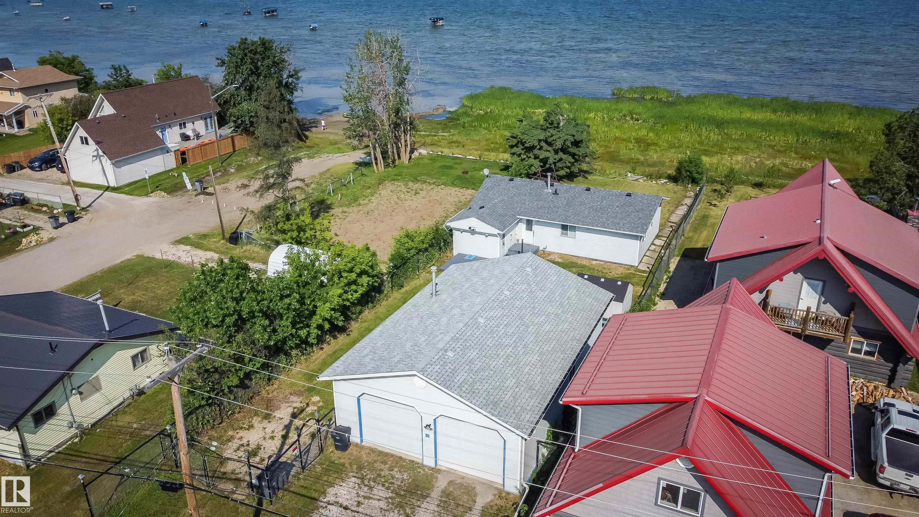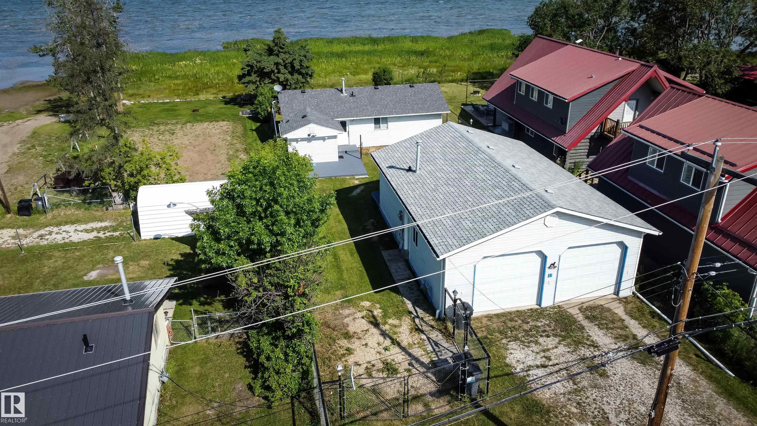WATERFRONT Home with SHOP and guest suite!! - Completely renovated down to the studs, this bungalow boasts newer siding, insulation, windows, kitchen, bath, flooring, drywall, and paint. The open floor plan features Corian countertops with ample space, plenty of cabinets, a jetted tub, and even a Pet Shower. Originally a two-bedroom, it can easily be converted back to two bedrooms. Included on the property is a 28' x 40' SHOP which houses a self-contained suite with a full bath and kitchenette. The shop is equipped with two 36" man doors, two 10' wide by 9' high doors, in-floor heating, and is wired for generator with 125 amp service. The lot, stretching 184 feet deep, offers a generously sized lakefront area, fully fenced and gated. Conveniently located near the main beach, yet nestled in the town center, the shop acts as a privacy barrier for the rest of the yard, ensuring a serene atmosphere. Located off the shores of Lac Ste Anne.