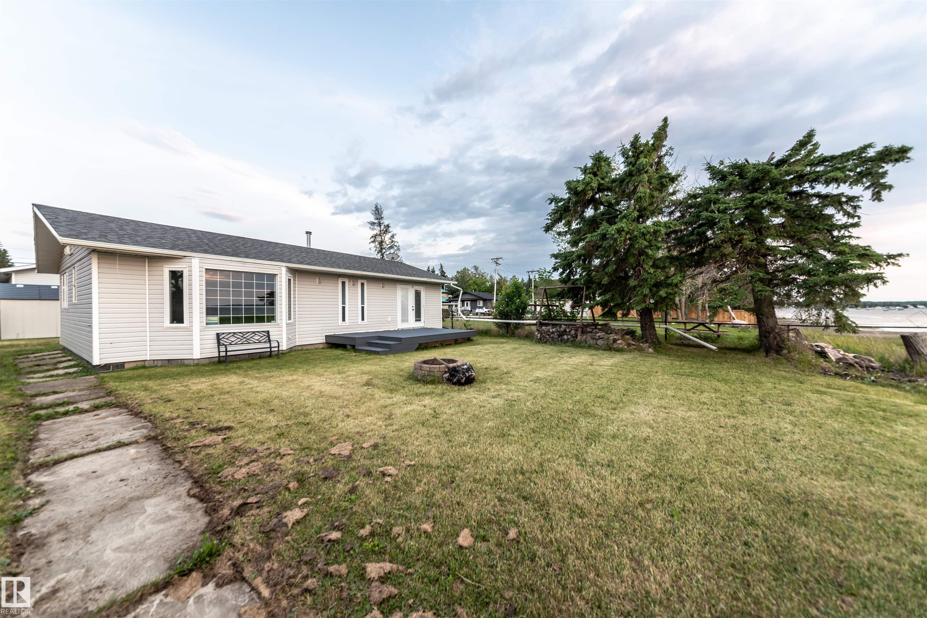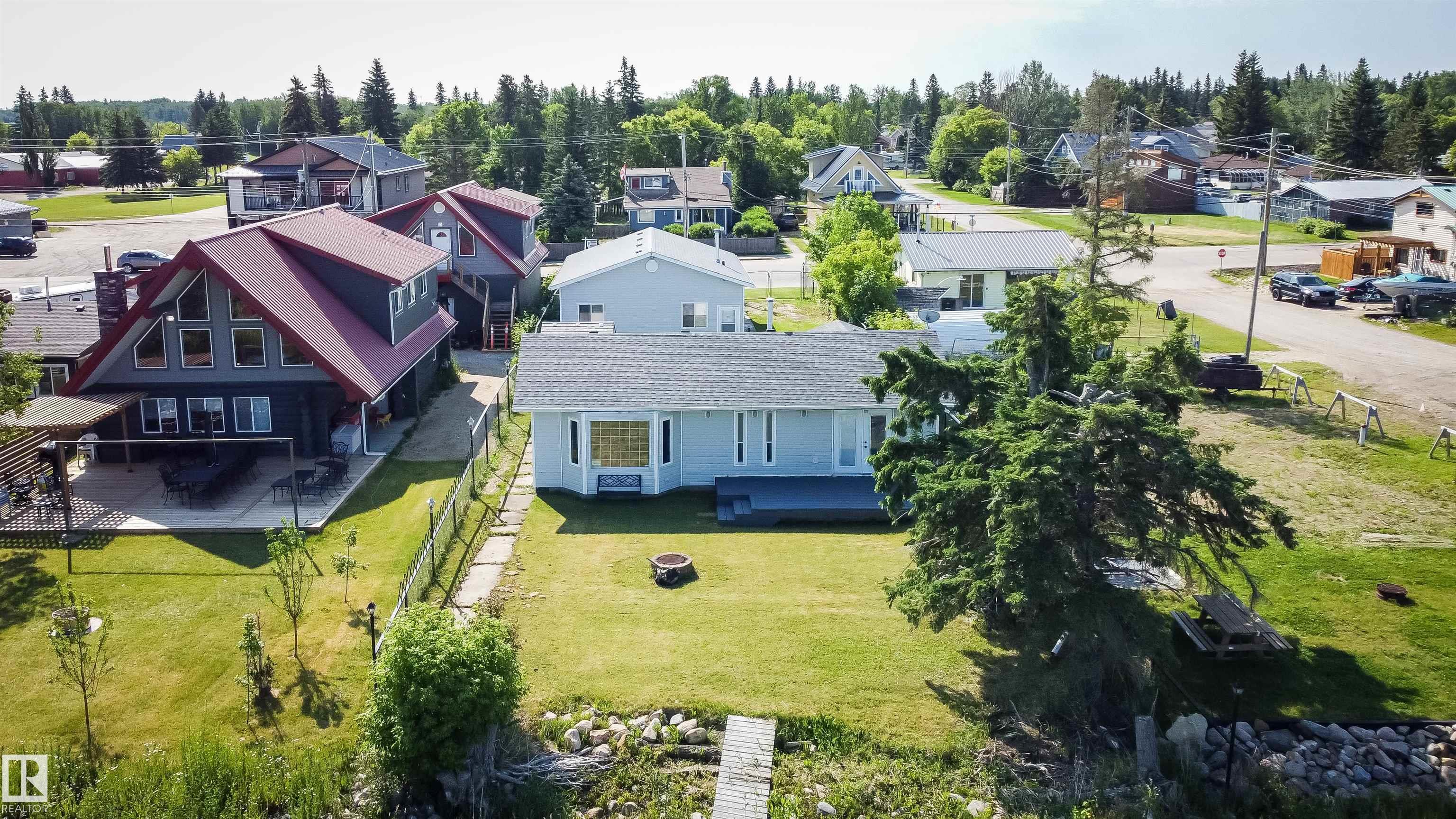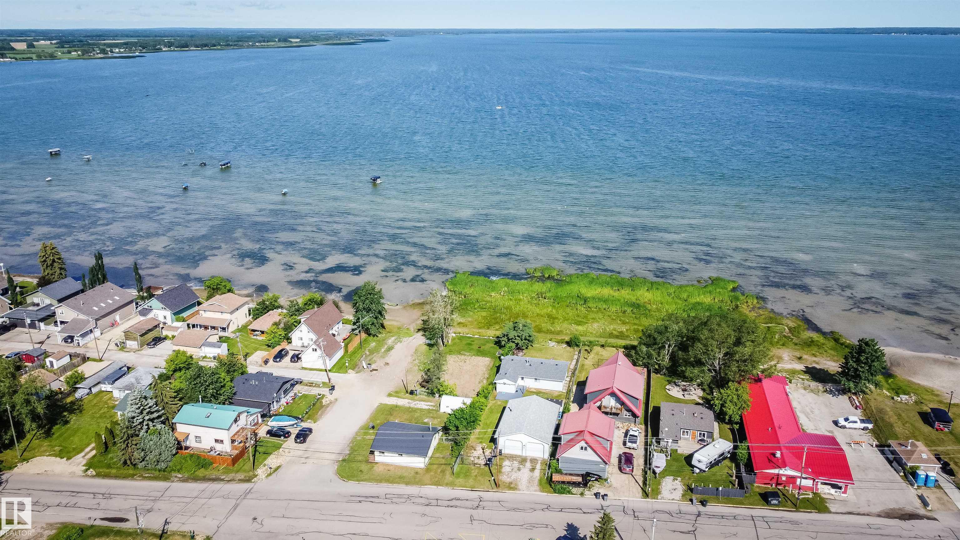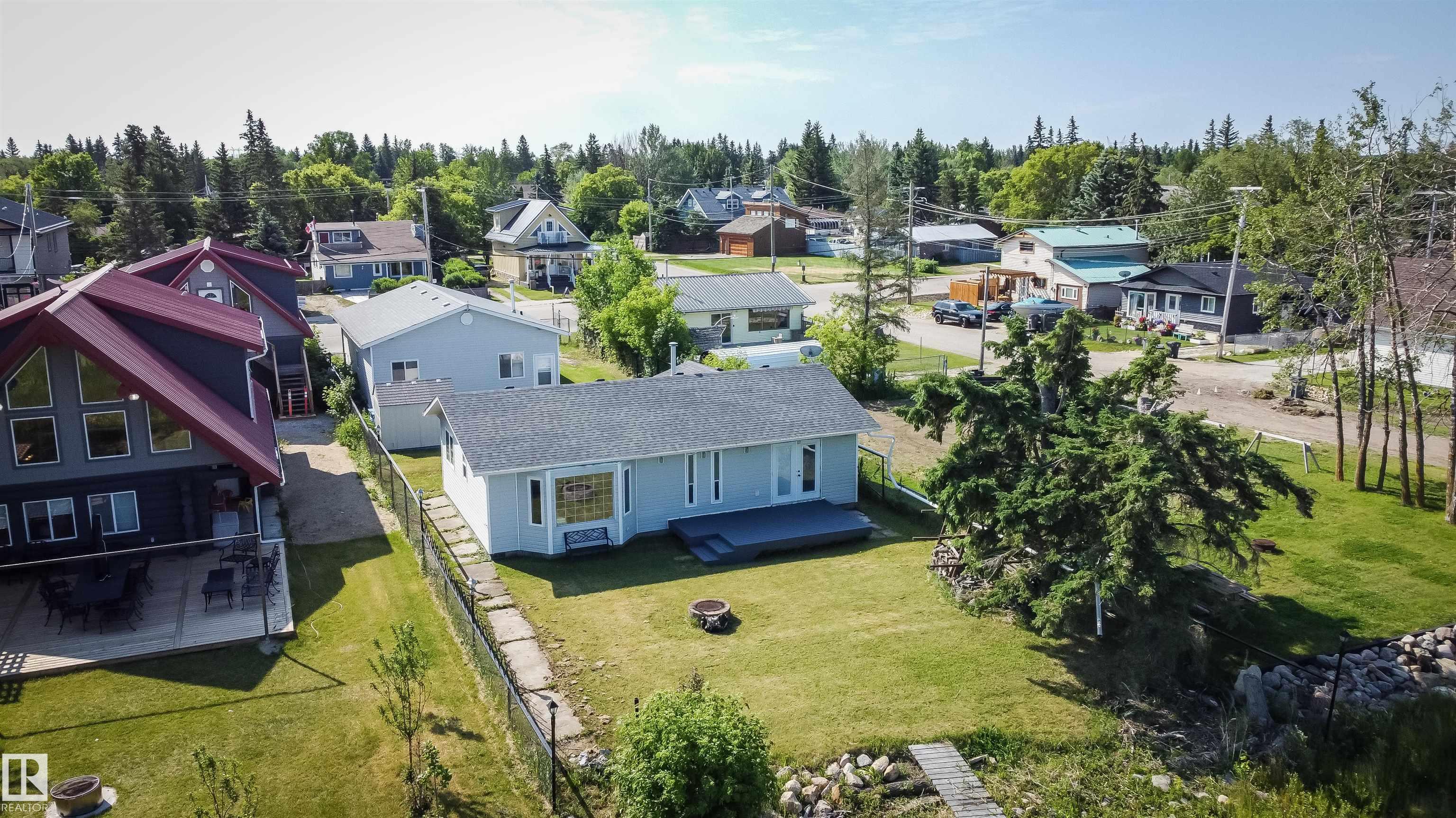 WATERFRONT Home with SHOP and guest suite!! - Completely renovated down to the studs, this bungalow boasts newer siding, insulation, windows, kitchen, bath, flooring, drywall, and paint. The open floor plan features Corian countertops with ample space, plenty of cabinets, a jetted tub, and even a Pet Shower. Originally a two-bedroom, it can easily be converted back to two bedrooms. Included on the property is a 28' x 40' SHOP which houses a self-contained suite with a full bath and kitchenette. The shop is equipped with two 36" man doors, two 10' wide by 9' high doors, in-floor heating, and is wired for generator with 125 amp service. The lot, stretching 184 feet deep, offers a generously sized lakefront area, fully fenced and gated. Conveniently located near the main beach, yet nestled in the town center, the shop acts as a privacy barrier for the rest of the yard, ensuring a serene atmosphere. Located off the shores of Lac Ste Anne.