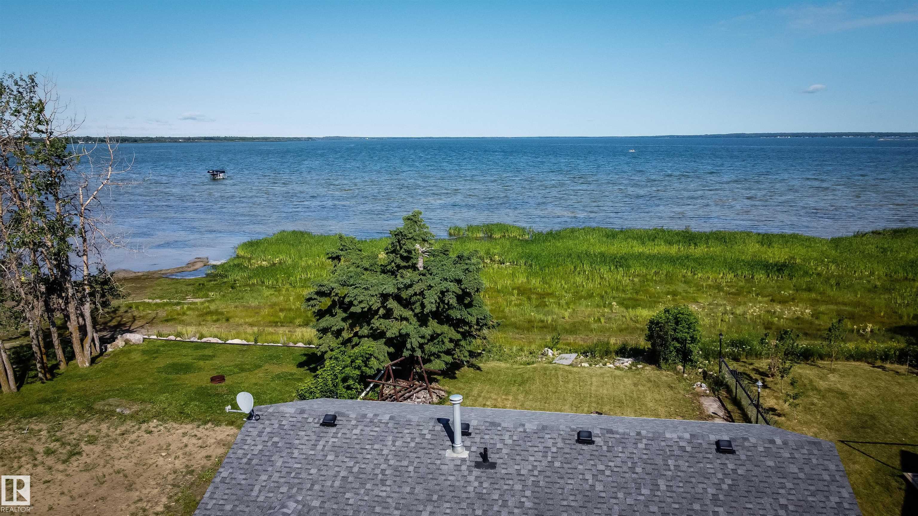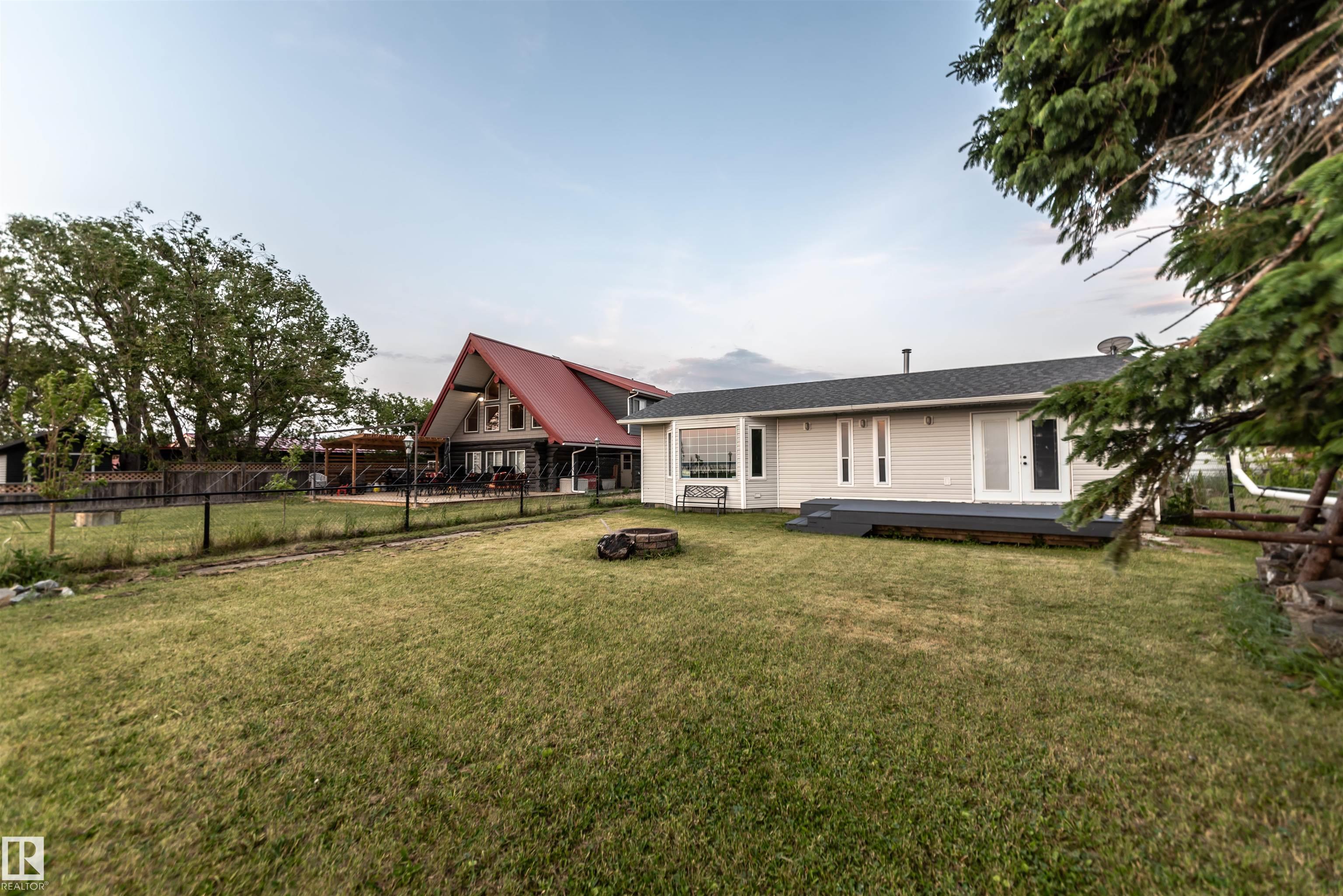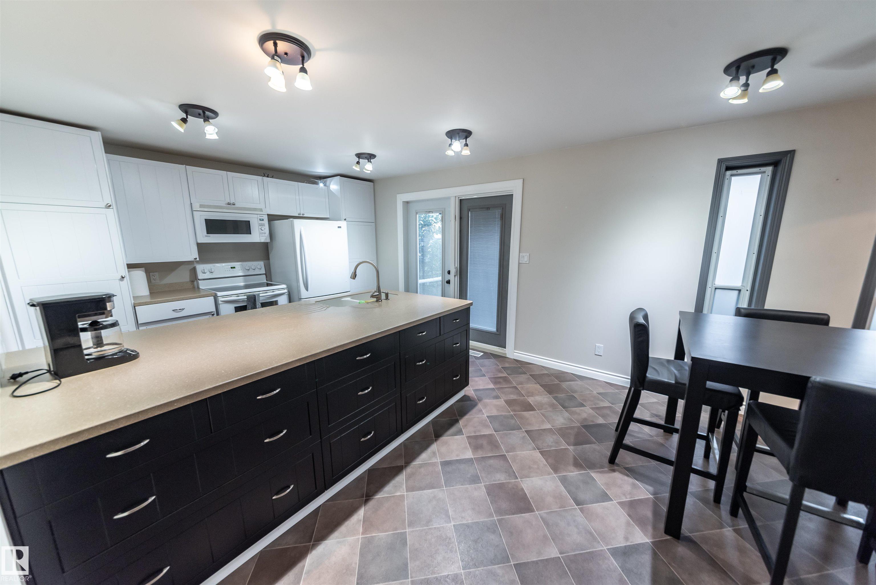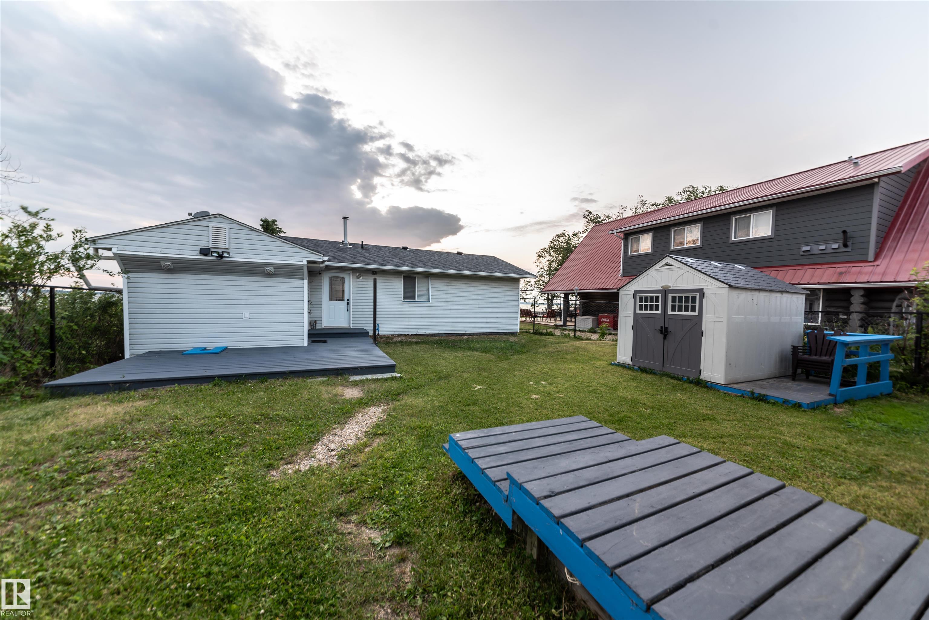 WATERFRONT Home with SHOP and guest suite!! - Completely renovated down to the studs, this bungalow boasts newer siding, insulation, windows, kitchen, bath, flooring, drywall, and paint. The open floor plan features Corian countertops with ample space, plenty of cabinets, a jetted tub, and even a Pet Shower. Originally a two-bedroom, it can easily be converted back to two bedrooms. Included on the property is a 28' x 40' SHOP which houses a self-contained suite with a full bath and kitchenette. The shop is equipped with two 36" man doors, two 10' wide by 9' high doors, in-floor heating, and is wired for generator with 125 amp service. The lot, stretching 184 feet deep, offers a generously sized lakefront area, fully fenced and gated. Conveniently located near the main beach, yet nestled in the town center, the shop acts as a privacy barrier for the rest of the yard, ensuring a serene atmosphere. Located off the shores of Lac Ste Anne.