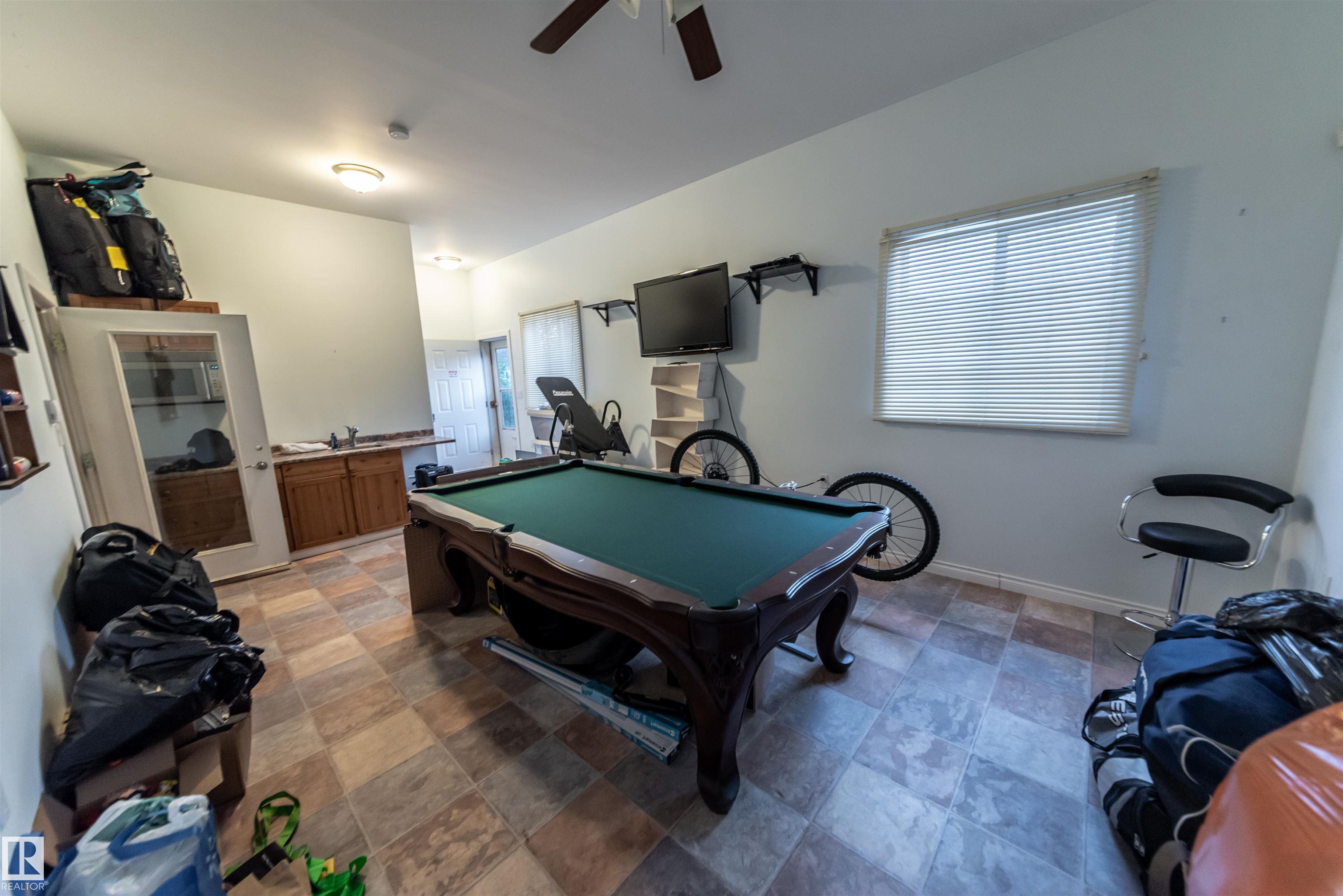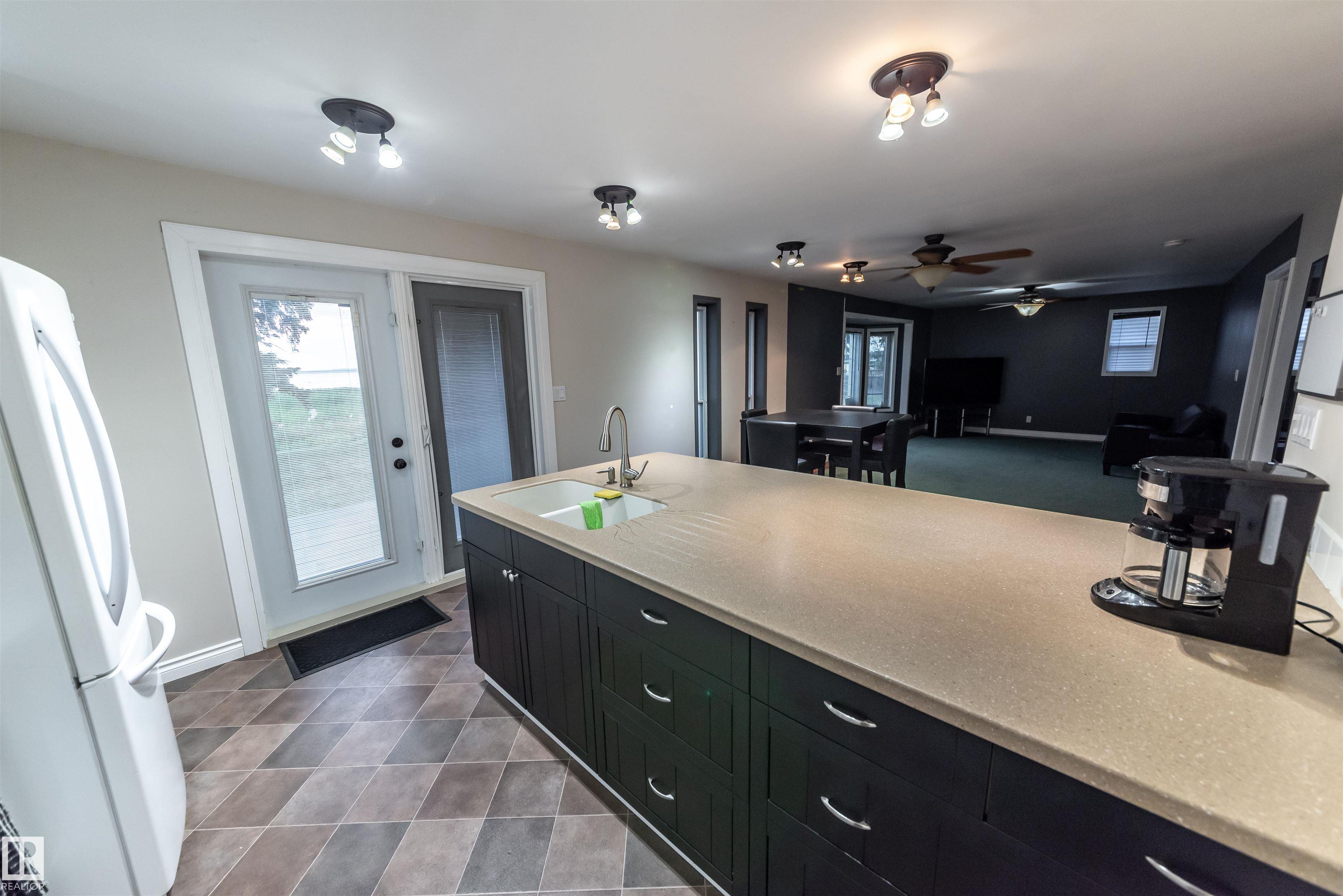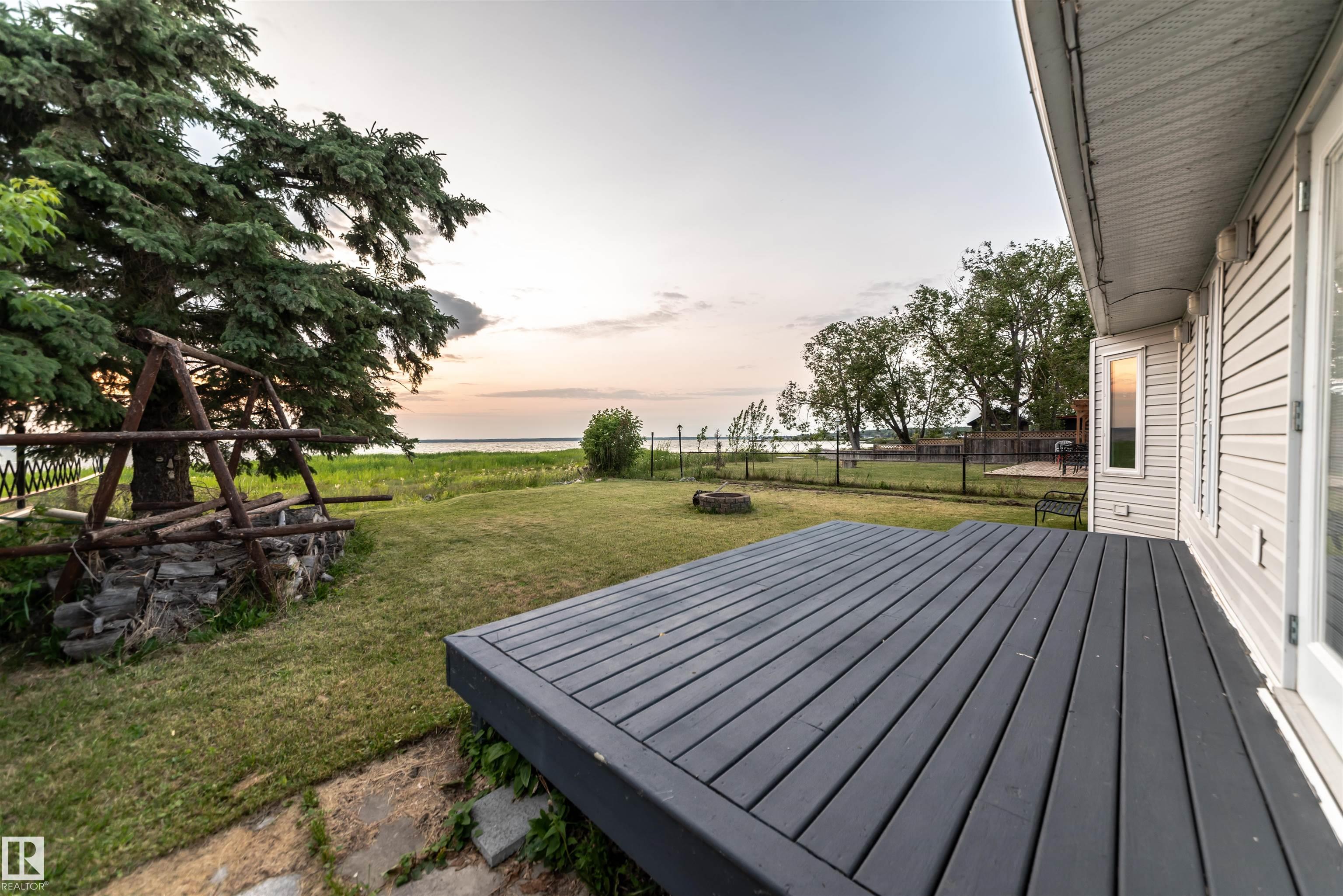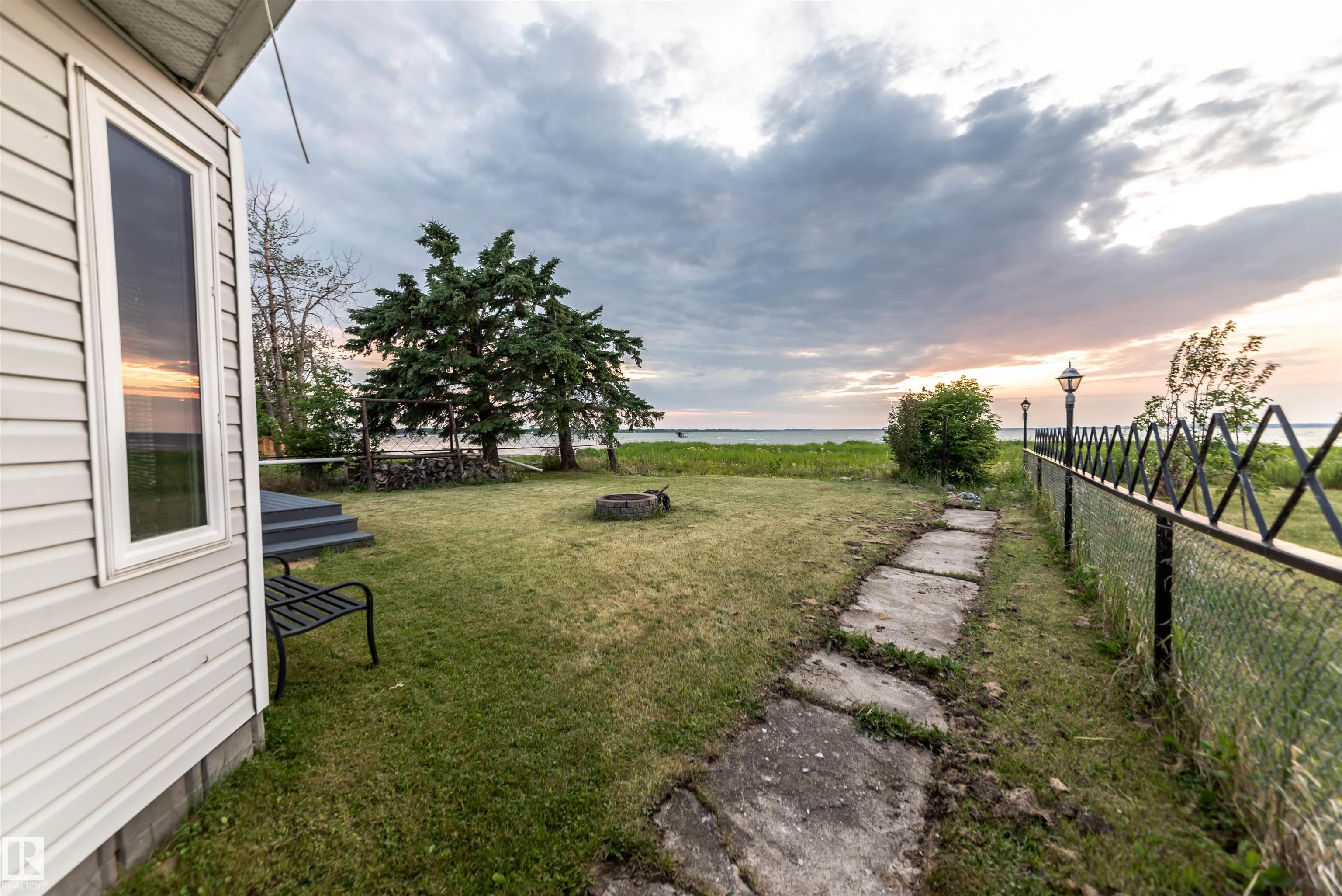 WATERFRONT Home with SHOP and guest suite!! - Completely renovated down to the studs, this bungalow boasts newer siding, insulation, windows, kitchen, bath, flooring, drywall, and paint. The open floor plan features Corian countertops with ample space, plenty of cabinets, a jetted tub, and even a Pet Shower. Originally a two-bedroom, it can easily be converted back to two bedrooms. Included on the property is a 28' x 40' SHOP which houses a self-contained suite with a full bath and kitchenette. The shop is equipped with two 36" man doors, two 10' wide by 9' high doors, in-floor heating, and is wired for generator with 125 amp service. The lot, stretching 184 feet deep, offers a generously sized lakefront area, fully fenced and gated. Conveniently located near the main beach, yet nestled in the town center, the shop acts as a privacy barrier for the rest of the yard, ensuring a serene atmosphere. Located off the shores of Lac Ste Anne.