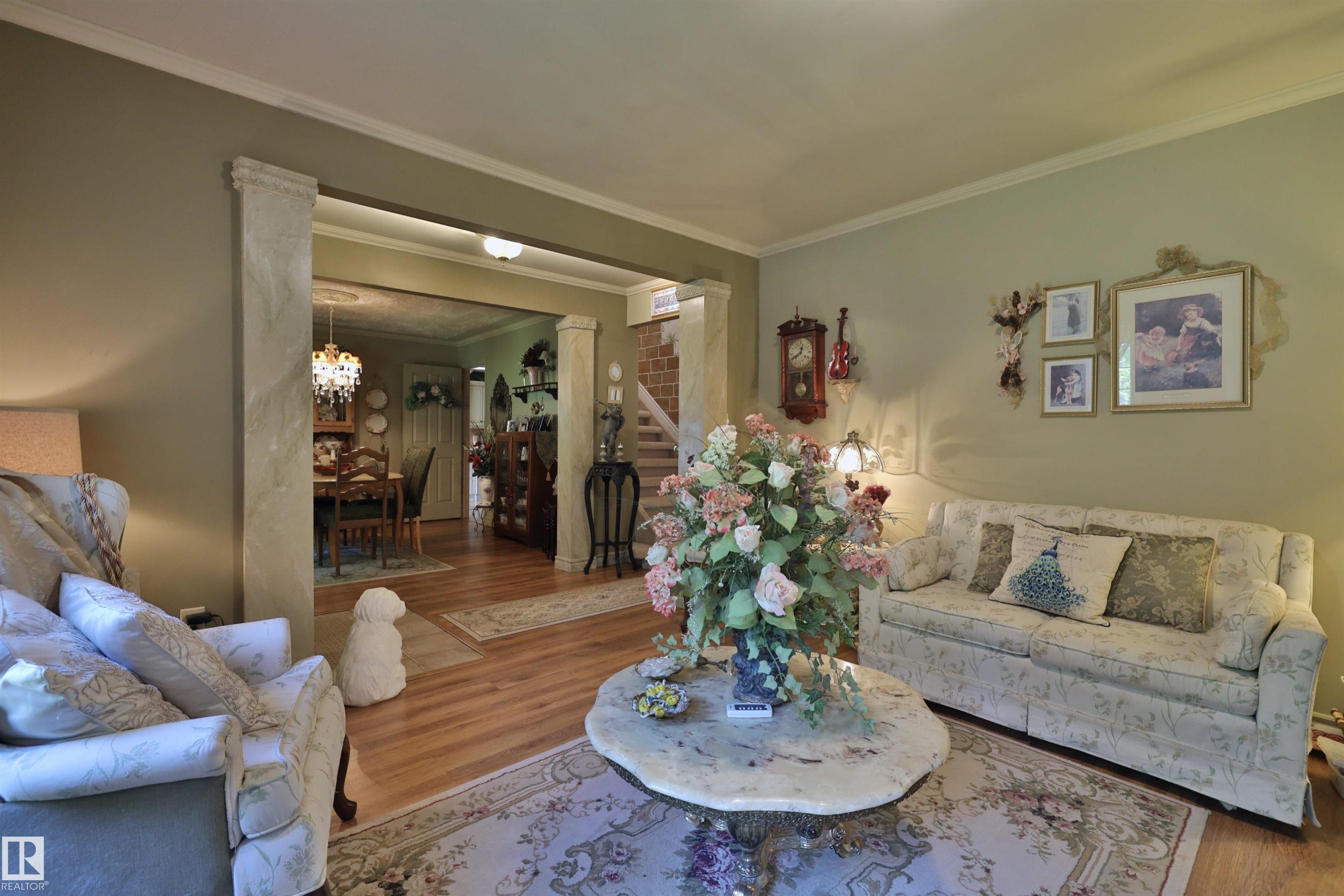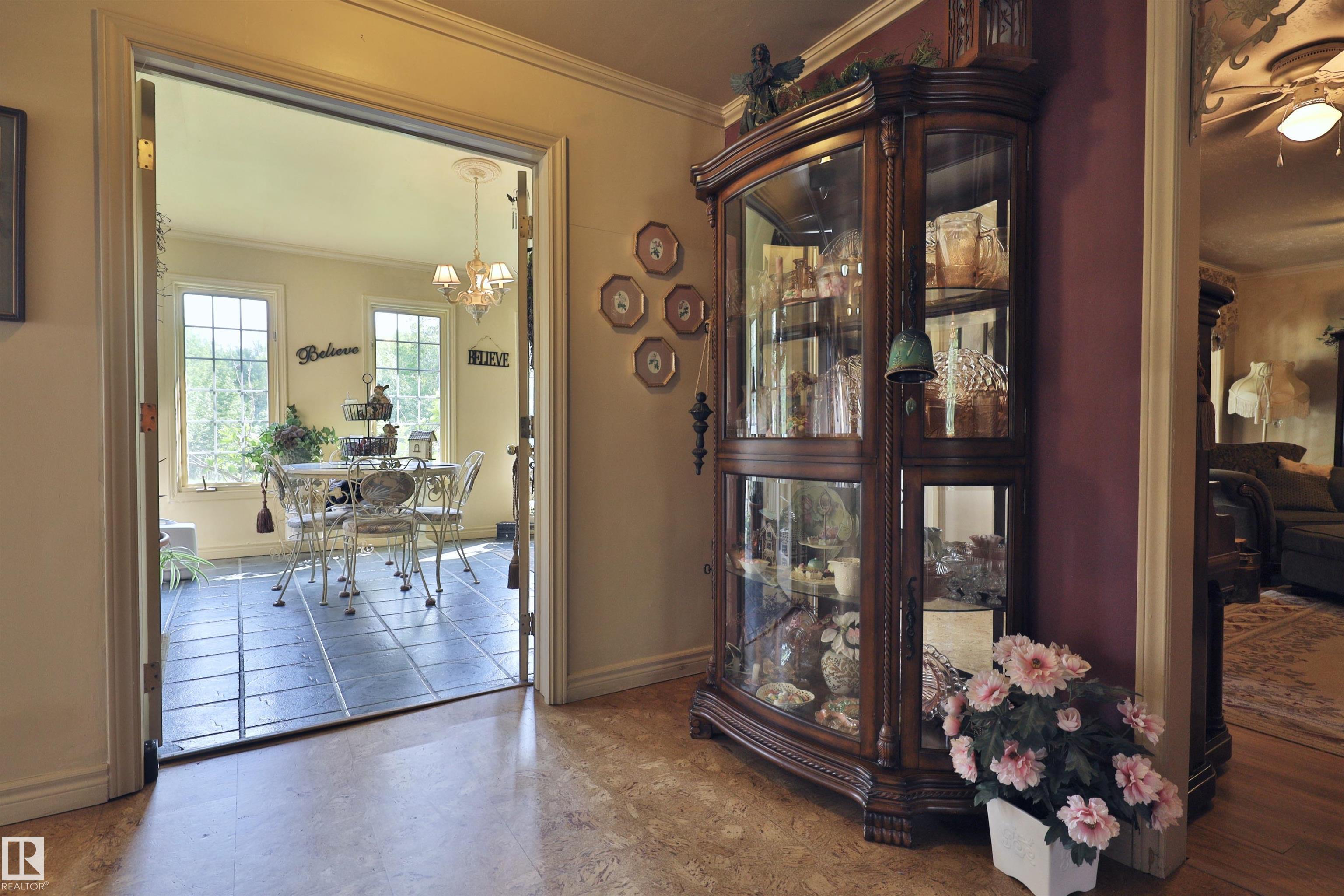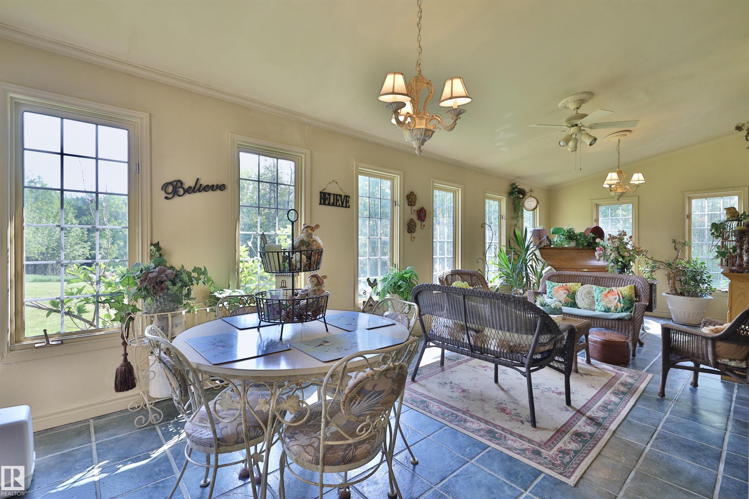 Stunning home for the growing family located on over 7 acres close to the north shore of Pigeon Lake. Beautifully landscaped with numerous perennials, boxed garden beds, a pond, a bridge to the private firepit area, 3 storage sheds, a detached garage and a green house. Inside this well maintained home, there are 4 bedrooms, and 3 bathrooms. The main floor offers a family room, a bright and inviting sun room, spacious kitchen, living room, formal dining room, the master bedroom and a 6 pce bathroom, and main floor laundry with a 2 pce bath. Upstairs there are 3 more bedrooms, a full bathroom, a play room, the bonus room and a wine making room. So much space to enjoy in this wonderful acreage property both inside and out. Prepare to be impressed.