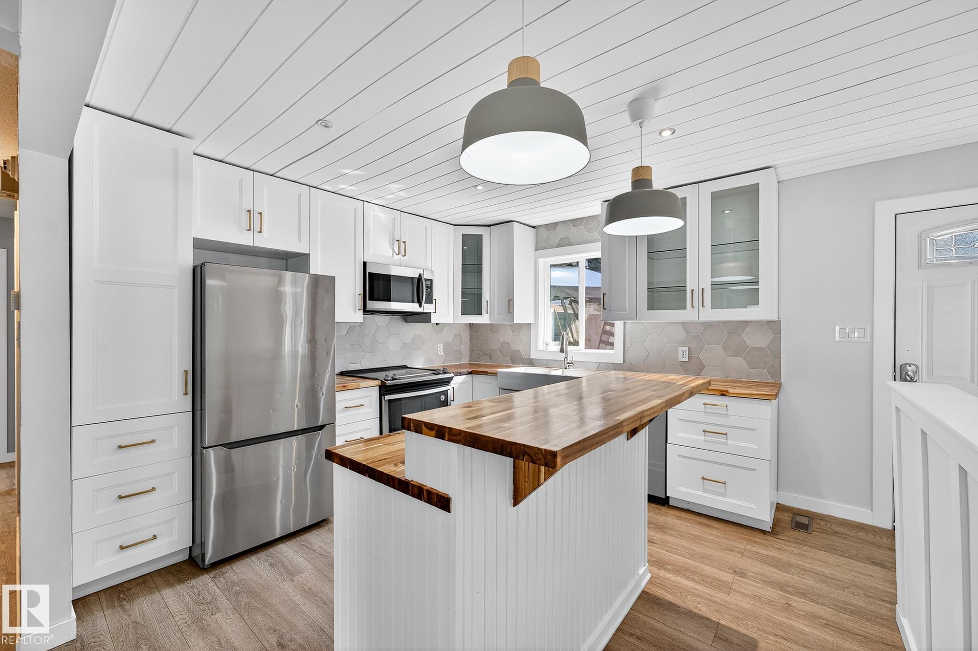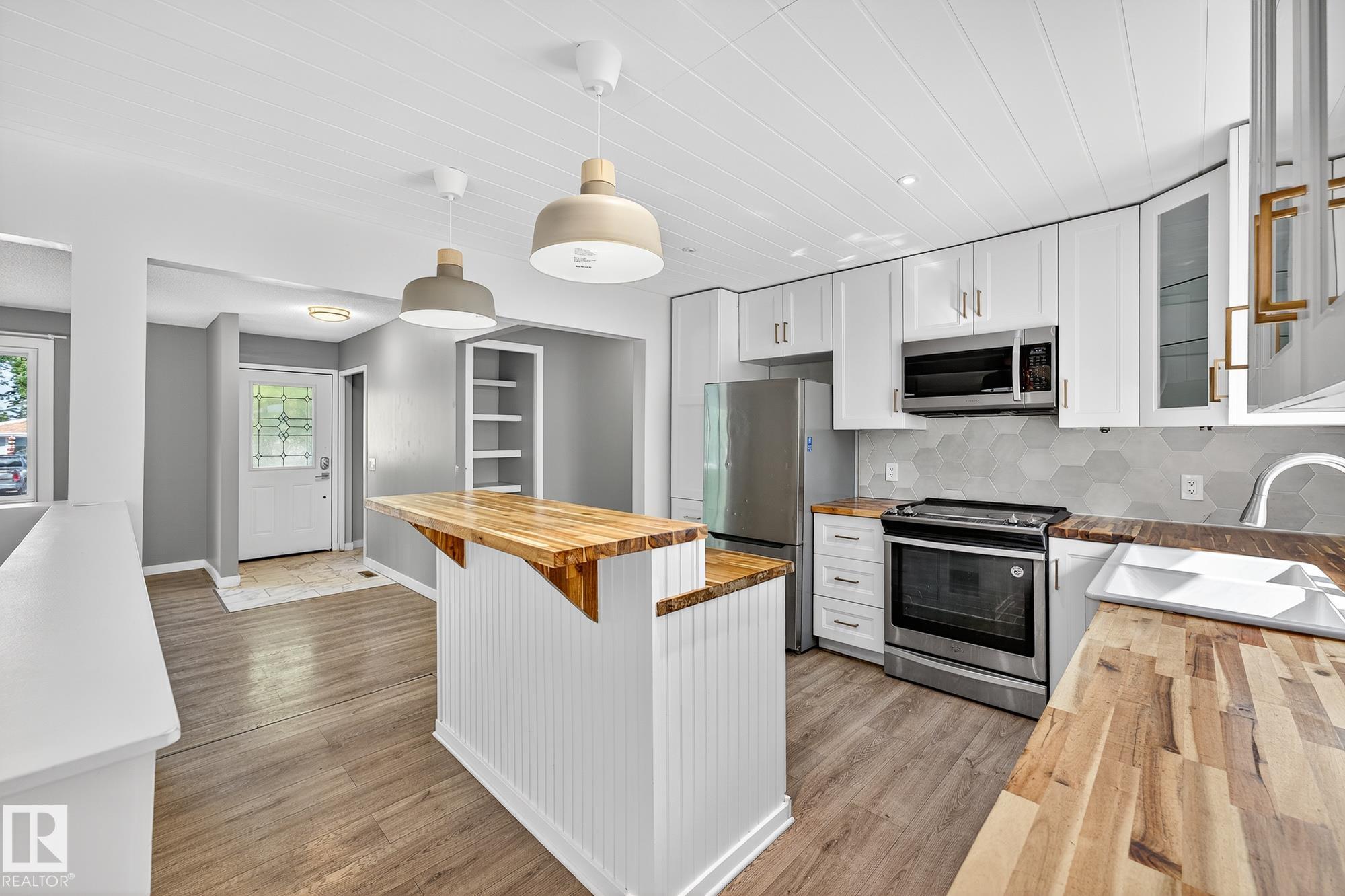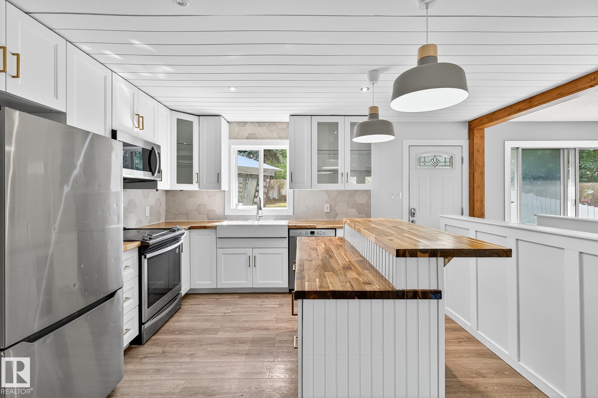 Exclusive Opportunity in Mills Haven! This updated bungalow has one of the largest backyards in the area, surrounded by old-growth trees?offering rare space and privacy not found in newer builds. The huge yard and deck are perfect for entertaining or building your dream garage. Inside, the renovated kitchen features butcher block counters, stainless steel appliances, and ample cabinetry. The main floor offers 3 spacious bedrooms, a 4pc bath, and stylish laminate throughout. The NEWLY RENOVATED and fully finished basement adds 2 more bedrooms, a 3pc bath, a large rec room, storage room, laundry, and extra flex space. Major upgrades include shingles (2020), furnace, and HWT. Ideally located near top-rated schools, parks, and shopping, this move-in ready home blends space, comfort, and location in a sought-after, family-friendly neighbourhood. Don?t miss your chance to own this one-of-a-kind property!