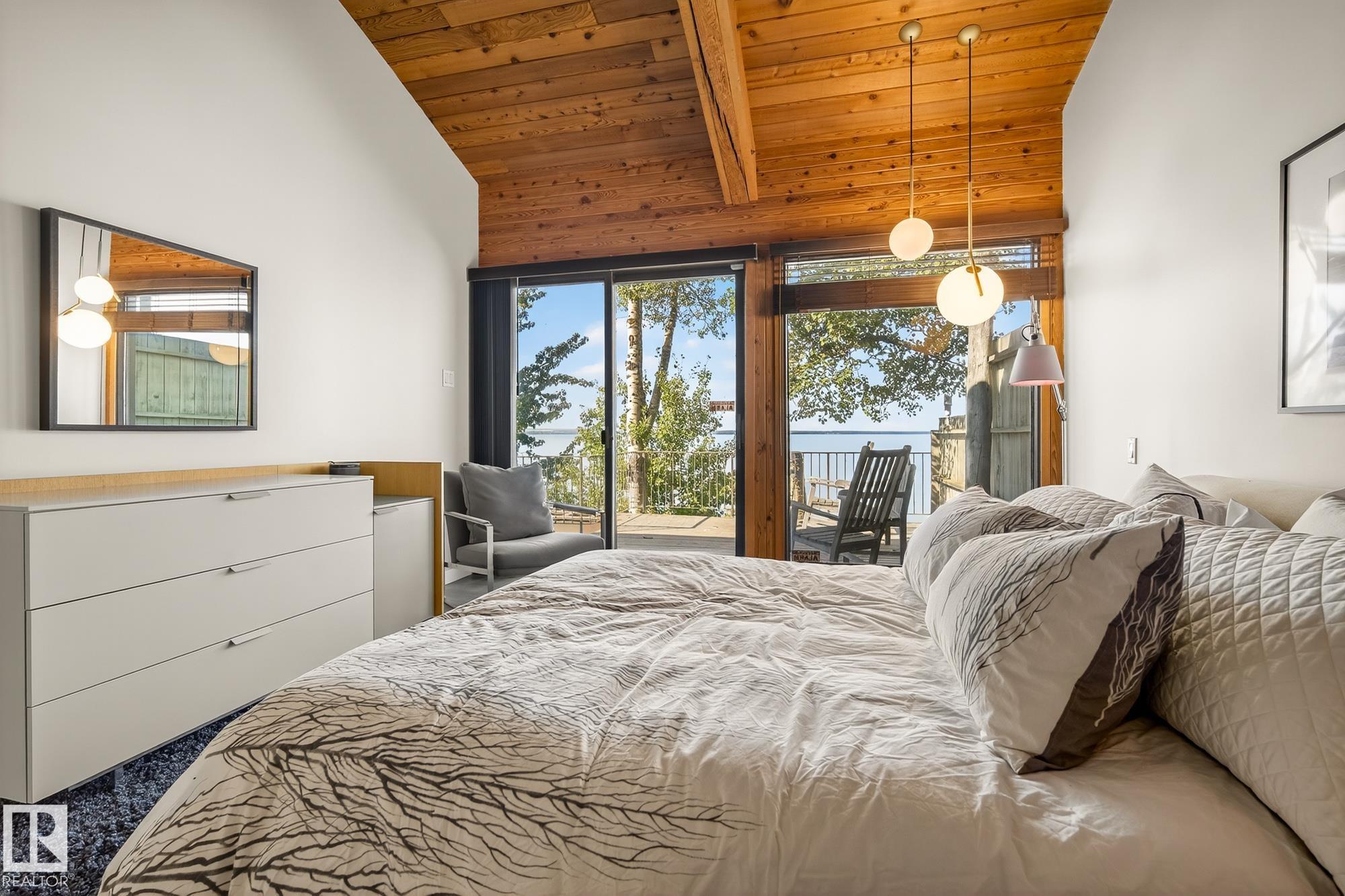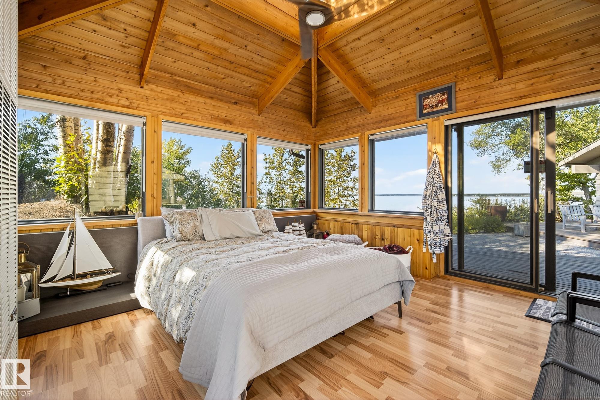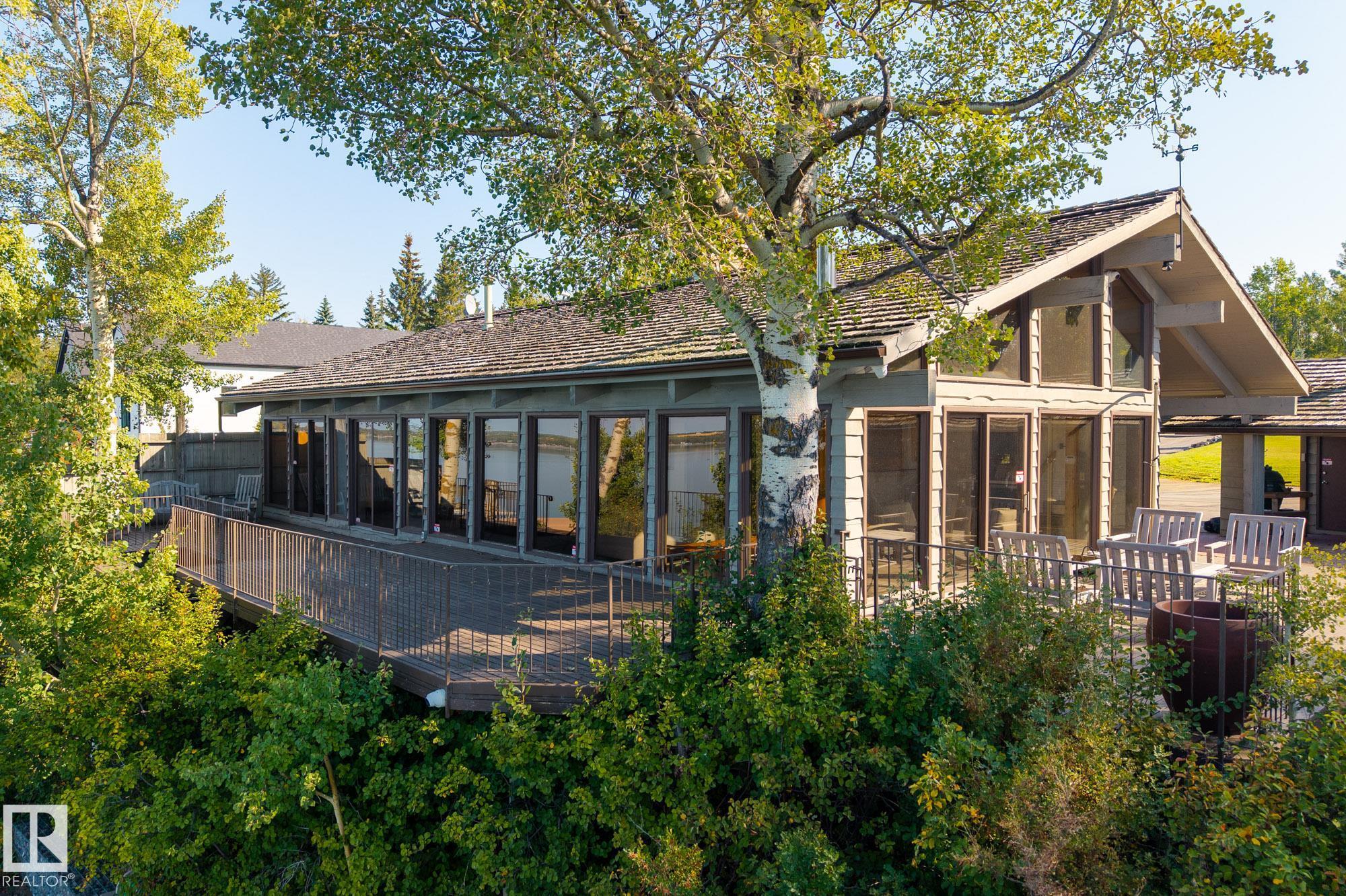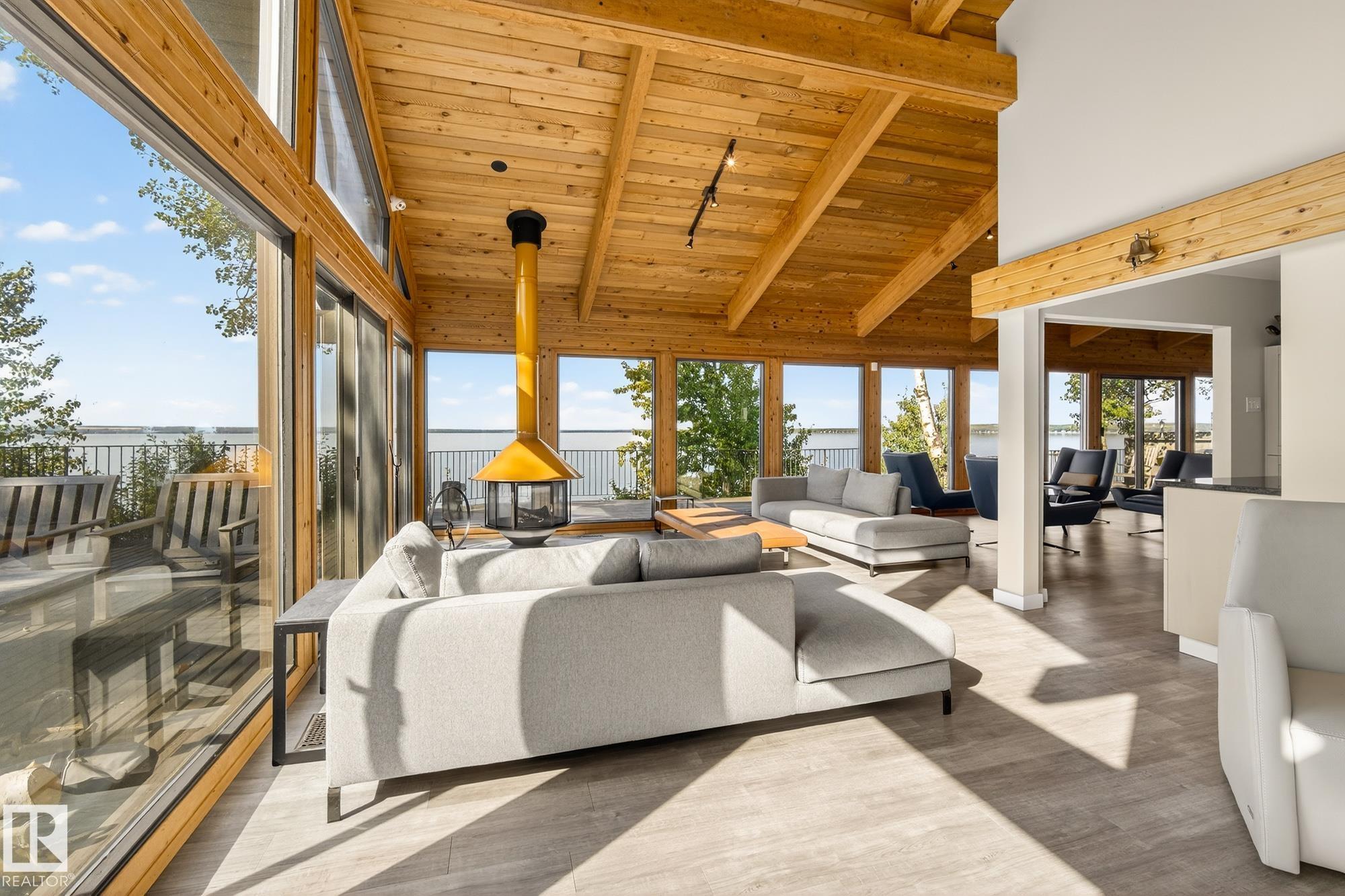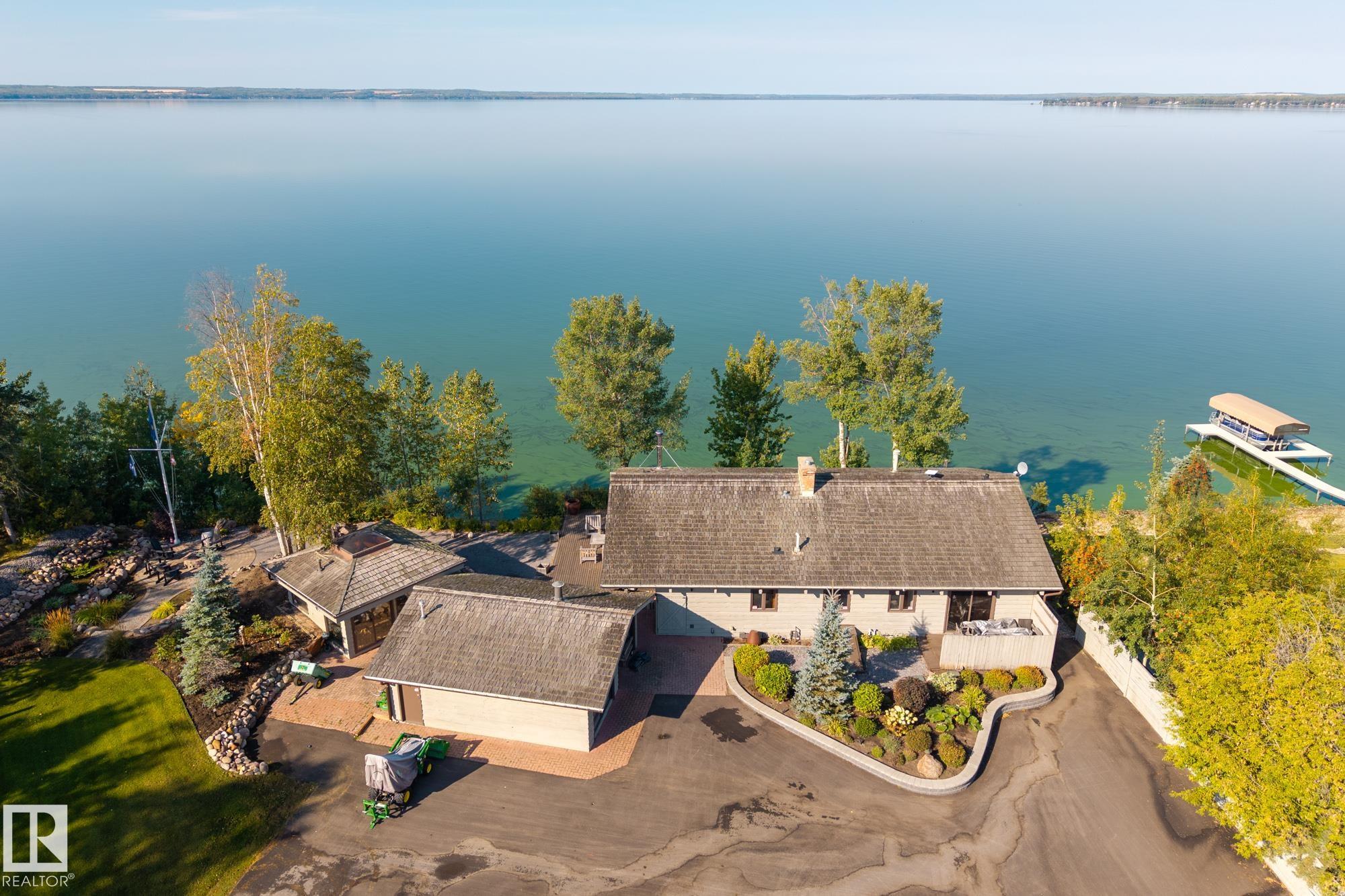Welcome to one of the most coveted addresses on Pigeon Lake. This rare Silver Beach estate offers over half an acre with 150 feet of prime lake frontage, creating the perfect retreat for those who value space, privacy, and stunning sunsets. The property features beautifully landscaped grounds, a gated entrance, a newly paved drive, a detached garage, and a charming guest house, with room to expand by adding a shop or carriage house. Inside, the renovated home is designed for both comfort and entertaining, with a grand foyer and wet bar, open-concept living areas, and dual fireplaces. Expansive lake-facing windows capture panoramic views year-round. Three bedrooms, including a lofted retreat, two full baths, and a private sauna with extra shower round out this one-of-a-kind offering. Located near the end of Silver Beach Road, this property promises quiet exclusivity and timeless lakeside living.