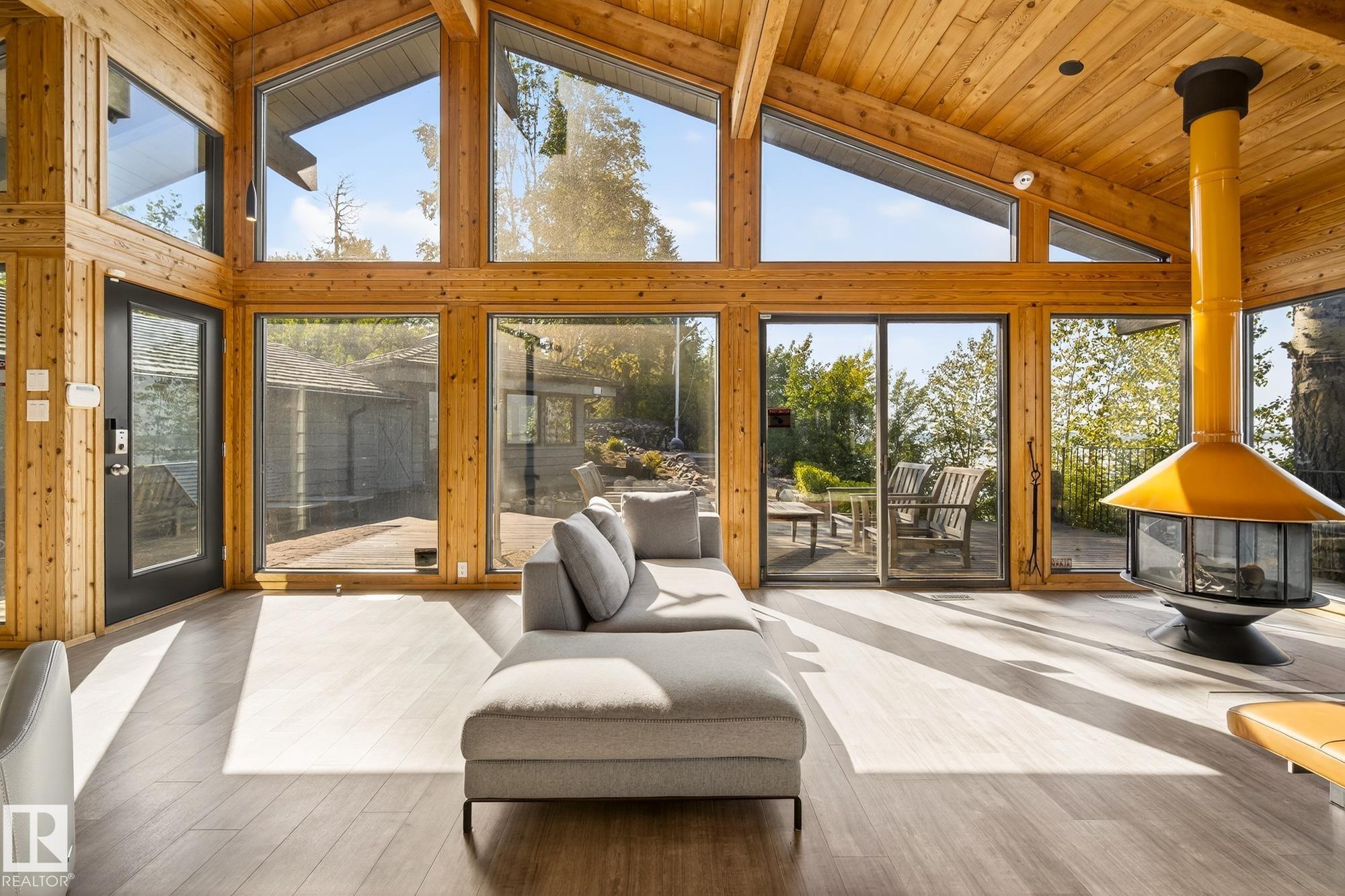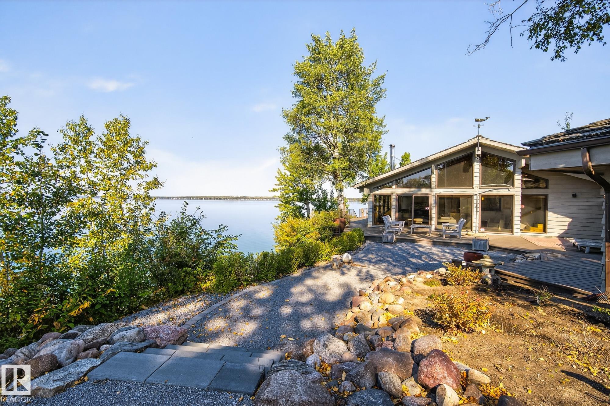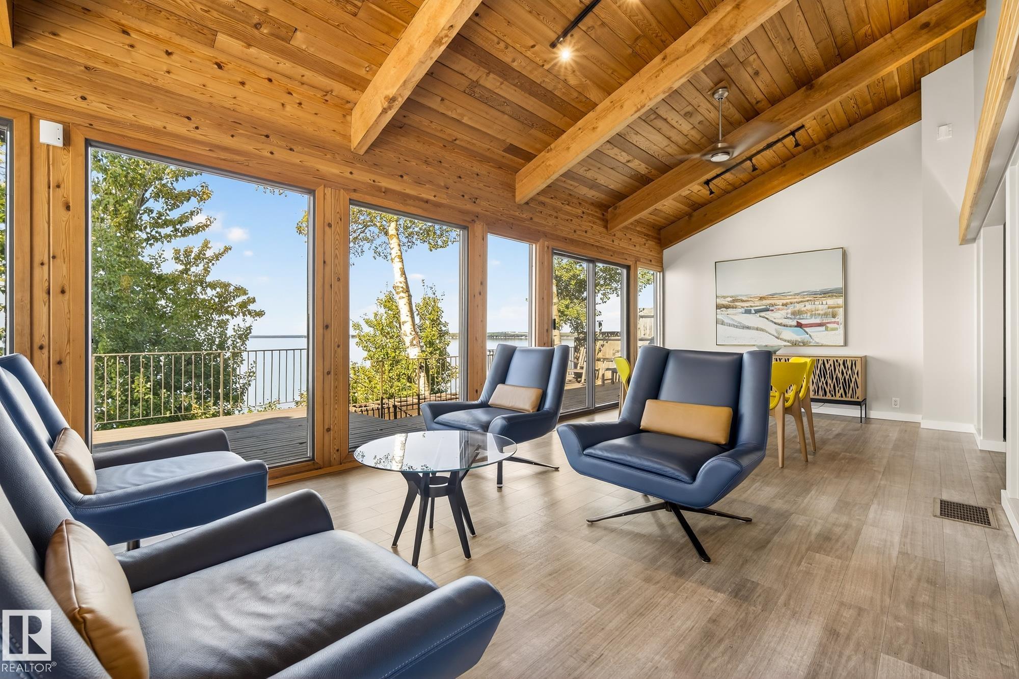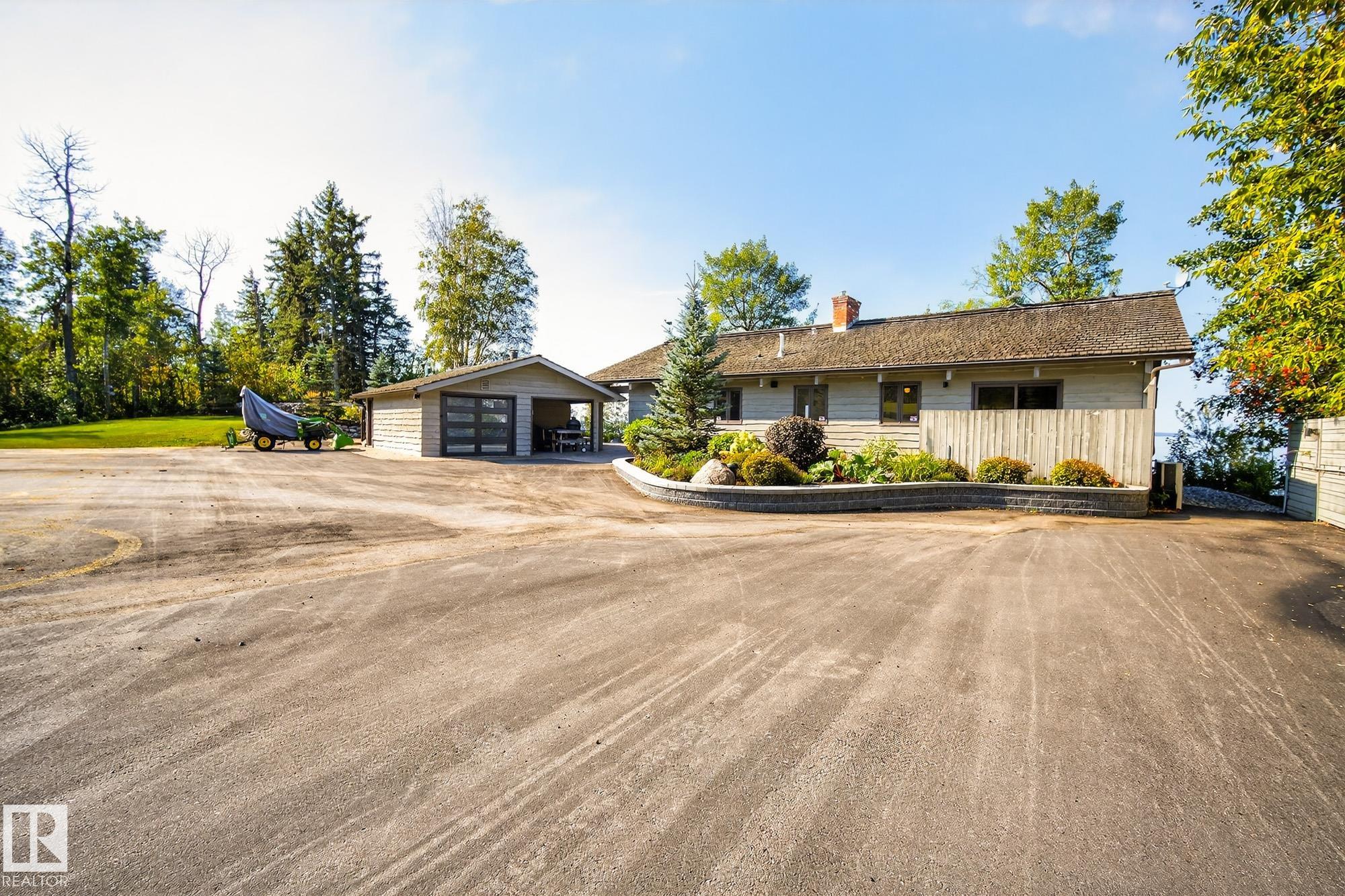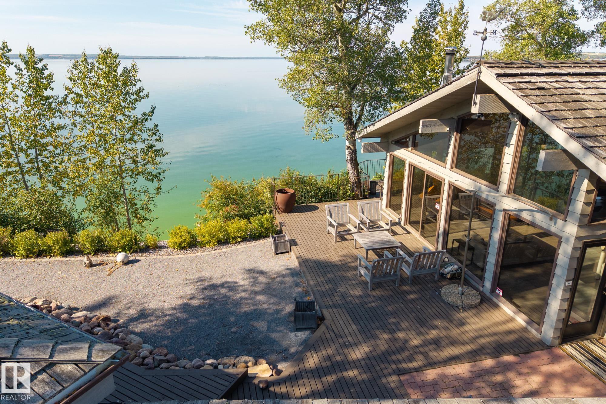 Welcome to one of the most coveted addresses on Pigeon Lake. This rare Silver Beach estate offers over half an acre with 150 feet of prime lake frontage, creating the perfect retreat for those who value space, privacy, and stunning sunsets. The property features beautifully landscaped grounds, a gated entrance, a newly paved drive, a detached garage, and a charming guest house, with room to expand by adding a shop or carriage house. Inside, the renovated home is designed for both comfort and entertaining, with a grand foyer and wet bar, open-concept living areas, and dual fireplaces. Expansive lake-facing windows capture panoramic views year-round. Three bedrooms, including a lofted retreat, two full baths, and a private sauna with extra shower round out this one-of-a-kind offering. Located near the end of Silver Beach Road, this property promises quiet exclusivity and timeless lakeside living.