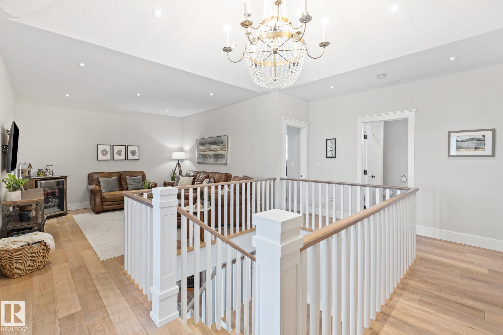 Welcome to the most beautiful, custom home, unlike any other in Genesis on the Lakes. This property features a one-of-a-kind legal suite with high-end finishes and large windows that offer views of the beautifully landscaped backyard. This serene legal suite oasis is a rare find in Stony Plain, complete with a separate entrance. The house is STUNNING! It's spacious and complemented by neutral colours that create a calm atmosphere. The kitchen features ample counter space, a coffee bar, a custom pantry, and plenty of storage. The primary bedroom features a massive en-suite, a spacious walk-in closet, a fireplace, incredible vaulted ceilings, and a private balcony. The backyard showcases lovely landscaping, highlighted by a waterfall. Ultimate privacy with a south-facing yard that backs onto green space. This home is perfect for families needing extra space or retirees who require a guest suite. Don?t miss this rare opportunity to own a unique home with a legal suite in Genesis on the Lakes.