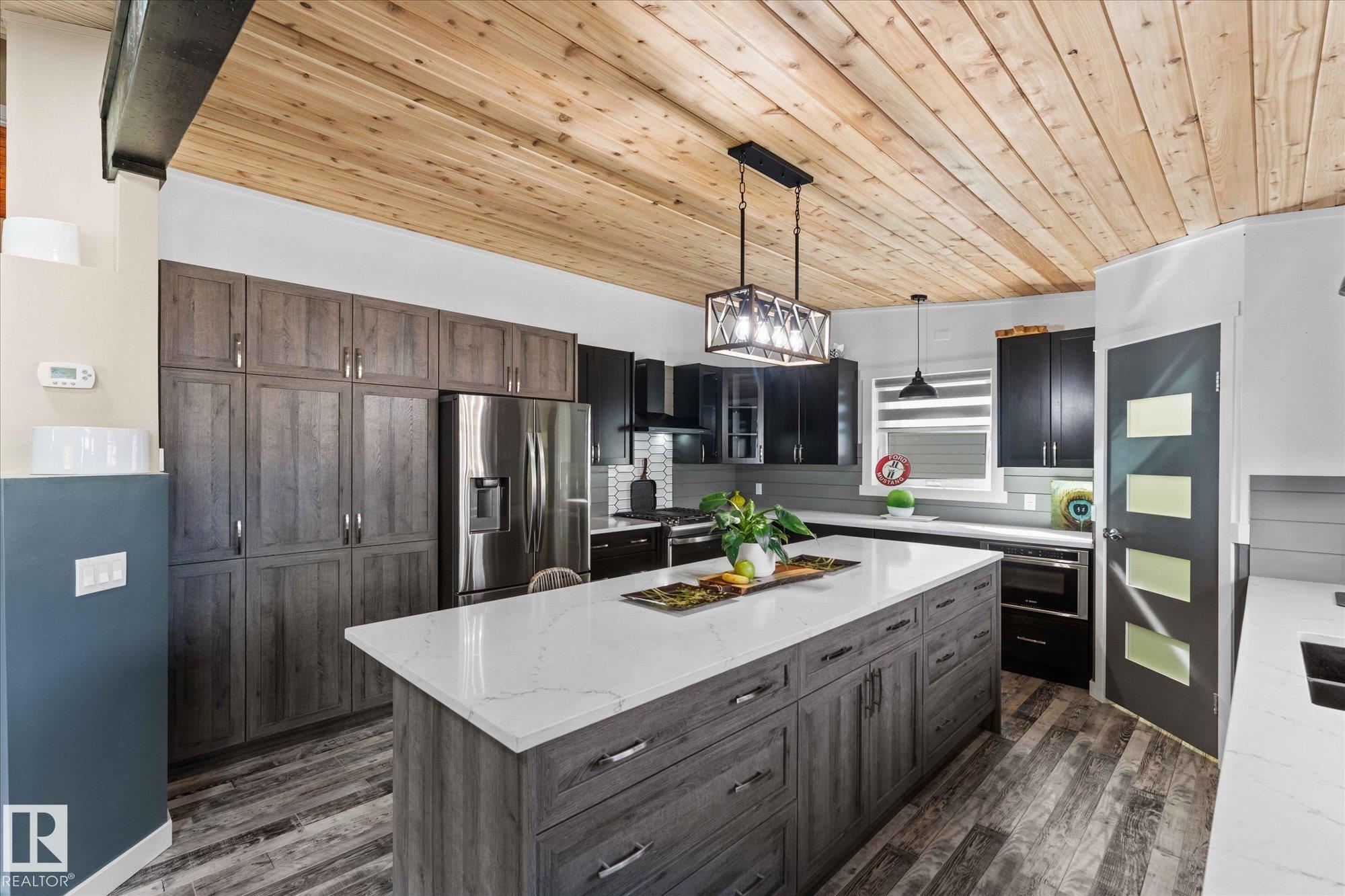 This Beautifully Redesigned 4 Level Split Home in The Scenic Lake Town of Wabamun Offers The Perfect Blend of Modern Style, Comfort & Functionality & is Only 20 Minutes From Stony Plain. Step Inside to Find a Brand New Custom Kitchen Featuring High End Stainless Steel Appliances Including a Gas Stove, Pull Out Microwave Drawer, Sleek Quartz Countertops & a Huge Island For Entertaining. There is a Spacious & Bright Dining Room, 4 Generous Bedrooms Including a Primary Suite With a Walk in Closet & Stunning Ensuite, a Versatile Bedroom With a Murphy Bed, Ideal For Guests or a Home Office, an Inviting Living Room With a Gas Fireplace, 2 Additional Full Baths & a Large Utility/Storage Room. Extensive Upgrades Consist of a New Furnace, Hot Water Tank, Air Conditioner, Vinyl Windows, Flooring, Siding, Fencing, Shingles on The House & Garage & More. Extras Include a Huge Cement Patio & an Oversized Garage That is Insulated, Heated, Has a Cement Floor, 220 Wiring & an RV Plug. This Rare Gem Could Be Yours!