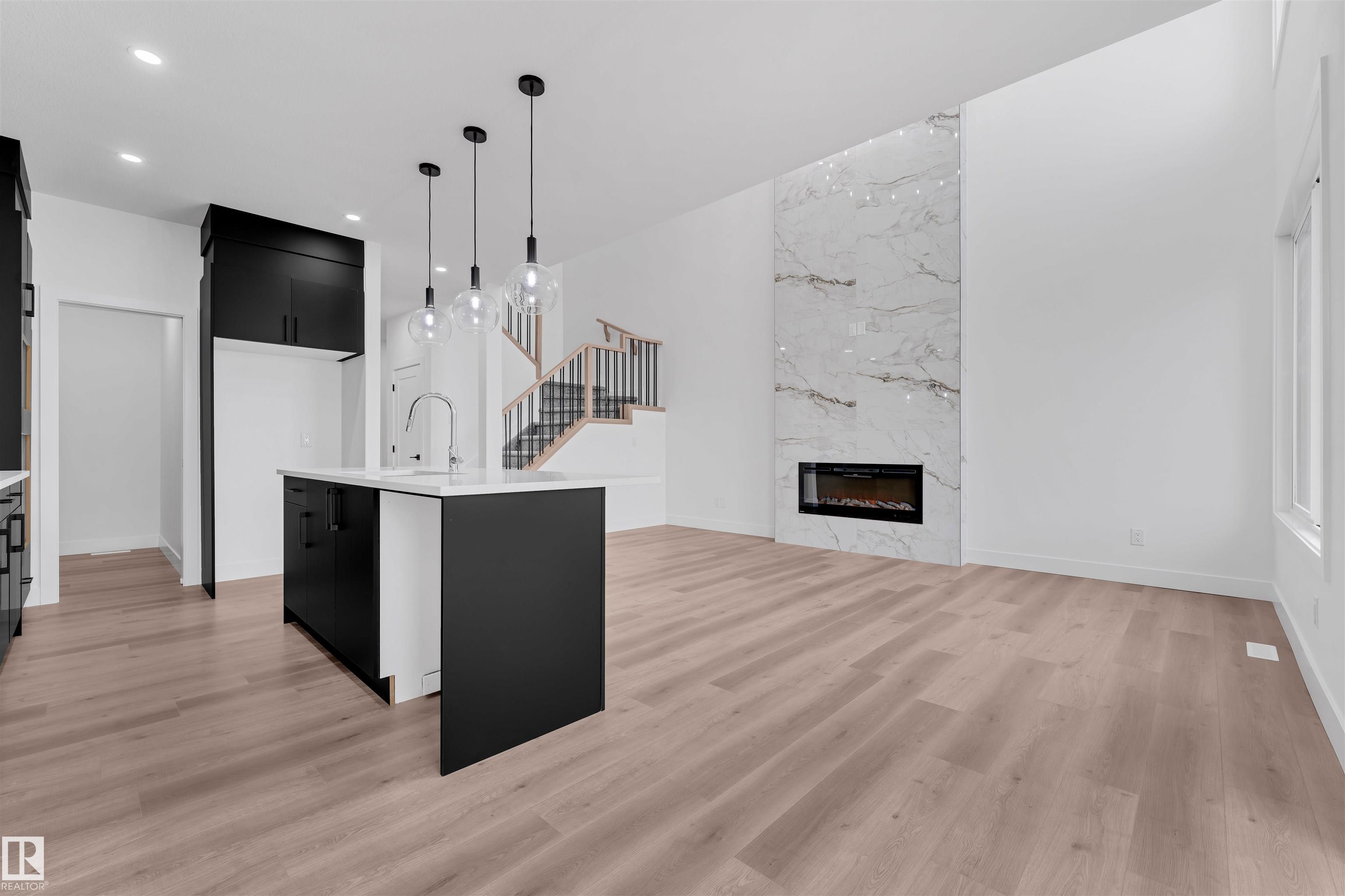 Welcome to this beautifully designed 3-bedroom, 2.5-bathroom home featuring an open-to-above living room that fills the space with natural light. The main floor includes a private den?perfect for a home office or study?as well as a spacious kitchen with a large walk-in pantry. Enjoy cozy evenings by the stunning feature fireplace with floor-to-ceiling tile in the living room. Upstairs, you?ll find a generous bonus room ideal for family movie nights or a play area. The luxurious primary suite offers a 5-piece ensuite and a walk-in closet for your convenience. Outside, the large backyard provides ample room for entertaining, gardening, or play. Additional features include a double attached garage and thoughtful finishes throughout. This home offers space, style, and functionality?perfect for modern family living!