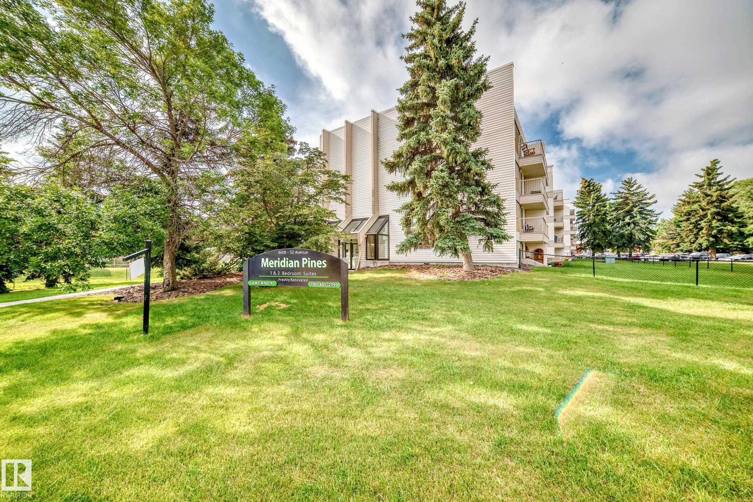 Welcome home to Meridian Pines! This updated 1-bedroom condo is a fantastic opportunity for all buyers or investors. Featuring vinyl plank flooring throughout, a large patio door and more windows makes for a bright, functional layout. The kitchen has white cabinetry, includes a dishwasher and flows into the spacious dining and living areas, perfect for relaxing or entertaining. Step out onto your west-facing balcony and enjoy peaceful views and great sunsets. The king-sized bedroom with ample closet space, a 4-piece bath and tons of in-suite storage add to the comfort. Laundry is just down the hall, and an assigned powered parking stall is included. This well-managed building offers great curb appeal in a quiet residential area, with easy access to shopping, dining, and more. A rental pool program is available, and the unit is currently tenant-occupied at $1,150/month?ideal for hands-off investors. Don?t miss this affordable and move-in-ready opportunity!