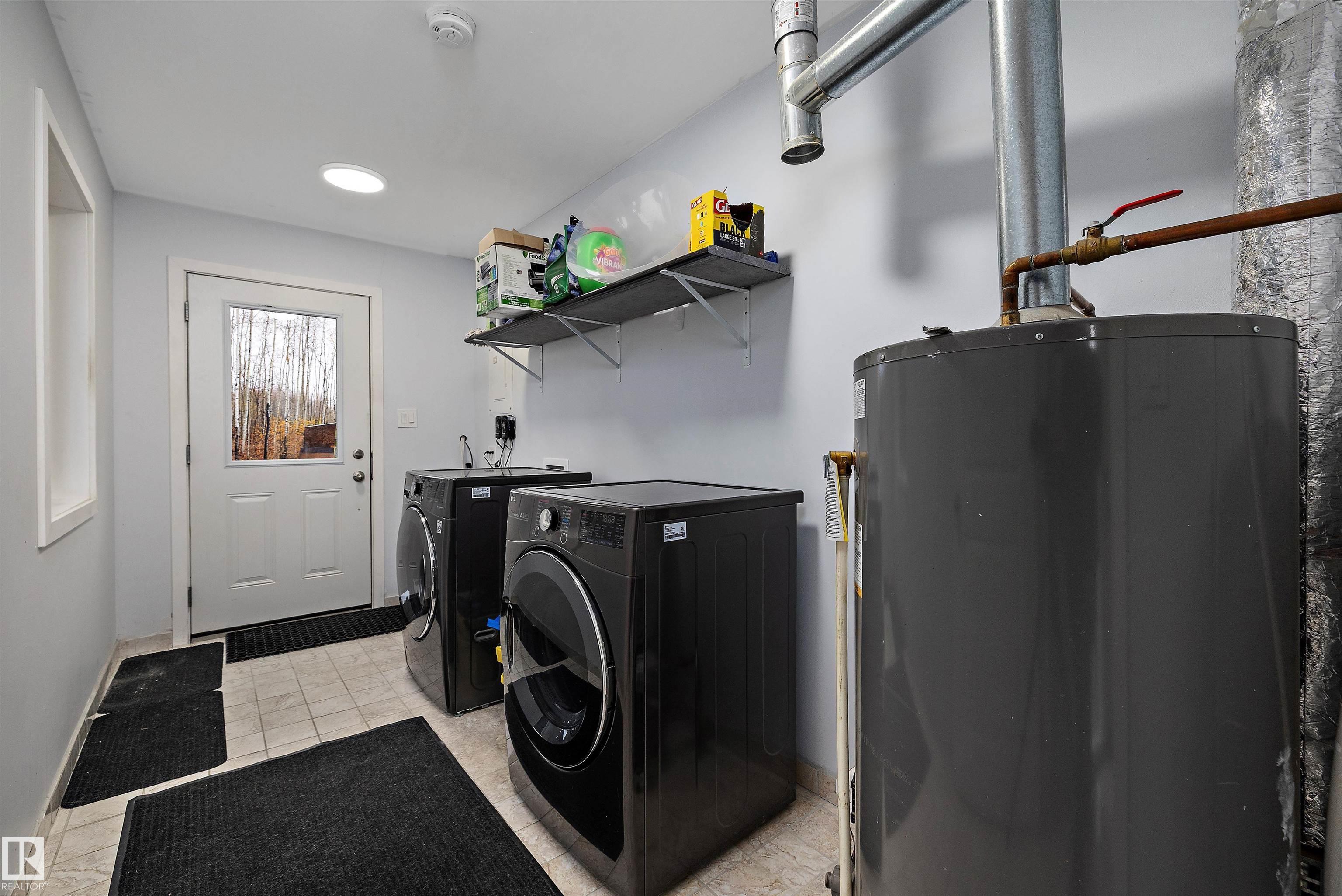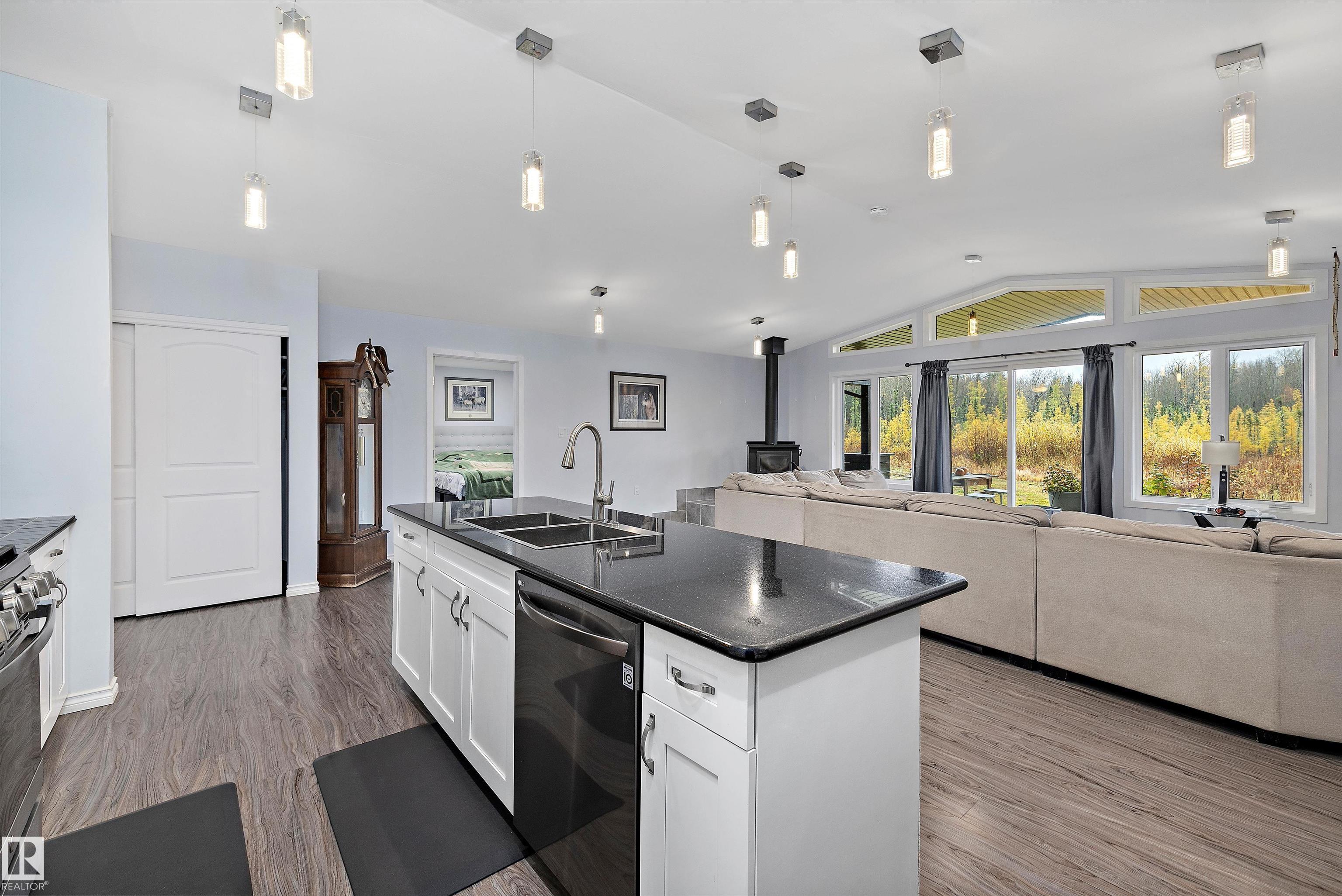 Very Private 15.99 acres near Wabamun Lake in Lac Ste. Anne County. You are greeted by the stunning gates as you enter the property with an abundance of trees. This is rural living at its best. Wonderful 1791 Sq Ft bungalow with open concept and vaulted ceilings with 4 ft crawl space is sure to please everyone. As you enter, there is a separate dining area for entertaining that opens to the main area with vaulted ceilings. The large kitchen features a granite center island and Stainless steel appliances that overlook the spacious living room with large windows taking in the scenic views with a corner wood-burning fireplace. The large master bedroom has a patio door leading to the future patio. Large ensuite comes with a steam shower. Two more large bedrooms and 4 pc bath make up this desirable bungalow. This is a nature lover's dream!