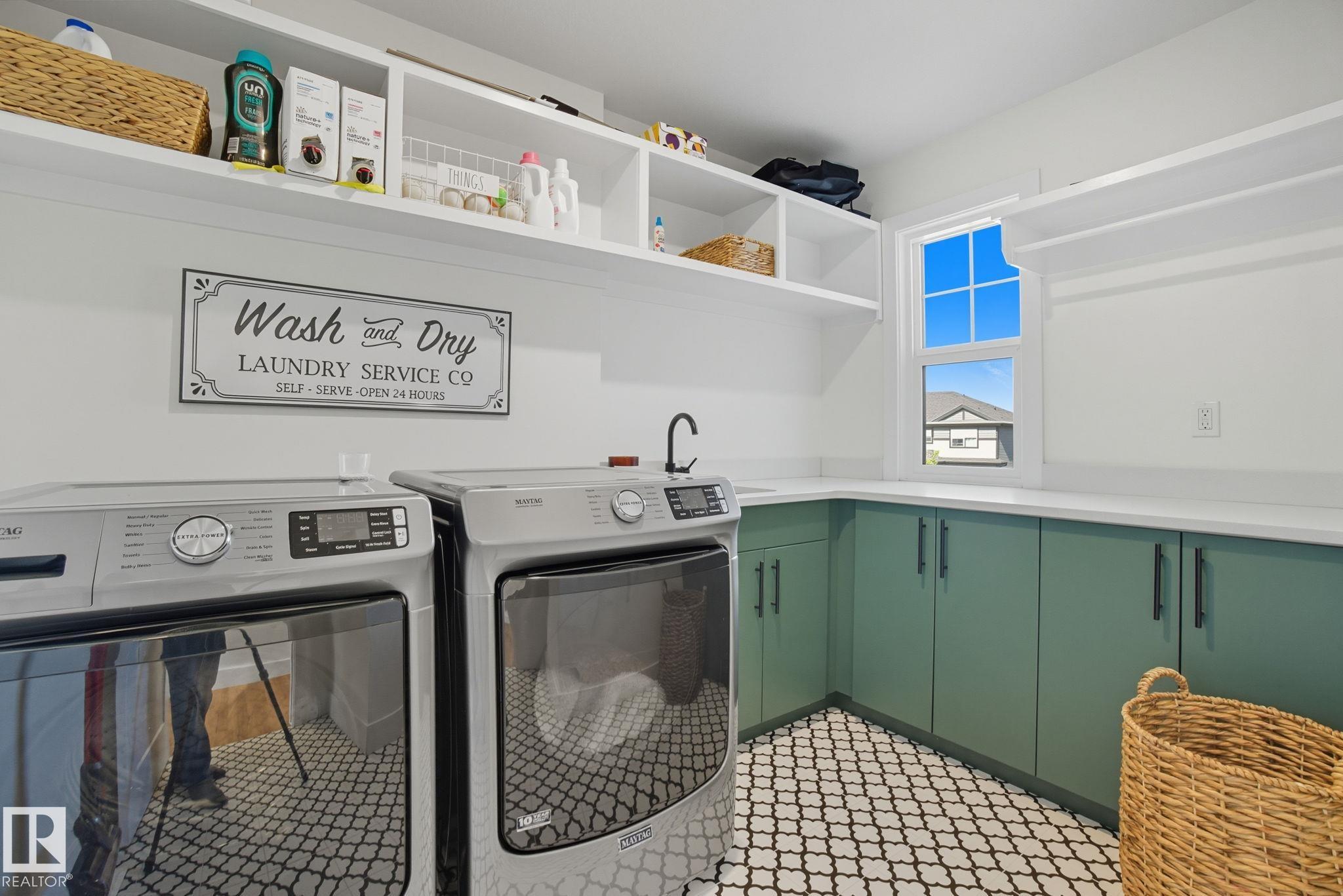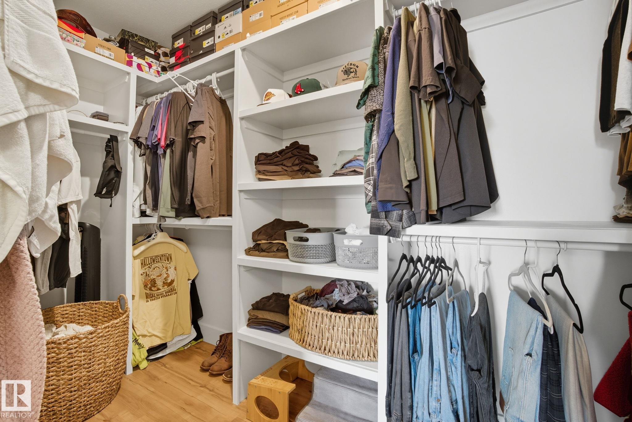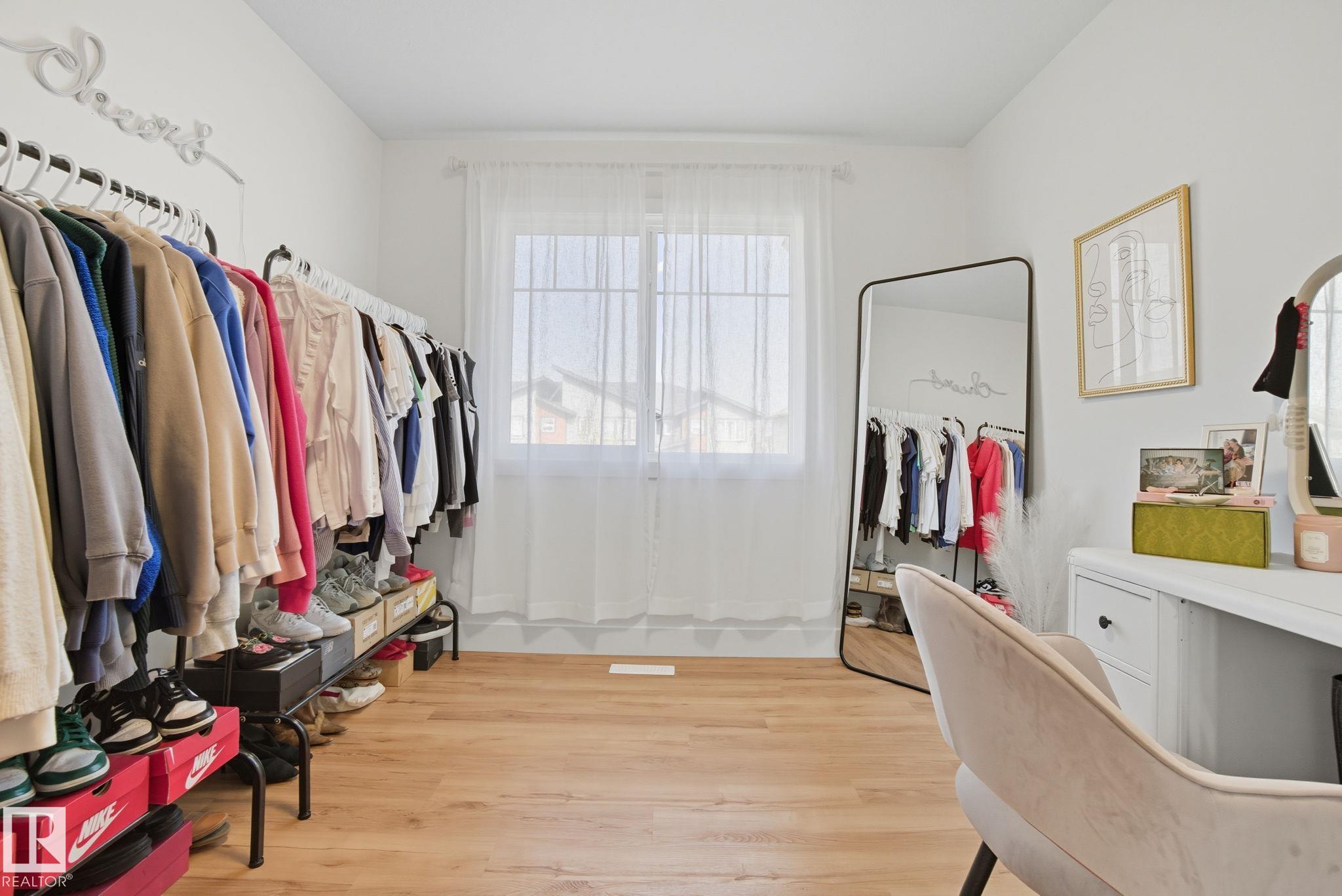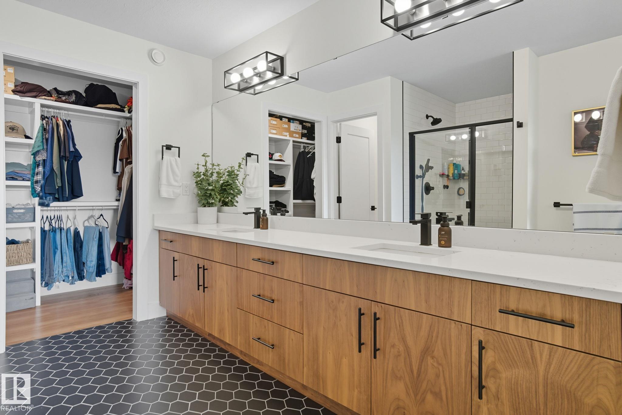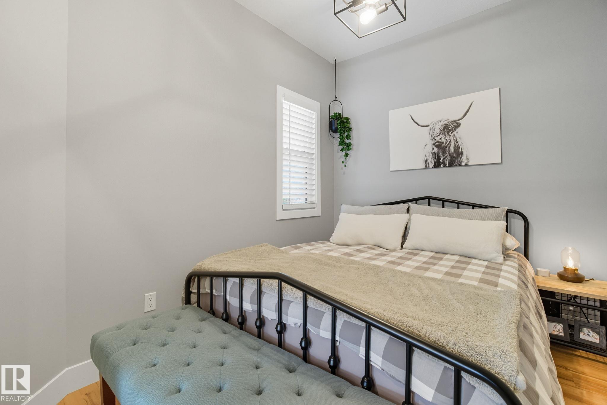 This property truly has it all. Nestled in a family-friendly community, surrounded by scenic walking trails where you can enjoy pond views from your very own balcony! Soaring 9' main floor ceilings, a chic tile fireplace with open display shelving, hard surface flooring throughout the entire home, and gorgeous iron railing create a luxurious feel. Thoughtfully designed mudroom with bench and shelving, seamlessly connects to the gourmet kitchen via walk-through pantry. The kitchen impresses with full height, soft-close cabinetry, gas stove, breakfast bar, and premium countertops & backsplash. Beautiful coffered ceiling creates a stylish dining area that leads to your outdoor oasis complete with BBQ gas line and concrete stamped patio. Enjoy all season comfort with heated garage (22'x19'), A/C, smart thermostat and triple pane windows. This home even has upstairs laundry room + side entrance for possible basement suite! Close to YEG airport and south Edmonton. Welcome to your peaceful retreat!