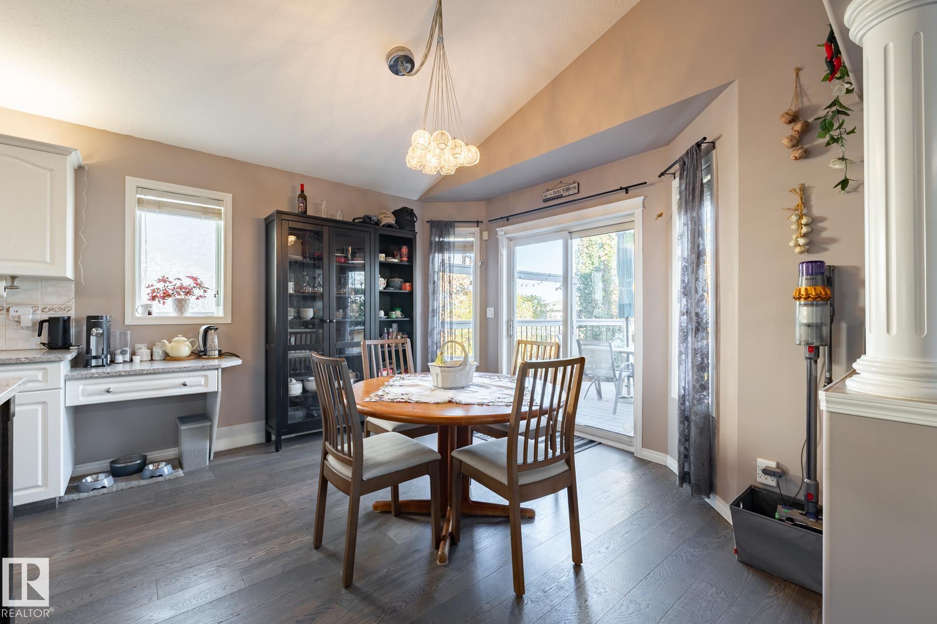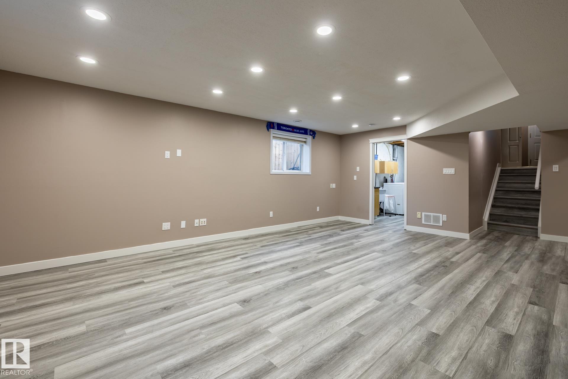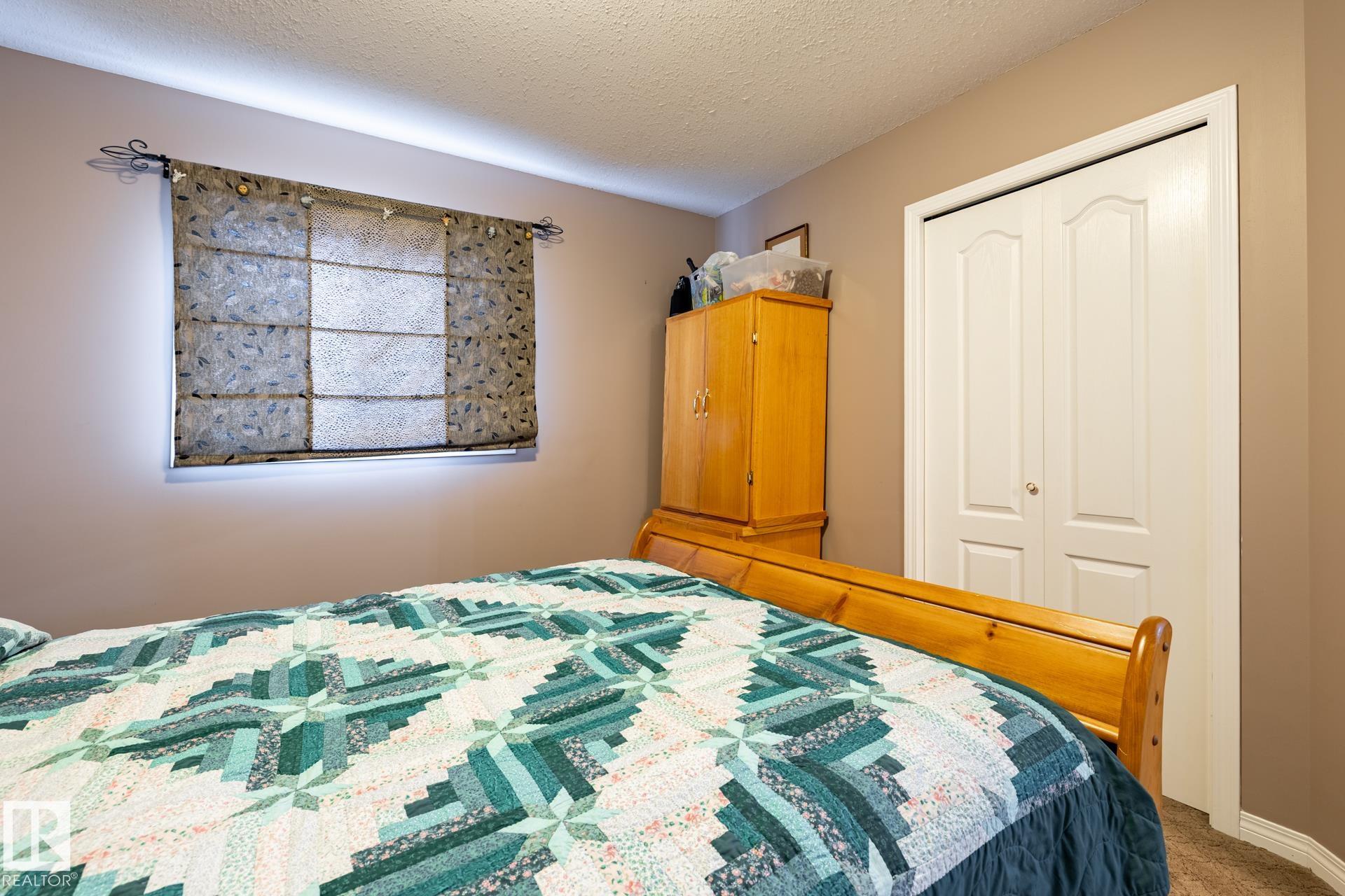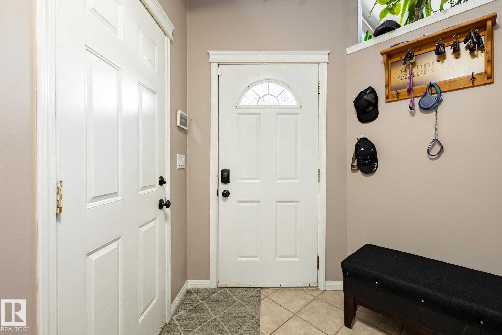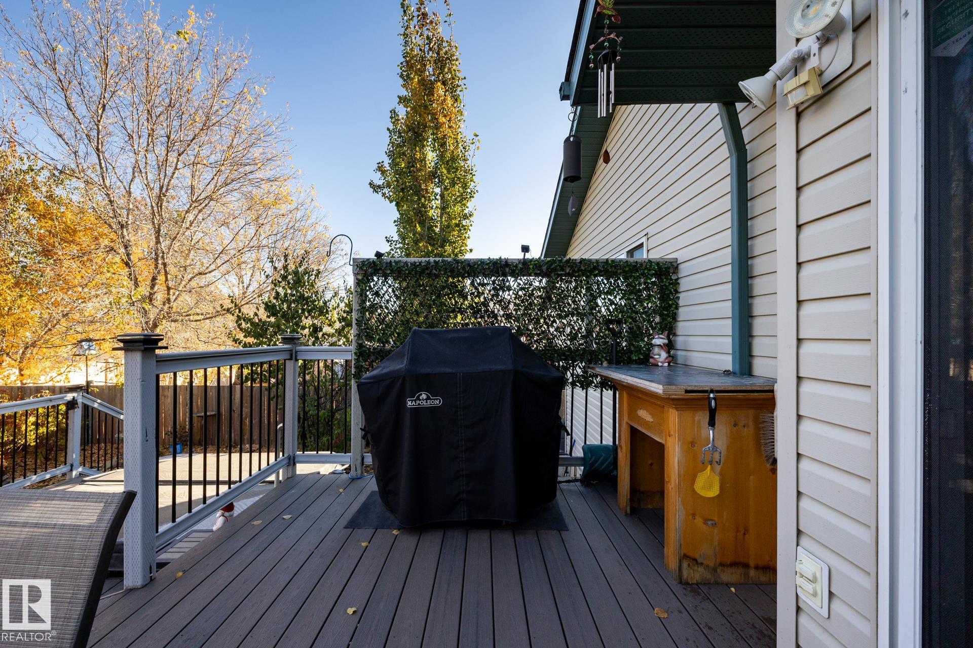 Welcome to Deer Park, a desirable west-side Spruce Grove community offering quick access to HWY 16. This inviting, air-conditioned modified bi-level built in 2000 offers over 2500 sq ft of living space & a heated, 18'Wx21'L double attached garage. Main floor: vaulted living room, kitchen & dining area, cozy family room w/ gas fireplace, two bedrooms & 4-pc bath. The private primary suite above the garage includes a walk-in closet & 3-pc ensuite. The basement is super bright featuring a spacious recreation room, updated 3-pc bath, 4th bedroom, storage room, laundry room & flexible den that could easily become the 5th bedroom or hobby room. Updates: shingles, furnace, hot water tank, engineered hardwood, vinyl plank flooring, carpet, quartz countertops in kitchen, custom built 8ft island, updated kitchen cabinetry, blinds, electric stove, and dishwasher. Enjoy patio door access to the two-tiered deck w/ hot tub & private fenced yard with mature trees/landscaping. Move in ready!