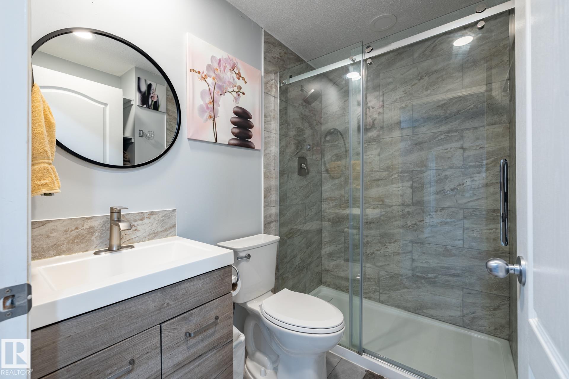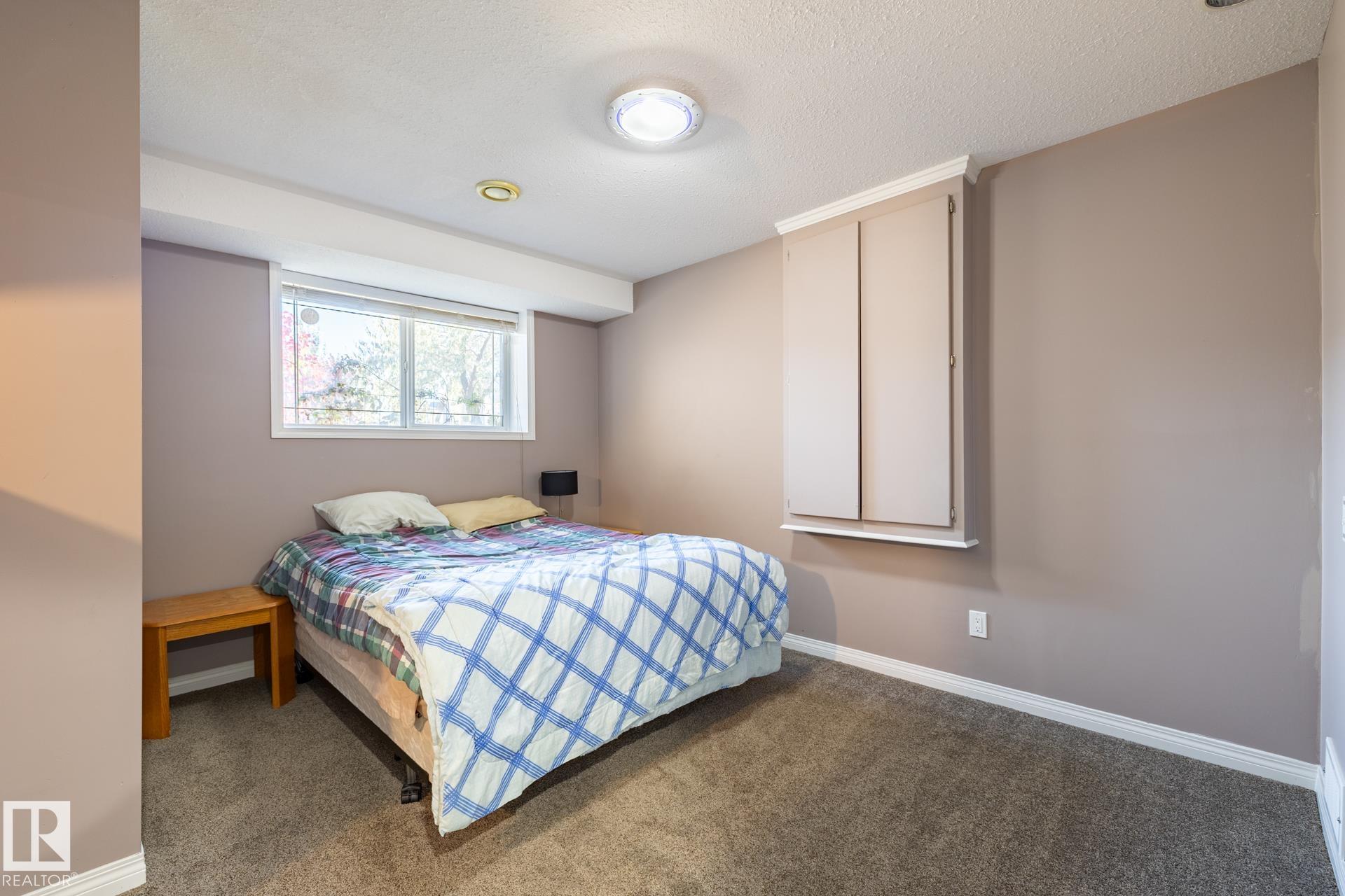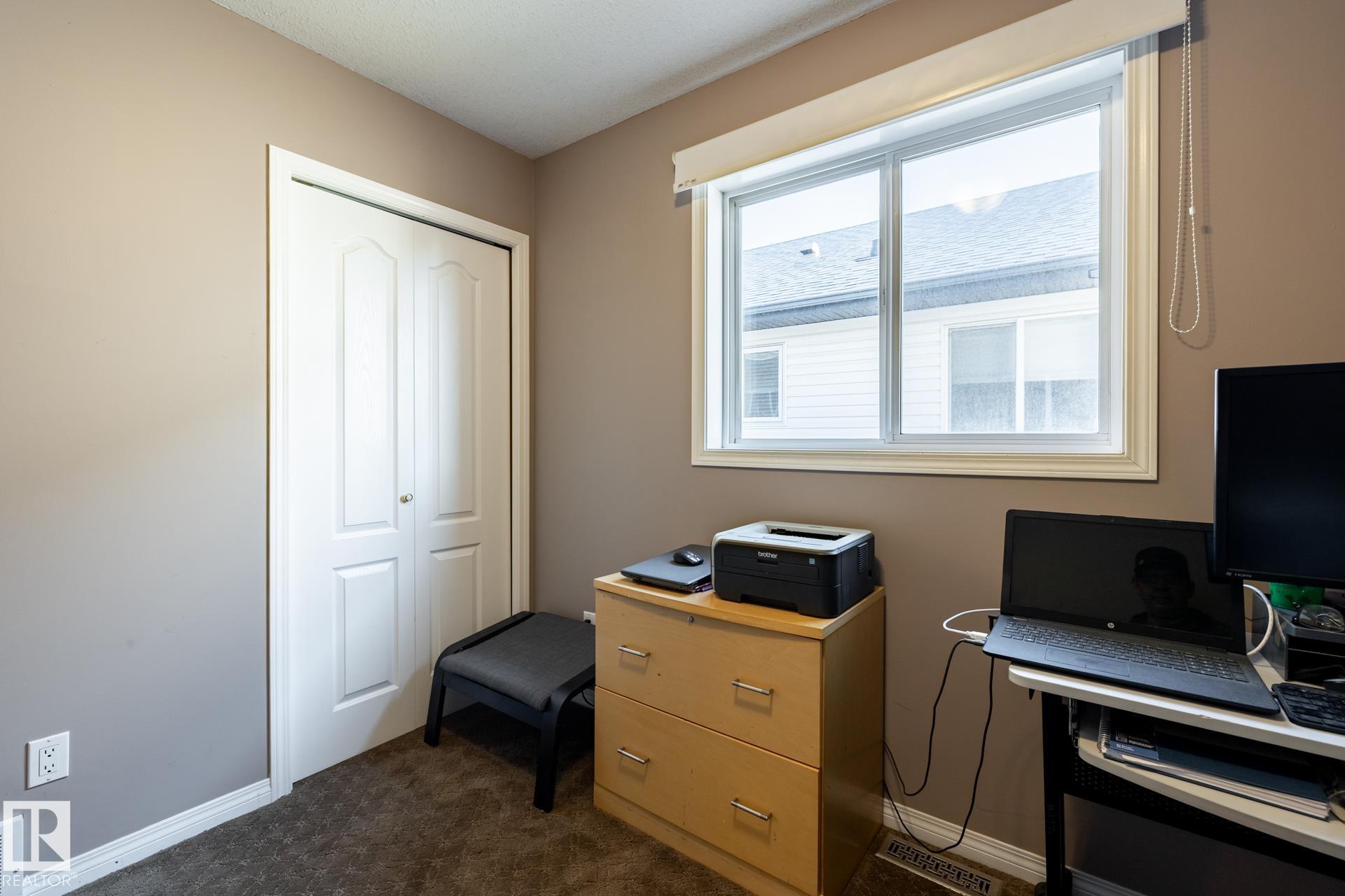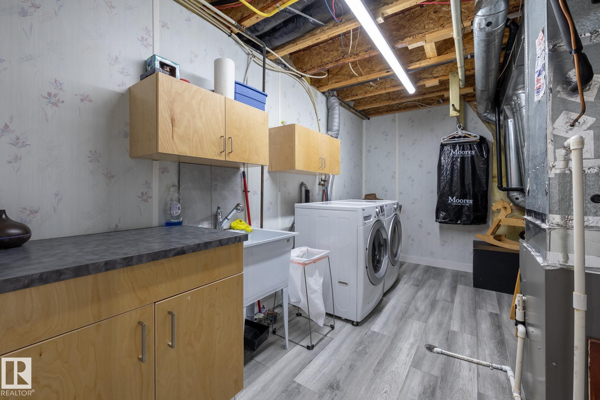 Welcome to Deer Park, a desirable west-side Spruce Grove community offering quick access to HWY 16. This inviting, air-conditioned modified bi-level built in 2000 offers over 2500 sq ft of living space & a heated, 18'Wx21'L double attached garage. Main floor: vaulted living room, kitchen & dining area, cozy family room w/ gas fireplace, two bedrooms & 4-pc bath. The private primary suite above the garage includes a walk-in closet & 3-pc ensuite. The basement is super bright featuring a spacious recreation room, updated 3-pc bath, 4th bedroom, storage room, laundry room & flexible den that could easily become the 5th bedroom or hobby room. Updates: shingles, furnace, hot water tank, engineered hardwood, vinyl plank flooring, carpet, quartz countertops in kitchen, custom built 8ft island, updated kitchen cabinetry, blinds, electric stove, and dishwasher. Enjoy patio door access to the two-tiered deck w/ hot tub & private fenced yard with mature trees/landscaping. Move in ready!