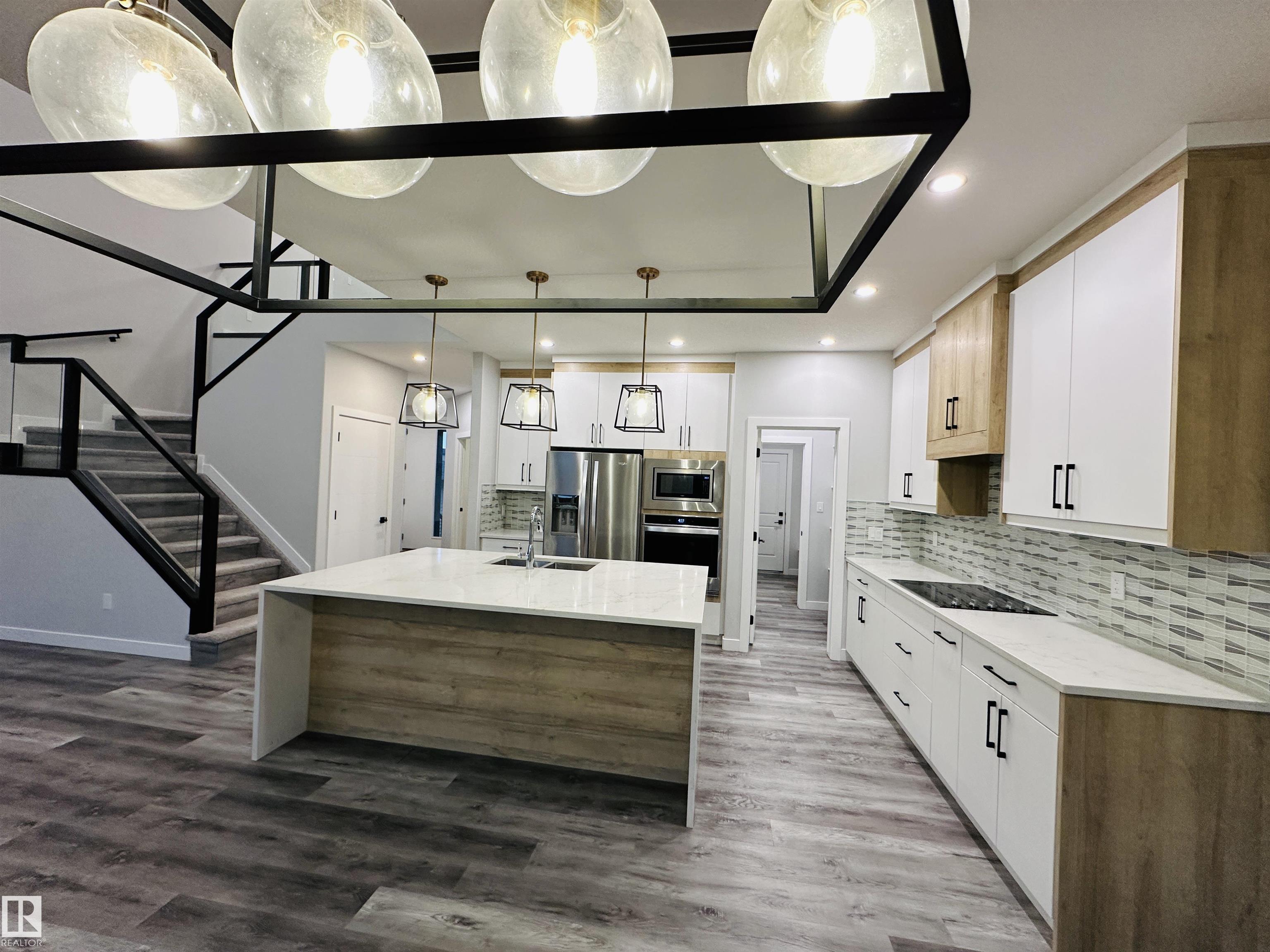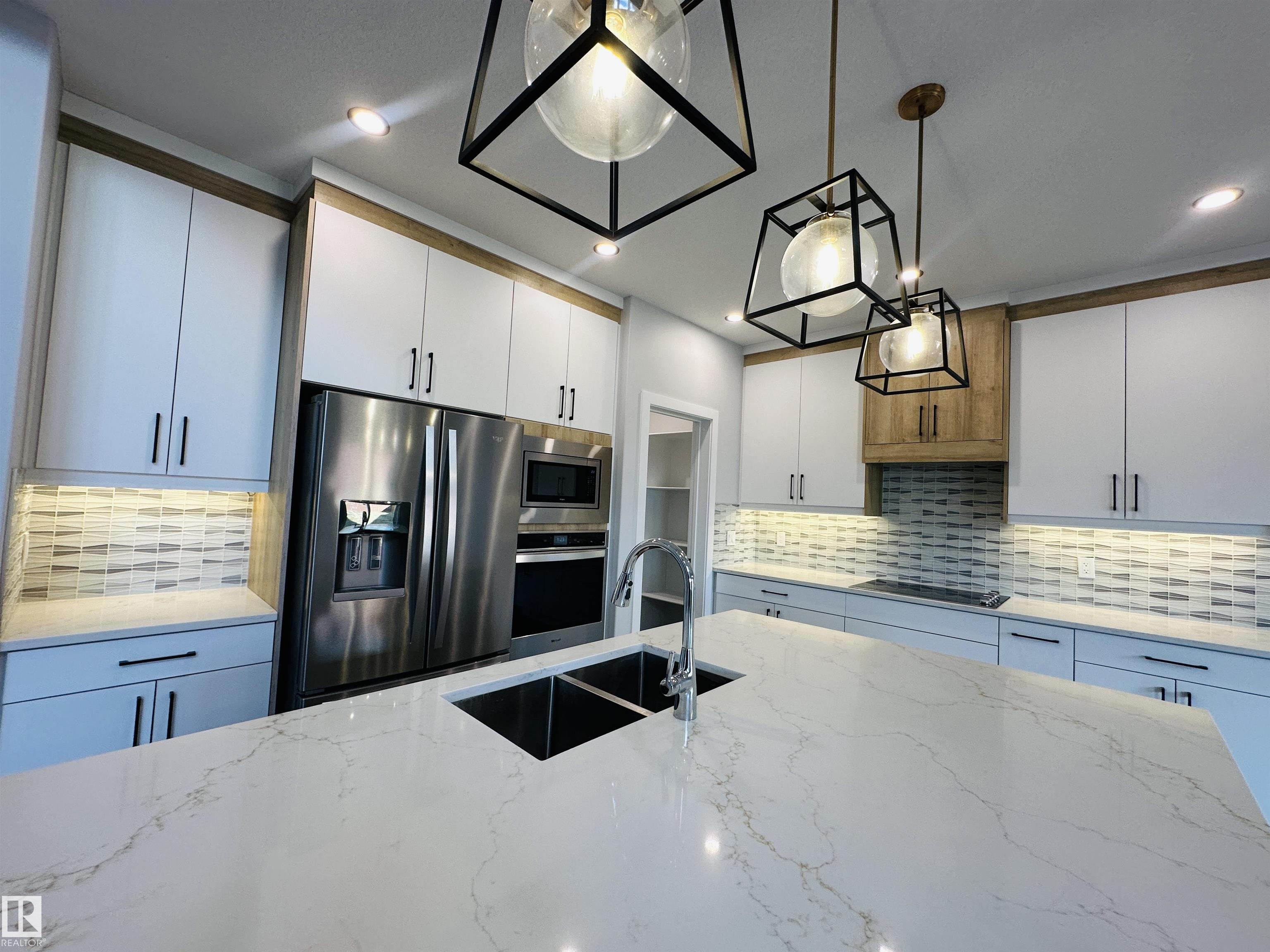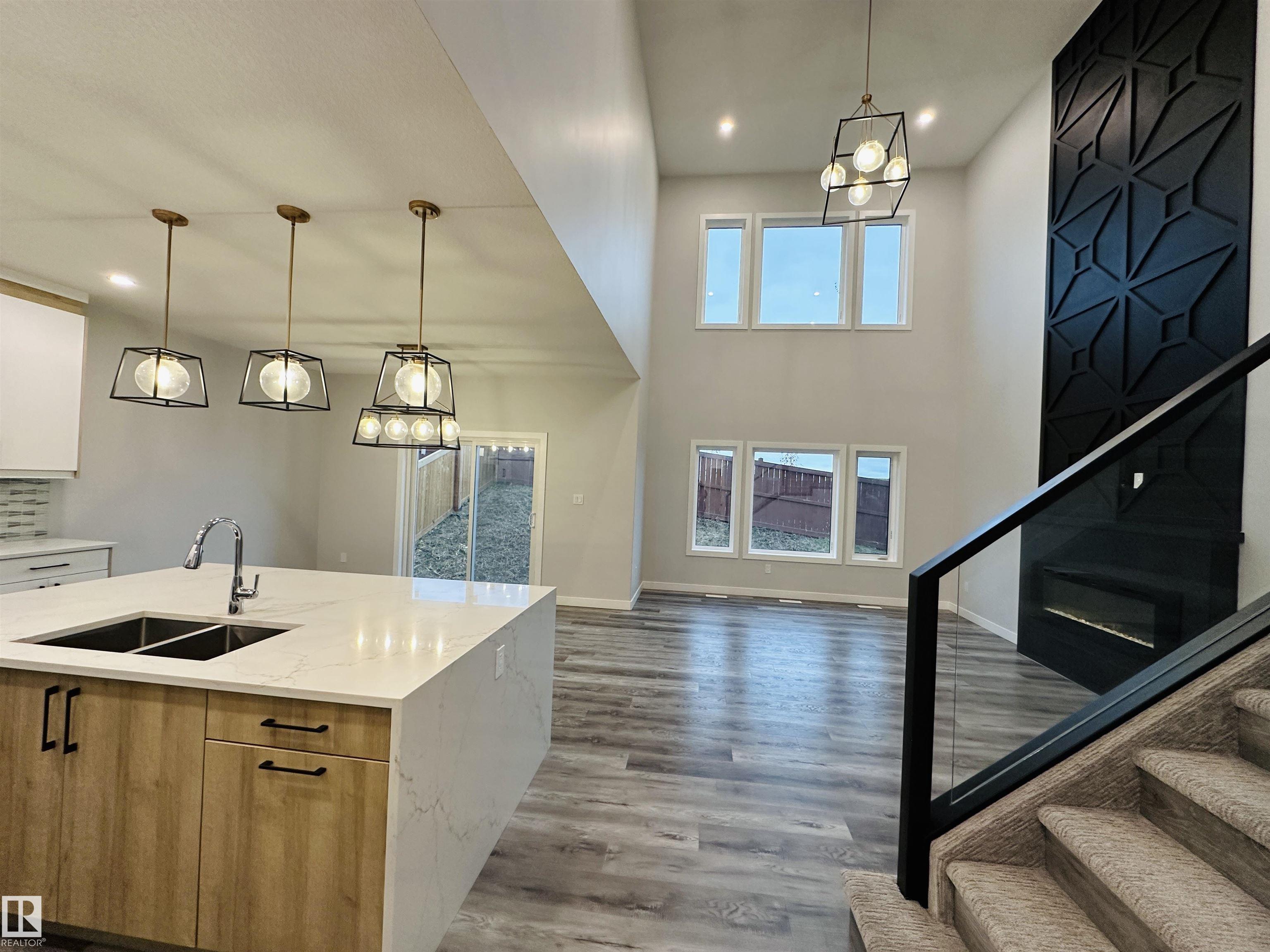 Experience refined living surrounded by nature in this custom-built 2,394 sq.ft, 28 pocket lot home. 4 bedrooms | 3 baths | bonus room | FACING A BEAUTIFUL POND & WALKING TRAILS, in the most desirable community of Tonewood, Spruce Grove. Featuring: 9 ft ceilings on main floor & basement / main floor bedroom and full bath / open-to-above living room with a striking feature wall and electric fireplace / chef's kitchen boasts quartz countertops, walk-in pantry, and full appliance package / 3 bedrooms upstairs including an oversized primary retreat with a spa-inspired 5-piece ensuite / vinyl flooring on the main floor / plush carpet upstairs / separate entrance to the basement / large windows that capture stunning pond views. Nestled in a vibrant neighborhood close to schools, parks, shopping, and all amenities, this pond-facing dream home truly has it all.