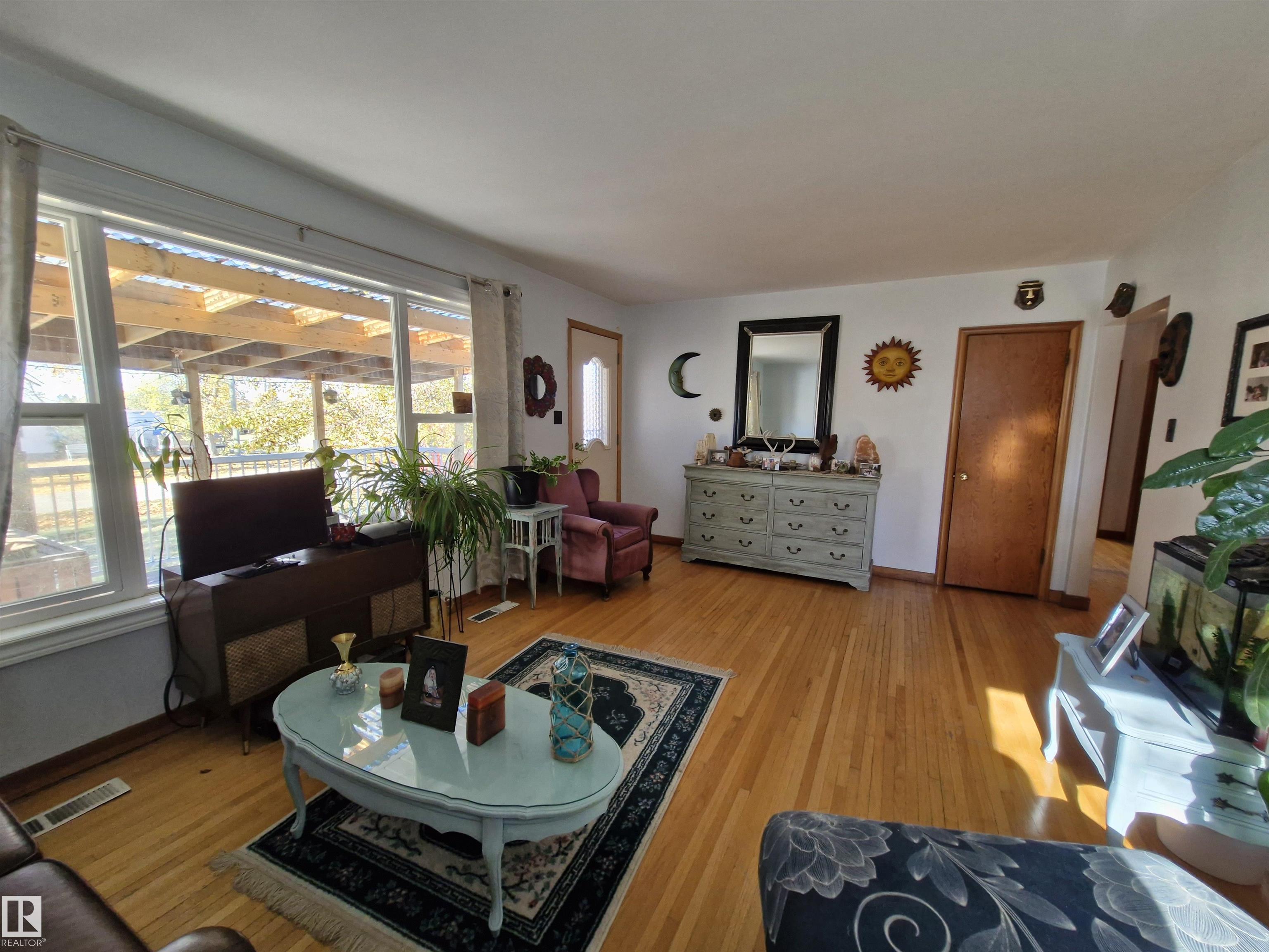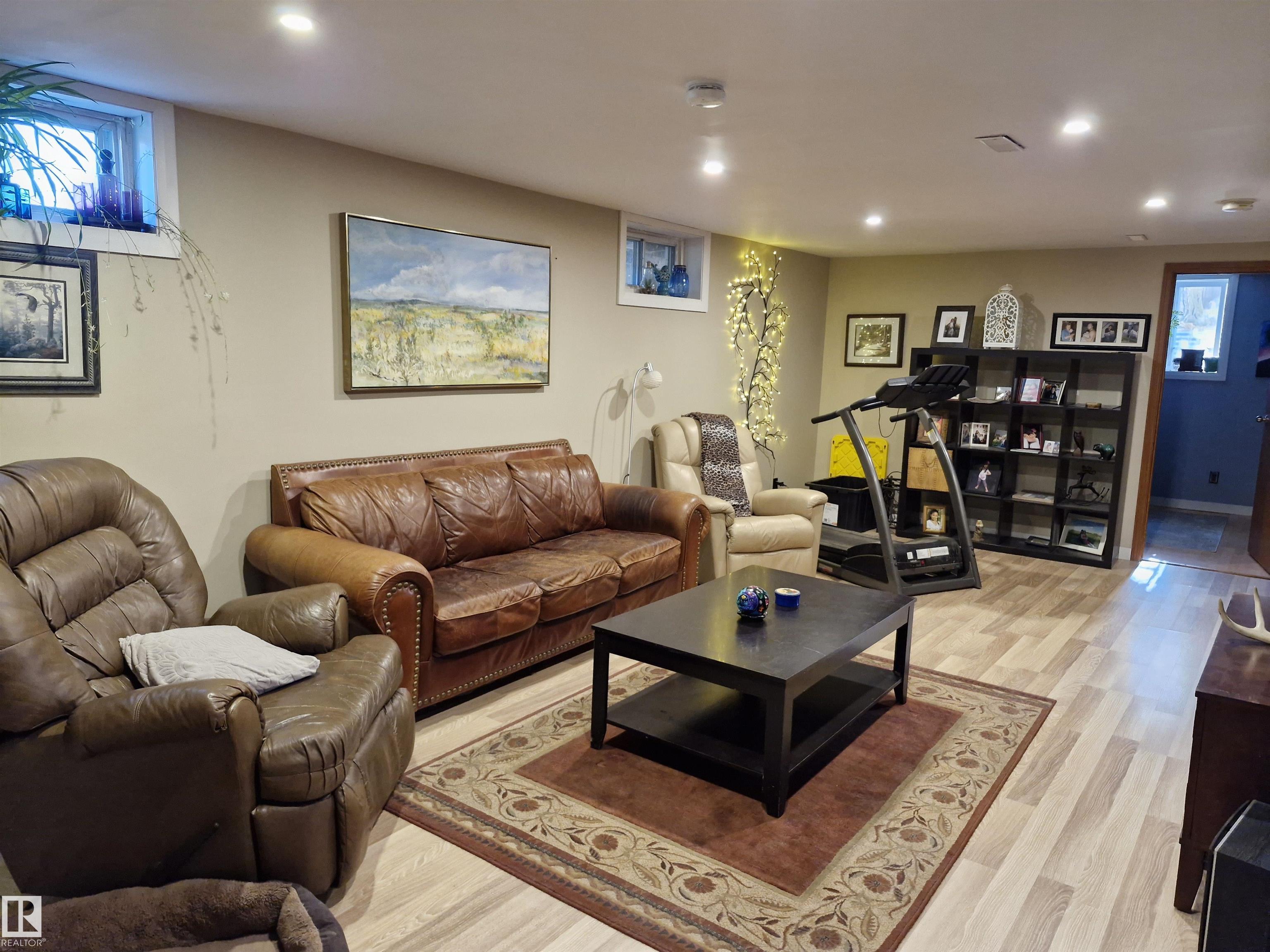 Welcome to this stunning 5 bed, 2 bath bungalow on a beautiful ¼-acre lot in peaceful Mulhurst Bay! This charming home is full of character, warmth & comfort from the moment you arrive. Enjoy a gorgeous front yard with a mature tree, a spacious covered front deck & a huge driveway leading to the attached garage. Step inside to find real hardwood floors, large bright windows flooding every room with natural light, a spacious living room, & 3 large bedrooms with amazing views of the yard. The basement is fully finished with 2 additional bedrooms, a full bath featuring a luxurious jacuzzi tub, a family room, & plenty of space to relax or entertain. Outside, enjoy a massive backyard with mature trees, a beautiful deck, & a brand new chain-link fence (2024). Water is unmetered! Use as much as you need! A fixed monthly fee covers water, sewer & garbage. Located on a quiet street with no neighbors behind, just minutes from Pigeon Lake & only 30 minutes to YEG airport. Come check out this incredible home today!