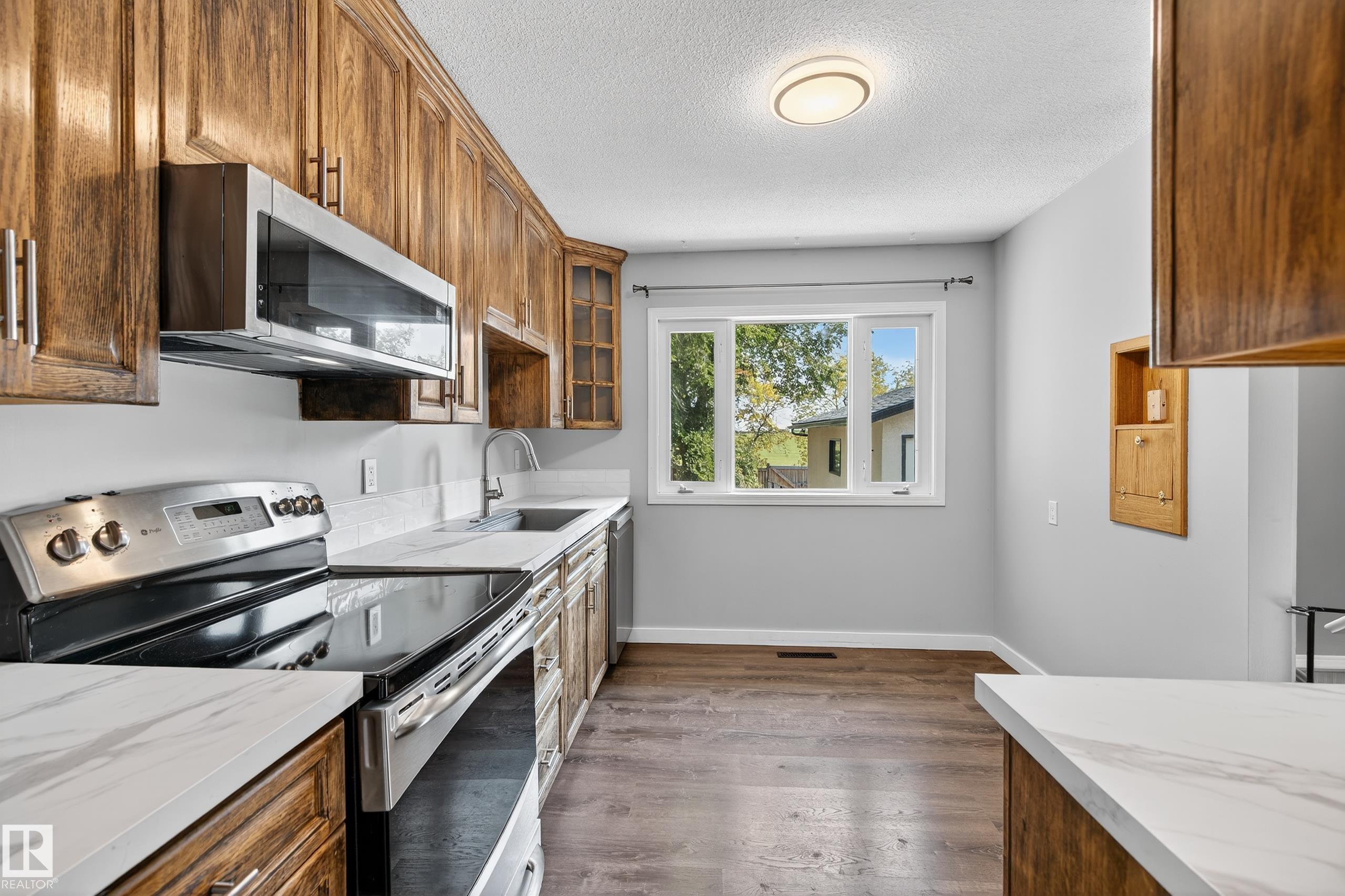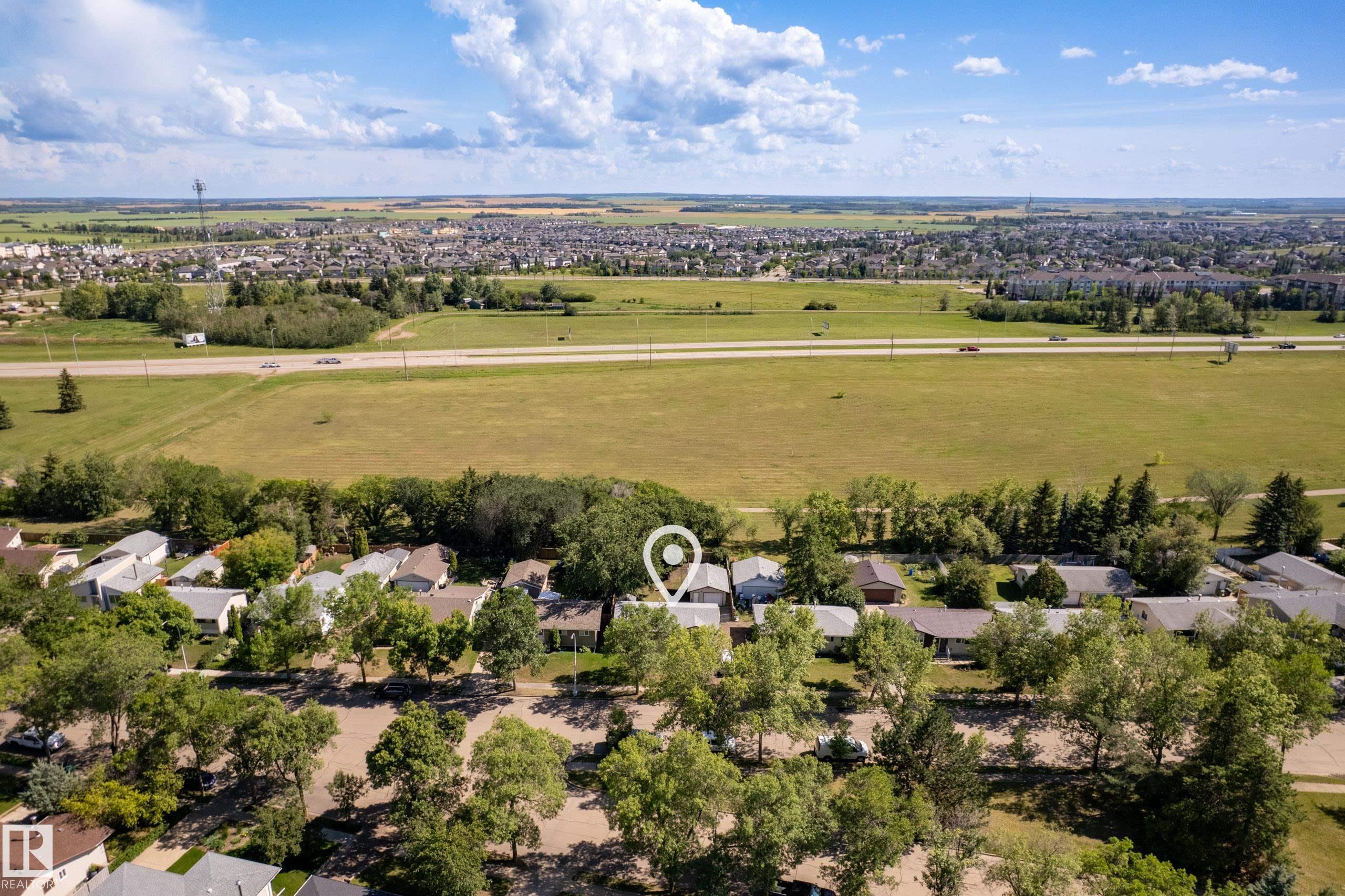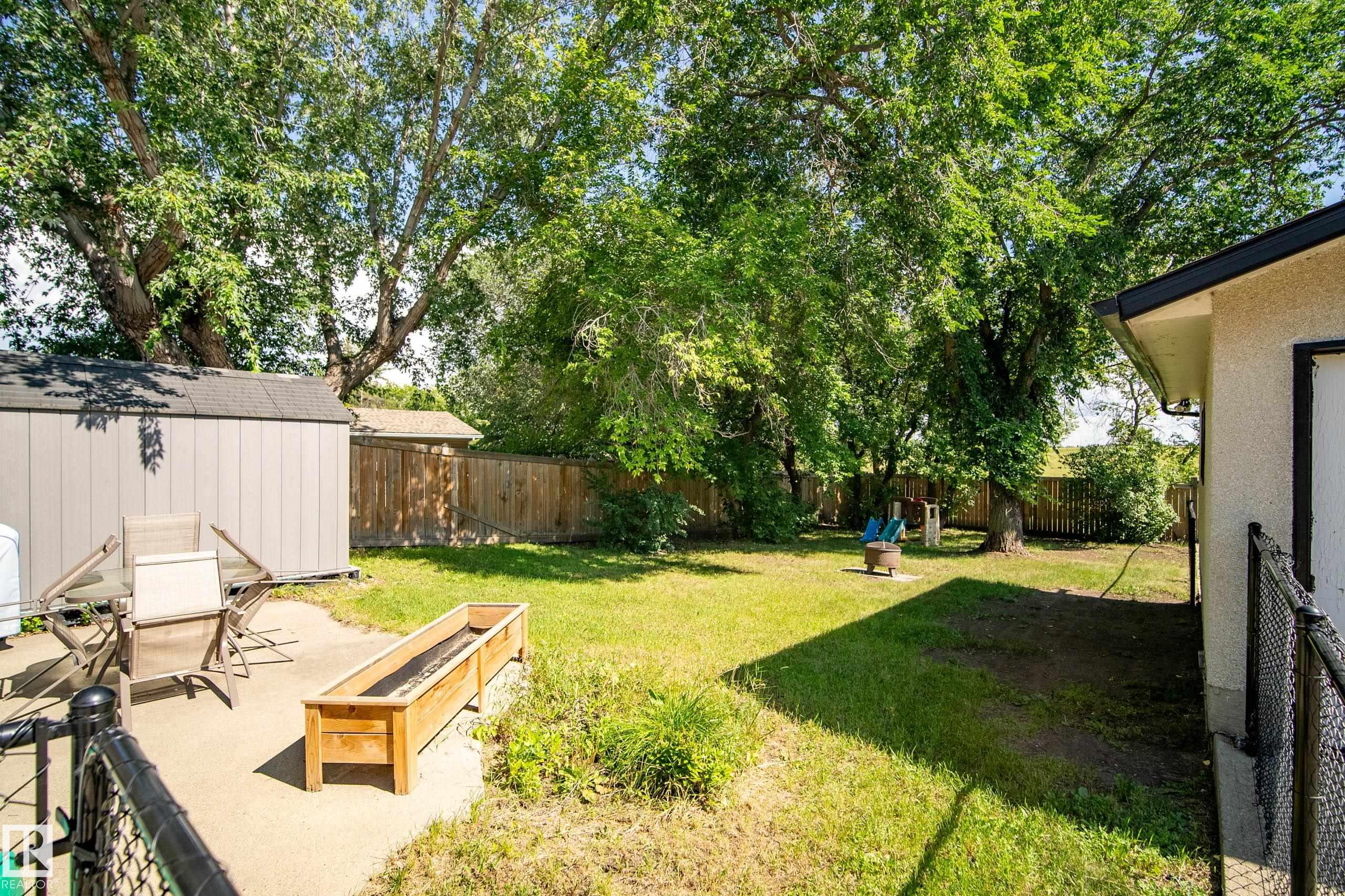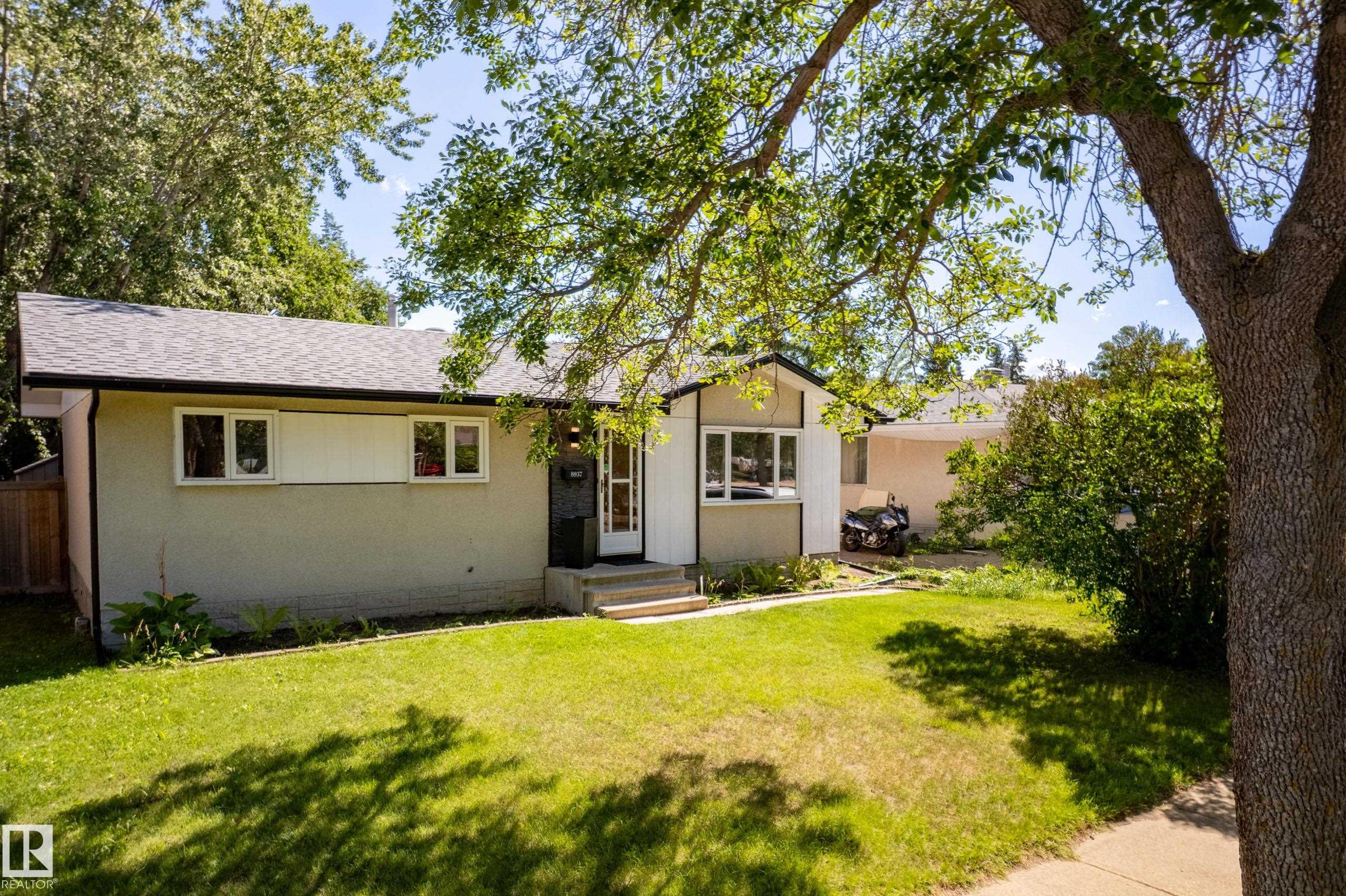 TURN-KEY home with incredible value! This beautifully updated bungalow BACKS ONTO GREENSPACE and a walking trail in the heart of Fort Saskatchewan. Located on a QUIET STREET with tons of street parking, this home offers peace and convenience. Recent upgrades include CENTRAL A/C, newer flooring, roof, windows, kitchen counters and sink, furnace, HWT, fence, eavestroughs, fascia, and more. The main floor features a bright, functional layout with a spacious living room, updated kitchen, 3 bedrooms, and a modern 4pc bath. The FULLY FINISHED BASEMENT offers a SEPARATE ENTRANCE for potential income suite development, a large rec room with electric fireplace, 4th bedroom, 2pc bath, and plenty of storage. Enjoy the HUGE BACKYARD with mature trees, a new shed, brand new DOG RUN, plus a HEATED, INSULATED OVERSIZED single garage and RV PARKING. Available for IMMEDIATE POSSESSION?this home is the perfect blend of updates, location, and flexibility!