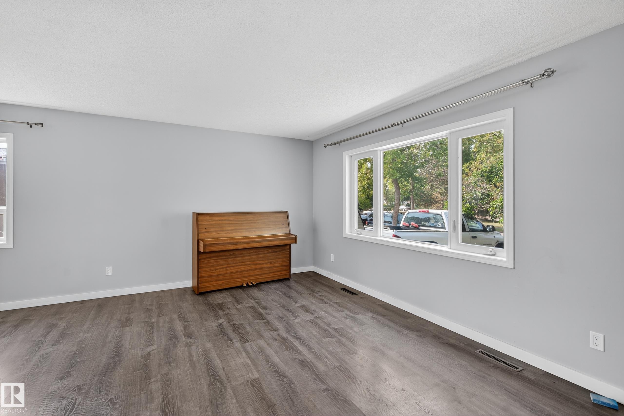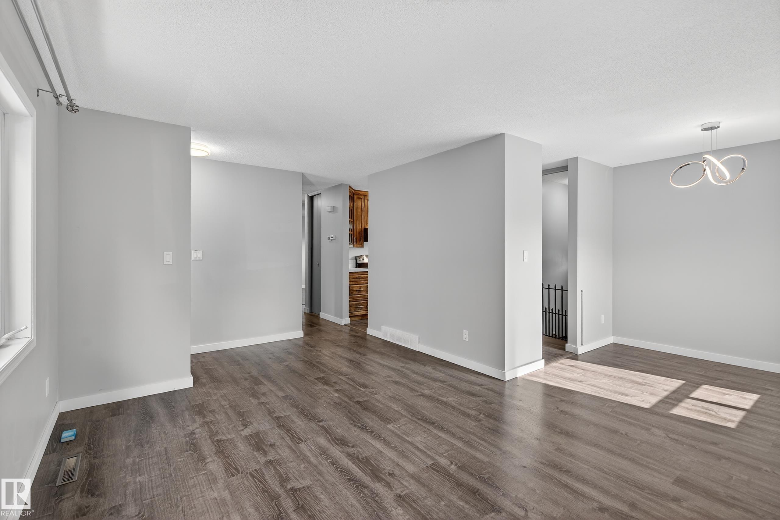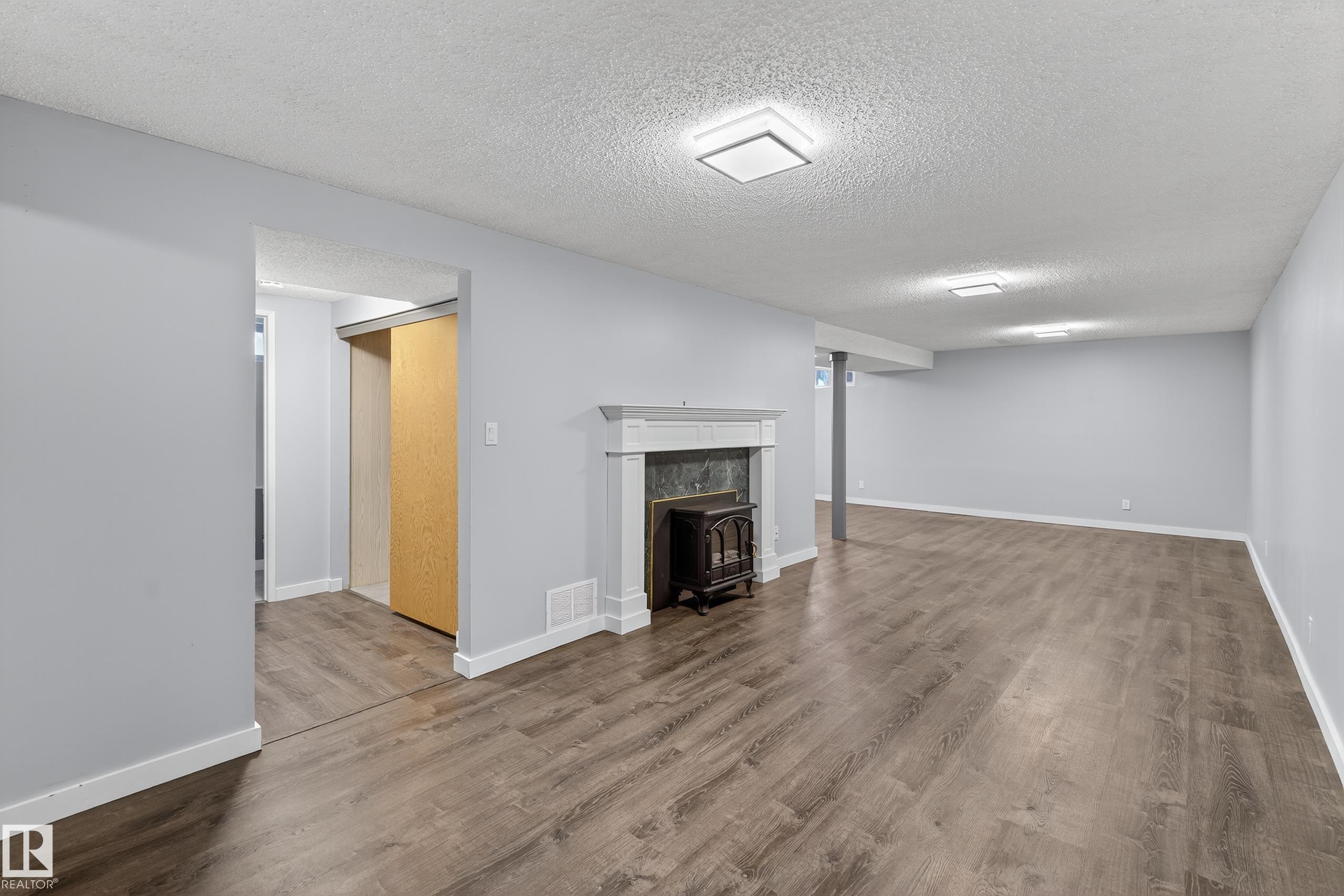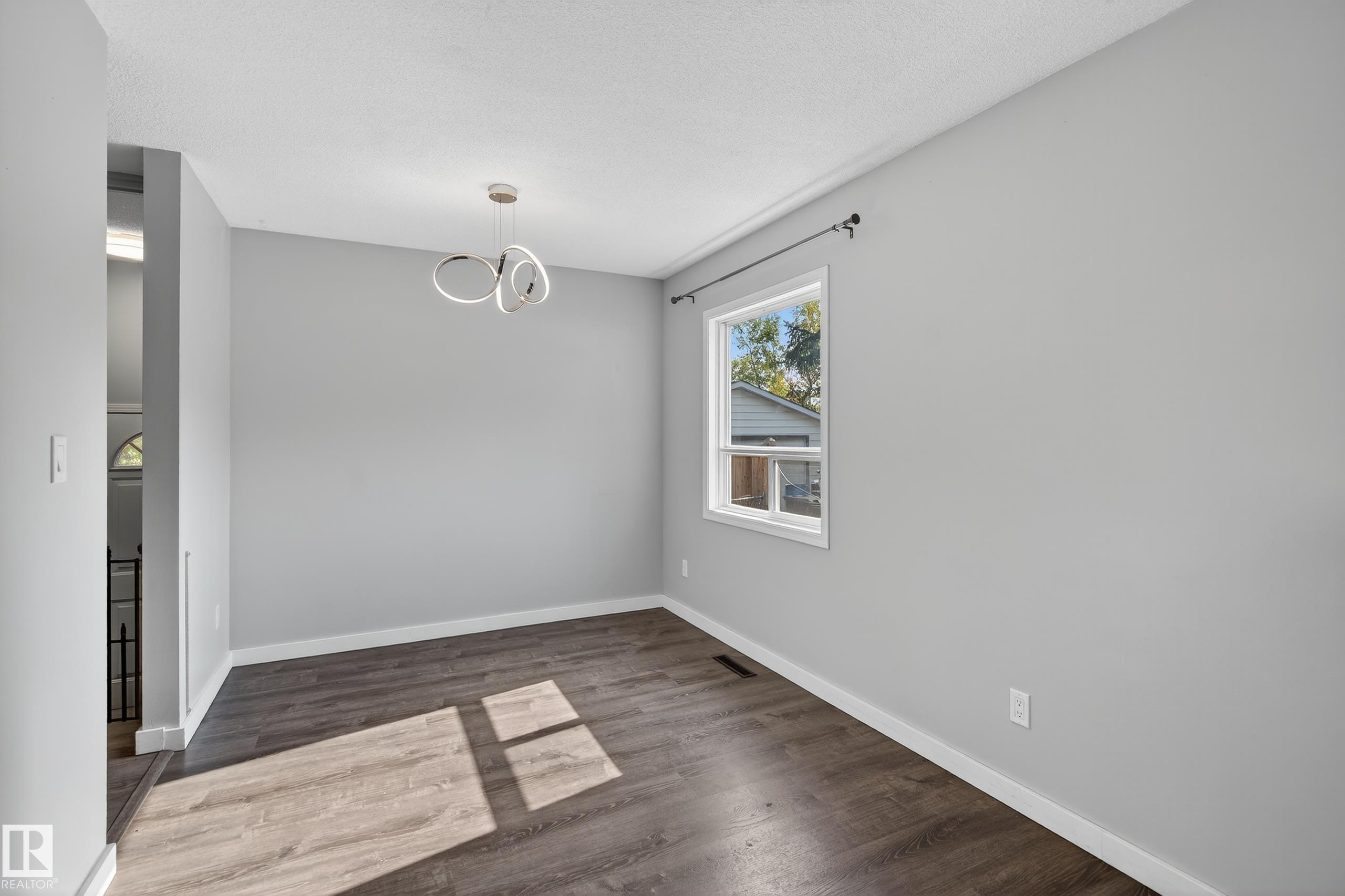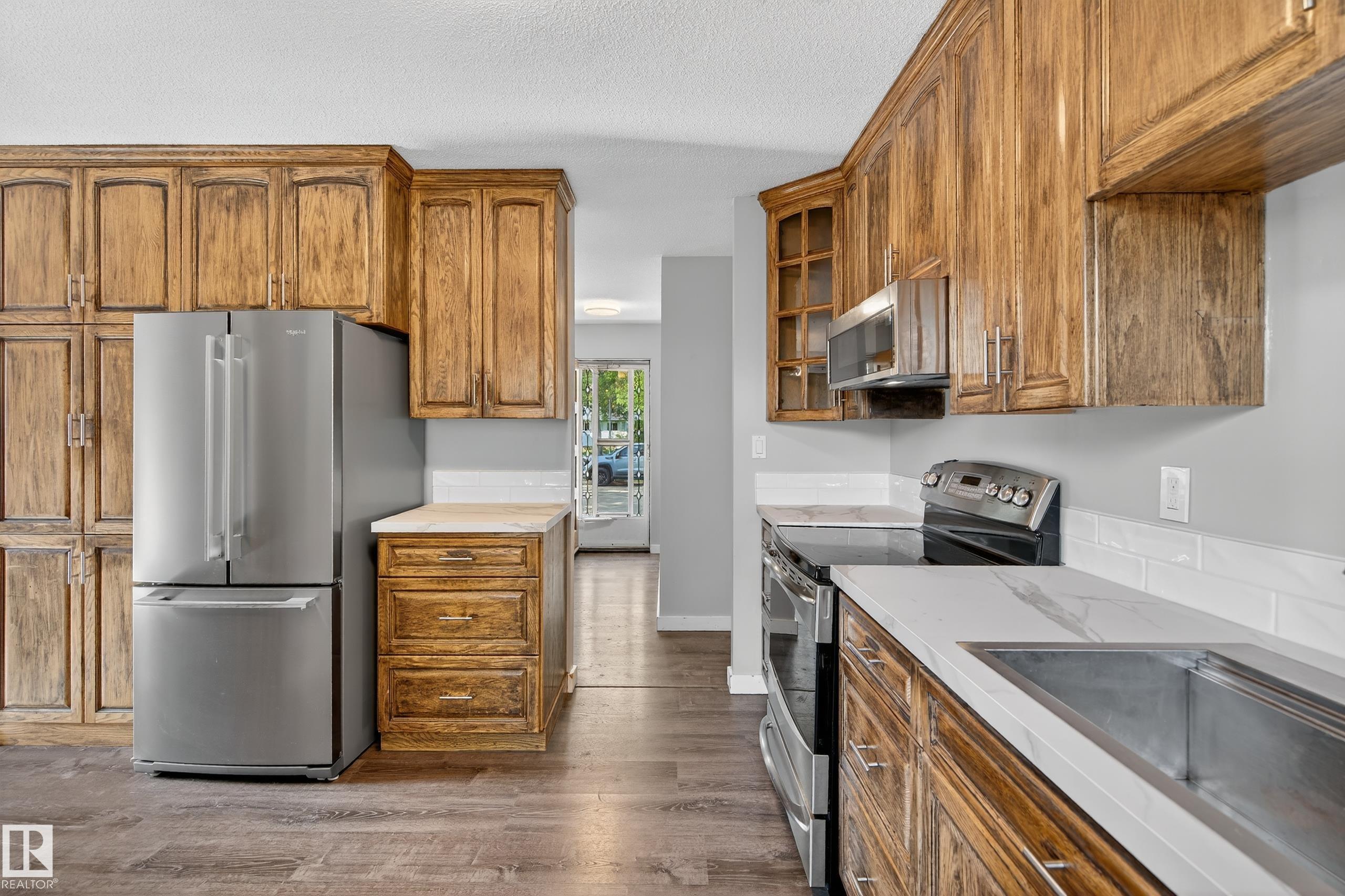 TURN-KEY home with incredible value! This beautifully updated bungalow BACKS ONTO GREENSPACE and a walking trail in the heart of Fort Saskatchewan. Located on a QUIET STREET with tons of street parking, this home offers peace and convenience. Recent upgrades include CENTRAL A/C, newer flooring, roof, windows, kitchen counters and sink, furnace, HWT, fence, eavestroughs, fascia, and more. The main floor features a bright, functional layout with a spacious living room, updated kitchen, 3 bedrooms, and a modern 4pc bath. The FULLY FINISHED BASEMENT offers a SEPARATE ENTRANCE for potential income suite development, a large rec room with electric fireplace, 4th bedroom, 2pc bath, and plenty of storage. Enjoy the HUGE BACKYARD with mature trees, a new shed, brand new DOG RUN, plus a HEATED, INSULATED OVERSIZED single garage and RV PARKING. Available for IMMEDIATE POSSESSION?this home is the perfect blend of updates, location, and flexibility!