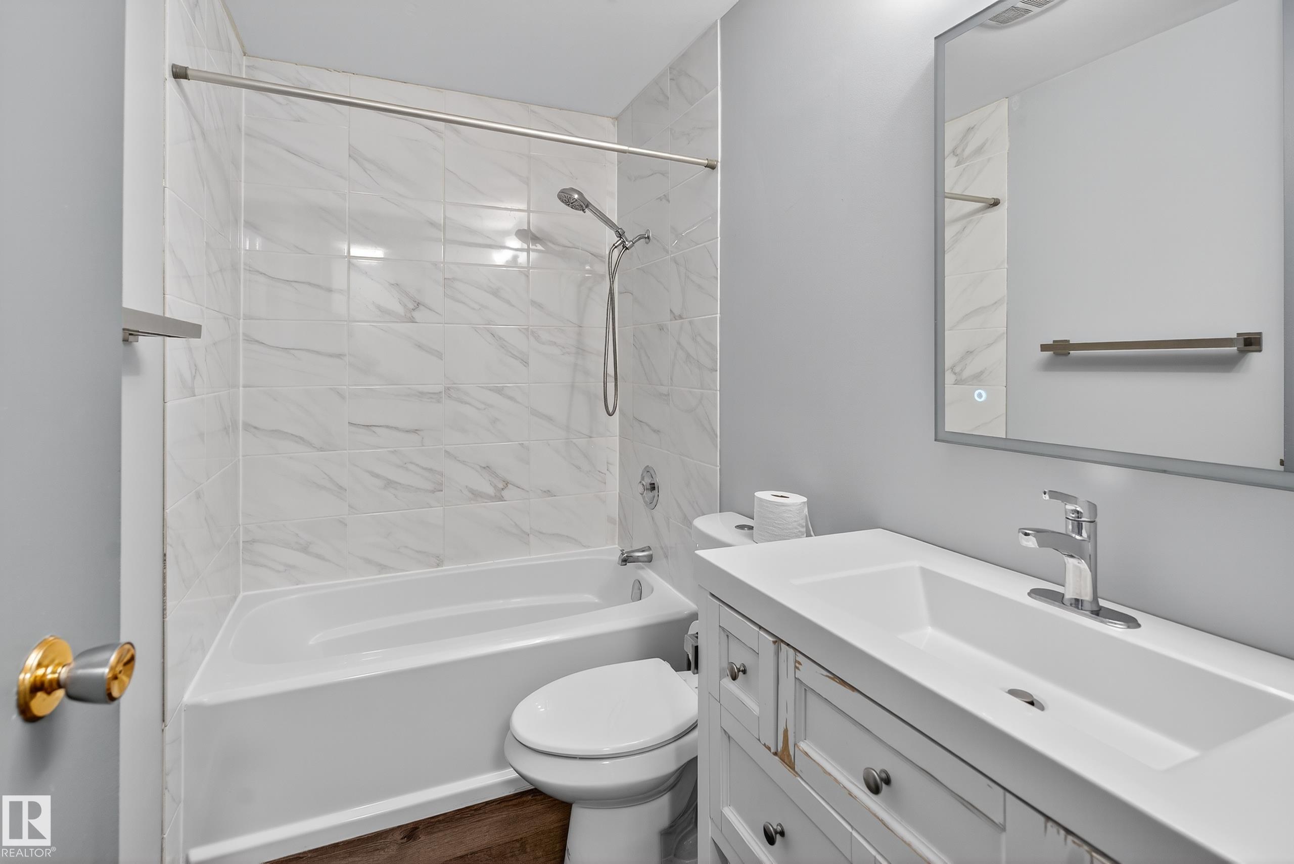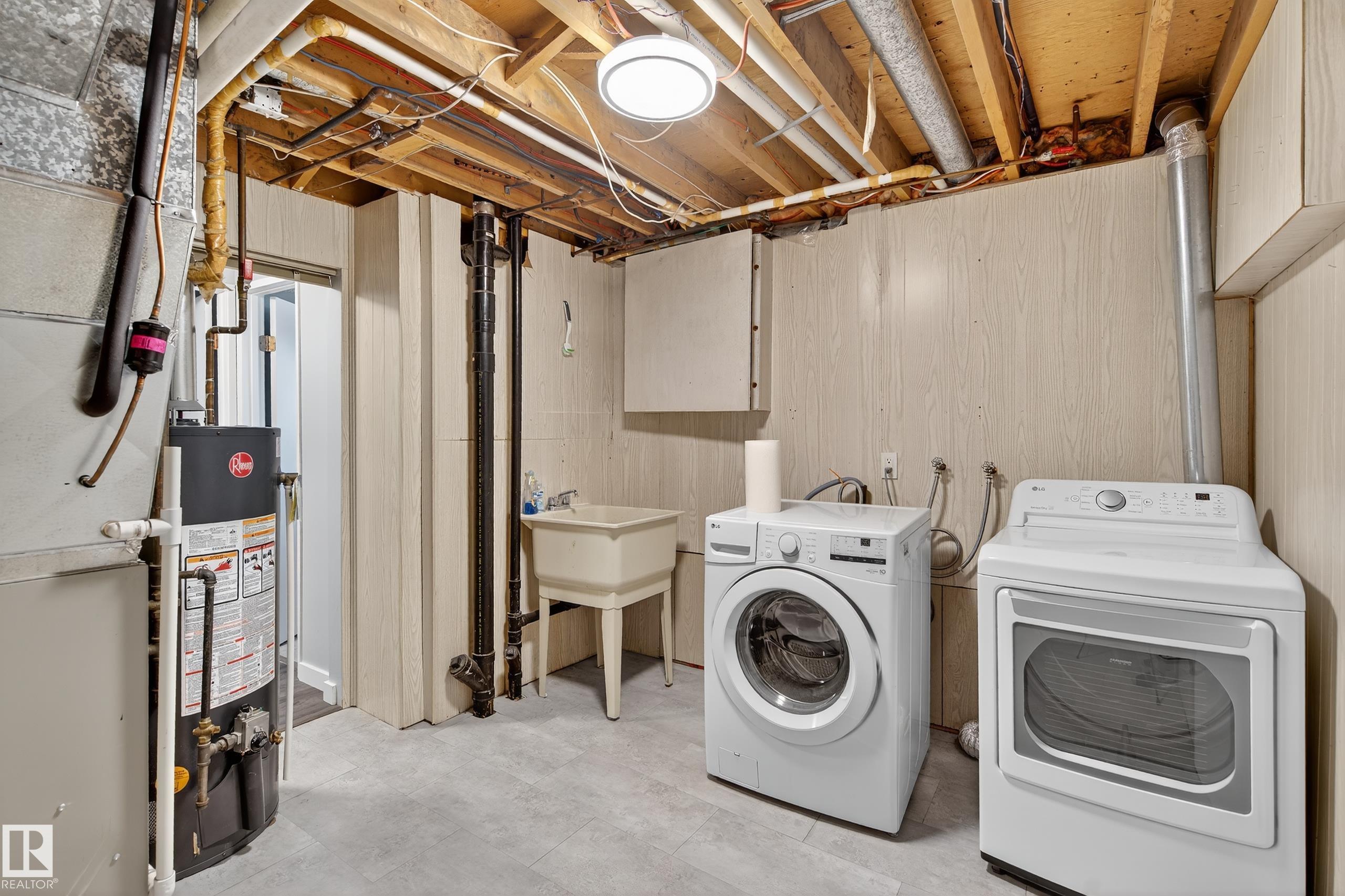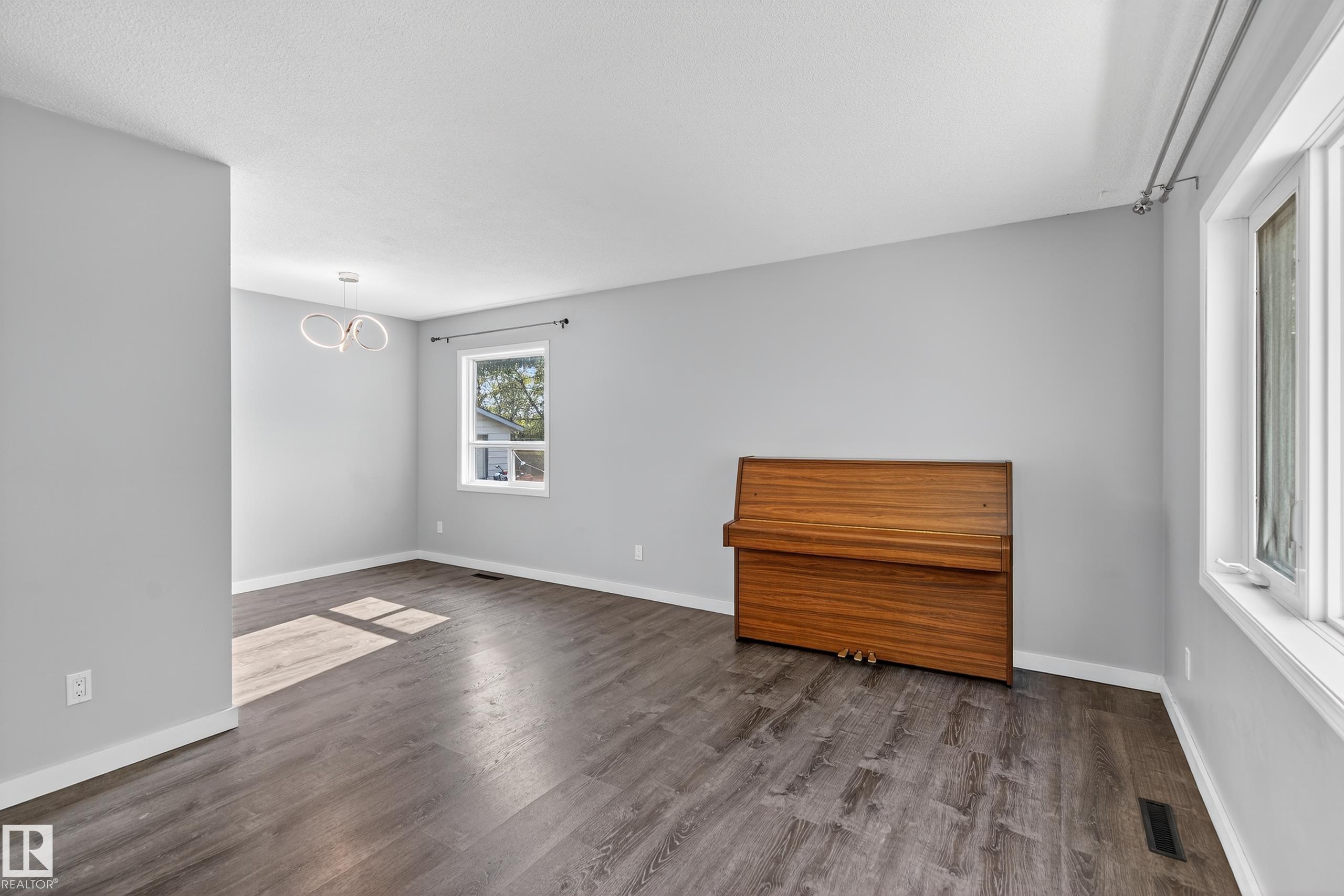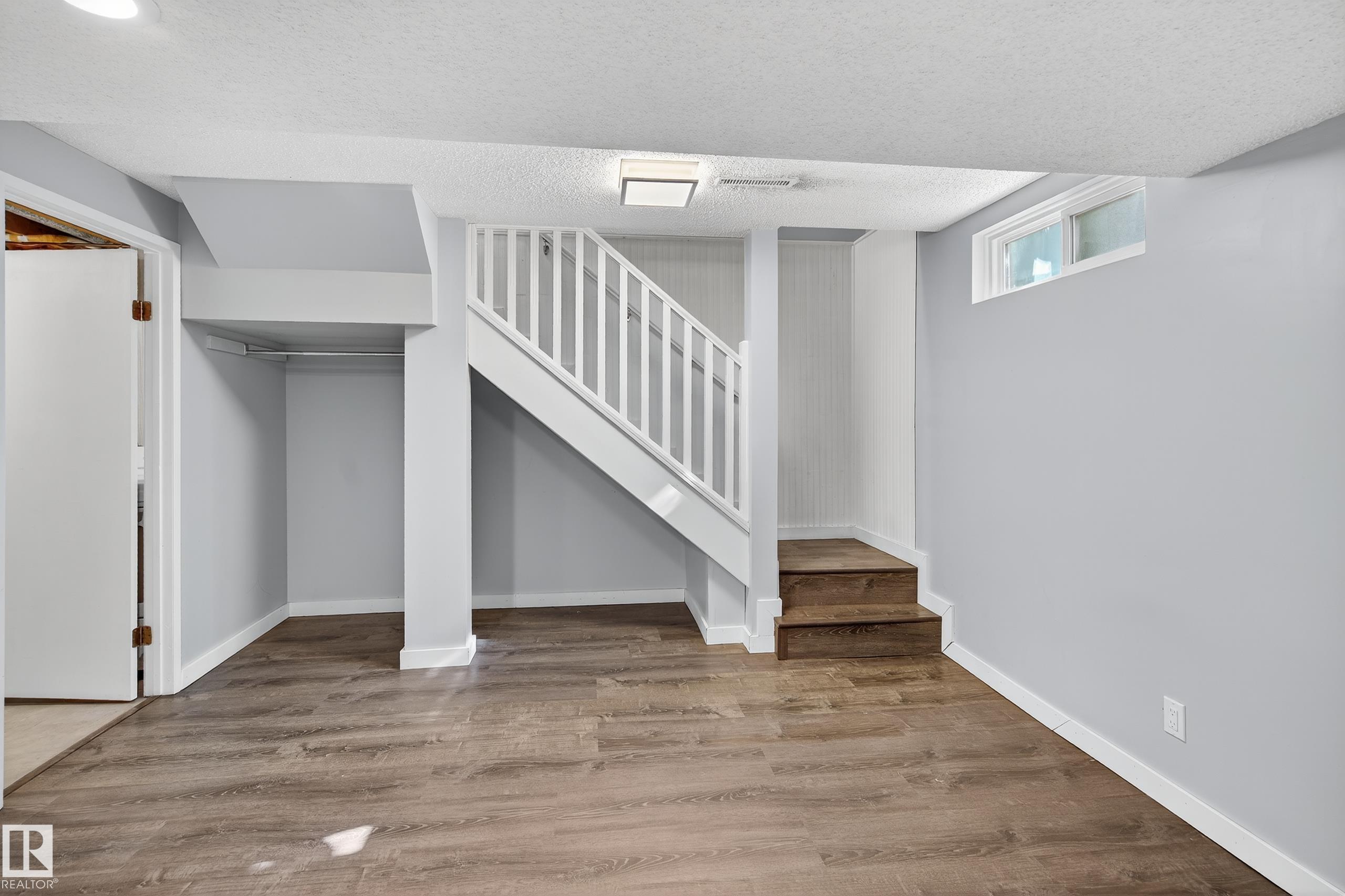 TURN-KEY home with incredible value! This beautifully updated bungalow BACKS ONTO GREENSPACE and a walking trail in the heart of Fort Saskatchewan. Located on a QUIET STREET with tons of street parking, this home offers peace and convenience. Recent upgrades include CENTRAL A/C, newer flooring, roof, windows, kitchen counters and sink, furnace, HWT, fence, eavestroughs, fascia, and more. The main floor features a bright, functional layout with a spacious living room, updated kitchen, 3 bedrooms, and a modern 4pc bath. The FULLY FINISHED BASEMENT offers a SEPARATE ENTRANCE for potential income suite development, a large rec room with electric fireplace, 4th bedroom, 2pc bath, and plenty of storage. Enjoy the HUGE BACKYARD with mature trees, a new shed, brand new DOG RUN, plus a HEATED, INSULATED OVERSIZED single garage and RV PARKING. Available for IMMEDIATE POSSESSION?this home is the perfect blend of updates, location, and flexibility!