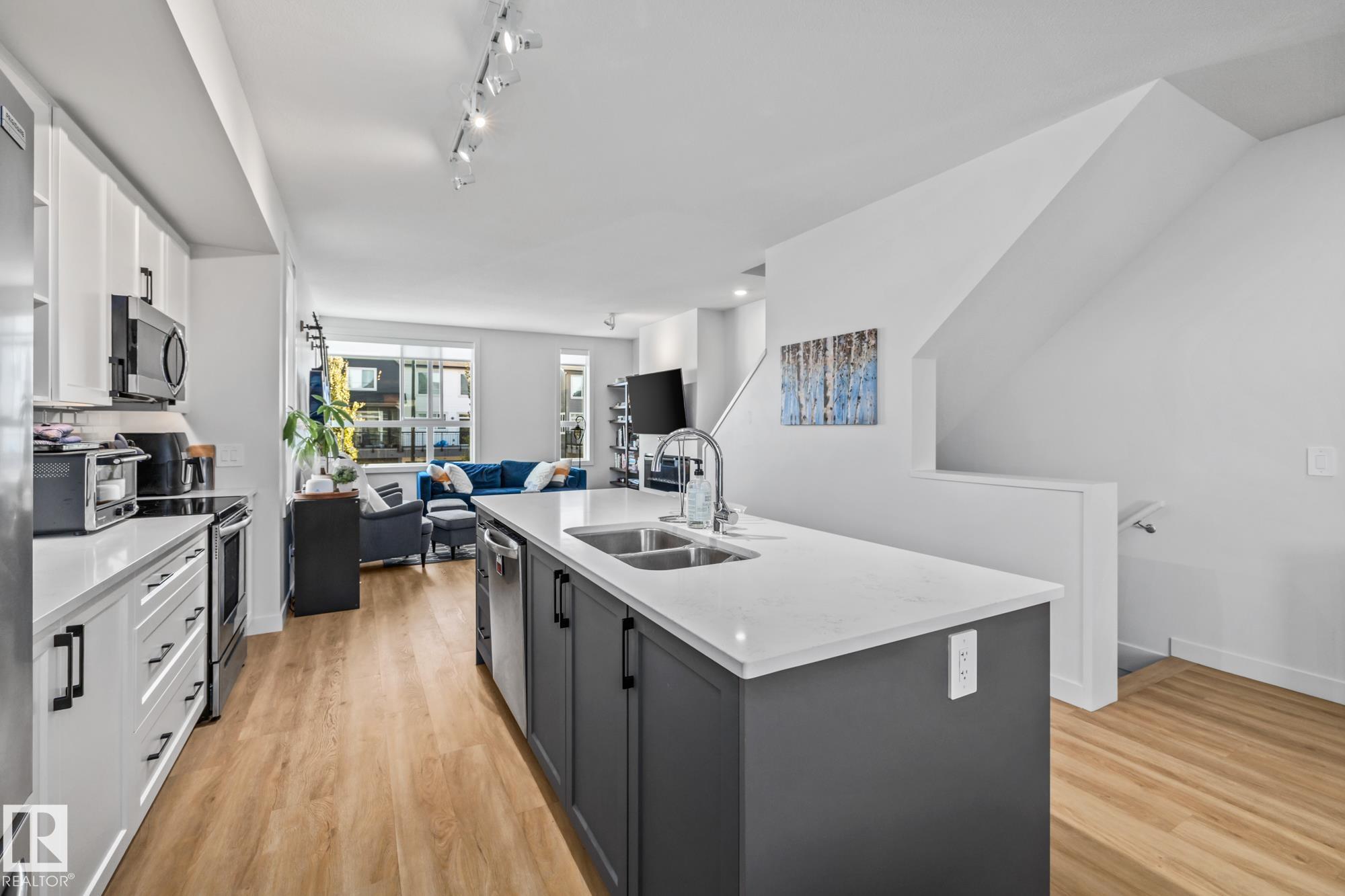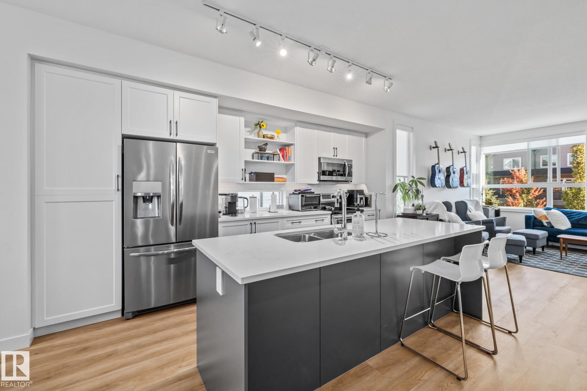Welcome to CoBalt Beach in Jensen Lakes, St. Albert?s only lake community with private beach access. This 1,479 sq. ft. 3-bedroom, 2.5-bath END UNIT townhouse offers a bright, open layout with 9-ft ceilings on the main floor and a wider floor plan than most similar units. The kitchen features quartz counters, a large island, and upgraded vinyl plank flooring upstairs. Enjoy the added comfort of air conditioning and an electric fireplace. The attached tandem garage provides plenty of space for parking and storage, plus exclusive access to the private beach and lake amenities, along with nearby schools, shopping, and restaurants.