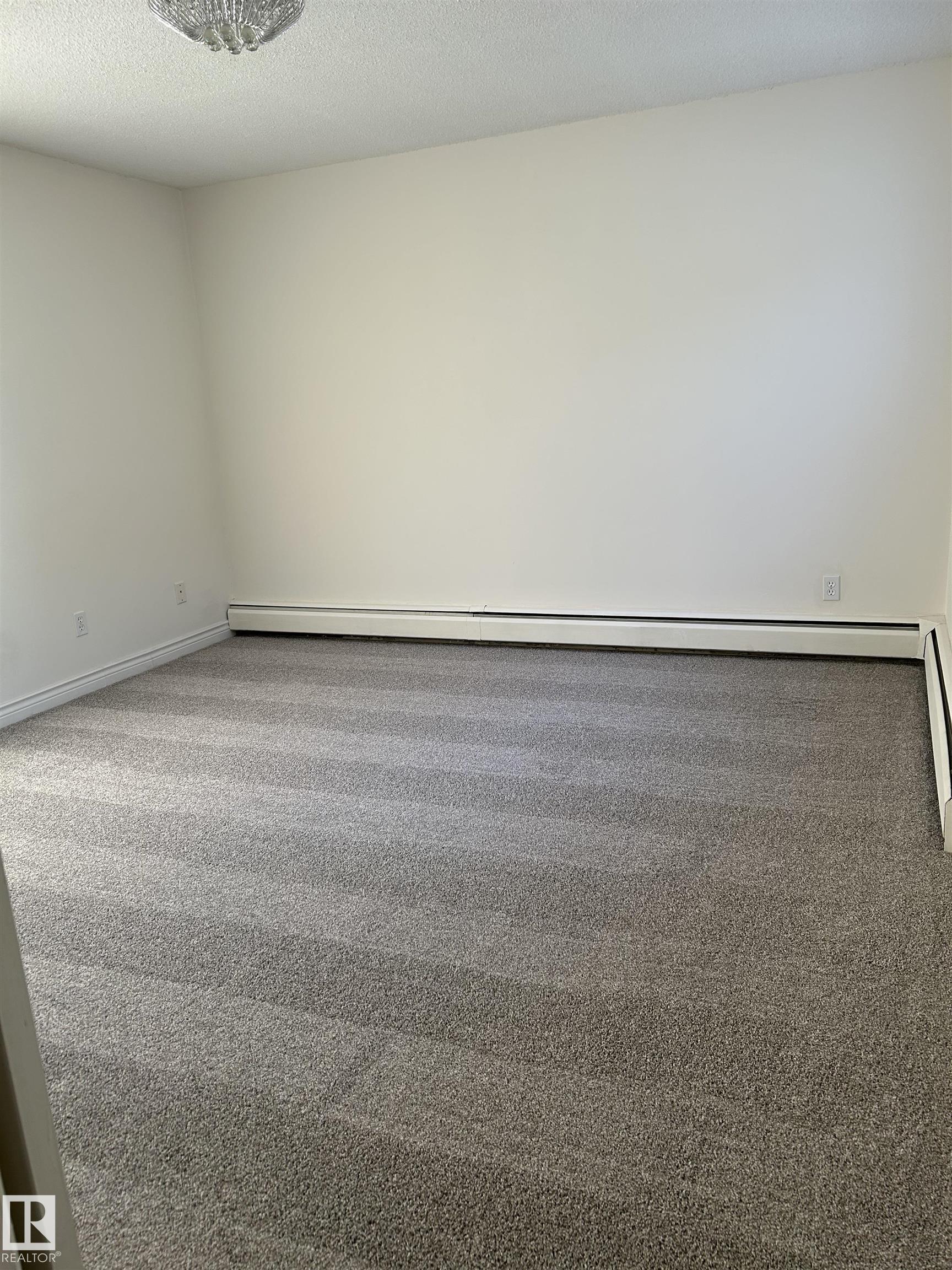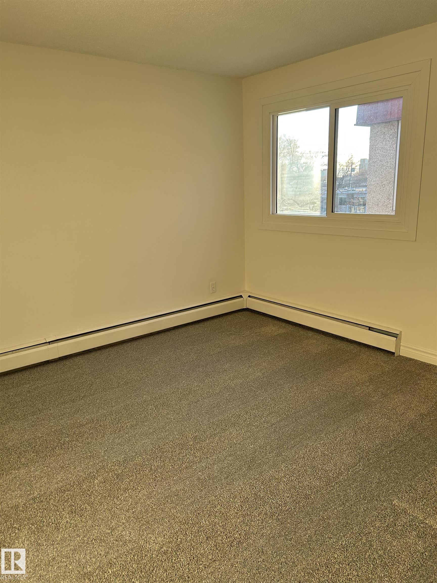 Top-floor corner unit with stunning city and Arena District views! Just a 10-min walk to Grant MacEwan, the Ice District, Brewery District, and all the shopping/dining along 104 Ave. This bright and private 1-bed condo features laminate flooring, brand new carpet in the bedroom, and a functional kitchen with classic white cabinetry and matching appliances. Large windows, patio doors, and decking were updated in 2017 to enhance both style and efficiency. The bathroom offers a clean, simple design with coordinating finishes. Enjoy free laundry with access on each floor for added convenience. The building is pet-friendly with board approval. With an open layout, unbeatable views, and a prime location, this suite is the perfect urban retreat!