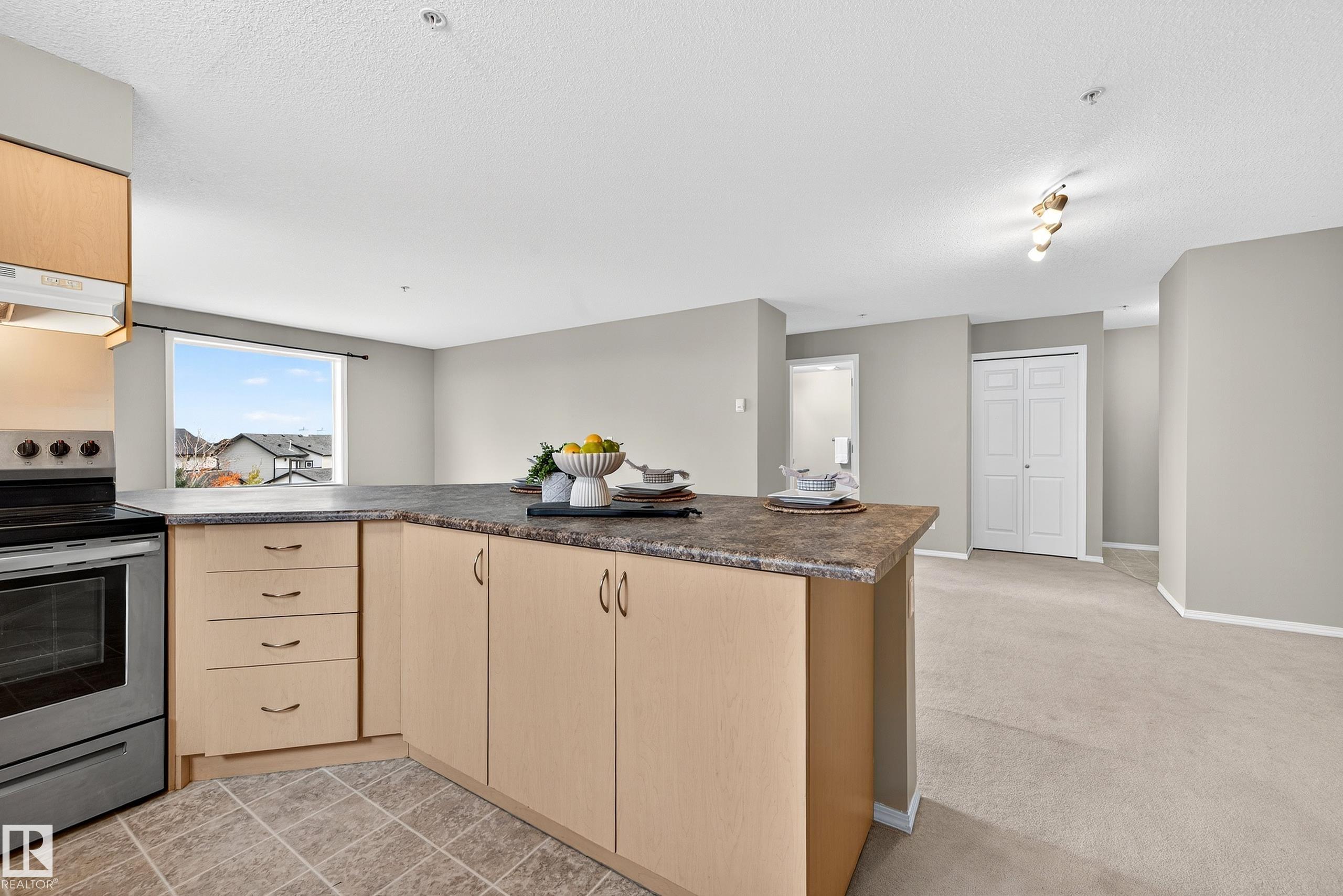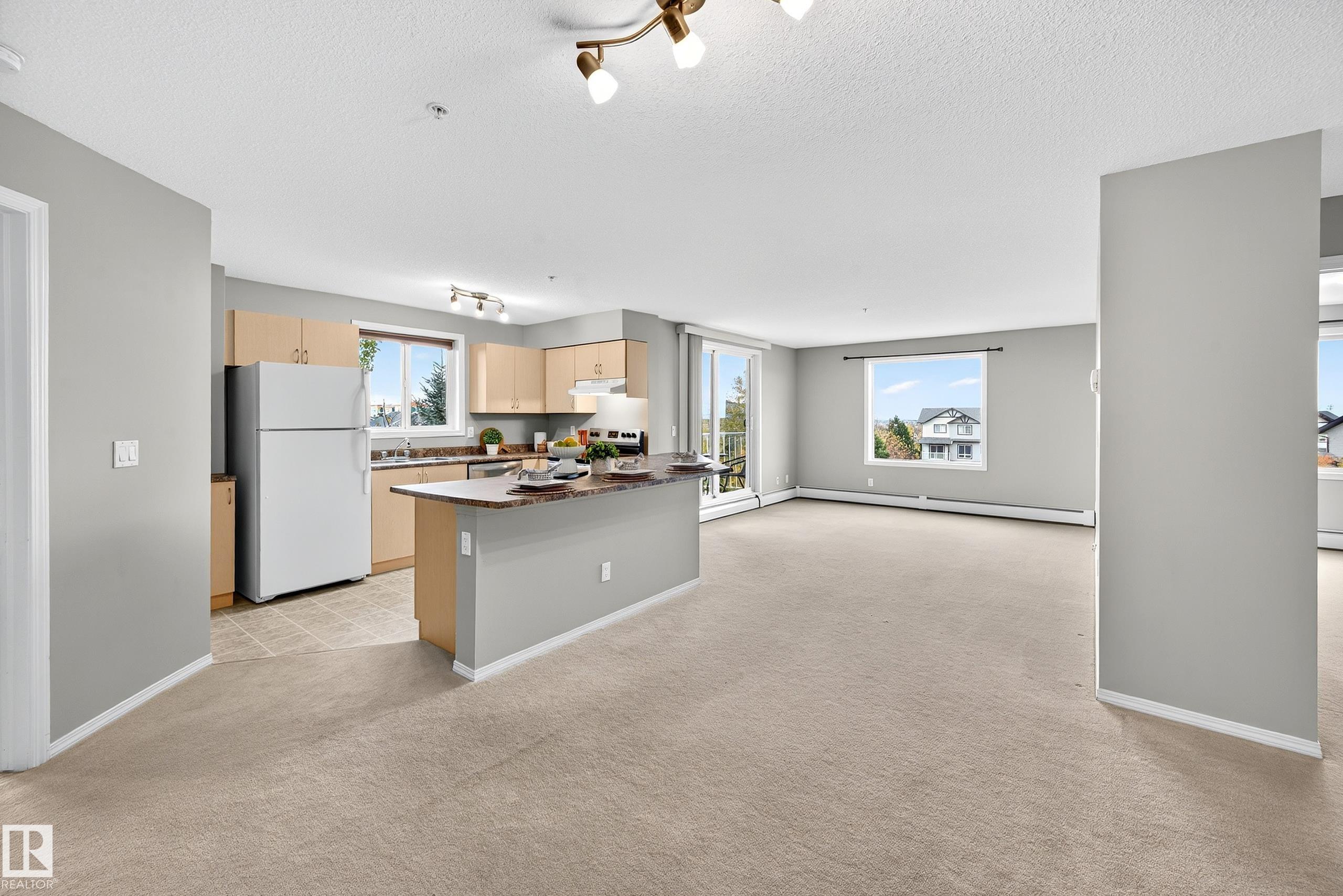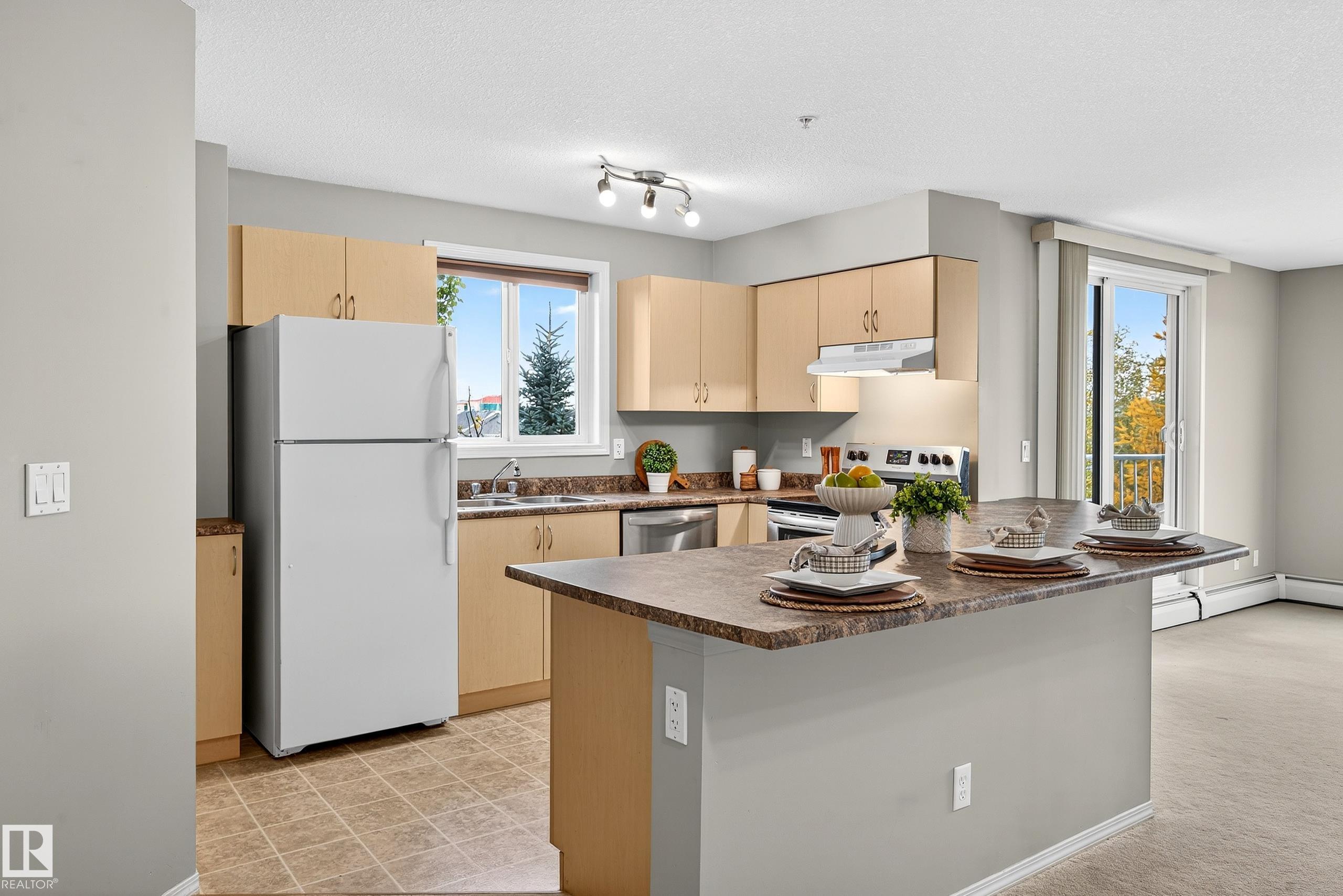 Welcome to Axxess @ Summerwood in the heart of Sherwood Park where this splendid 2-bedroom, 2-bathroom corner condo unit is ready to welcome its new owners. Fantastic location with all amenities just a hop away; shopping, hospital, schools, cafes, medical center, Emerald Hills Centre, Summerwood Park, PLUS so much more. You will LOVE the abundance of large windows that brings in array of natural light throughout. Great open concept layout with neutral tonnes aimed to please. Entertaining peninsula style eat-on countertop anchors spacious kitchen that overlooks living room with large west facing balcony (BBQ gas line). Primary suite has private walk-thru WIC to ensuite. Spacious foyer, in-suite laundry, lots of storage space, appliances, abundance of kitchen cabinetry, professionaly cleaned carpets, reasonable condo fees in well maintained complex makes this opportunity a GEM purchase. Fantastic for 1st time buyers or investors. Don?t let this one slip away?MUST SEE!