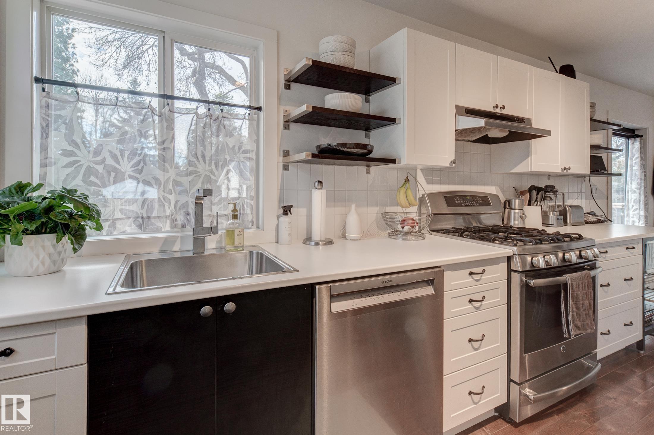 Discover unparalleled quality and location in this absolutely mint condition 2 plus 1 bungalow, nestled in the highly sought after neighbourhood of North Glenora. Key features include; Modern and open main level design with a renovated kitchen and bath, heated bathroom floor, newer windows and shingles (house). Professionally finished basement which can be accessed from a separate side entrance. The recently completed bright and spacious lower level is a true standout, offering an  additional bedroom, a stunning full bath, a mini kitchen with island, and a generous entertainment area. South facing backyard highlights a tiered deck, firepit and double garage. Impeccable condition from top to bottom, this home shows 10/10.