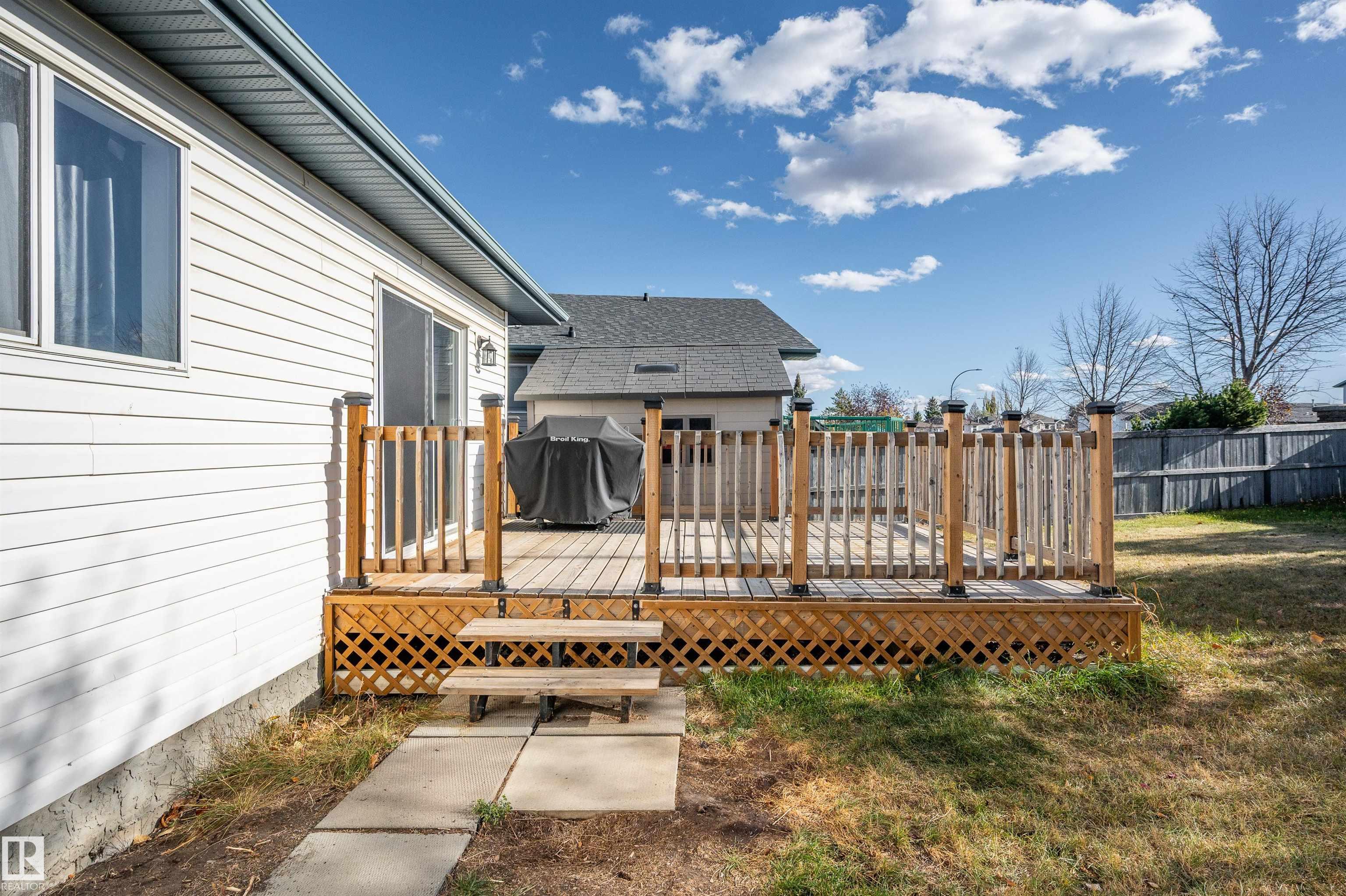 Welcome to this charming "Belmont" floor plan offering a bright front living room with vaulted ceilings and a beautiful bay window. The spacious eat-in kitchen features a pantry, built-in microwave/cookbook shelf, and patio doors leading to an oversized south-facing deck ? perfect for entertaining. The main level includes a full bathroom and a private ensuite in the primary bedroom. Neutral décor throughout. Includes 5 appliances and all window coverings. Enjoy a nicely landscaped and fully fenced yard with excellent curb appeal and large cul de sac location. Ideal for young families, first-time buyers, or down sizers!
