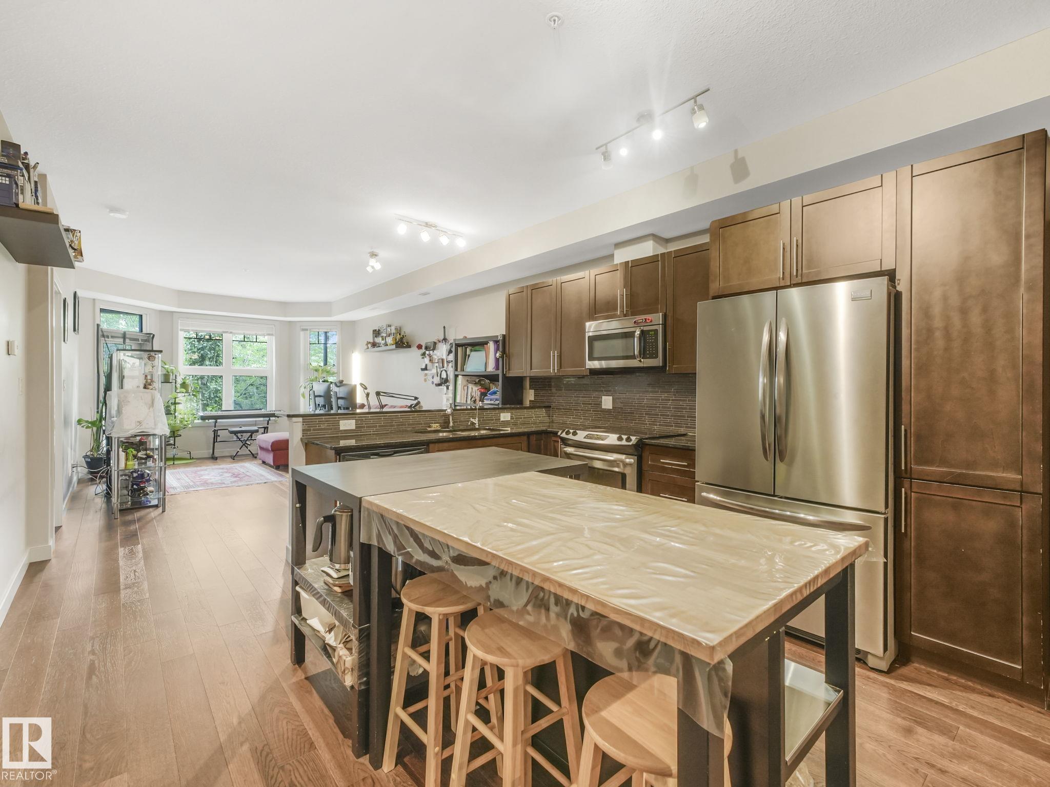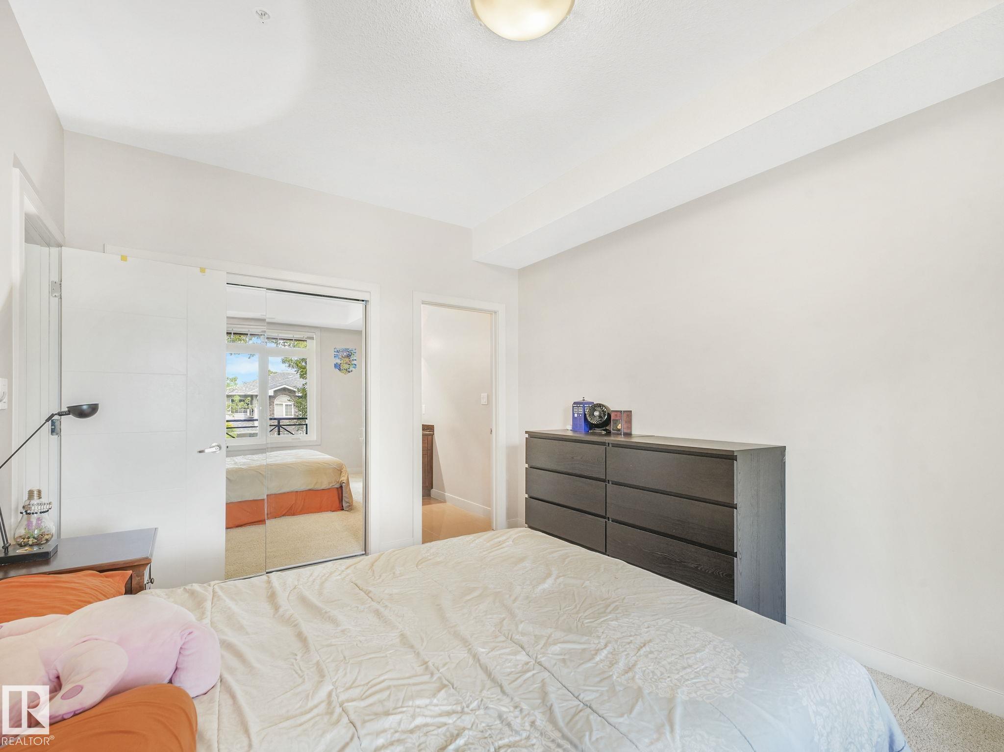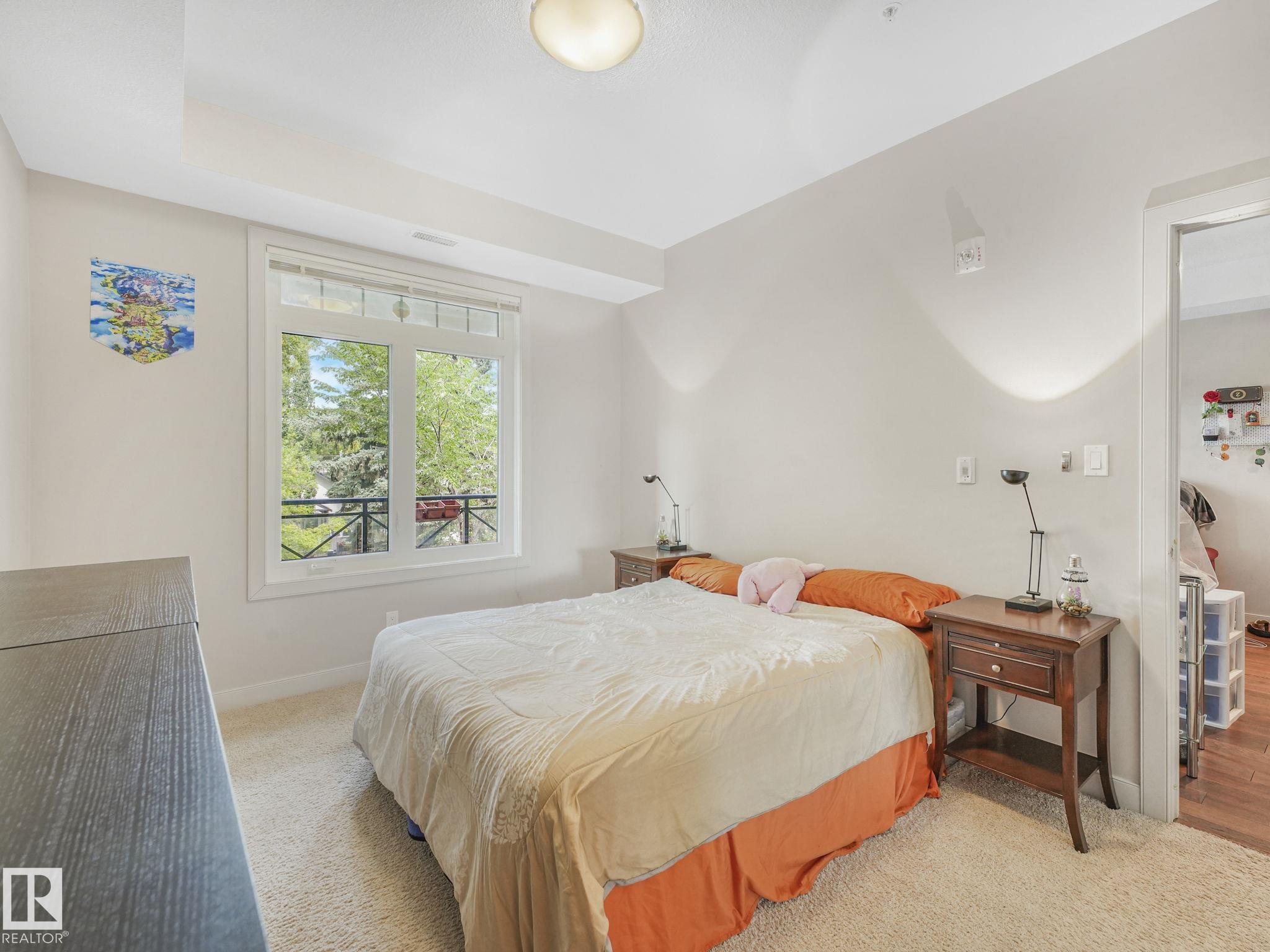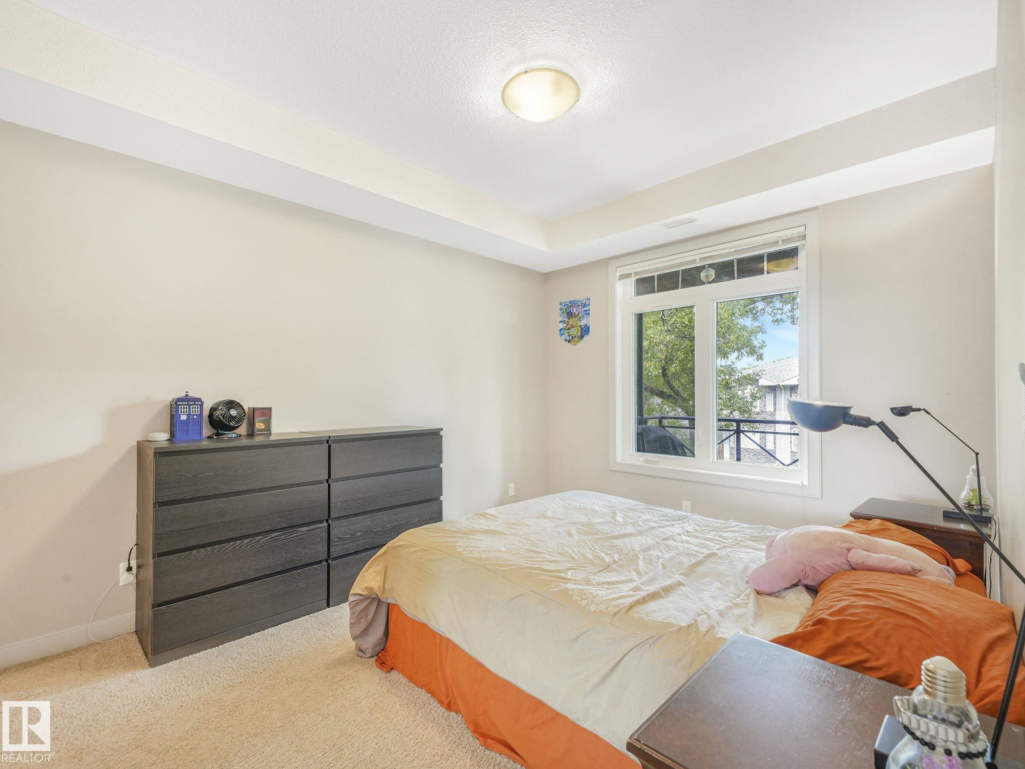 Bright, modern 2 bdrm, 2 bth in one of the most sought-after central communities - vibrant Queen Alexandra. The perfect blend of convenience, comfort & lifestyle. Designed for easy living & entertaining. The spacious, open-concept living area flows onto a private patio overlooking a beautiful tree-lined street - ideal for morning coffee or evening relaxation. Kitchen is functional & stylish, with SS appliances & raised eating bar. Well-sized bdrms, with the master offering a full ensuite. In-suite laundry & storage cage add to the practicality of this home. Whether you're biking to work or class, this location is unbeatable: bike lanes connect you to the U of A & downtown, or take one bus straight to campus. Just 15 min from nearly every major roadway - perfect for commuting or weekend getaways. Enjoy heated underground parking with 4 visitor stalls - rare & incredibly convenient. Don?t miss your chance to live in a walkable, bike-friendly community & unbeatable access to everything Edmonton has to offer
