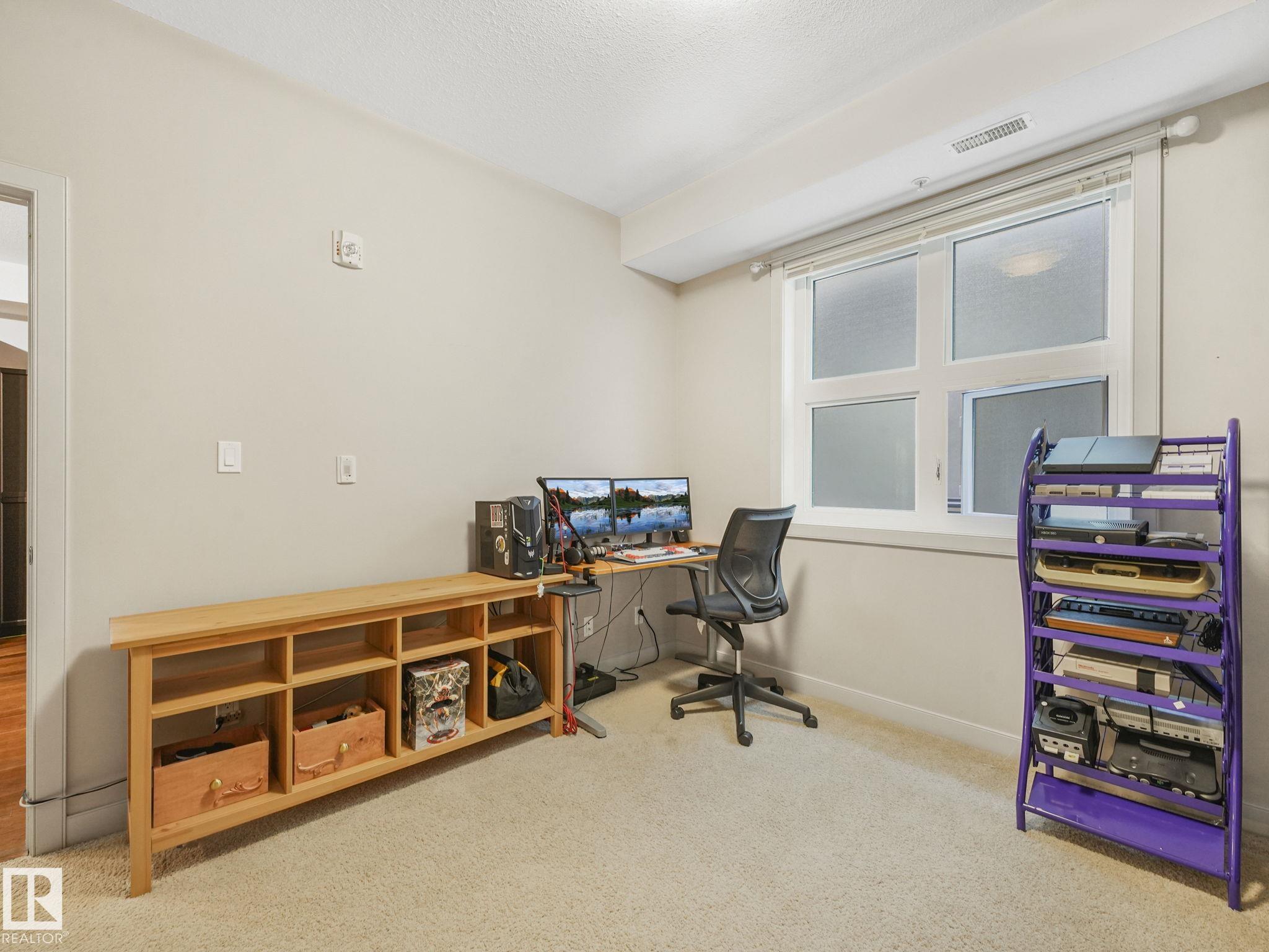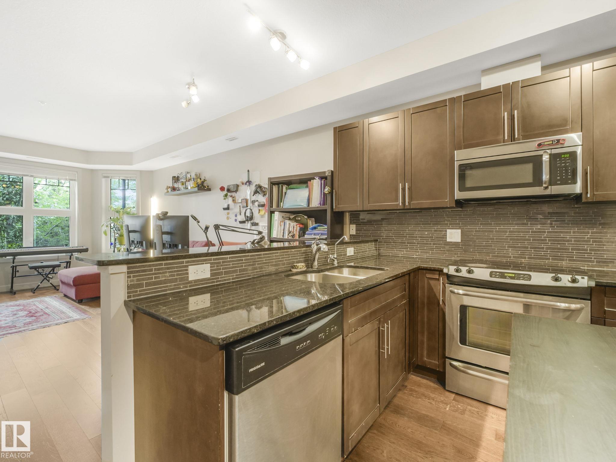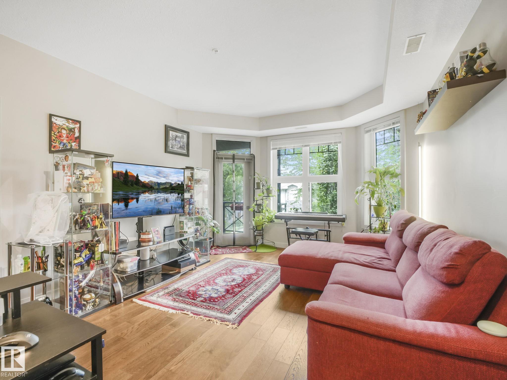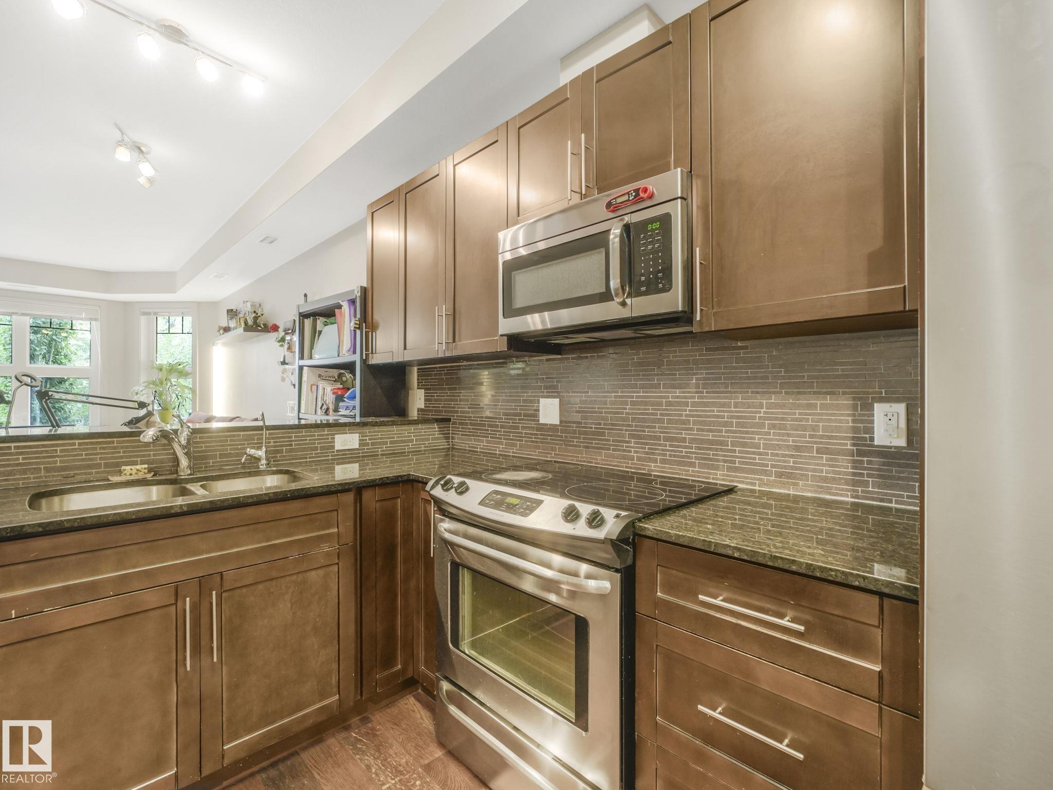 Bright, modern 2 bdrm, 2 bth in one of the most sought-after central communities - vibrant Queen Alexandra. The perfect blend of convenience, comfort & lifestyle. Designed for easy living & entertaining. The spacious, open-concept living area flows onto a private patio overlooking a beautiful tree-lined street - ideal for morning coffee or evening relaxation. Kitchen is functional & stylish, with SS appliances & raised eating bar. Well-sized bdrms, with the master offering a full ensuite. In-suite laundry & storage cage add to the practicality of this home. Whether you're biking to work or class, this location is unbeatable: bike lanes connect you to the U of A & downtown, or take one bus straight to campus. Just 15 min from nearly every major roadway - perfect for commuting or weekend getaways. Enjoy heated underground parking with 4 visitor stalls - rare & incredibly convenient. Don?t miss your chance to live in a walkable, bike-friendly community & unbeatable access to everything Edmonton has to offer