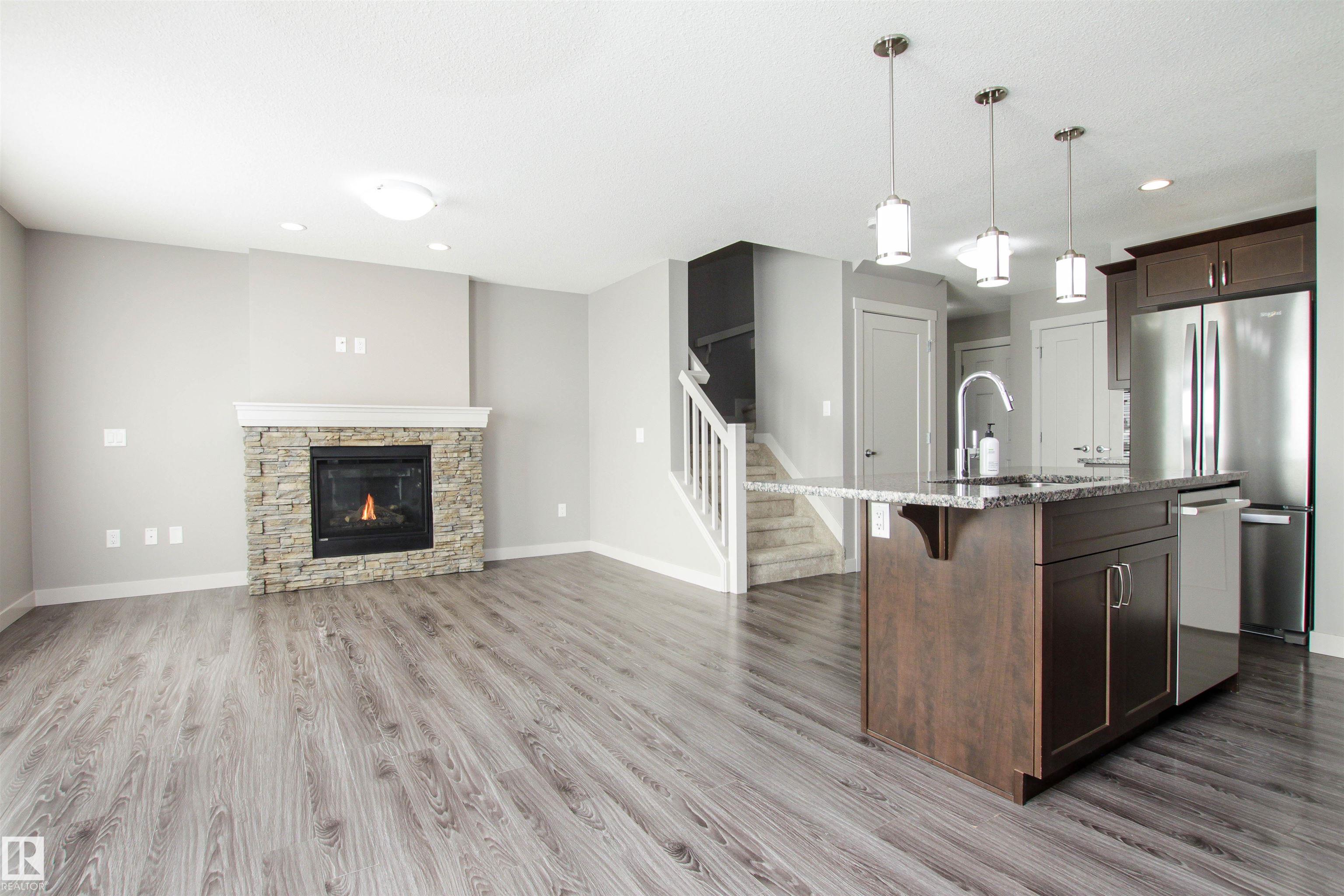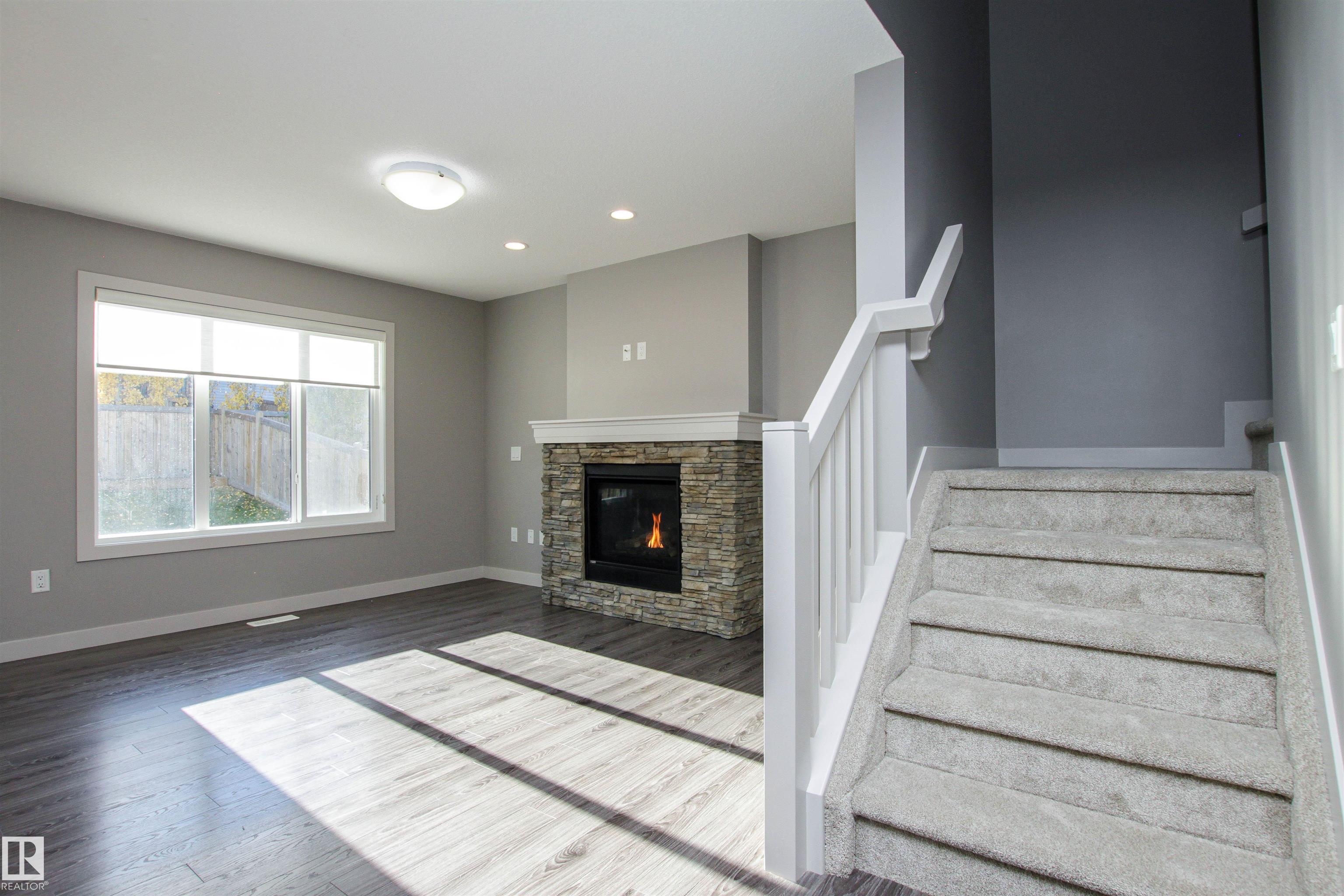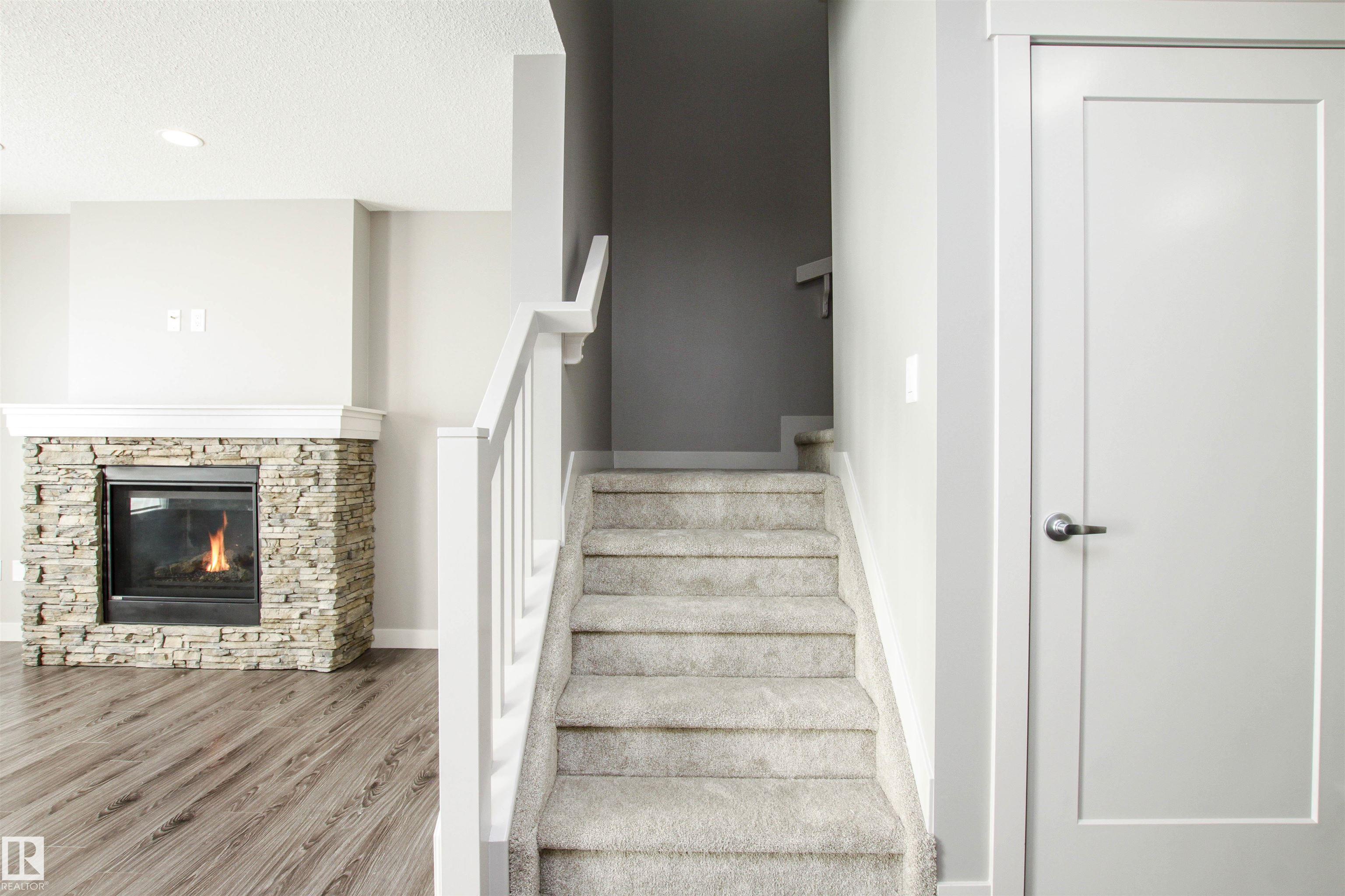 Shows just like BRAND NEW!!!! Located in desirable Aspen Trails, this 3 bed / 2.5 bath half-duplex is in a wonderful community, steps to Abbey Park and close to all amenities. Recent updates include NEW CARPET, FRESHLY PAINTED top to bottom & NEW FRIDGE & STOVE. The main floor offers an open floor plan with modern kitchen with large GRANITE island, stainless steel appliances and pantry. Beyond the kitchen is the spacious eating nook, overlooking the SOUTH-FACING backyard!! Backyard offers nice sized deck and fire pit area! The cozy living room offers beautiful stone-faced GAS FIREPLACE, perfect for our cooler seasons. Upstairs you will find the primary suite with 4-piece ensuite and walk-in closet, 2 more spacious bedrooms, 4-piece main bath, UPSTAIRS LAUNDRY + den/flex space! The basement is a perfect canvas to develop, with drywall and some electrical already in place. This property also has CENTRAL A/C and a full sized DOUBLE ATTACHED GARAGE! Meticulously maintained and completely MOVE-IN READY!
