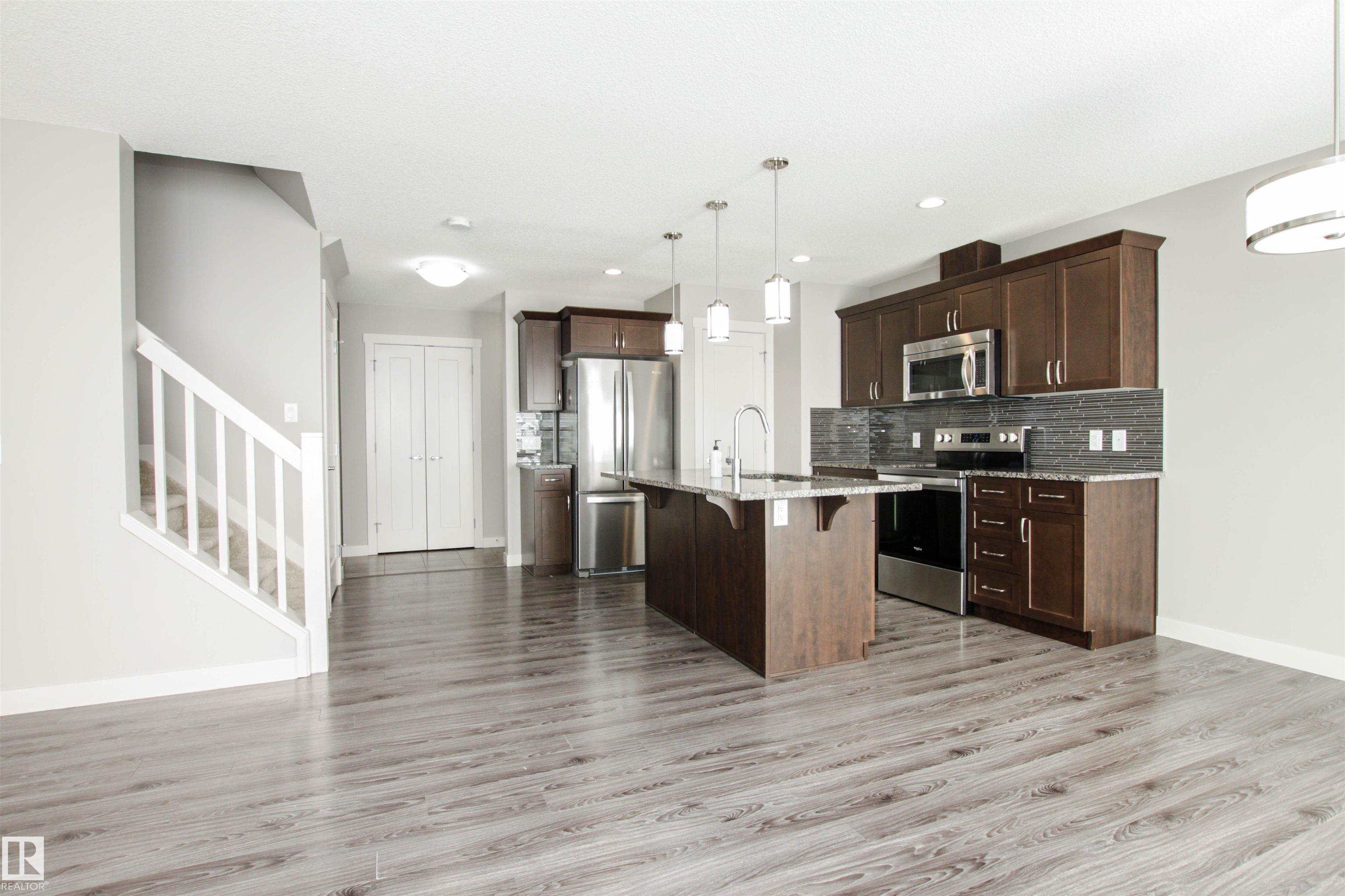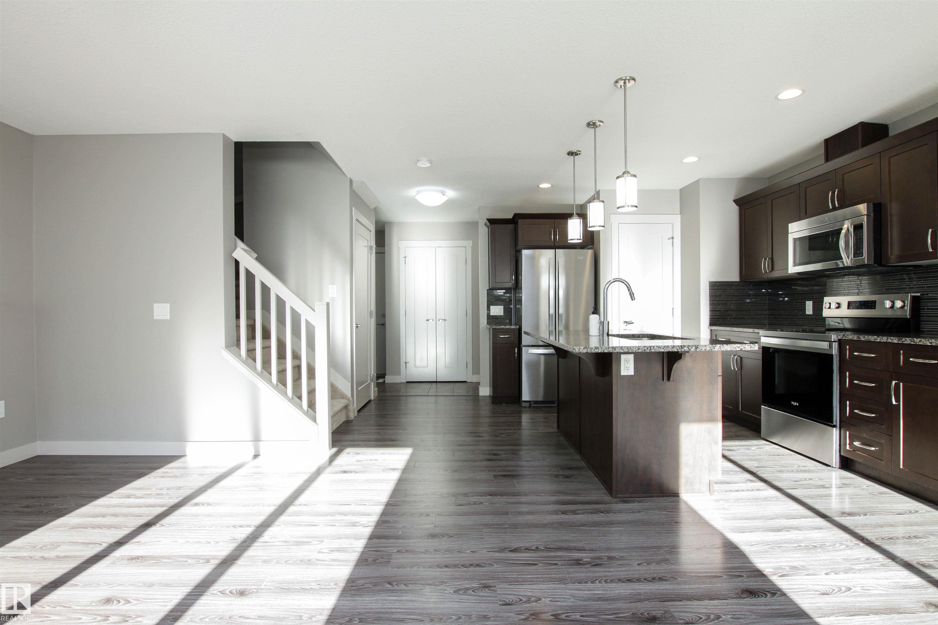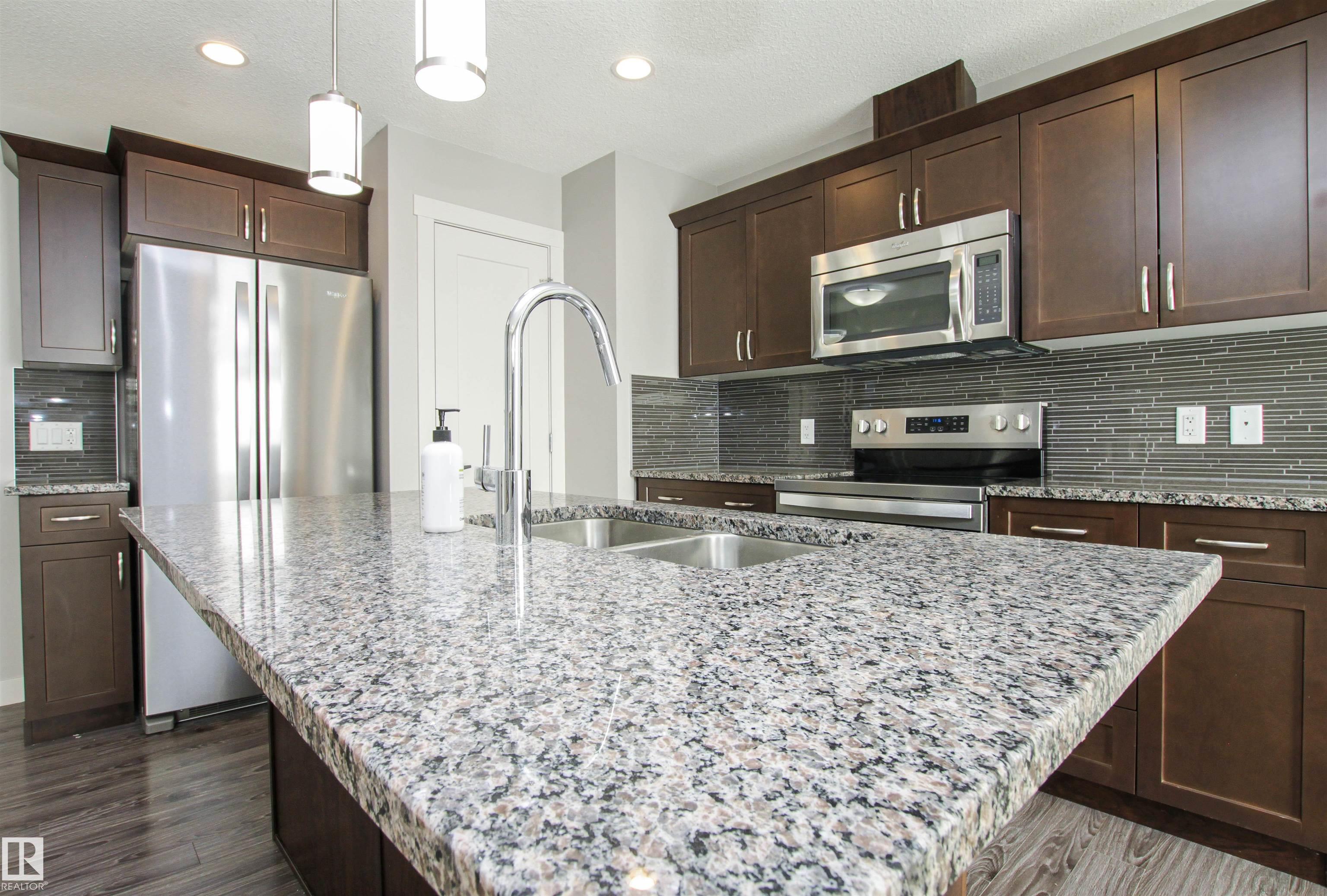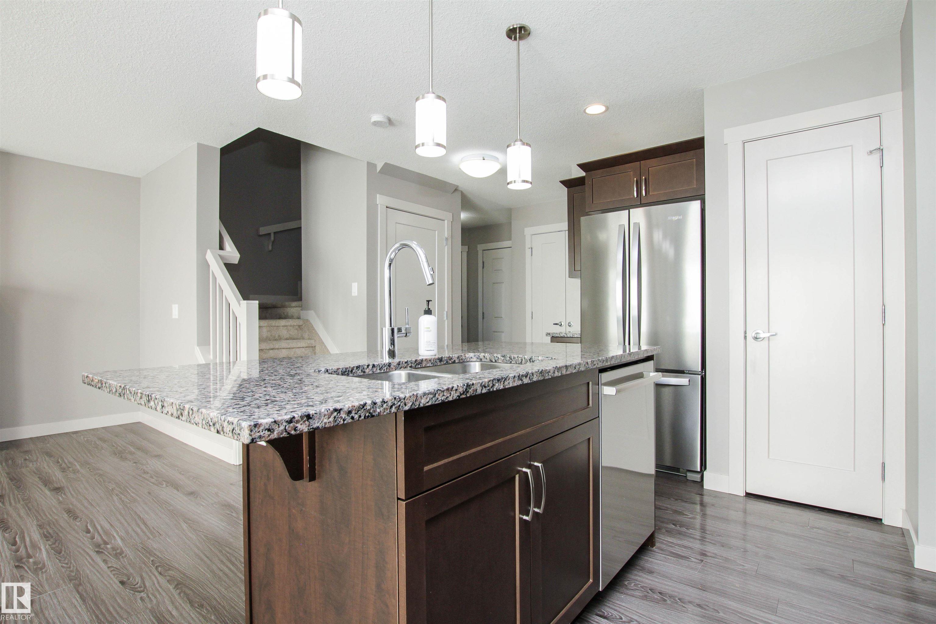 Shows just like BRAND NEW!!!! Located in desirable Aspen Trails, this 3 bed / 2.5 bath half-duplex is in a wonderful community, steps to Abbey Park and close to all amenities. Recent updates include NEW CARPET, FRESHLY PAINTED top to bottom & NEW FRIDGE & STOVE. The main floor offers an open floor plan with modern kitchen with large GRANITE island, stainless steel appliances and pantry. Beyond the kitchen is the spacious eating nook, overlooking the SOUTH-FACING backyard!! Backyard offers nice sized deck and fire pit area! The cozy living room offers beautiful stone-faced GAS FIREPLACE, perfect for our cooler seasons. Upstairs you will find the primary suite with 4-piece ensuite and walk-in closet, 2 more spacious bedrooms, 4-piece main bath, UPSTAIRS LAUNDRY + den/flex space! The basement is a perfect canvas to develop, with drywall and some electrical already in place. This property also has CENTRAL A/C and a full sized DOUBLE ATTACHED GARAGE! Meticulously maintained and completely MOVE-IN READY!