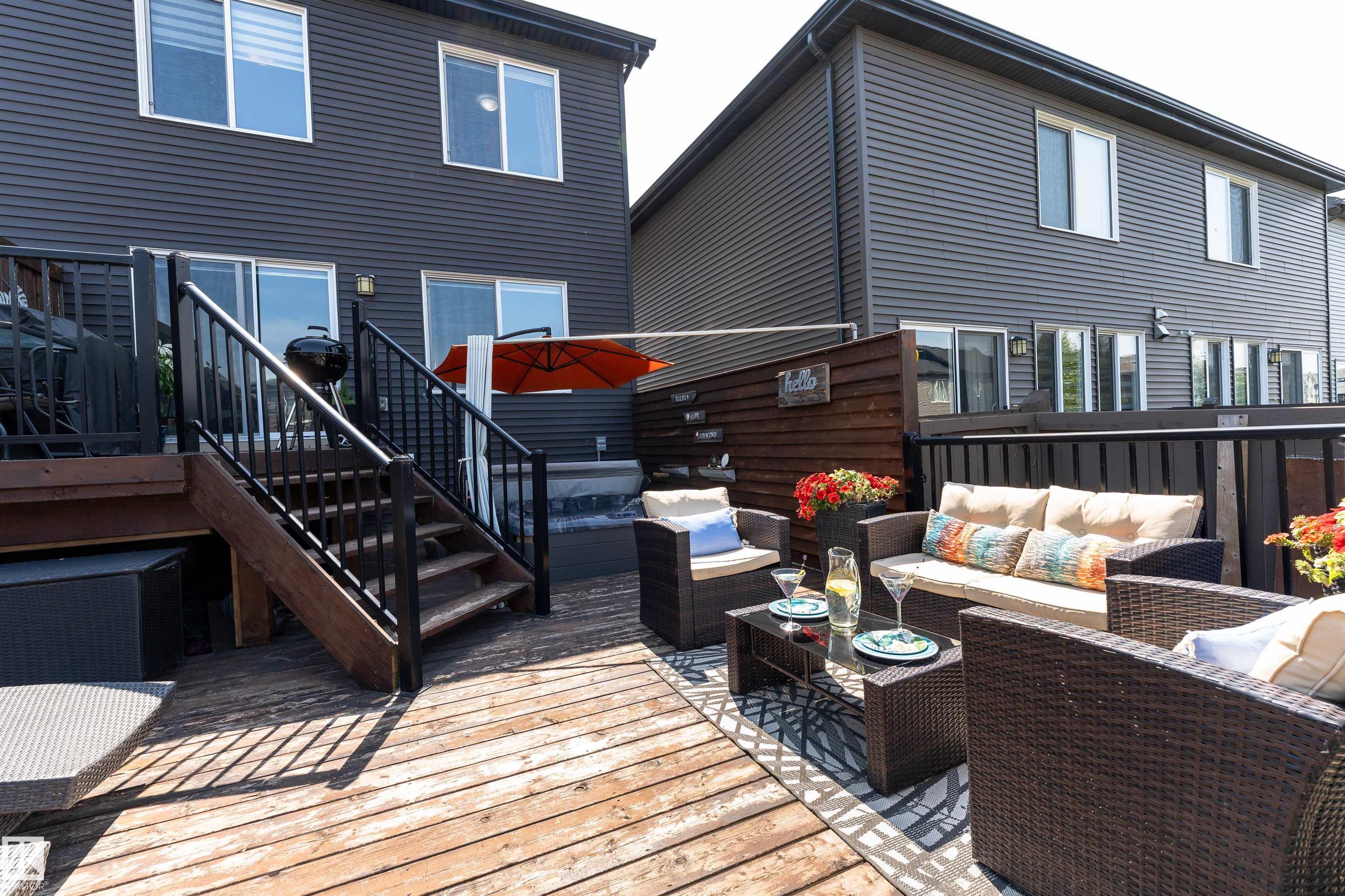 Welcome to 2104 Price Landing SW in the vibrant community of Paisley! This upgraded half duplex features a spacious bonus room in an absolutely stunning and rare split-level layout. The primary suite is privately tucked on its own level with two closets and a full ensuite, plus a second four-piece bath on the same level for added convenience. Just steps away, two additional bedrooms and a 4-piece bath provide the perfect space for kids or guests. The open-concept main floor features a bright living area with a stylish fireplace, modern kitchen with upgraded cabinetry and appliances, and a generous dining space ideal for entertaining. Enjoy upper-floor laundry, an unfinished basement ready for your ideas, and an incredible outdoor living space with a two-tier deck, private hot tub, and fire pit. Extras include zebra blinds, central vac, HVAC upgrades, and radon test. Paisley offers parks, trails, a dog park, and access to schools, shopping, and major roads?a must-see home inside and out!