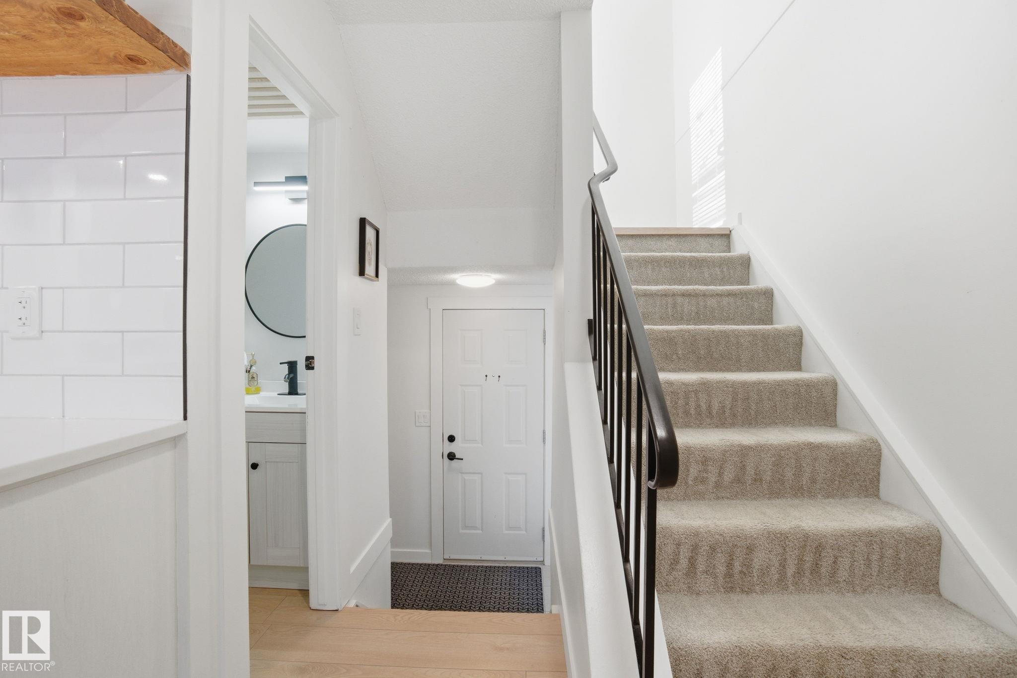 Start the new year in your new home! 3 bedroom + Den, 1 1/2 bathroom home in the convenient and desirable neighbourhood of Grandin (The Gardens) - known for the beautiful parkland, trails and quick access to the Anthony Henday & Edmonton. This beautifully renovated and modern 2-storey townhome in Grandin Vilage features a modern OPEN KITCHEN with gorgeous centre island, two-tone cabinets, extra storage space, sparkling backsplash & feature shelving. The adjoining living/dining rooms feature built-in shelving & a built-in electric fireplace to cozy up to during those chily winter nights. Large windows & patio doors invite ample natural light and lead into the backyard that features a private deck with pergola, and yard space to play in. Upstairs, there are 3 bedrooms & an updated 4-piece bathroom. The basement is fuly finished giving you the perfect movie room, games room and Den! Enjoy a snow free vehicle with your very own 12' X 22' single attached garage PLUS driveway parking for 2.
