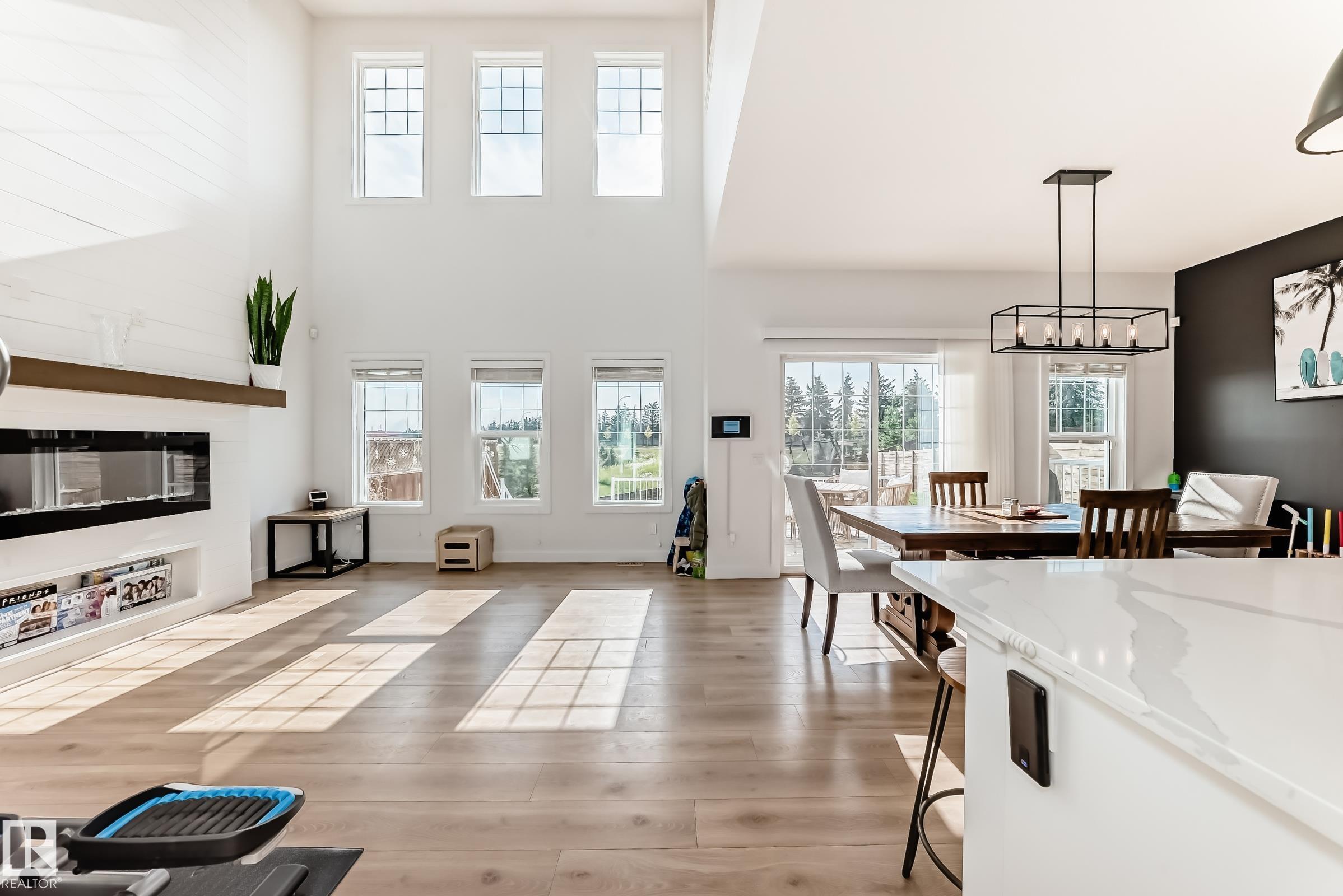 A FULLY FINISHED BASEMENT, and massive PIE-SHAPED YARD with an un-obstructed view, all on JAMISON CRESCENT, is what sets this gorgeous home apart from comparable homes in St. Albert! We back on to a POND with walking trails, we have 3000sqft of living space, we have private lake access to the BEACH.. what?s more ..? Soaring vaulted ceilings, open to above complimented by a grand fireplace feature wall, a walk-through pantry/mudroom, central A/C, and a main floor office. Upstairs, a BONUS/FLEX ROOM overlooking the POND, and 3 spacious bedrooms. The Primary Ensuite is a spa-like oasis, with attached walk-in closet. Discover amazing new schools, parks, playgrounds, and walking trails that will take you there! Experience the one-of-a-kind lifestyle on Jamison Cres, with it's unique SUMMER BBQ BLOCK PARTIES, and Annual Block-wide Easter Egg Hunts! See 3D TOUR Link in URL section