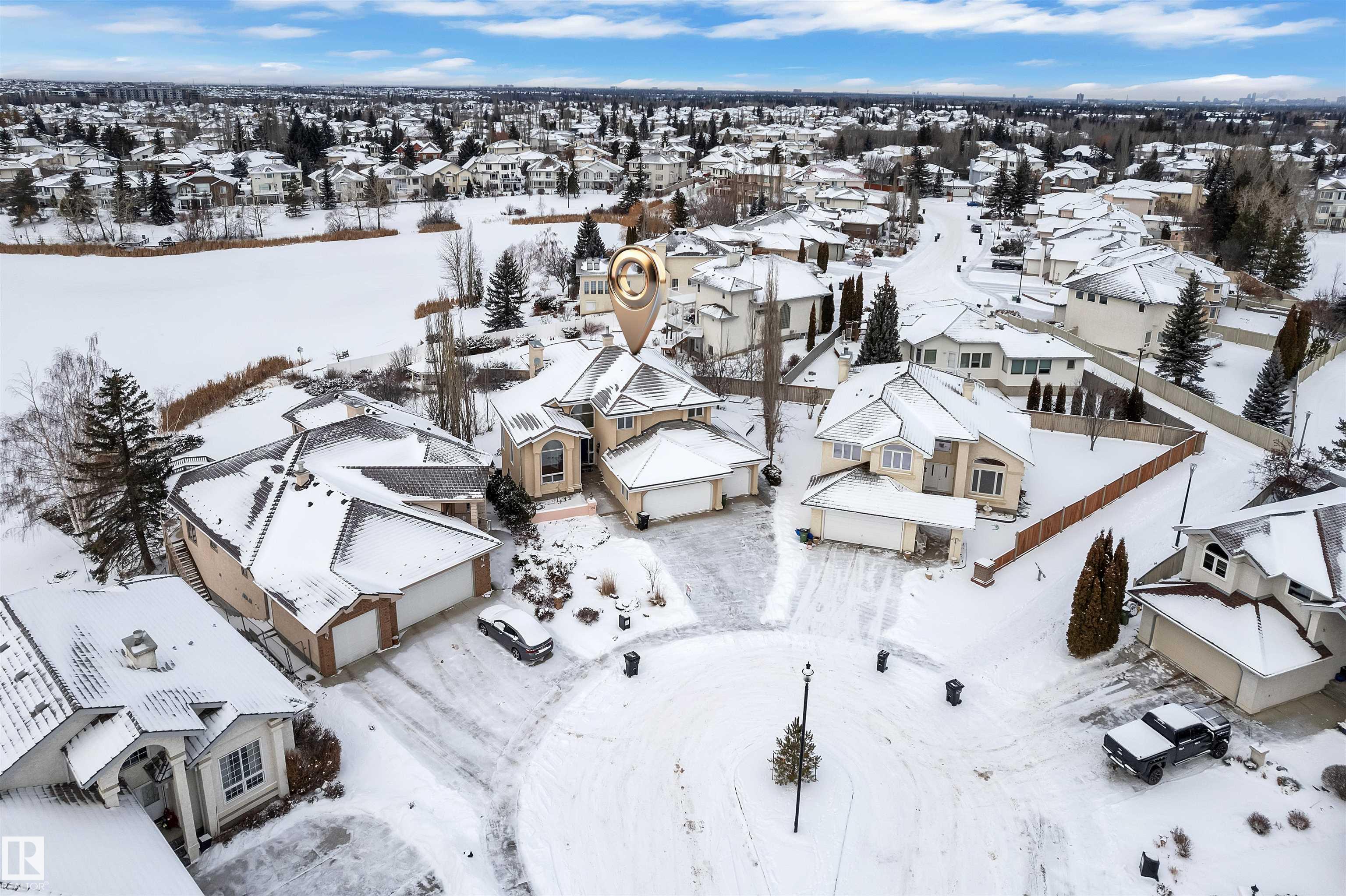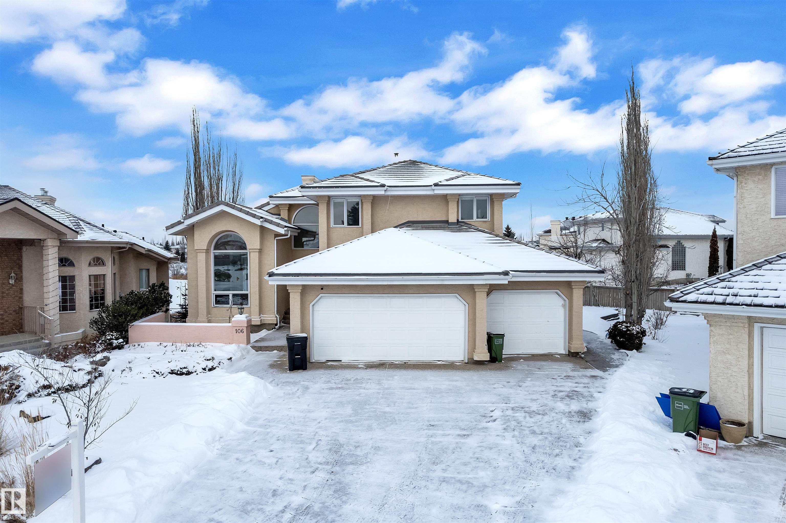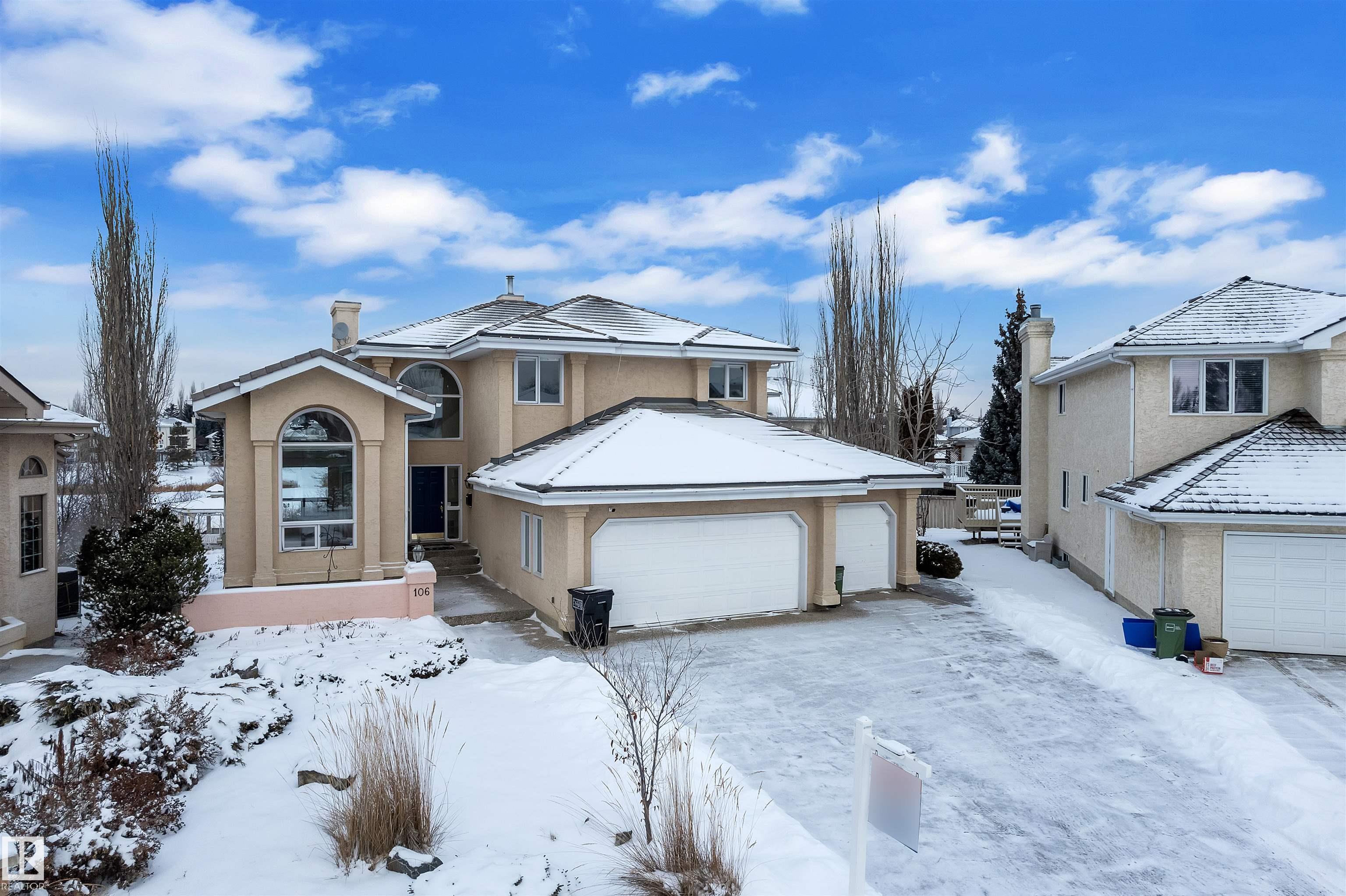A MILLION-DOLLAR VIEW awaits in the prestigious community of Twin Brooks. Located in a quiet cul-de-sac and backing directly onto the lake, this home sits on a large 11,841 sq. ft. lot and offers stunning views. With over 2,960 sq. ft. plus a fully finished walkout basement, the home provides plenty of space for comfortable living and entertaining. It features 5 bedrooms, 5 bathrooms, 2 dens, and 2 primary suites, making it ideal for families, guests, or multi generational living. The main floor offers 18ft vaulted ceilings, large windows, and lake views from most living areas. The newly renovated kitchen includes stainless steel appliances, ample cabinet space, and generous counters, while a main-floor den with built-ins adds flexibility for a home office or study. The WALKOUT basement includes a theatre room, wet bar, and large recreation space. Outside, the landscaped yard features stamped concrete paths, a gazebo, and a fire pit overlooking the lake perfect for relaxing or entertaining.