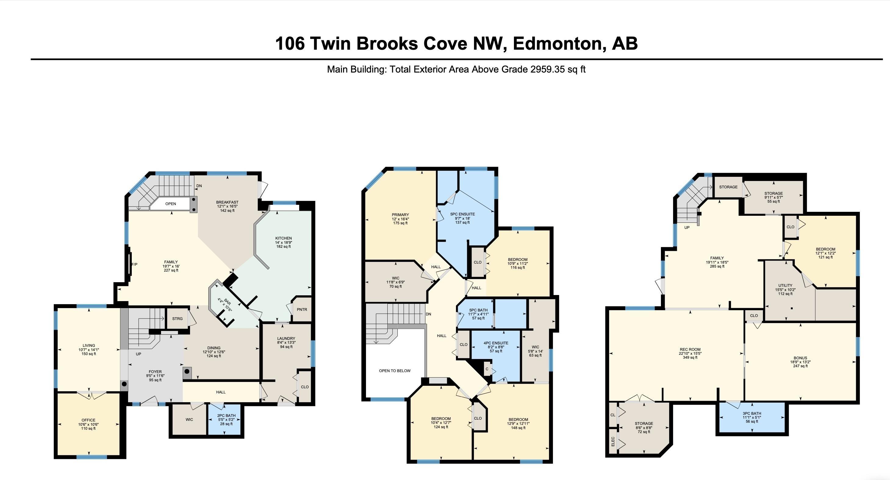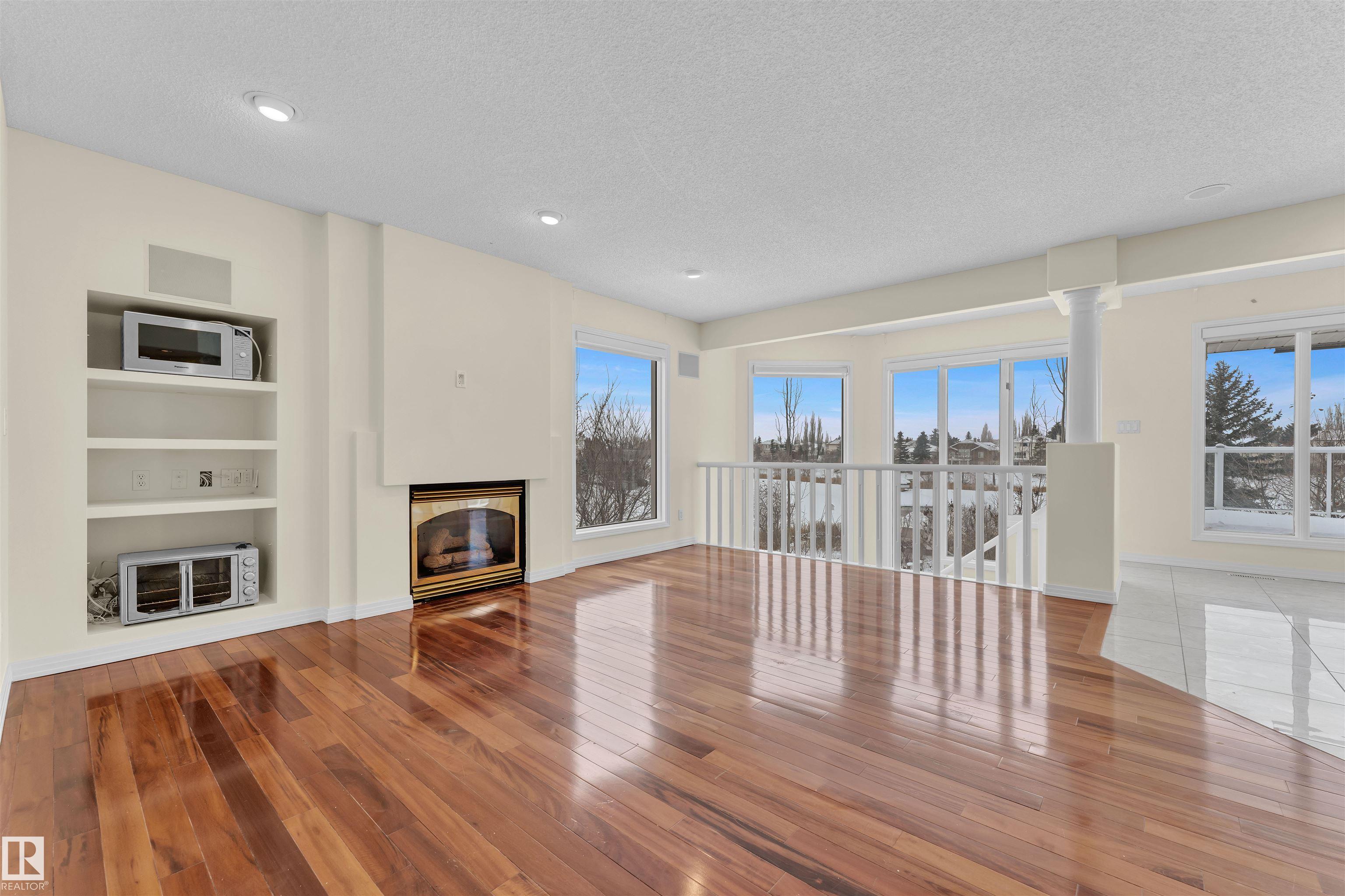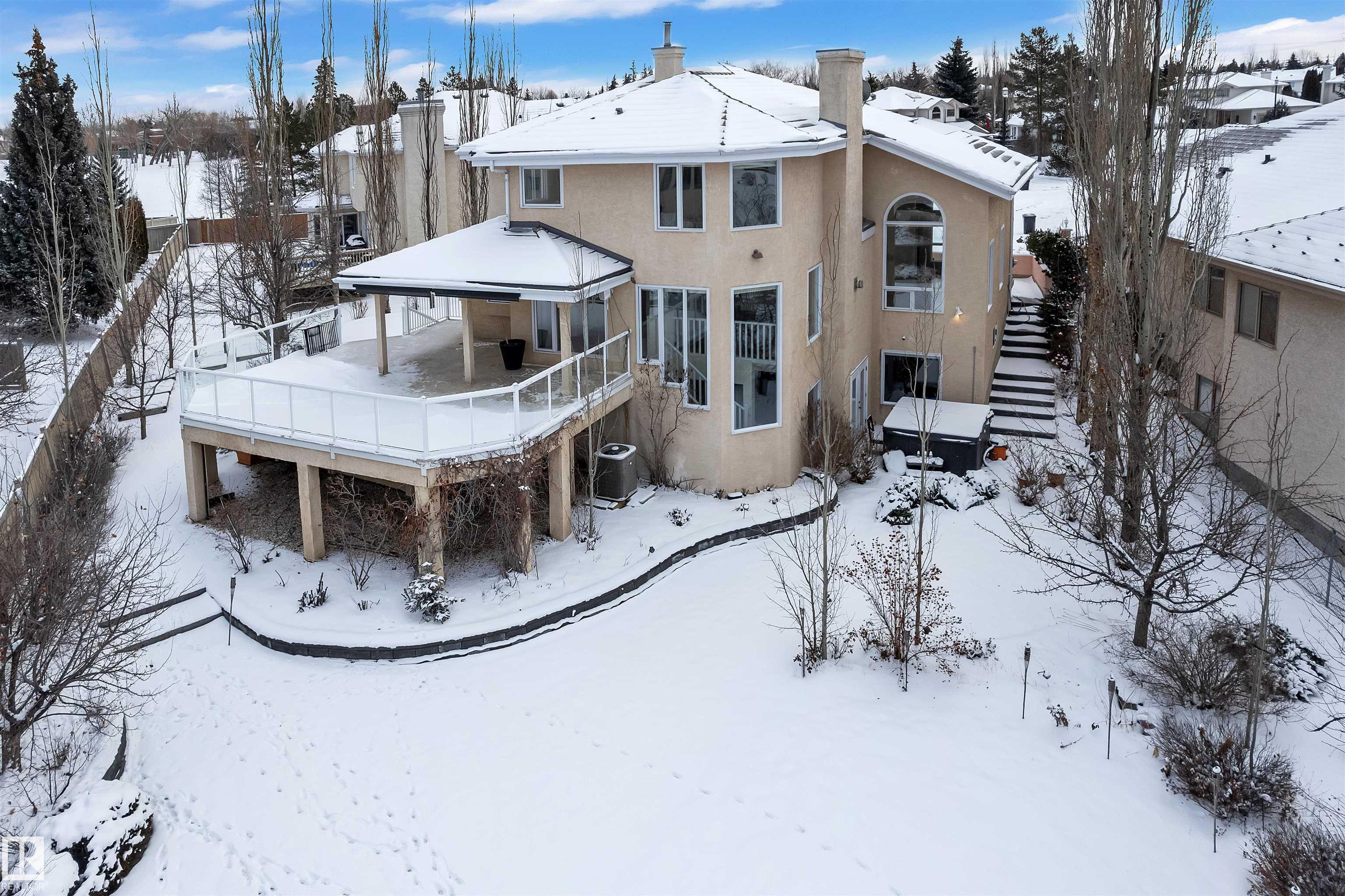 A MILLION-DOLLAR VIEW awaits in the prestigious community of Twin Brooks. Located in a quiet cul-de-sac and backing directly onto the lake, this home sits on a large 11,841 sq. ft. lot and offers stunning views. With over 2,960 sq. ft. plus a fully finished walkout basement, the home provides plenty of space for comfortable living and entertaining. It features 5 bedrooms, 5 bathrooms, 2 dens, and 2 primary suites, making it ideal for families, guests, or multi generational living. The main floor offers 18ft vaulted ceilings, large windows, and lake views from most living areas. The newly renovated kitchen includes stainless steel appliances, ample cabinet space, and generous counters, while a main-floor den with built-ins adds flexibility for a home office or study. The WALKOUT basement includes a theatre room, wet bar, and large recreation space. Outside, the landscaped yard features stamped concrete paths, a gazebo, and a fire pit overlooking the lake perfect for relaxing or entertaining.