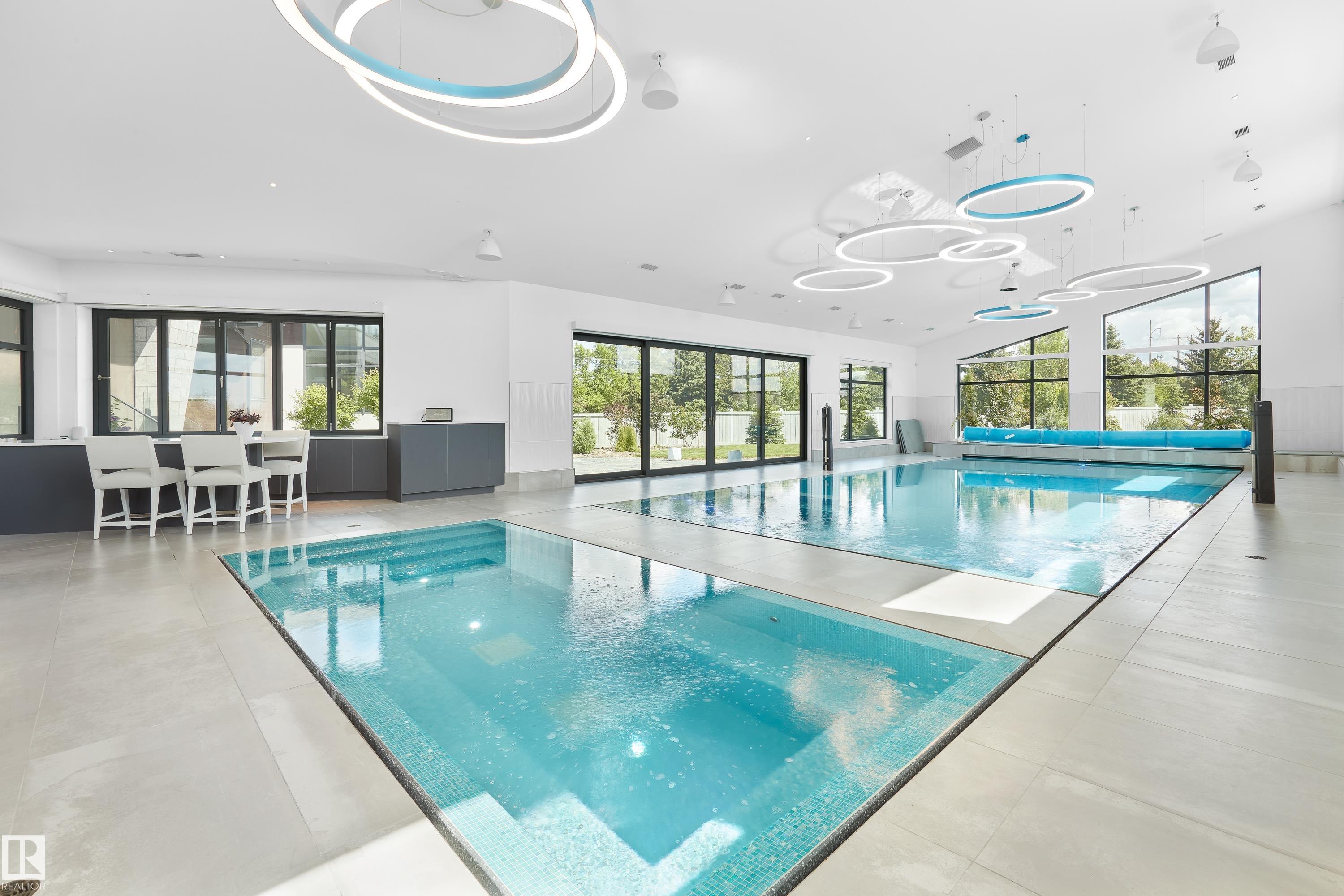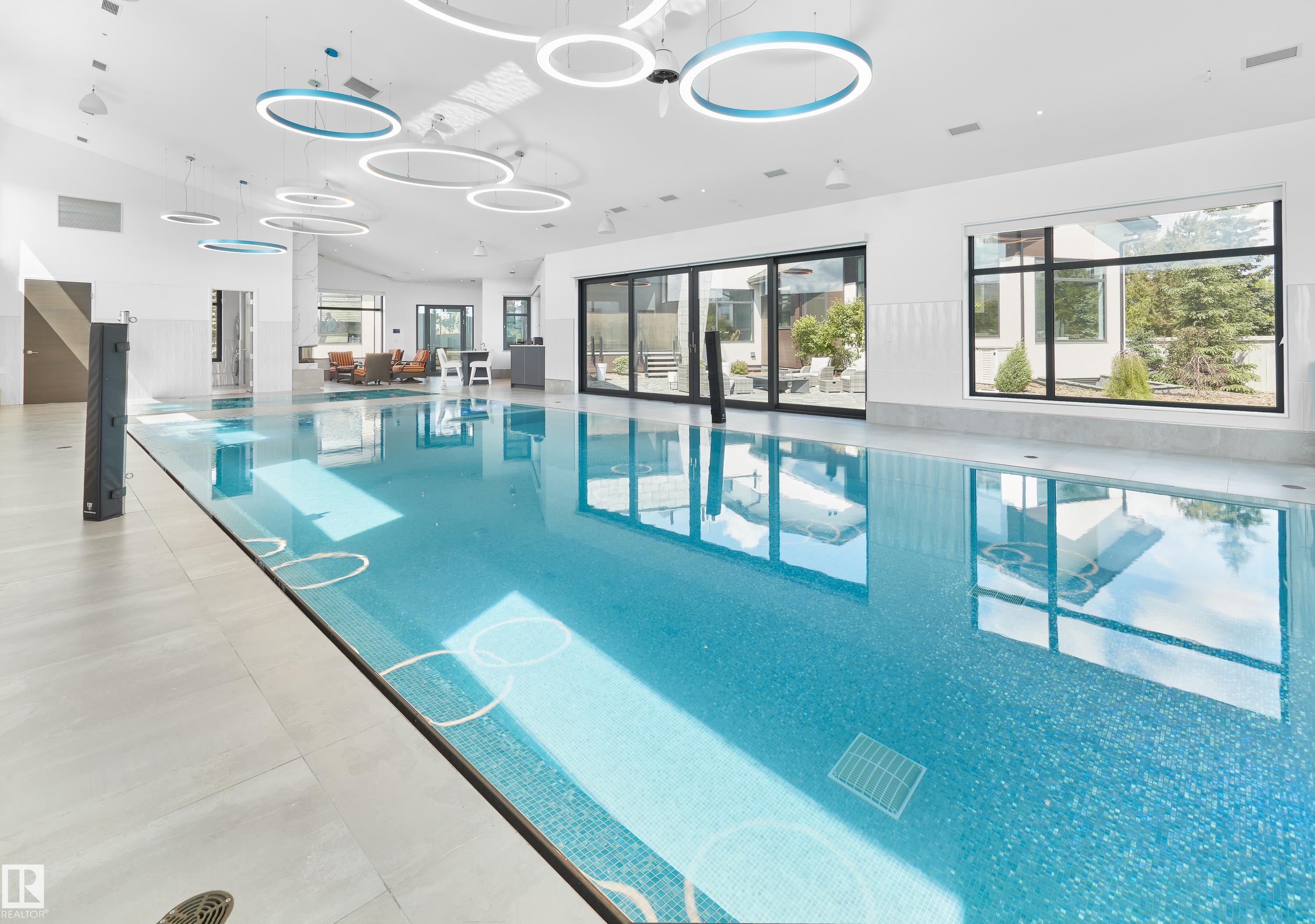 Nestled on a 36,264 square foot lot with sweeping views - a natural setting & attention to detail provide the perfect fusion between structural strength & architectural form in this one-of-a-kind modern home ? from the indoor pool, to the roof top patio ? this is the perfect family oasis. Encompassing just over 7721sqft (above grade) ? 11,822sqft of total finished living space - this 4-beds up plus 3 beds, 8 -baths home was constructed taking every detail was thoughtfully considered, capturing the graceful perceptions of the beauty in nature and contemporary elegance with this home's clean lines and organized living. This home offers 3 full levels of indoor & outdoor luxury - From the chef's kitchen, Indoor Pool & Spa, Elevator, Floor to ceiling German windows & doors, 8 car garage with room for 12 & so much more. The private pool wing of the home includes - entertainment area with TV & bar & doors on the pool level open into the massive backyard entertaining space for the perfect indoor/outdoor flow.