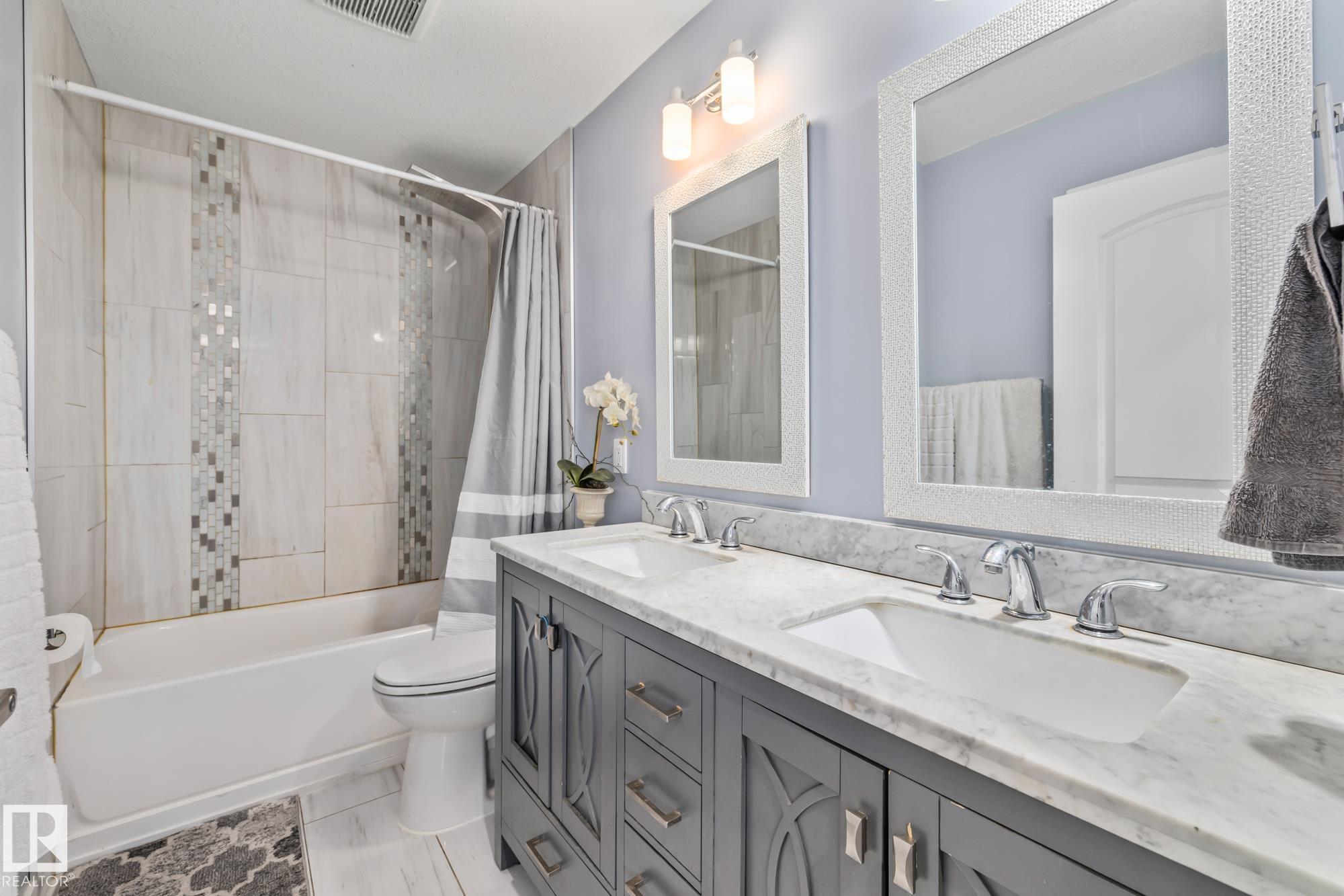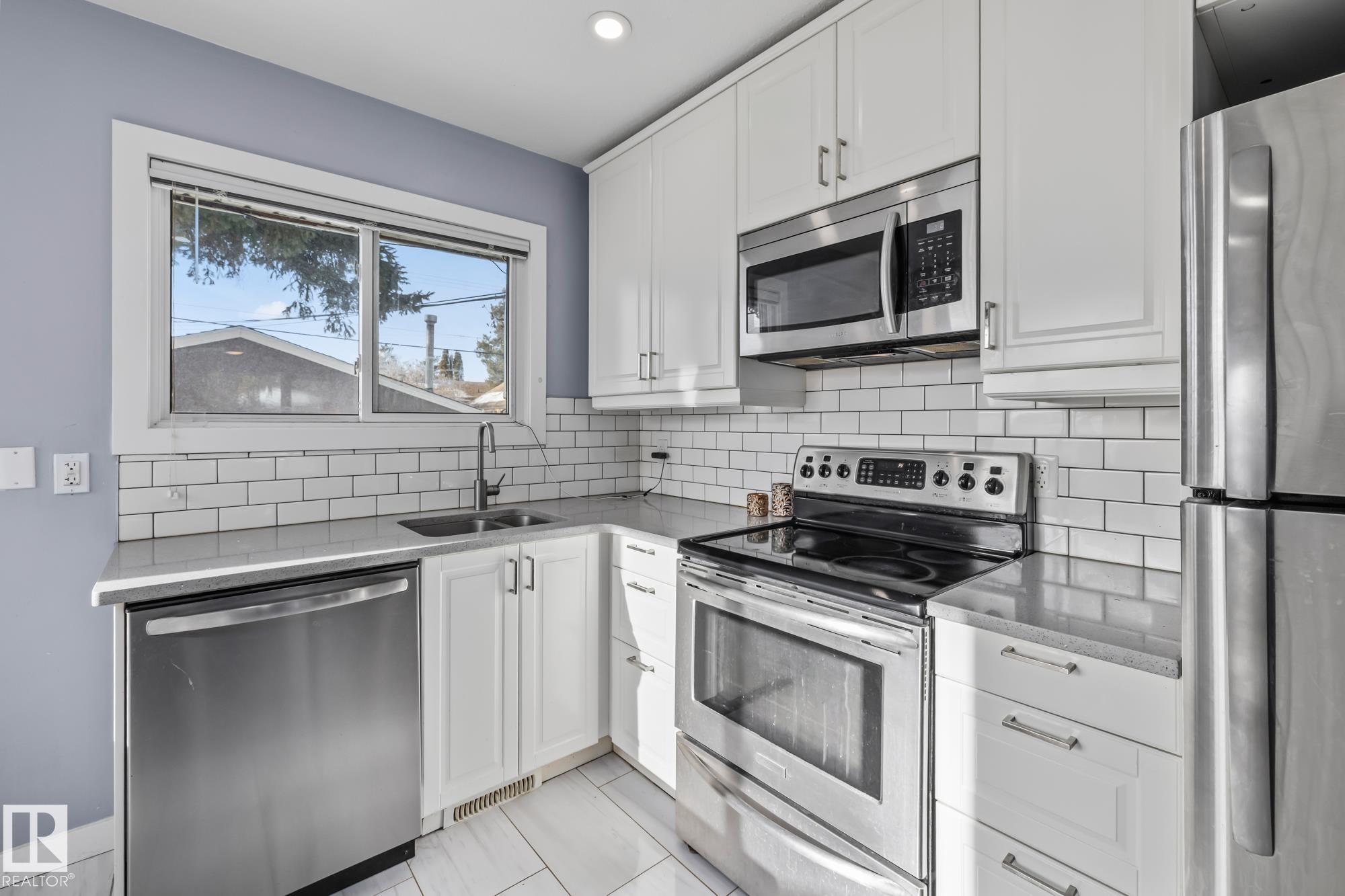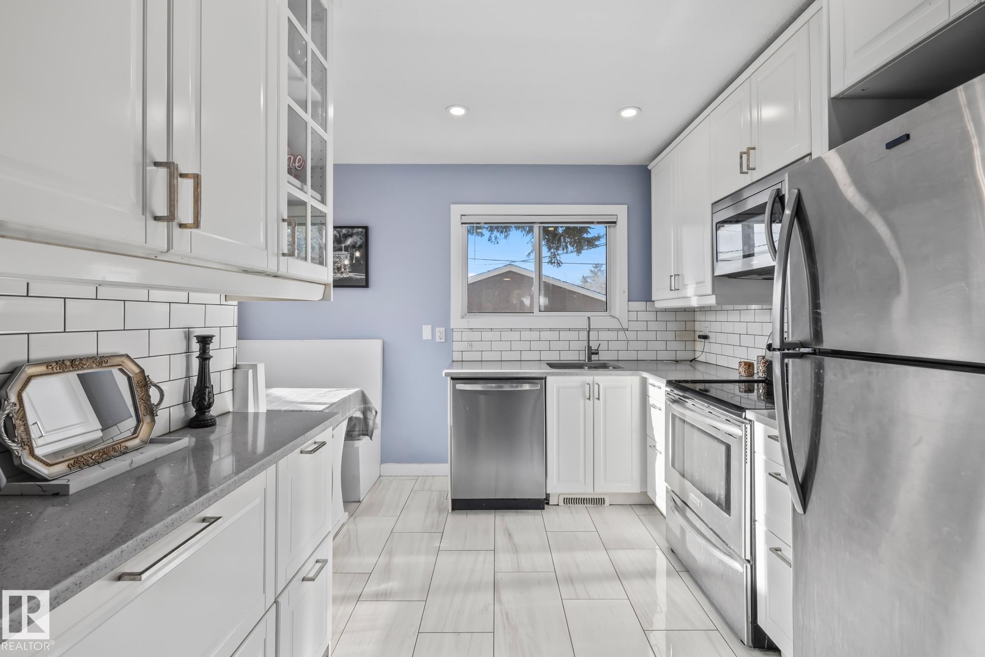LEGALLY SUITED 3 bedroom up 2 bedroom down, with a SIDE entrance, and a double car garage, fully renovated in 2019, with large spacious kitchens including all stainless steel appliances, an adorable built in kitchen nook, and quartz countertops! Located on a quiet street with upgraded shingles (garage & house), all vinyl windows including the basement, 2 high efficiency furnaces, nicely painted stucco and vinyl siding, a recently redone backyard fence, garage door, newer blinds throughout and TWO laundry rooms this house is truly turnkey! Located on a large lot in the quiet Wellington neighborhood, with quick access to the many shops and bus routes along 137th avenue and the Yellowhead! Move into the upstairs unit, while renting the basement, or cash flow this well maintained property while the neighborhood continues to improve!