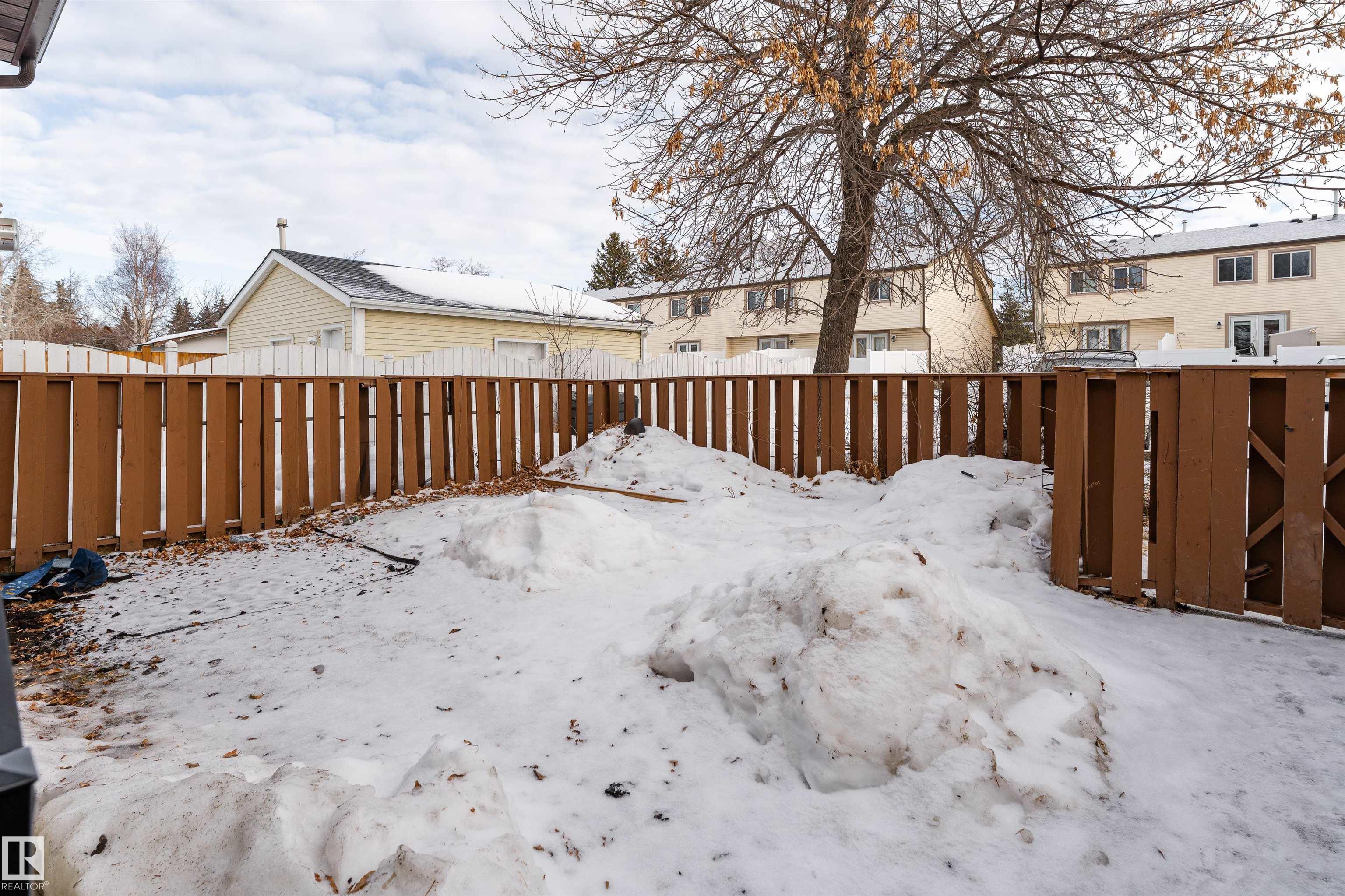 Move-in ready! Welcome to this bright and spacious end-unit townhouse featuring 3 bedrooms and 1.5 bathrooms. Vaulted ceilings greet you upon entry, creating an open and airy feel in the oversized living room?perfect for relaxing or entertaining. Bedrooms are tucked away downstairs, offering a quiet and private retreat where you can relax, unwind, and recharge away from the main living space. This is the only unit that has a front and back entrance! Also, enjoy the benefits of low condo fees at just $180/month, along with your own private enclosed yard and a designated parking stall and ample street parking for guests. Replaced furnace (2020) and hot water tank (2025), offering peace of mind for years to come. Conveniently located near schools, Millwoods Town Centre, Rec Centre, Hospital, South Edmonton Common, public transit and more! Easy access to Anthony Henday, Whitemud and Calgary Trail.