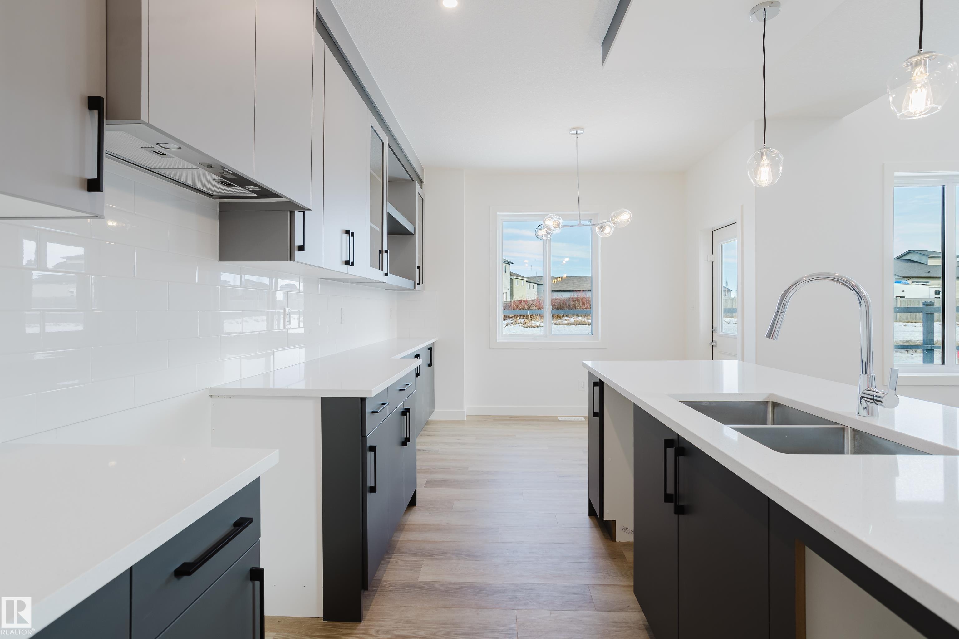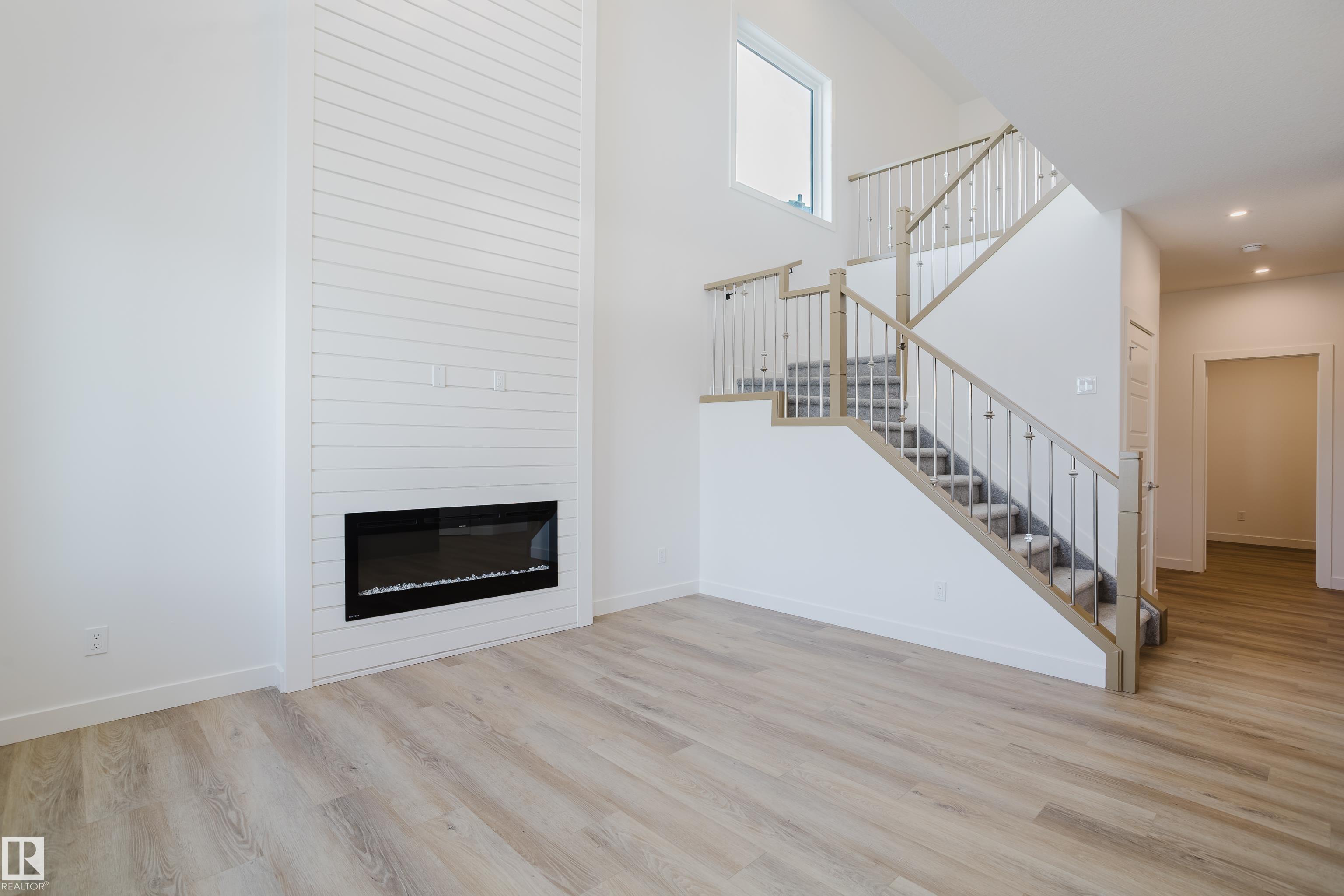 Welcome to this brand new half duplex in the sought-after Meadowview community of Leduc, where thoughtful design meets everyday comfort. The main floor is finished with luxury vinyl plank flooring and features a main-floor den ideal for a home office, a full bathroom, and a stunning open-to-above living room with a cozy fireplace. The modern kitchen impresses with quartz countertops, extended cabinetry, and a clean, contemporary design ideal for both daily living and entertaining. Upstairs offers three spacious bedrooms, a bonus room perfect for family time, and convenient upper-floor laundry. Complete with a double attached garage and a separate side entrance, this home is ideally located close to playgrounds, parks, schools, shopping, and other everyday amenities, making it a fantastic opportunity to enjoy brand new living in a vibrant, family-friendly neighborhood.