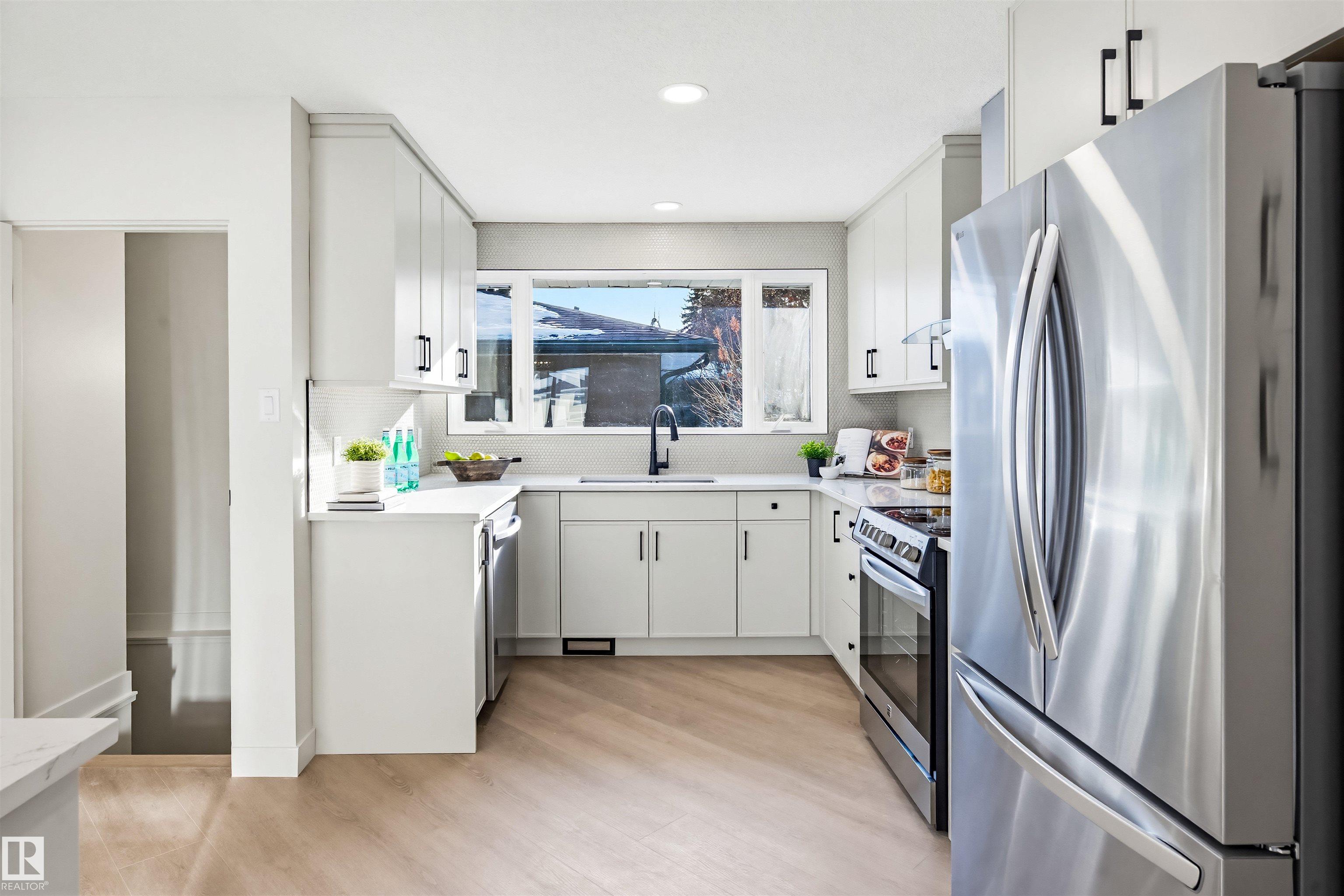 A rare opportunity to own a completely renovated, original owner home in Laurier Heights. Taken down to the studs & thoughtfully reimagined, this home blends timeless location with modern, worry-free living?everything has been done; plumbing, electrical, flooring, paint, baseboards, trim, doors, textured ceilings, insulation, HWT & furnace. Offers 5 bedrooms & 3 NEW full baths in 2279 sq ft of livable space w/finished basement & separate side entrance. Main level greets you with a spacious entry leading into a bright, family-sized Great Room highlighted by a beautiful bay window & striking electric fireplace. Show-stopping kitchen is designed to impress, featuring custom cabinetry, waterfall-edge quartz island, stylish mini-hex porcelain backsplash & high-end SS appliances (stove w/built-in air fryer). Stylish front door & freshly painted vinyl exterior. Garage has new insulation & drywall. Professional landscaping add to tremendous curb appeal of home!