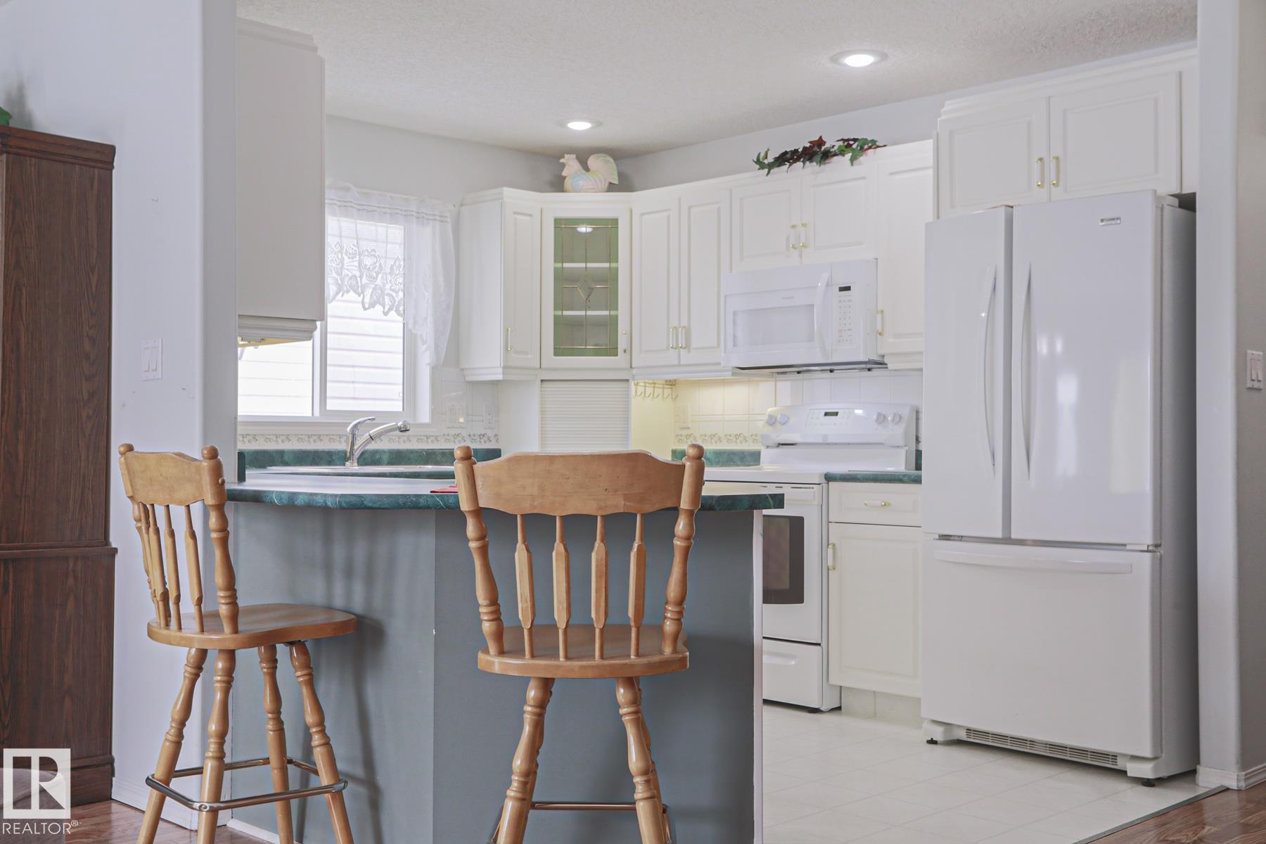 Experience outstanding adult living in this Maisonette Village bungalow including a double attached front garage with inside entry so your vehicle can stay warm in winter and cool in summer. Attractive and peaceful front and rear decks so you can enjoy sunshine or shade when you want to relax outside with family and friends. Open concept floor plan features a bright living room with fireplace and mantle for your favorite photos, art or TV. The dining area is expandable for special occasions. Lovely kitchen has a breakfast bar counter for quick meals and snacks. You will appreciate the handy "appliance garage" to hide away your mixer and blender or use it for your bread and buns storage. Lots of counter space and cabinetry along with a big window and new microwave. Peaceful master bedroom has walk-in closet and shower ensuite. Main floor laundry, dandy den and 4 piece bath complete the upper floor. Basement has big bedroom, family room + fireplace, 3 pce bath & storage. RV storage available.