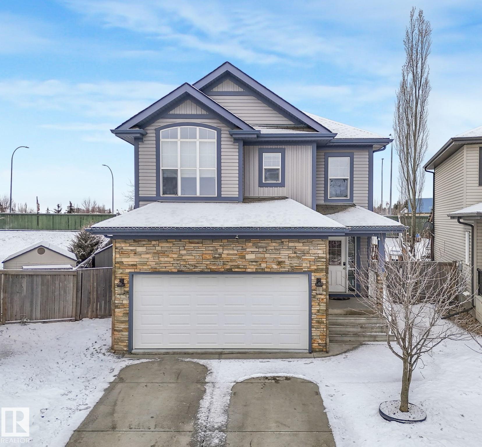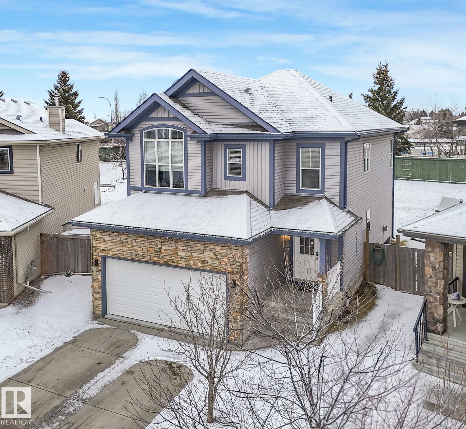 MOVE IN READY...this WELL MAINTAINED home located in Spruce Village is the PERFECT FAMILY HOME! The main floor offers a large entry complete with a space for bench seating and a built-in desk (ideal for a homework station). The living room (with gas fireplace) and spacious kitchen are open concept making this perfect for family time or entertaining. Organization is easy to achieve in the kitchen with the built-in wall pantry, lots of cupboards and center island. A 2 piece powder room and garage access complete this main floor. The upper floor presents a primary suite (with ample space for large bedroom furniture), a walk in closet and a 4 piece ensuite. Also offered on the upper floor are 2 more spacious bedrooms, a 4 piece bathroom and a bright laundry room. The f/f basement offers a family room/games area, 2 piece bath and storage areas. Features include NEW PAINT, NEW CARPET throughout and AC! The massive pie shaped south facing yard is ready to enjoy with the warmer days ahead!!!