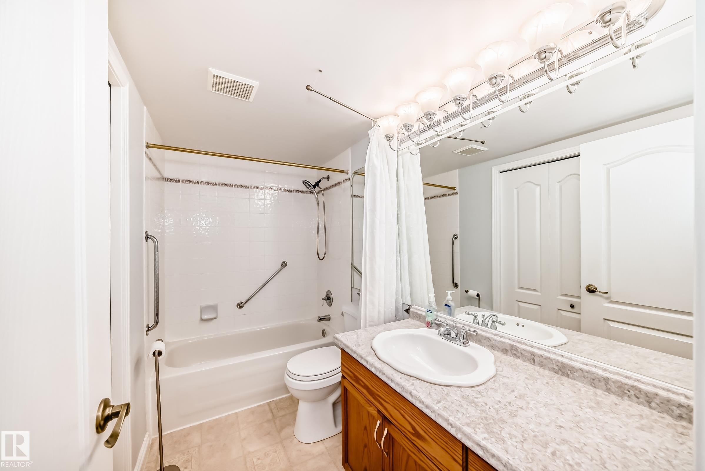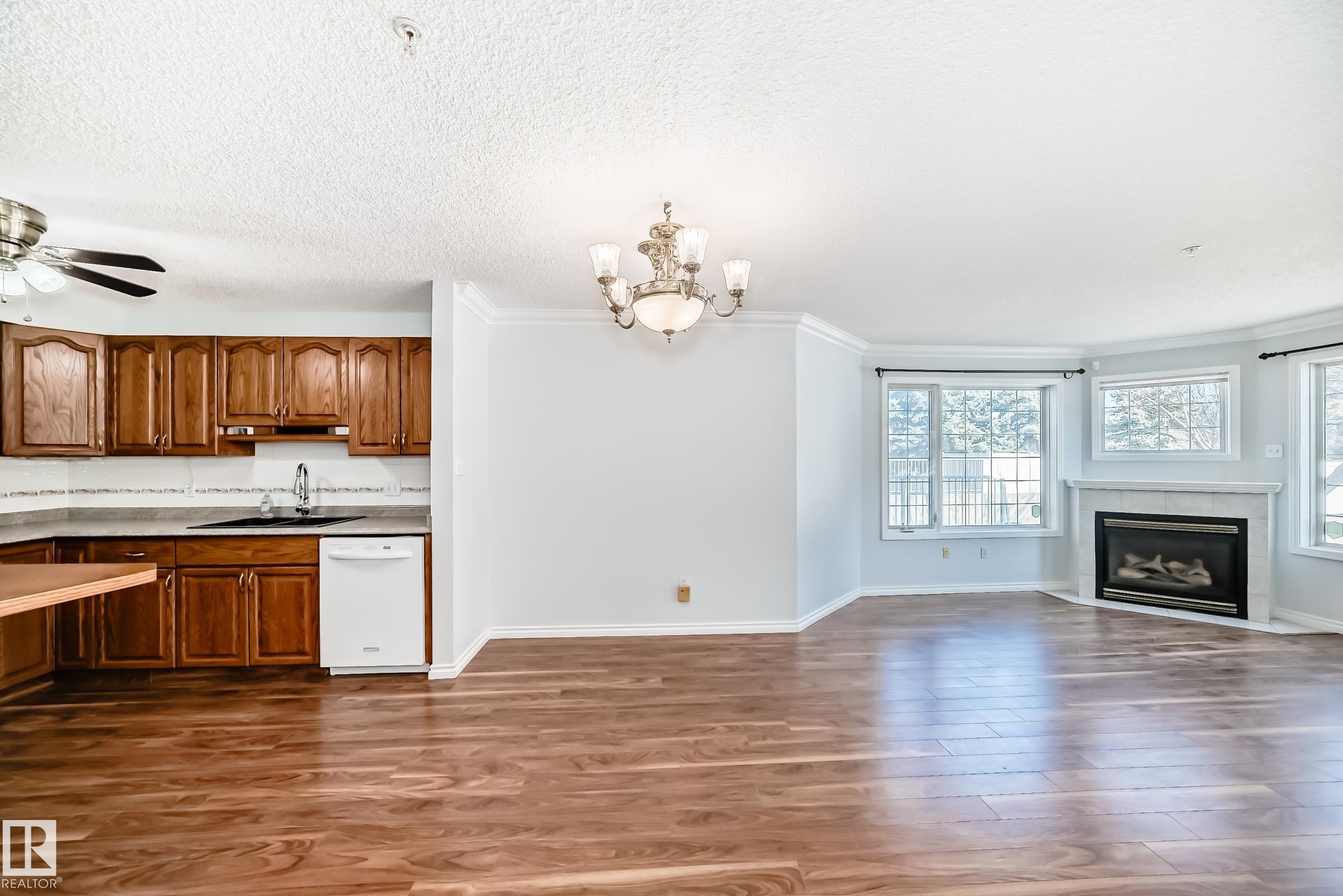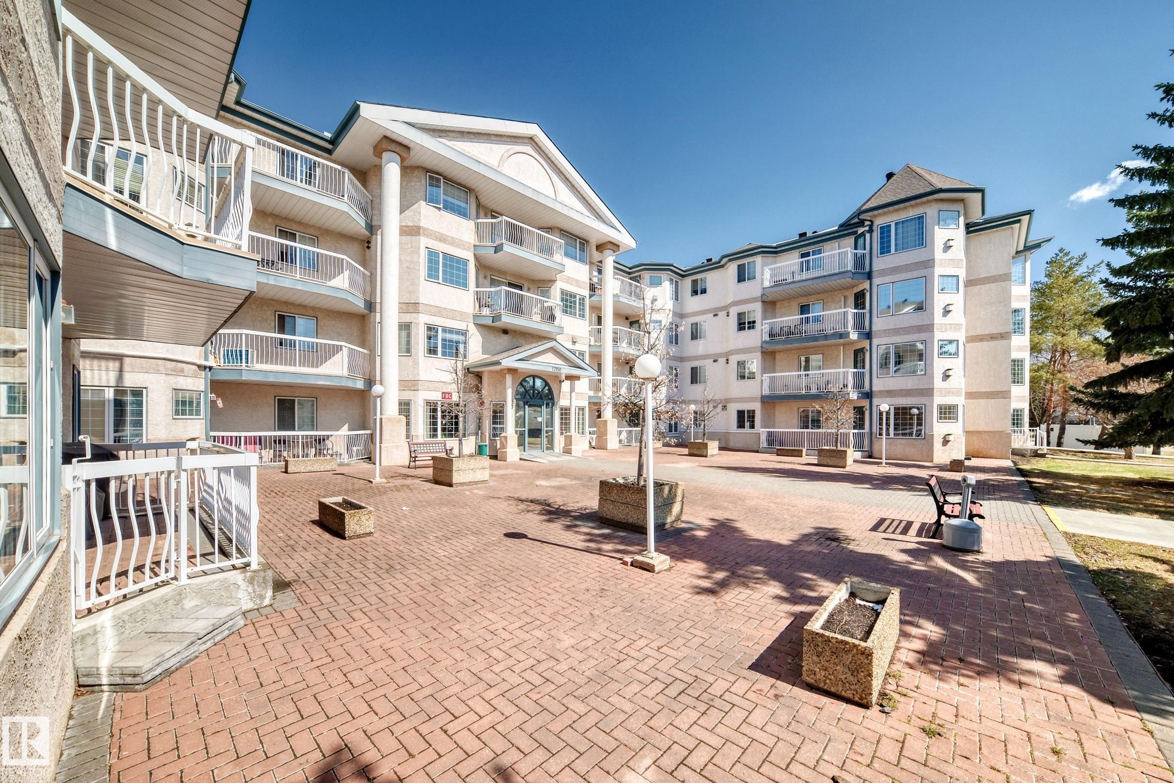 Welcome to this beautifully upgraded 2-bedroom main floor CORNER condo w/ 995 sq. ft. of bright, inviting living space. Enjoy newer laminate flooring throughout, including the kitchen featuring abundant cabinet & counter space. The open-concept layout flows seamlessly from the kitchen into the dining area & spacious living room, highlighted by lots of windows & a cozy corner gas fireplace. The east facing patio has a gate leading to visitor parking. The primary bedroom easily accommodates a king-sized suite & includes a walk-through closet to a private ensuite. There is a second bedroom & 4 pc bathroom plus lots of storage space. Additional conveniences include air conditioning, in-suite laundry, newer appliances & heated underground parking with storage. Designed for 55+ living, this well-managed building fosters a true sense of community with social rooms, exercise room & guest suite. There is also a car wash & lots of visitor parking. Located close to WEM, all amenities & public transportation!