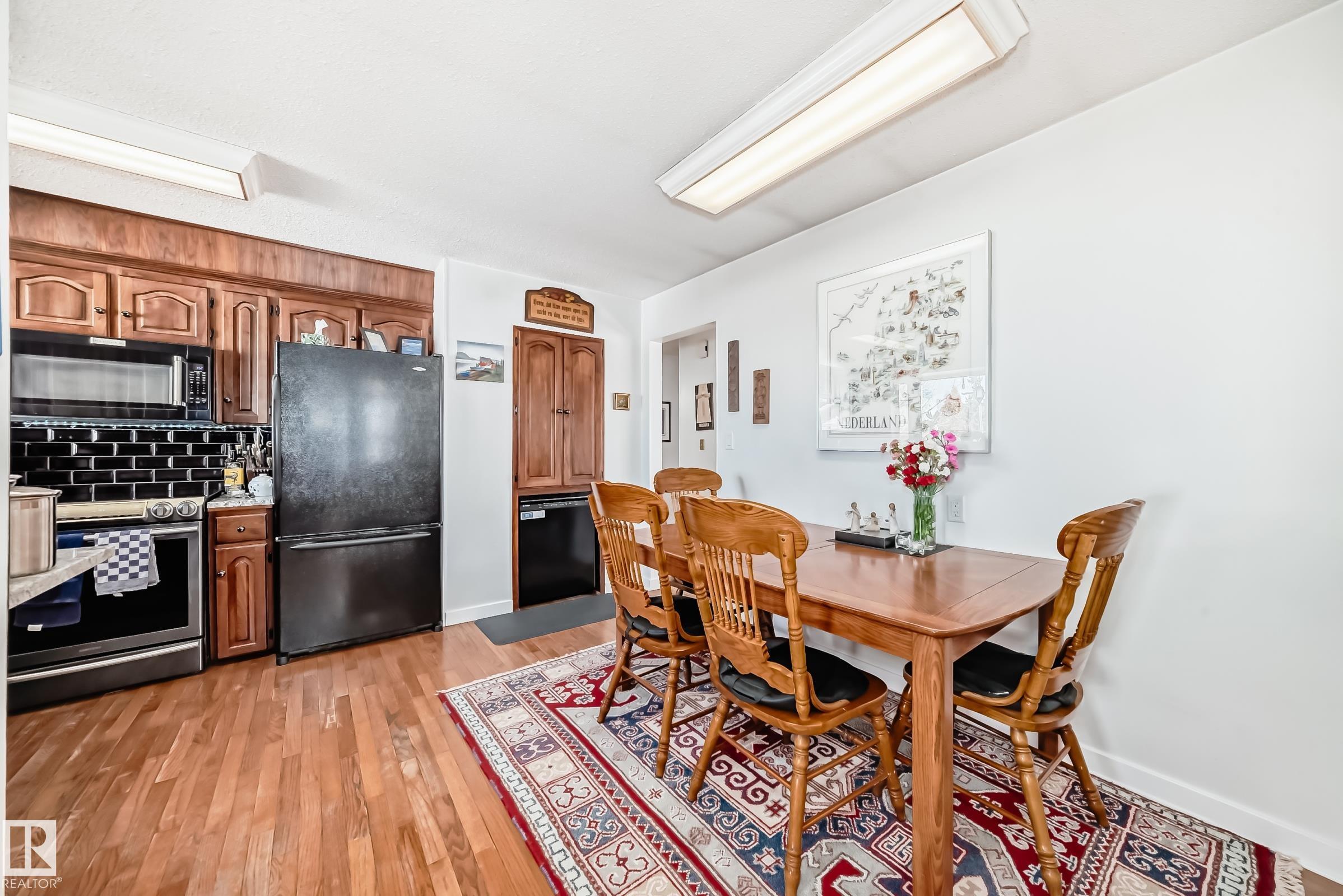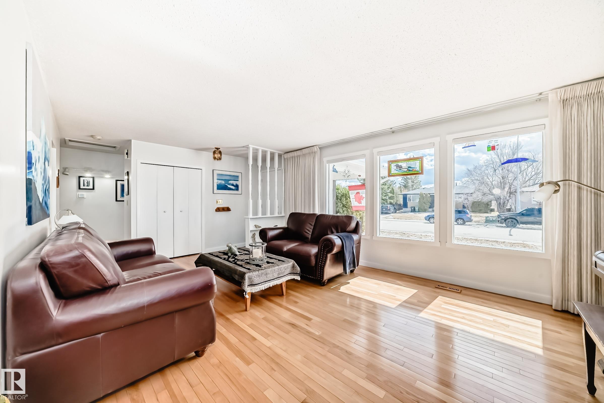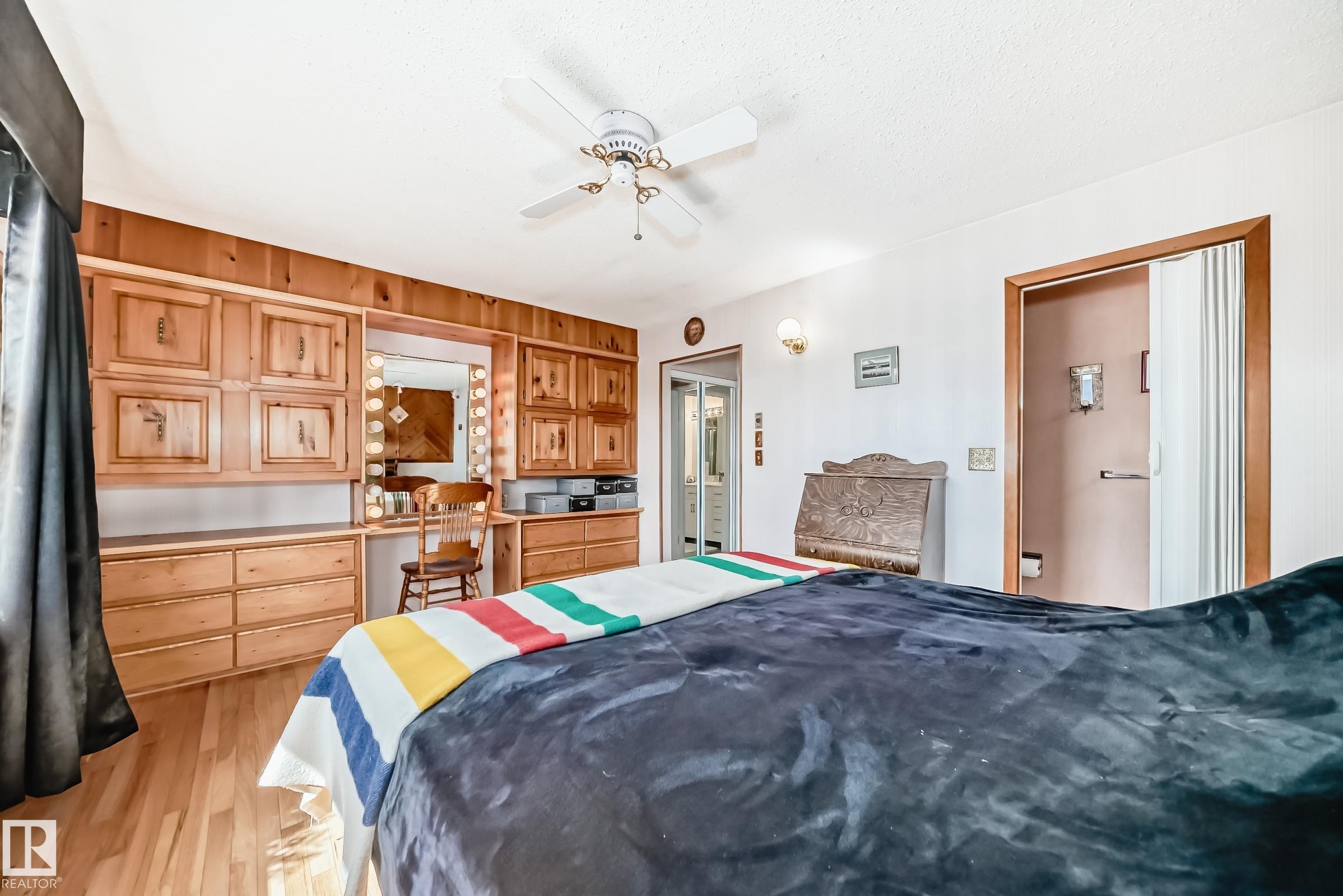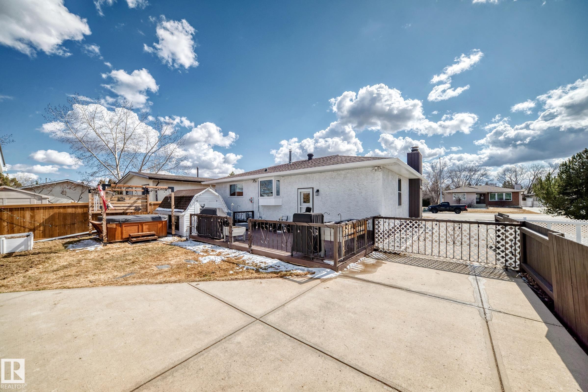 Beautiful family home in Caledonia, Leduc! This 1,270 sq ft bungalow is truly turnkey - Just move in and enjoy! Features include a stunning kitchen with custom walnut cabinetry, granite countertops, and a large bay window. The main floor offers solid oak flooring, 3 spacious bedrooms, including a primary with 2 pc ensuite, the 2nd and 3rd bedrooms share a fully renovated spa-like 4 pc bathroom. The fully developed basement boasts a huge rec room with a cozy gas fireplace, perfect for game nights, a 4th bedroom (non-egress window), 3 pc bath and laundry room. Enjoy a large private yard, huge deck, and heated 24x24 detached garage. Major upgrades include furnace & A/C (2025), hot water tank (2019), user friendly solar panel system (2024), newer vinyl windows (except front), eavestroughs with leaf guards, home shingles 2016 (40 year fibreglass), garage shingles 2023 (40 year fibreglass) and fencing. Close to schools?an ideal family home!