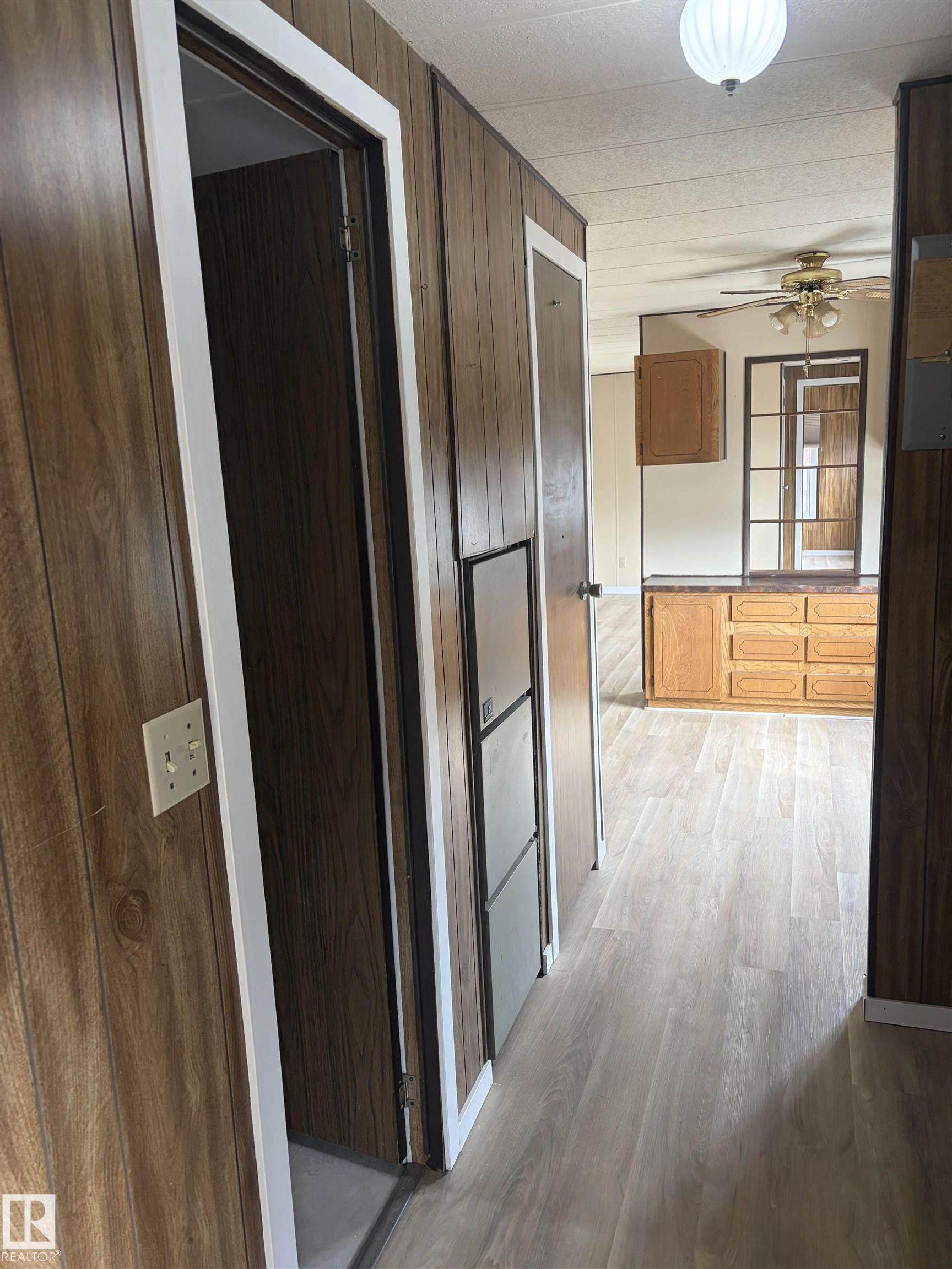 Affordable living in this mobile home in the Town of Bon Accord. Newer flooring & vinyl windows throughout, 2 bedrooms on opposite ends of the home. The primary bedroom has a 2 pc ensuite & the main bathroom has a walk-in shower. Original furnace with replaced motor-2026, new hot water on demand 2025, roof replaced 10 years ago. 2 entrances on the east side, one with a good sized deck for summer BBQ's & a parking spot & large storage shed on the lot as well. Lot fees $450/month include town water. Walking distance to main street grocery store & other local amenities. Good commuting distance to north Edmonton & the Anthony Henday Drive.